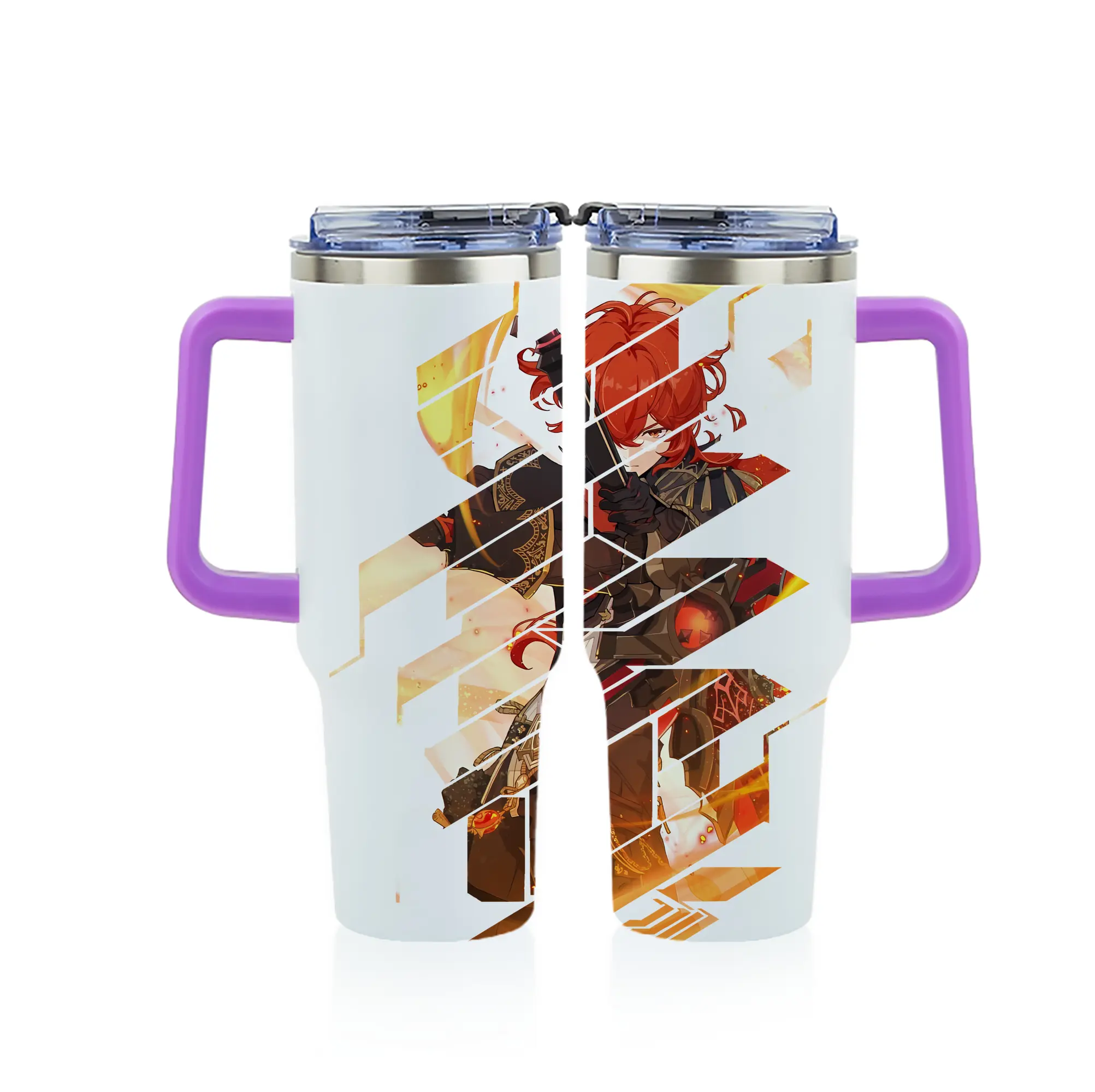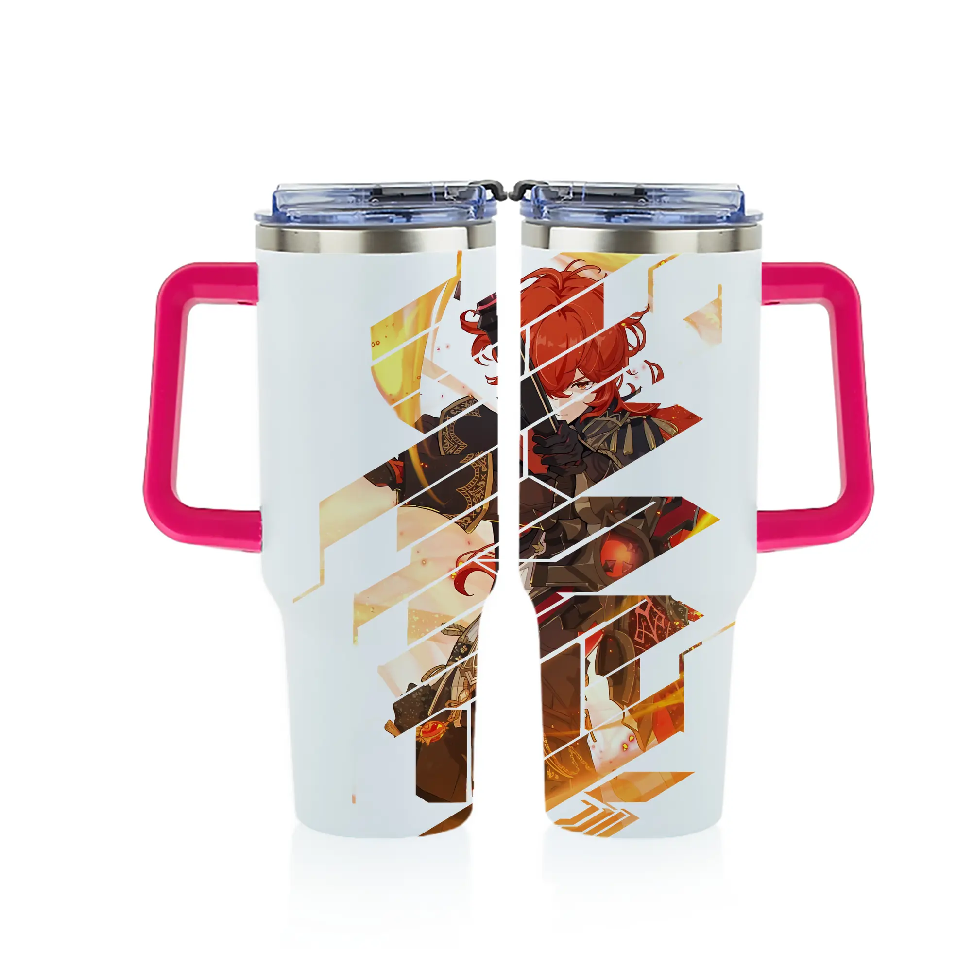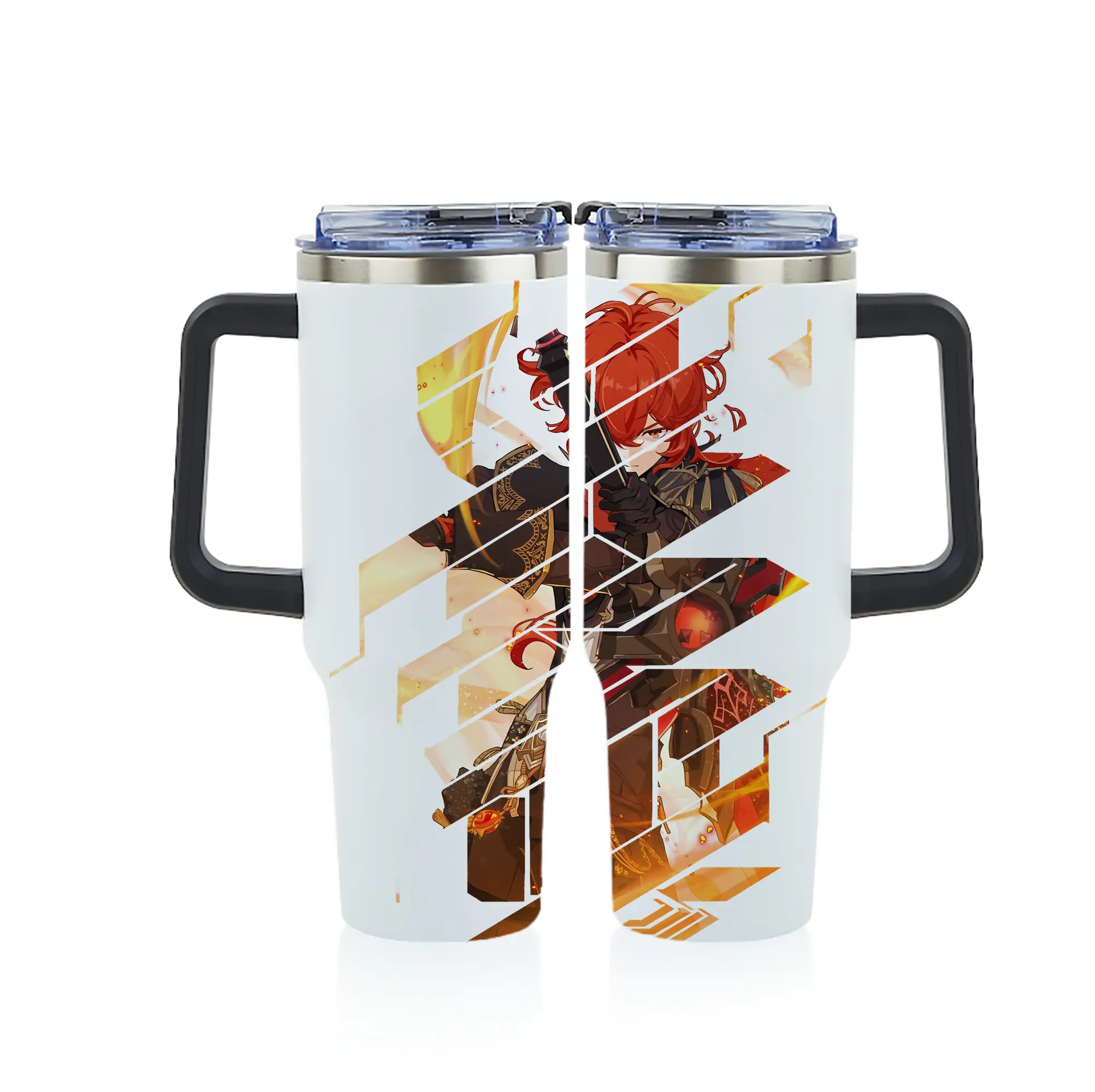 原 神 グッズ ディルック - 1200mL フルプリント車用タンブラー ・ 304ステンレス 内側 ・ 201ステンレス 外側 ・ 保温 保冷 ・ 通勤 ドライブ アウトドア用