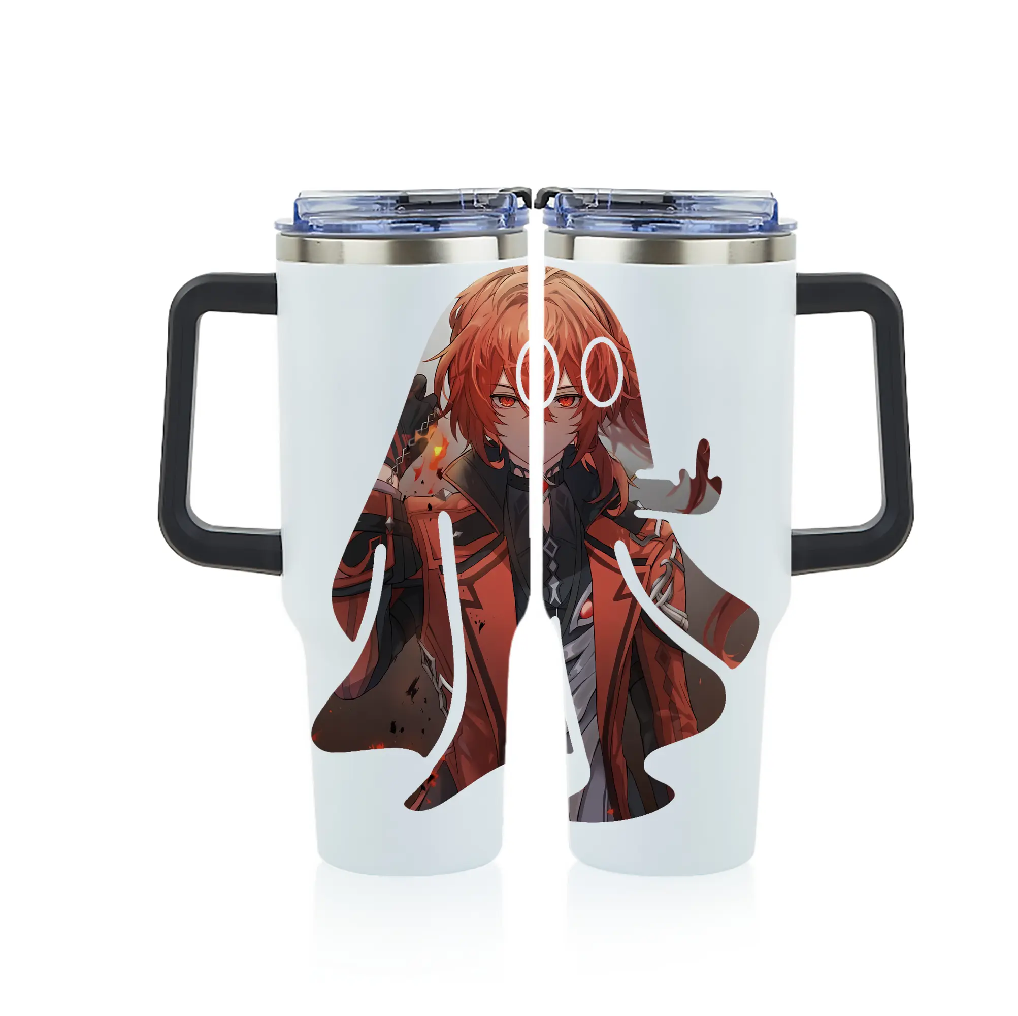 原 神 グッズ ディルック - 1200mL フルプリント車用タンブラー ・ 304ステンレス 内側 ・ 201ステンレス 外側 ・ 保温 保冷 ・ 通勤 ドライブ アウトドア用