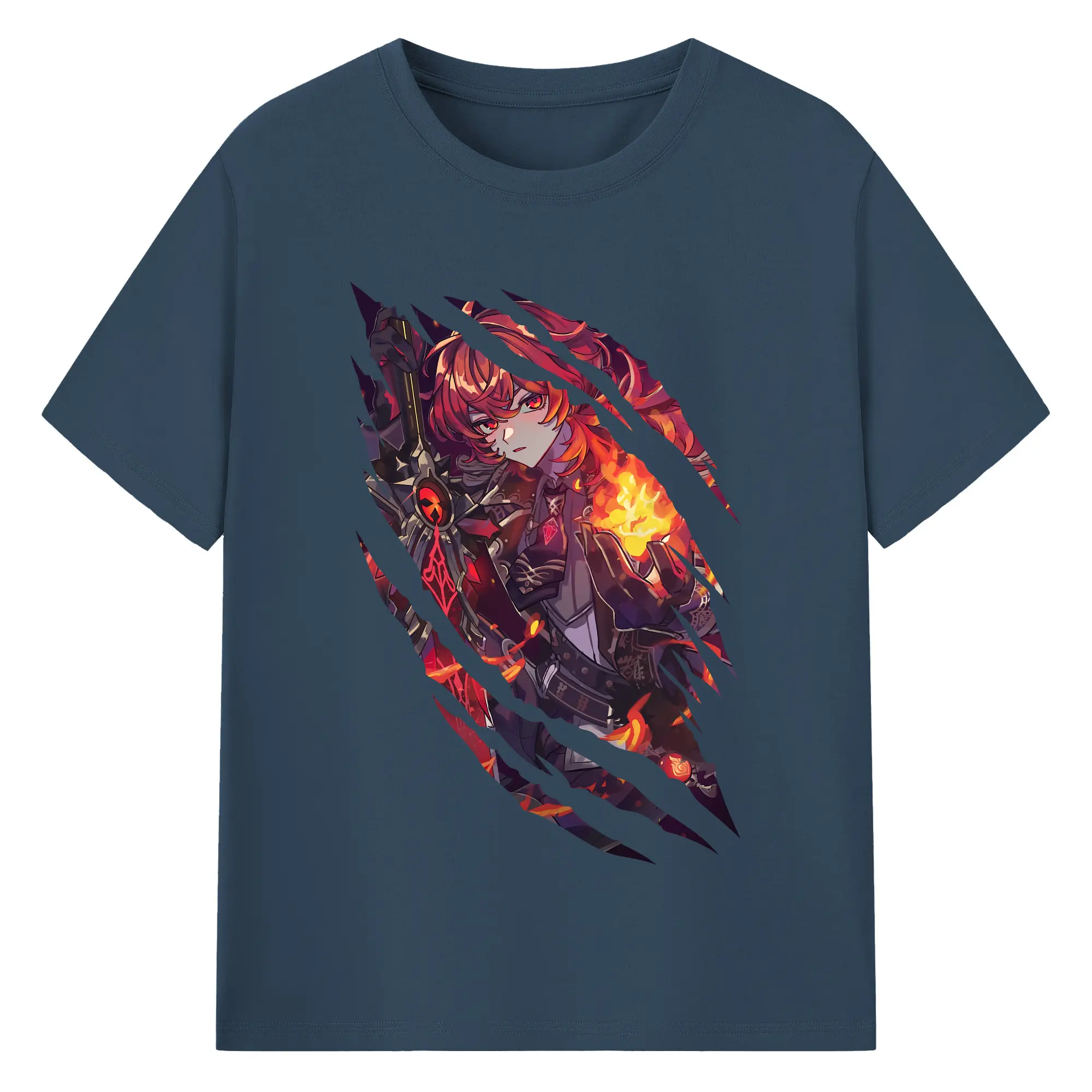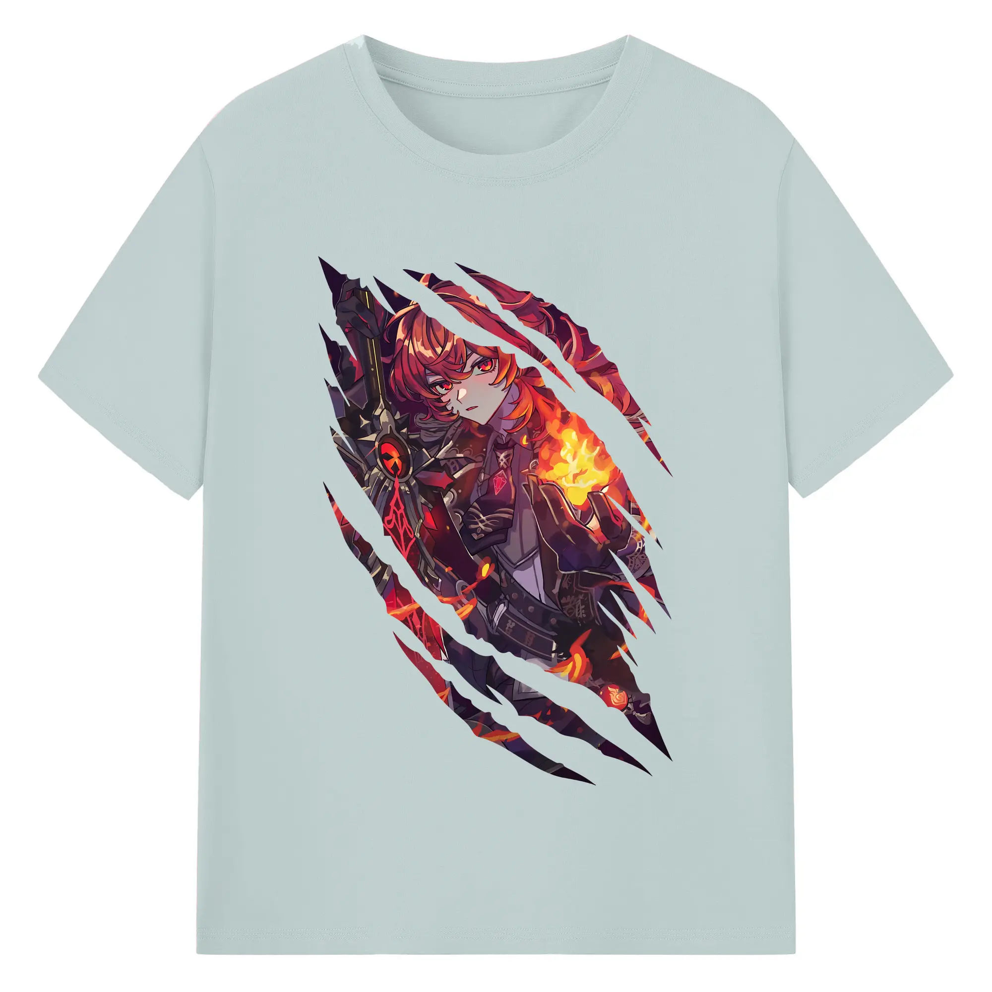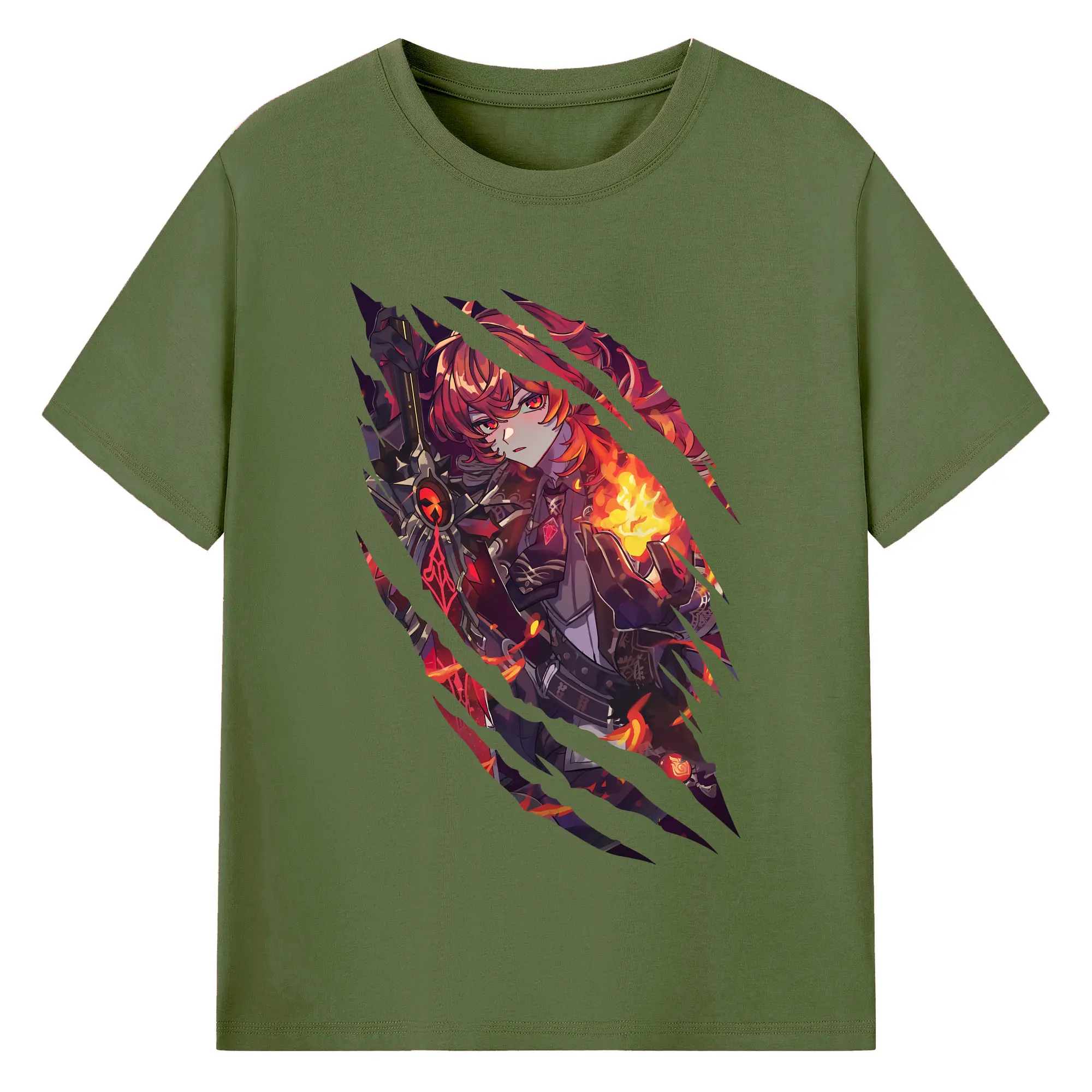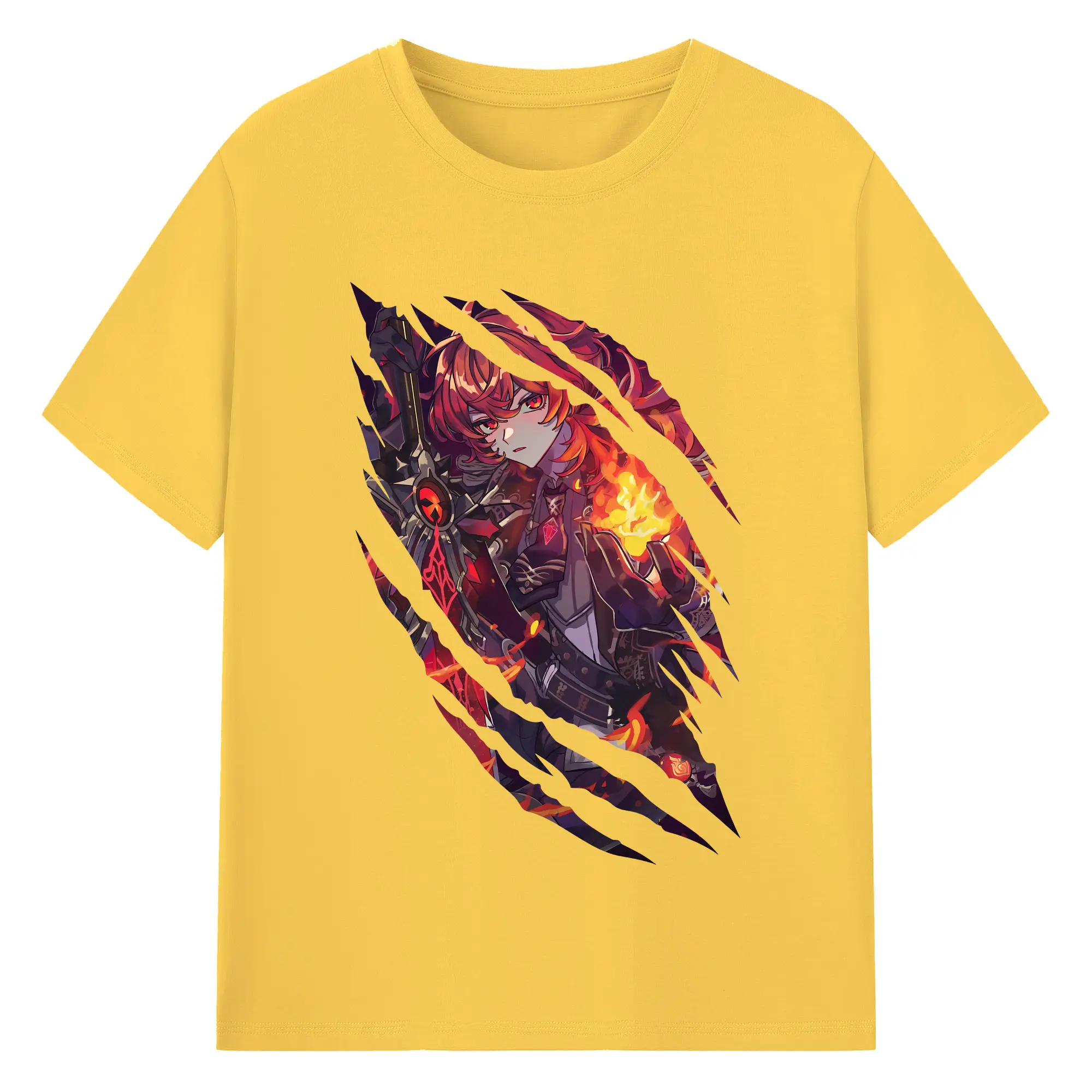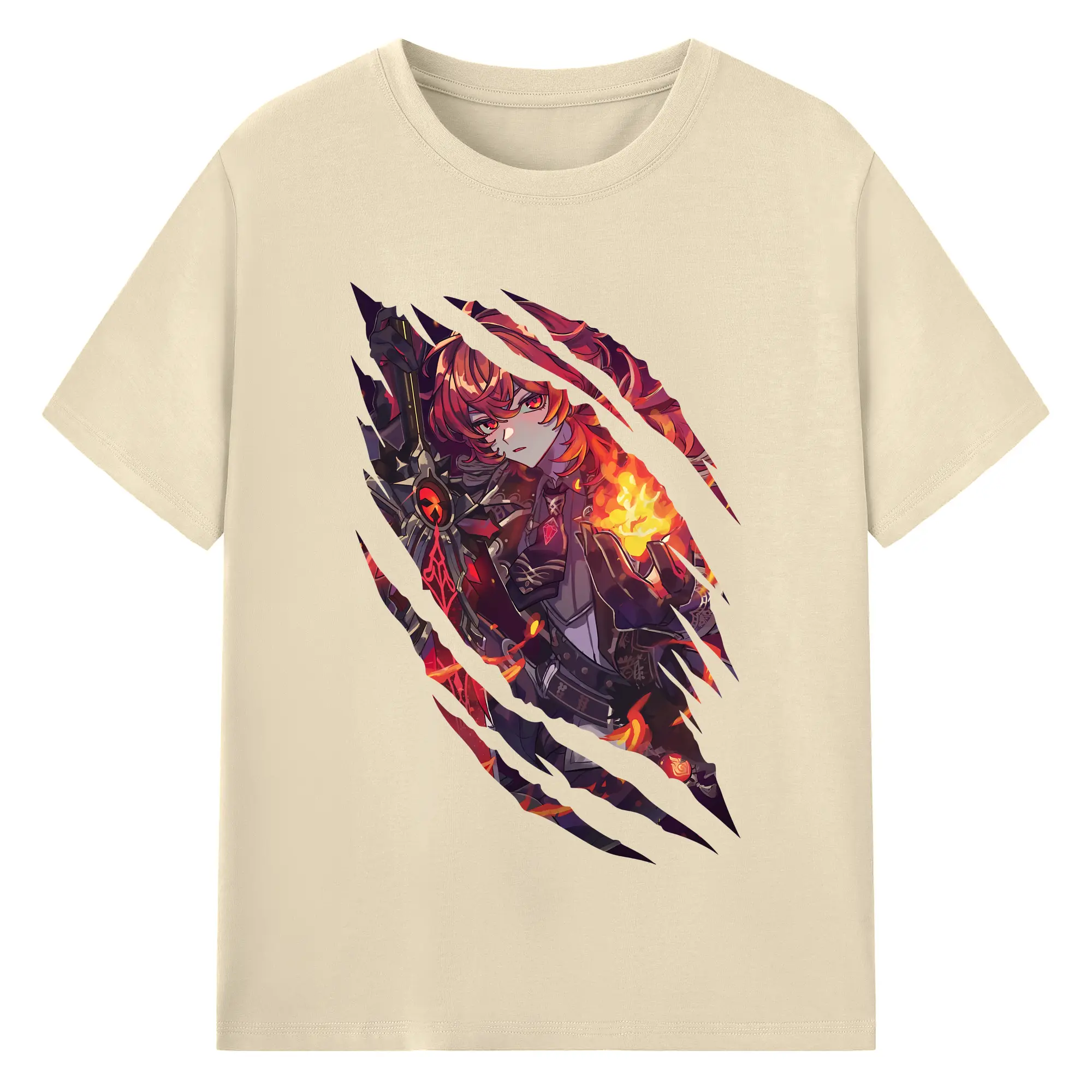 原 神 グッズ ディルック - 綿100% ヴィンテージ風 半袖Tシャツ ・ フロントプリント ・ 柔らか肌触り ・ 通気性 快適 ・ スポーツ カジュアル 外出用
