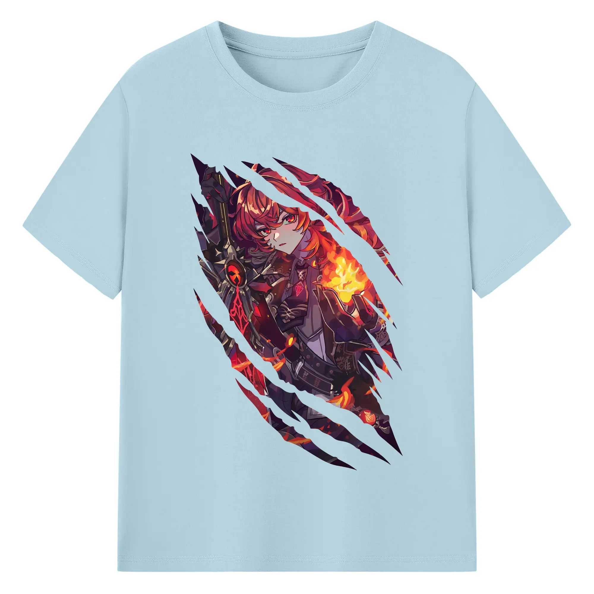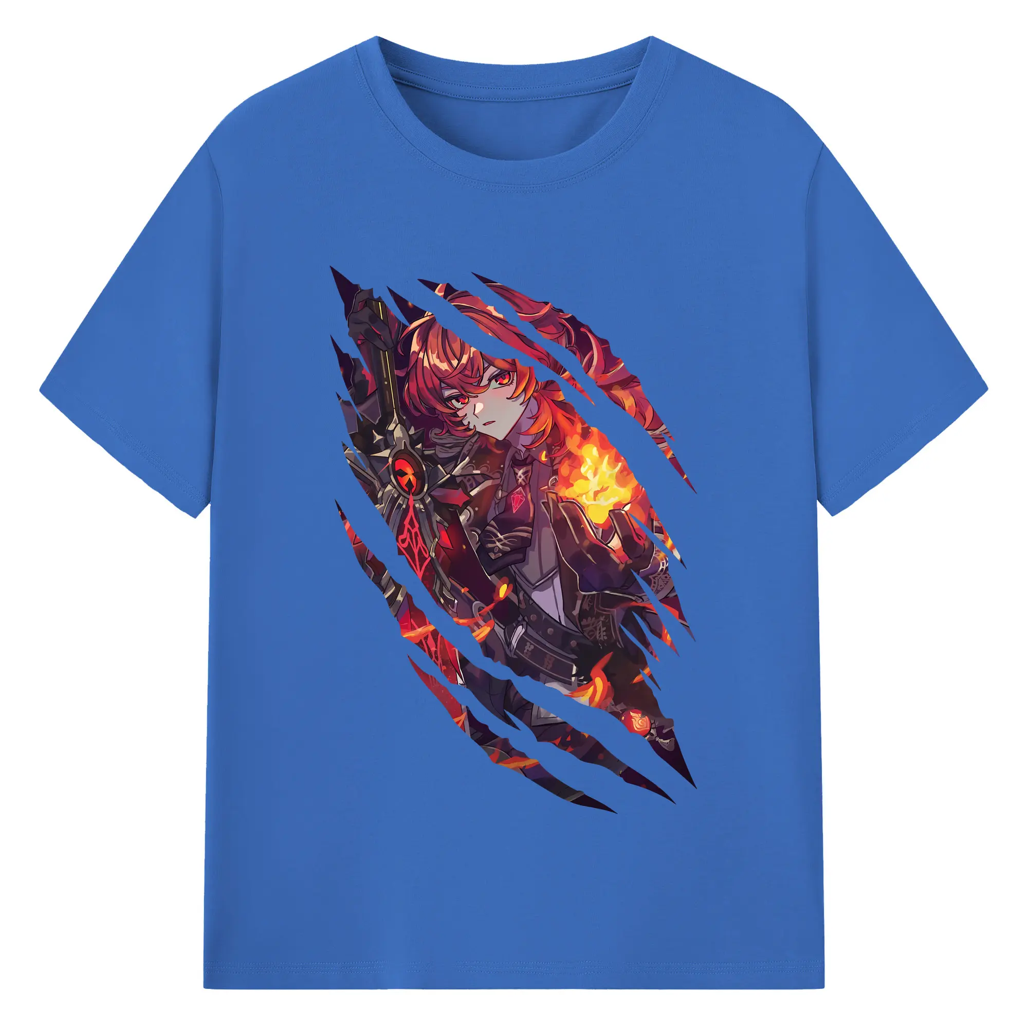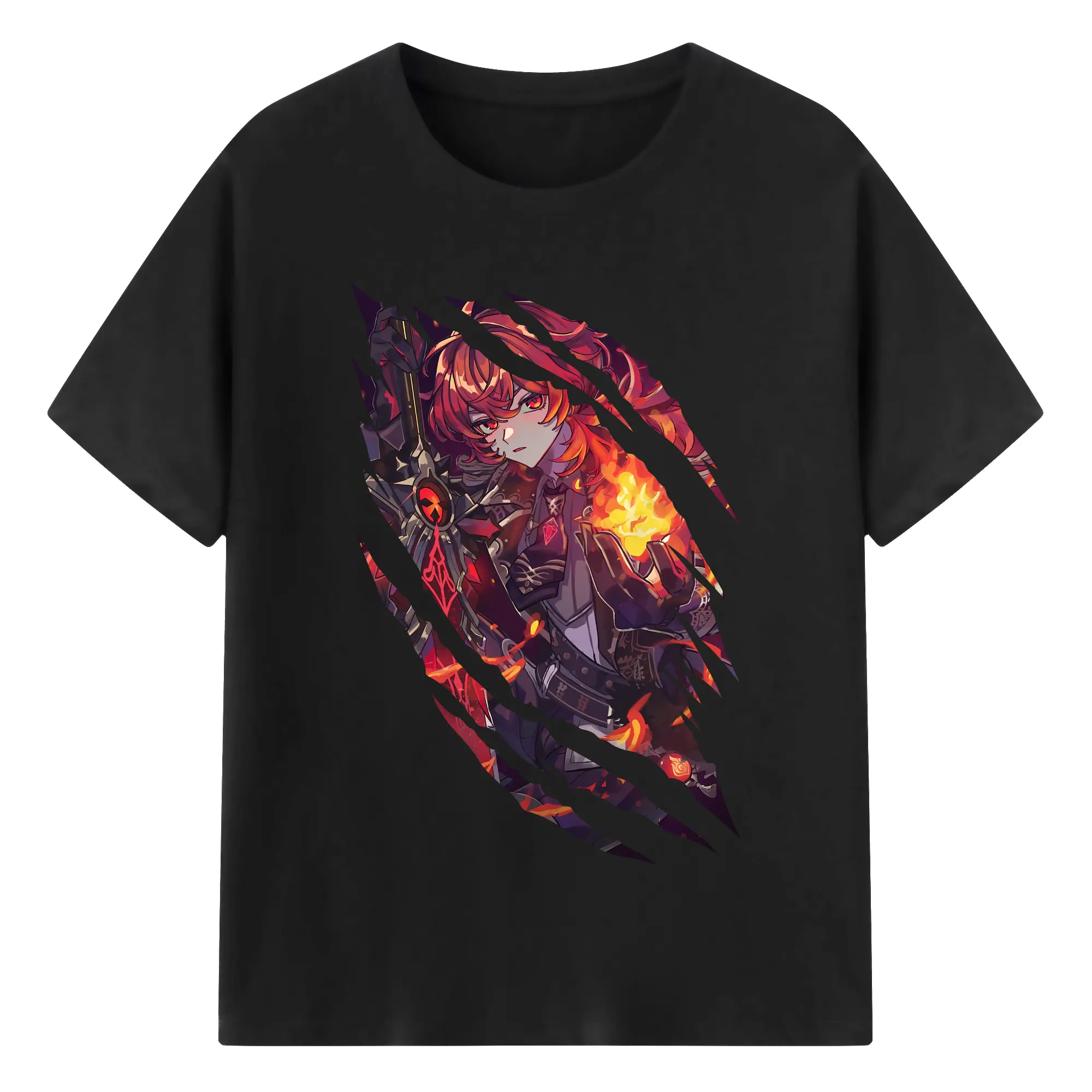 原 神 グッズ ディルック - 綿100% 半袖Tシャツ ・ バックプリント ・ 快適 通気性 ・ 日常使い 散歩 スポーツ用