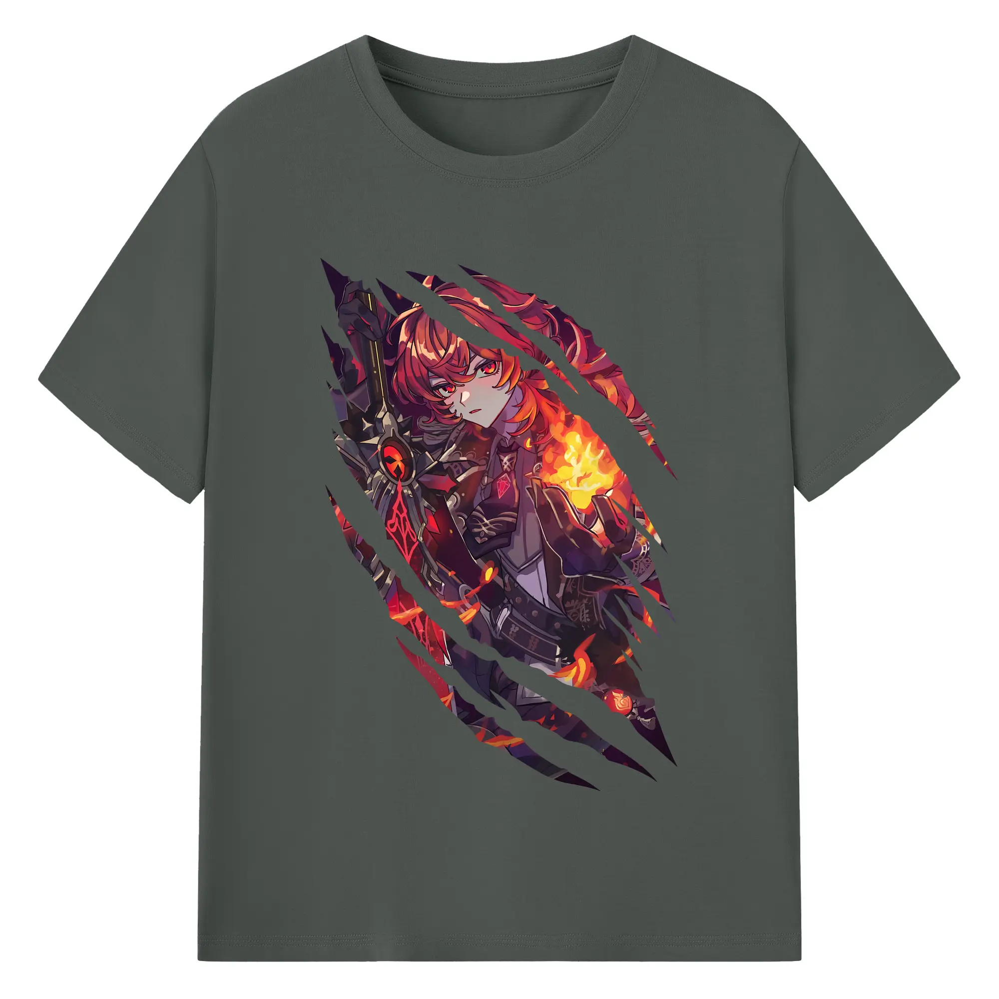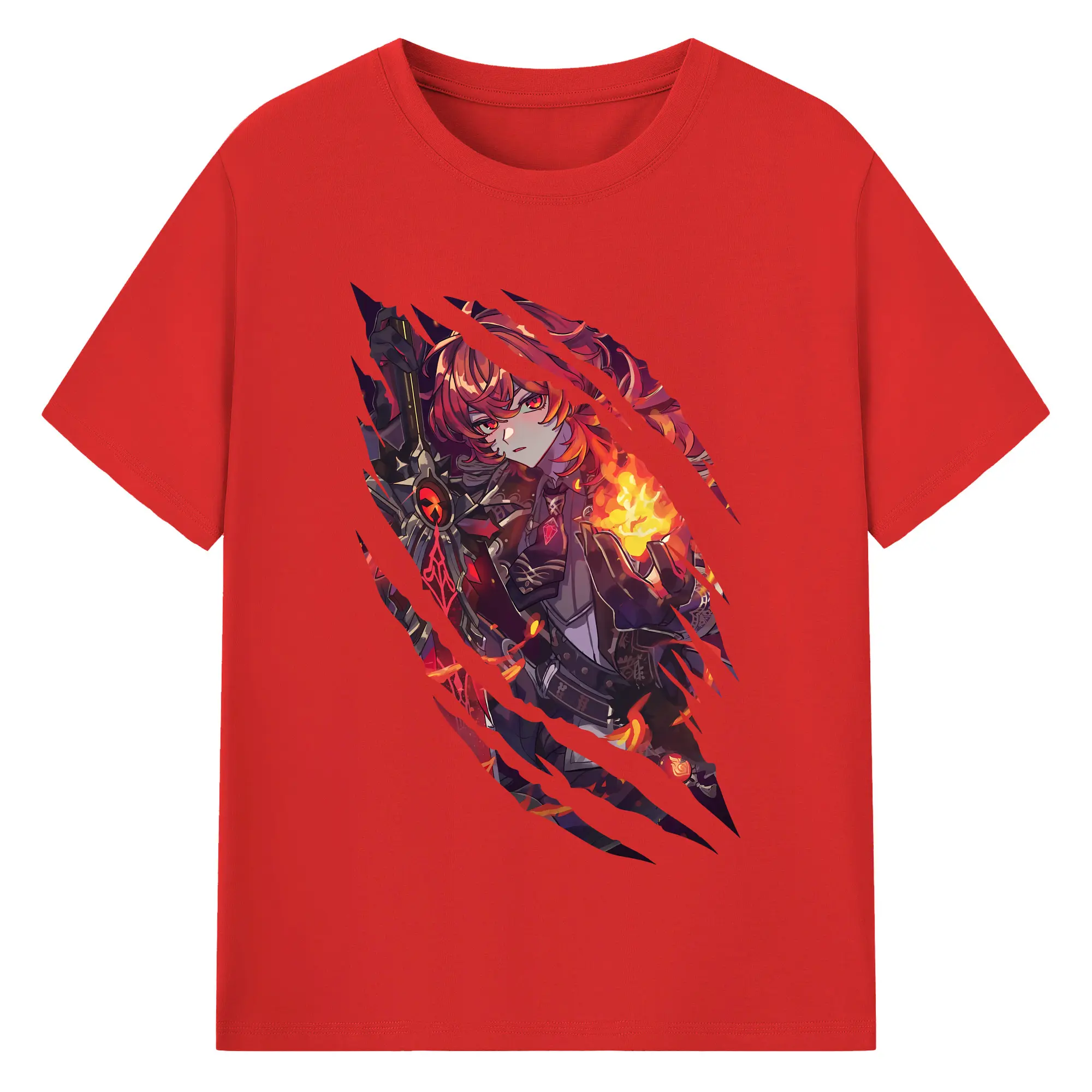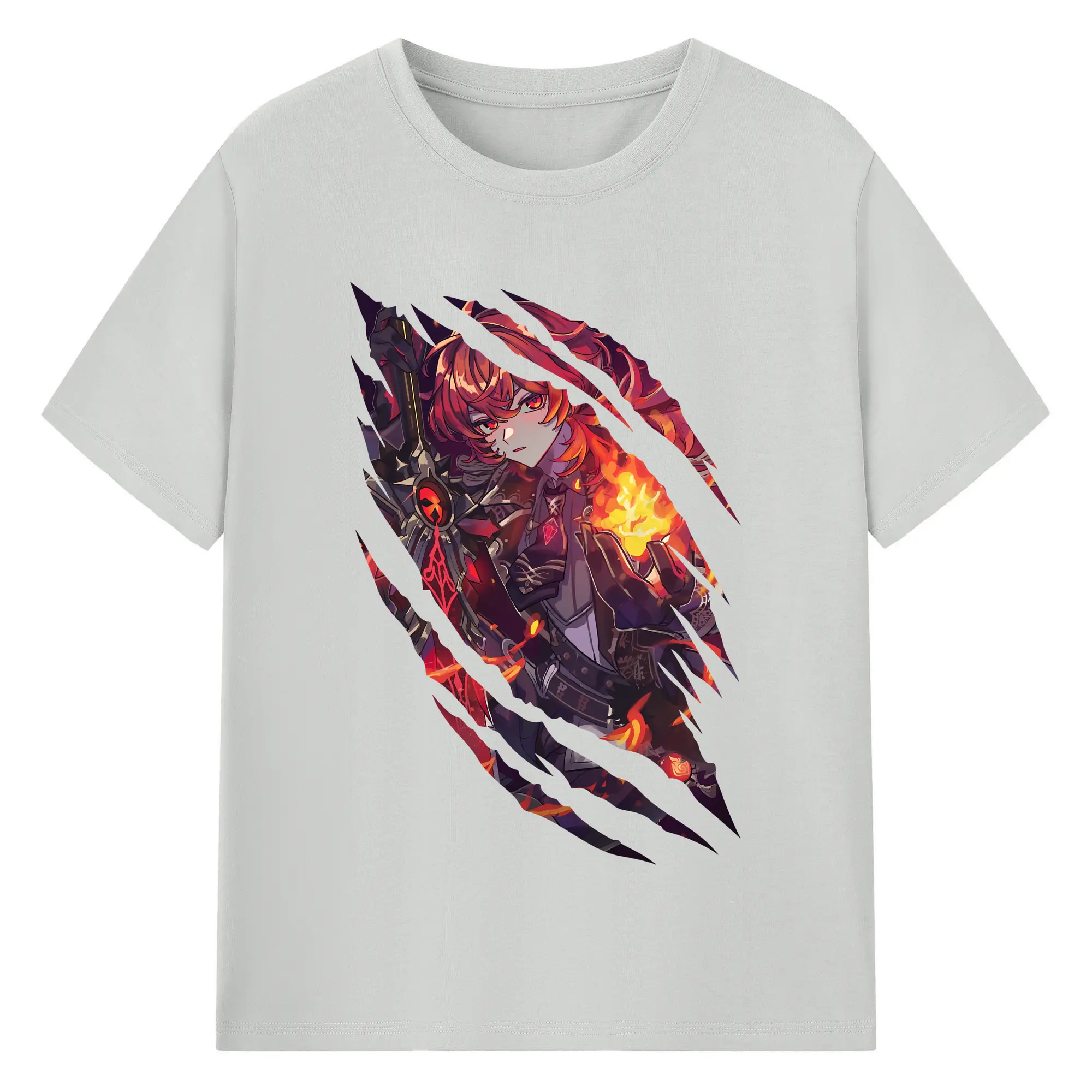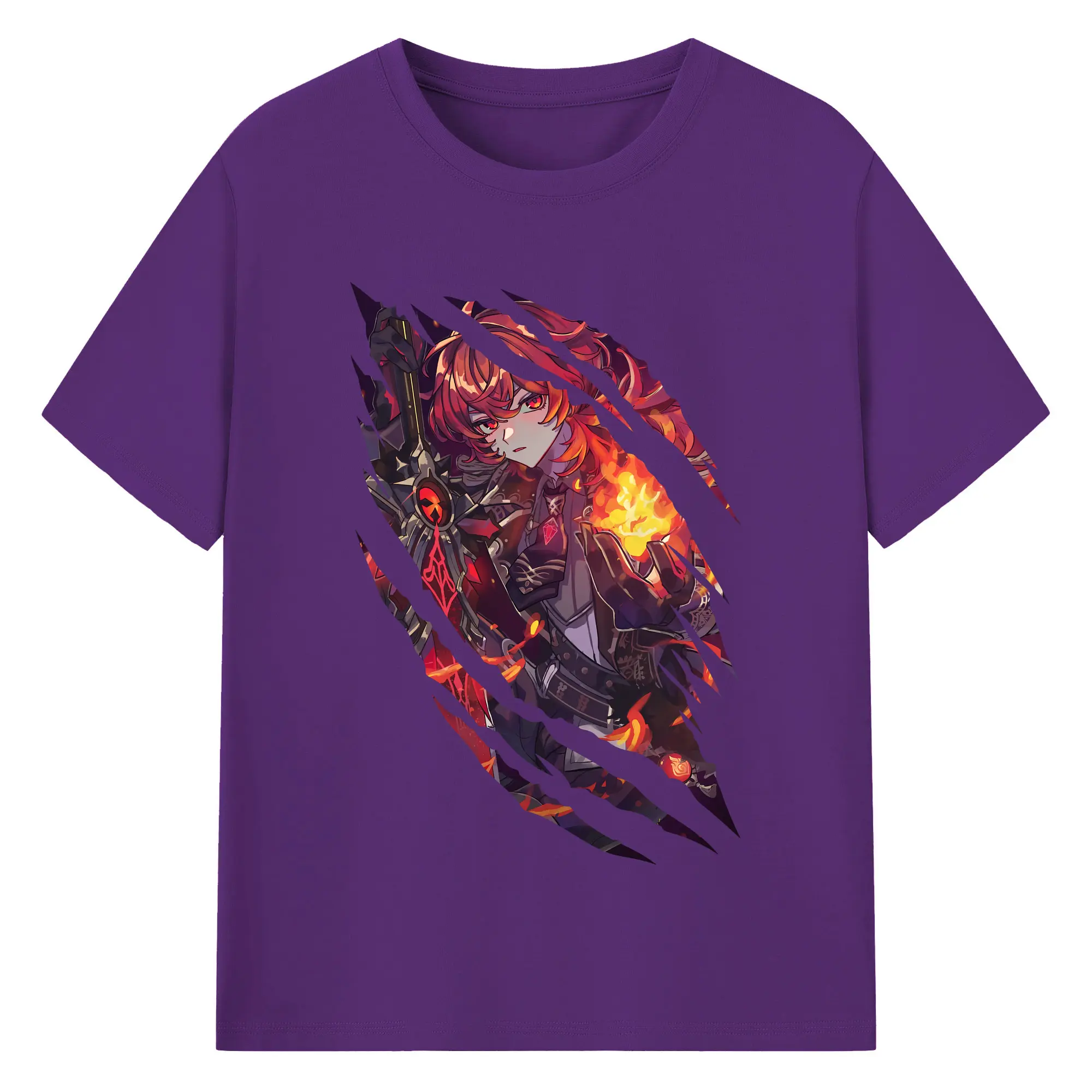 原 神 グッズ ディルック - 綿100% 半袖Tシャツ ・ バックプリント ・ 快適 通気性 ・ 日常使い 散歩 スポーツ用