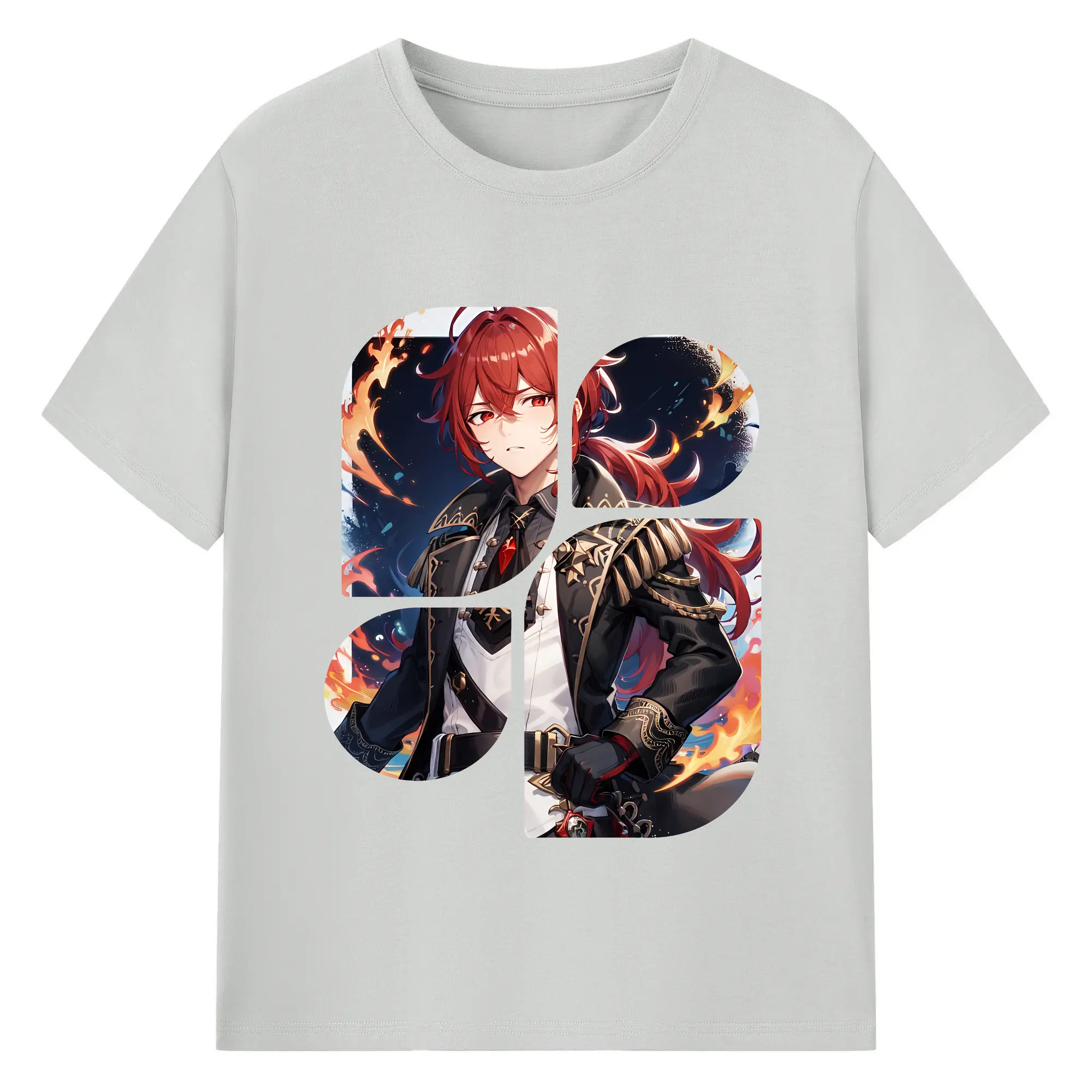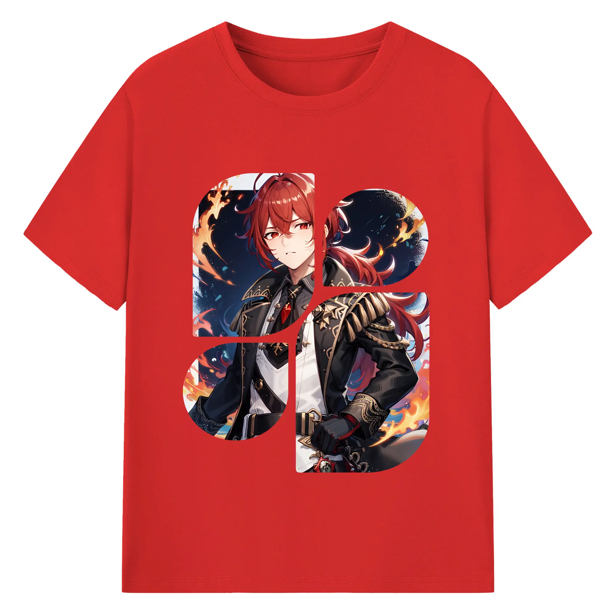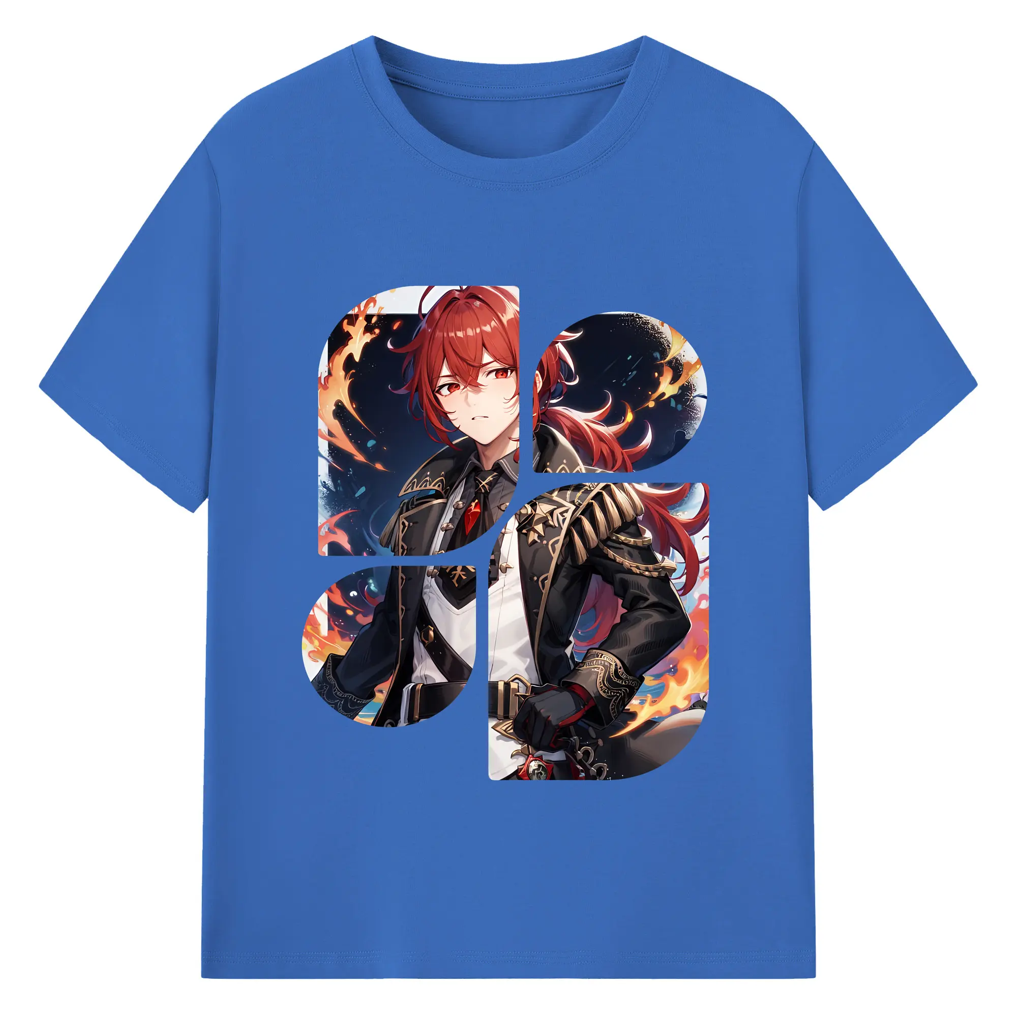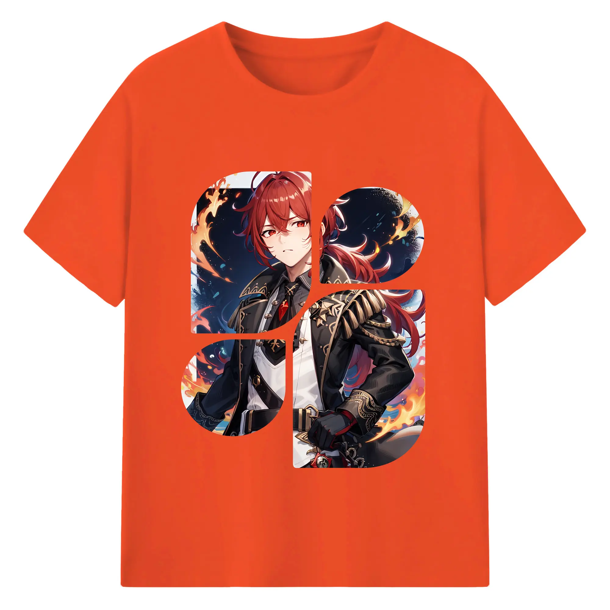 原 神 グッズ ディルック - 綿100% 半袖Tシャツ ・ バックプリント ・ 快適 通気性 ・ 日常使い 散歩 スポーツ用
