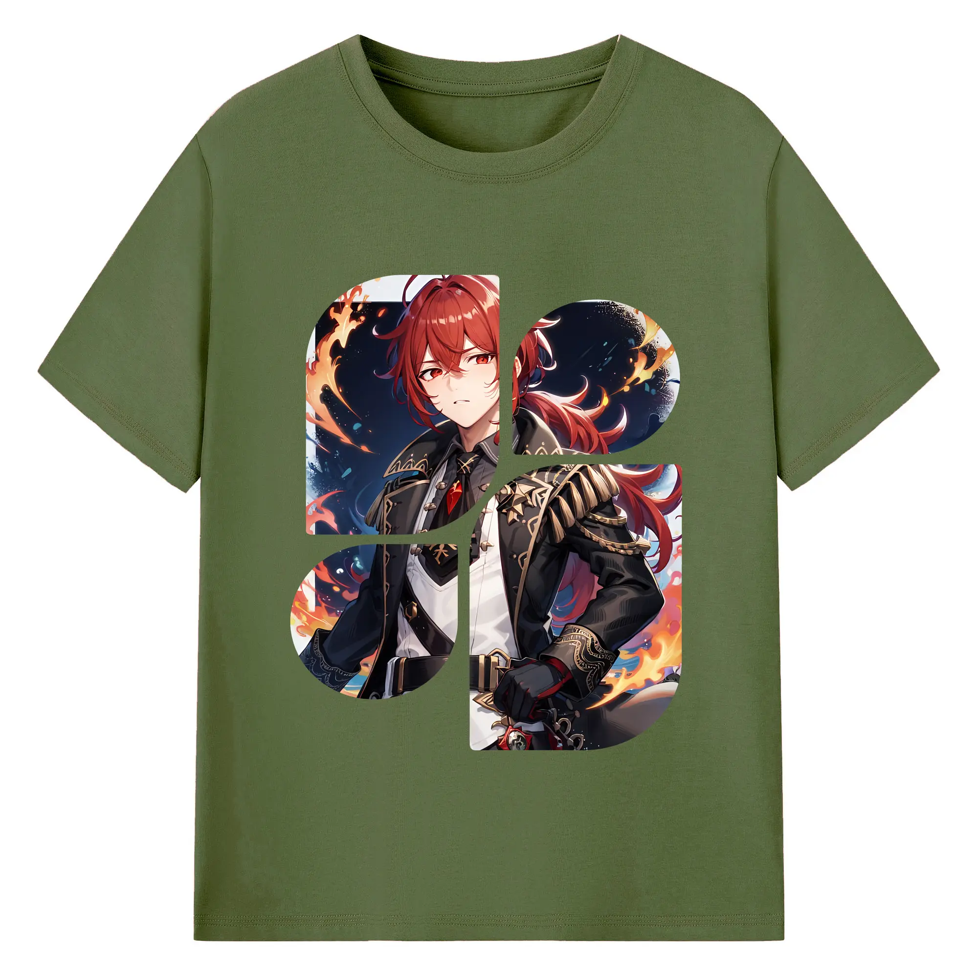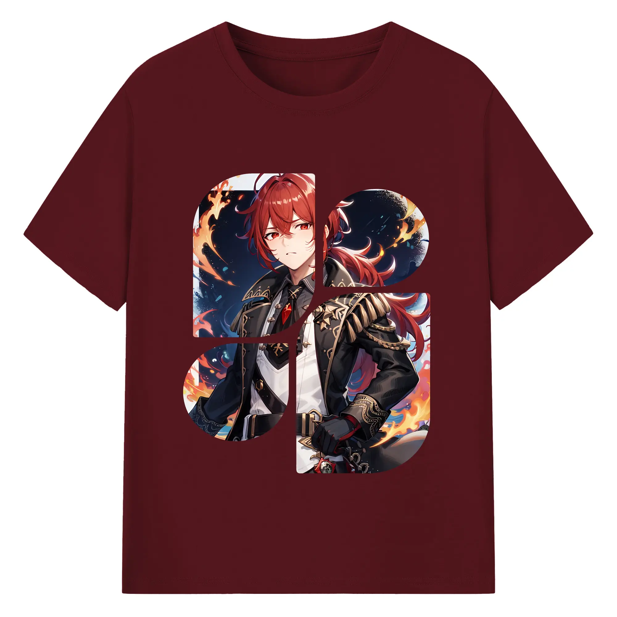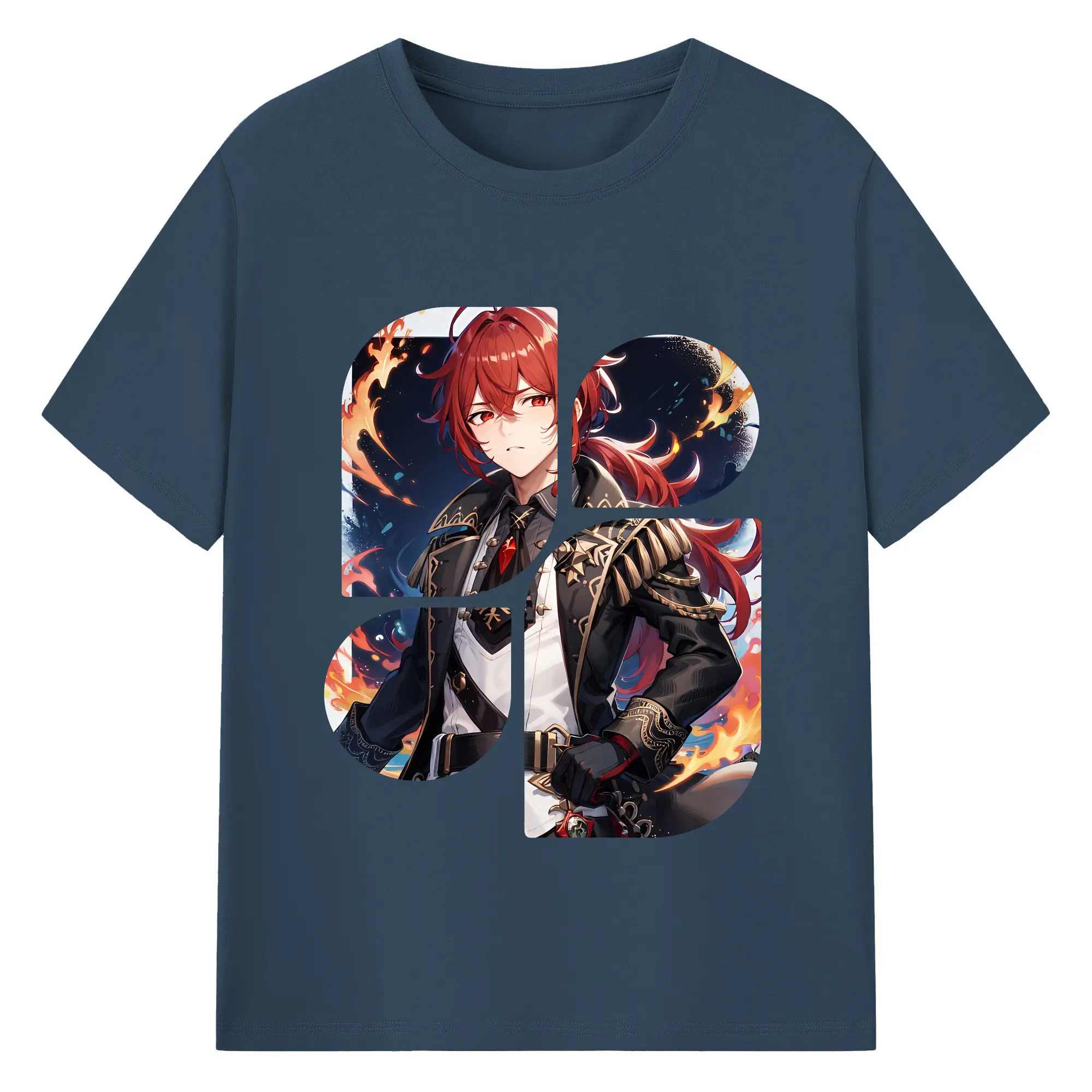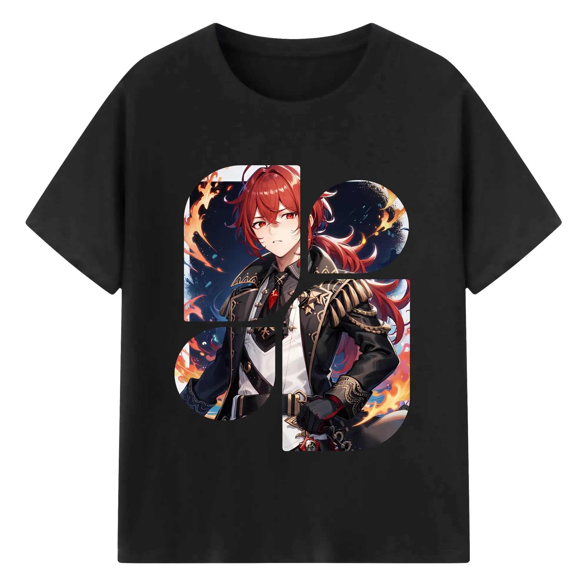 原 神 グッズ ディルック - 綿100% 半袖Tシャツ ・ バックプリント ・ 快適 通気性 ・ 日常使い 散歩 スポーツ用