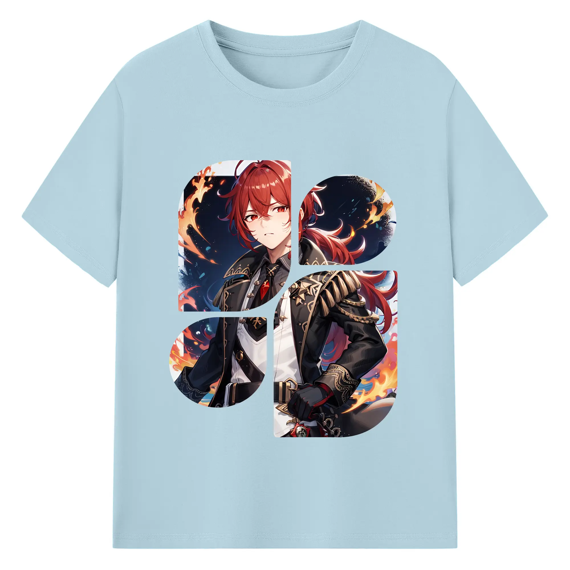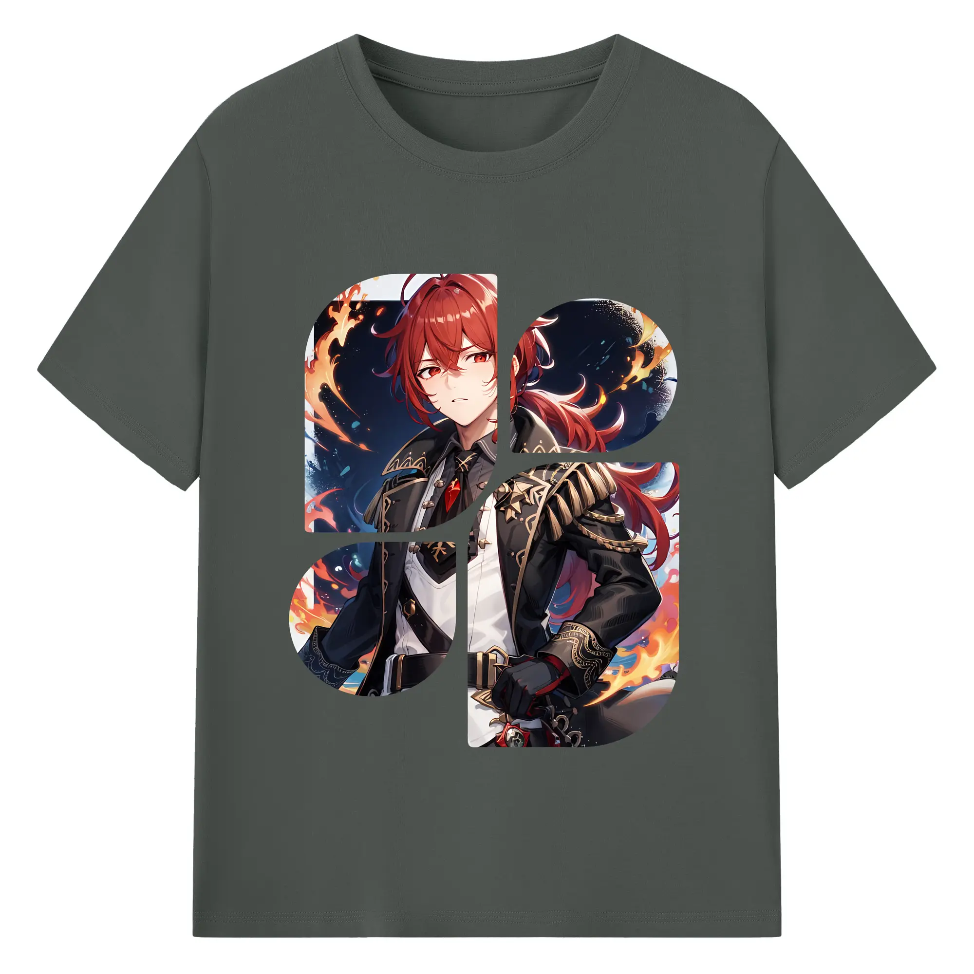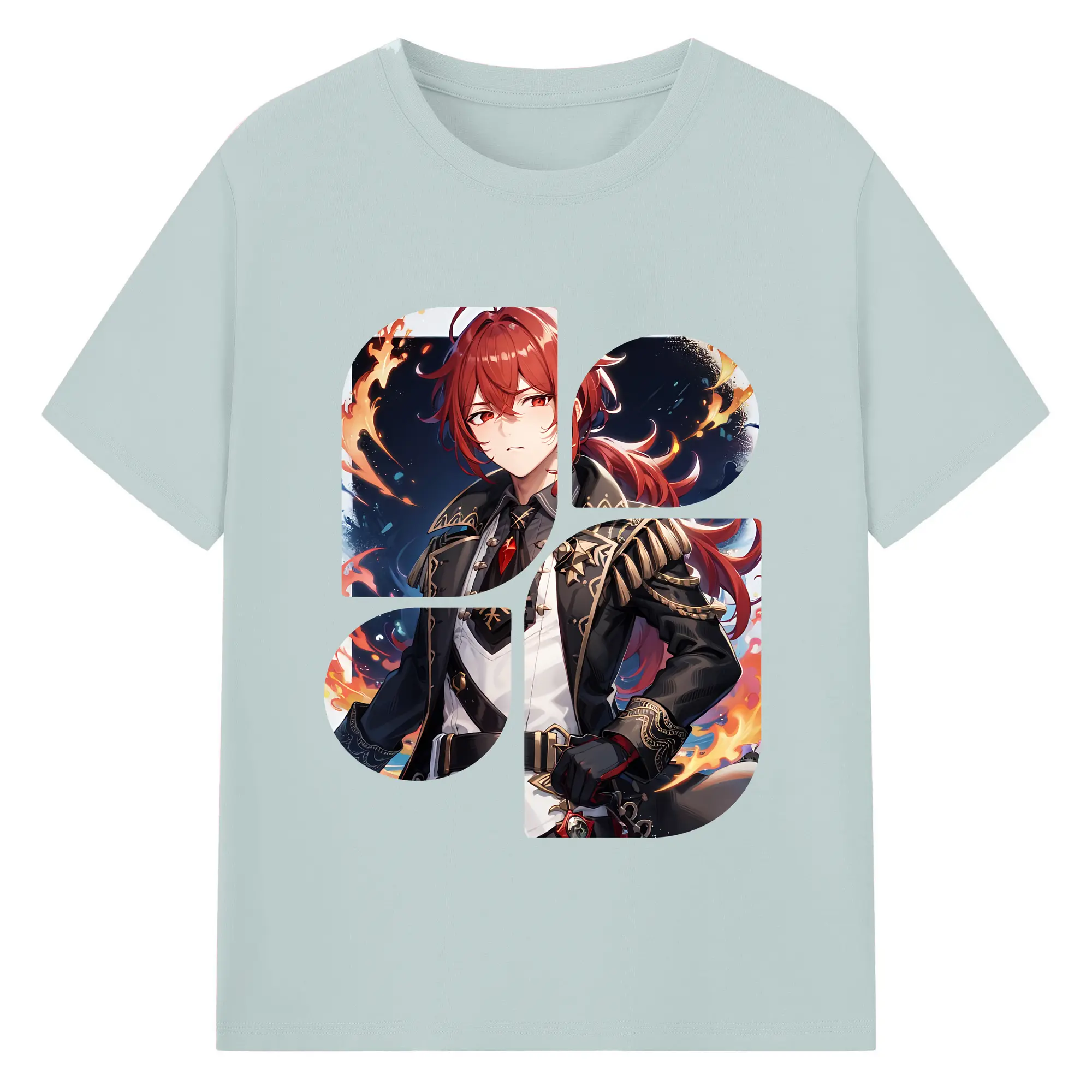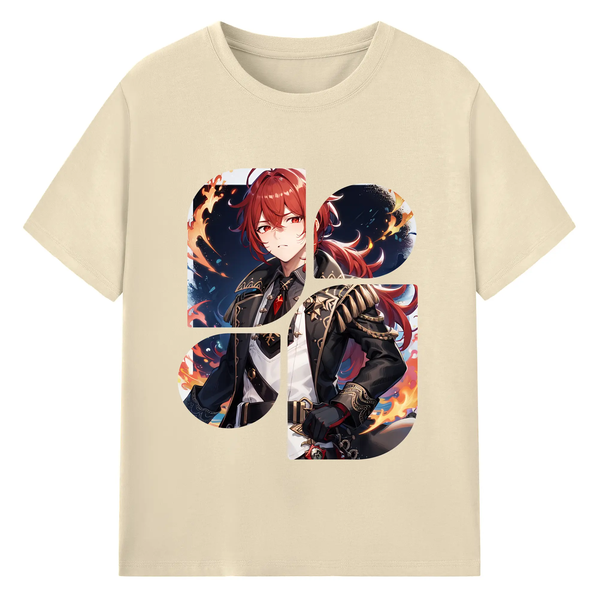原 神 グッズ ディルック - 綿100% 半袖Tシャツ ・ バックプリント ・ 快適 通気性 ・ 日常使い 散歩 スポーツ用