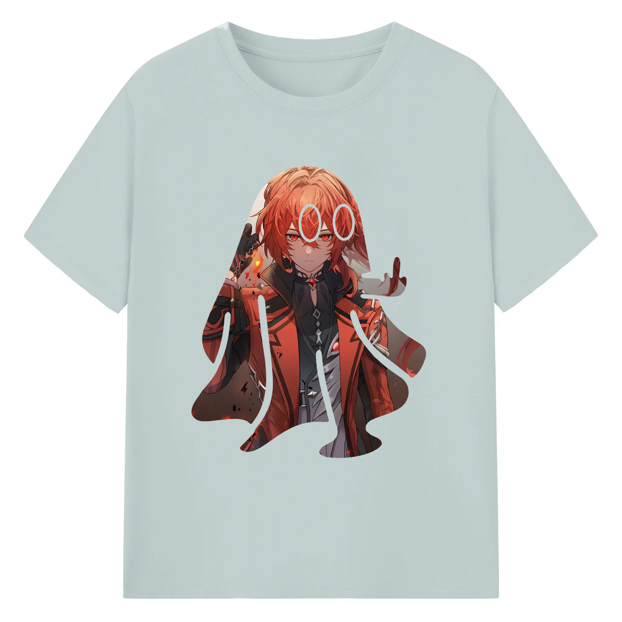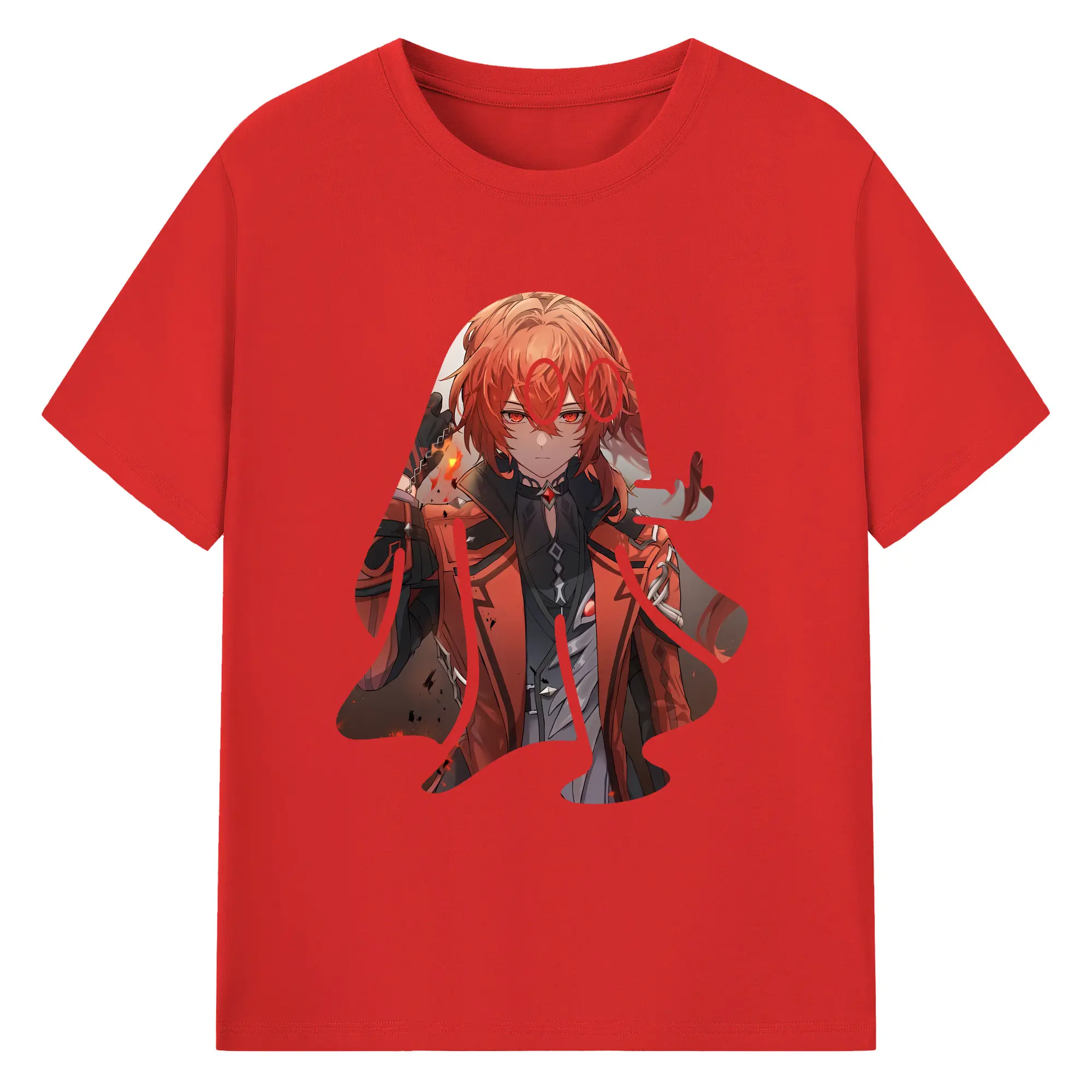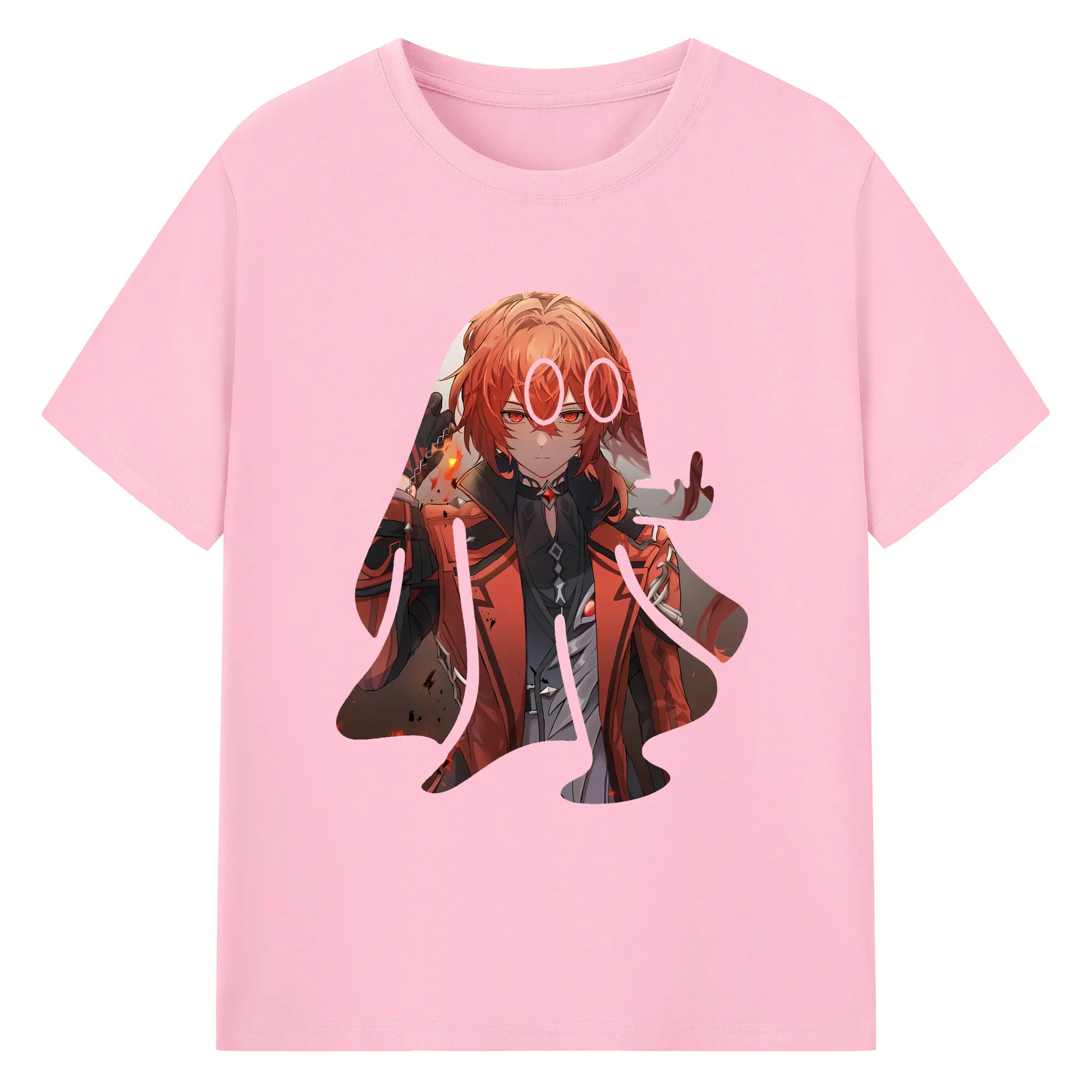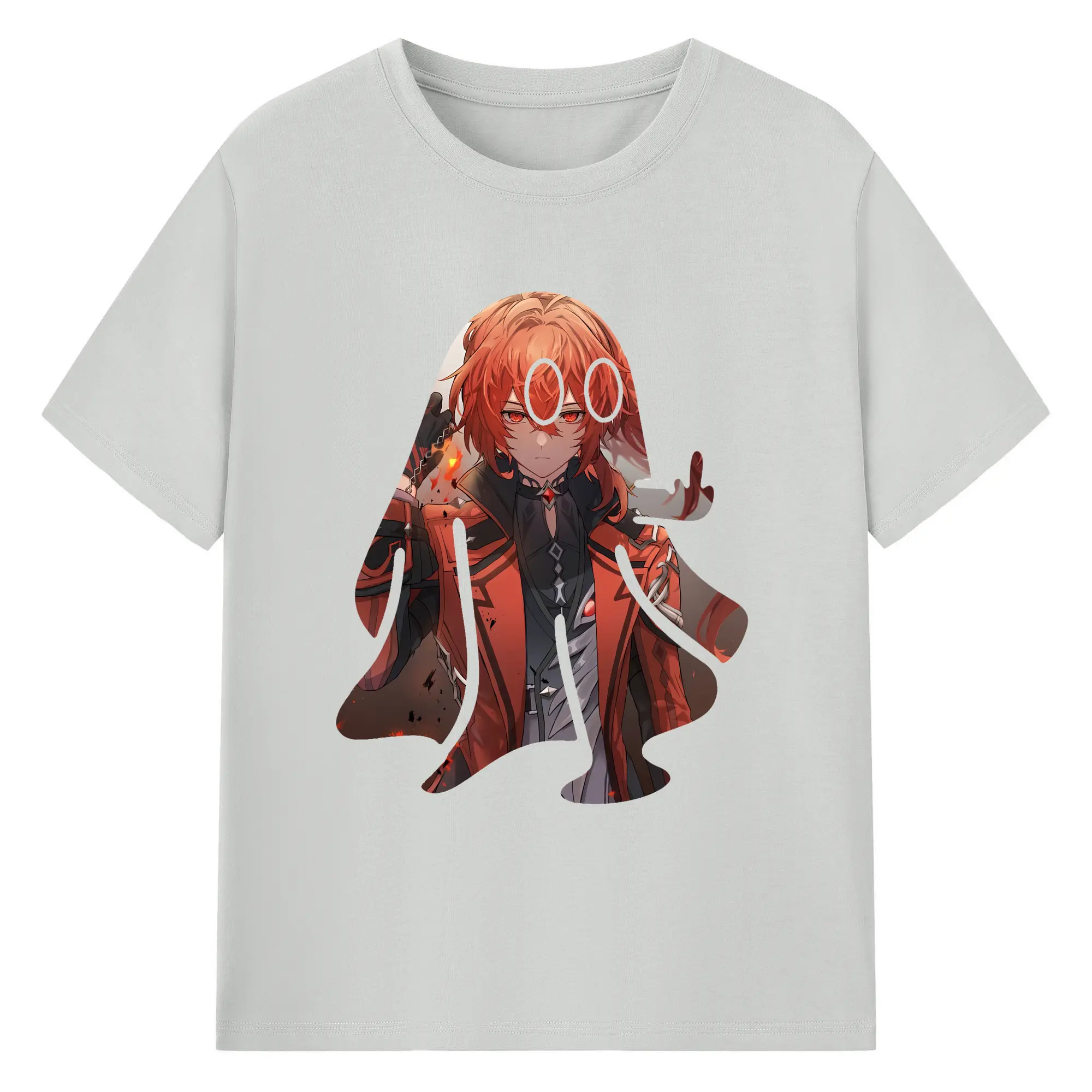 原 神 グッズ ディルック - 綿100% 半袖Tシャツ ・ バックプリント ・ 快適 通気性 ・ 日常使い 散歩 スポーツ用