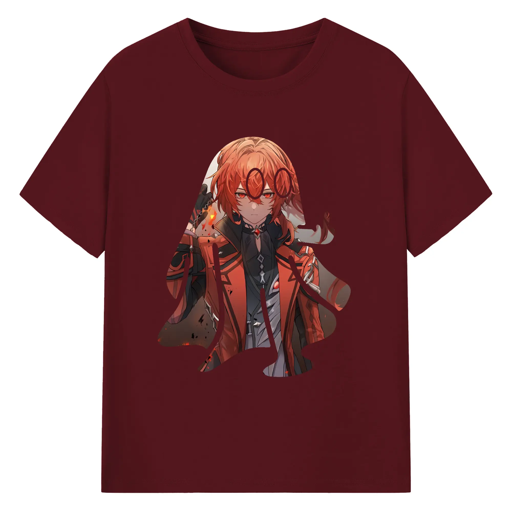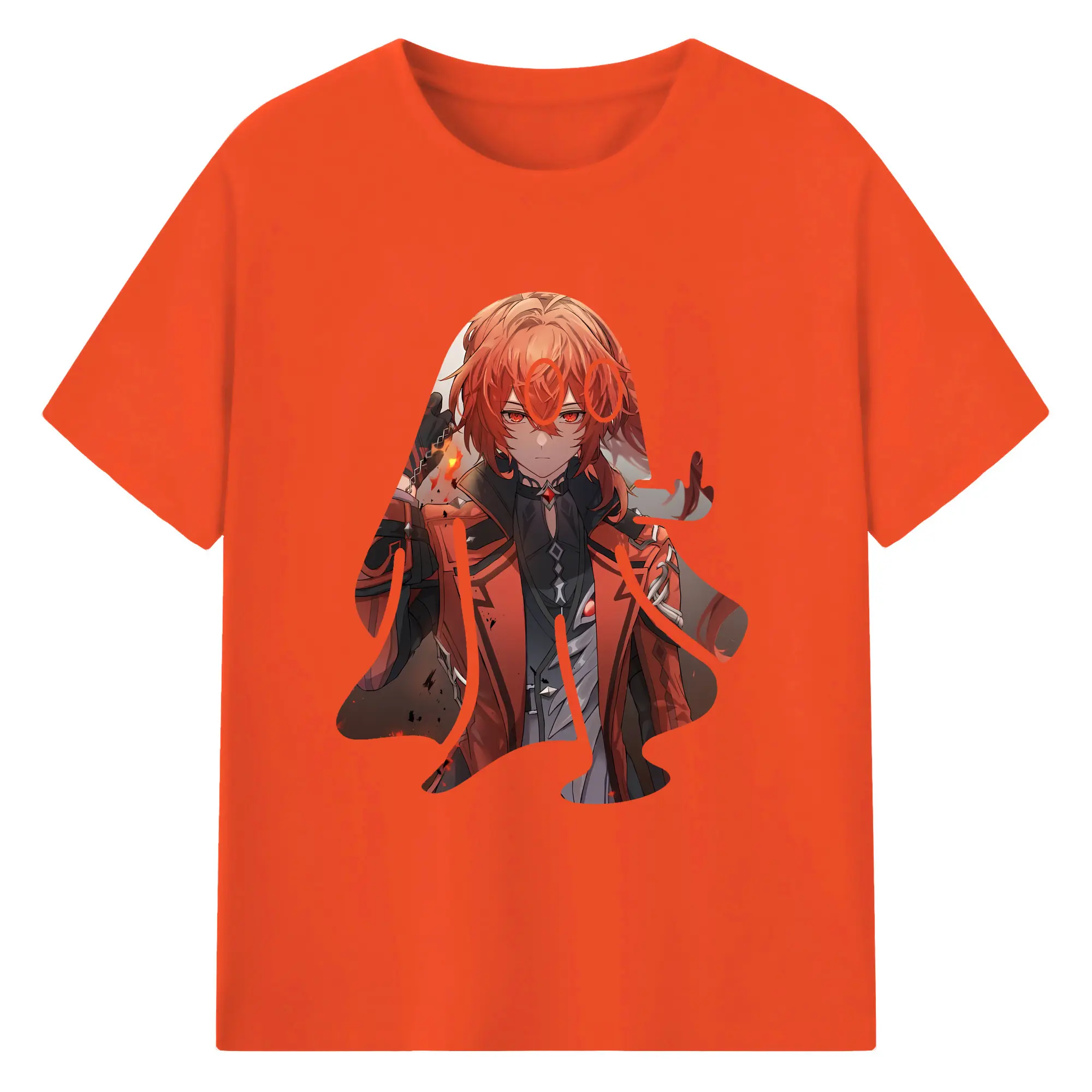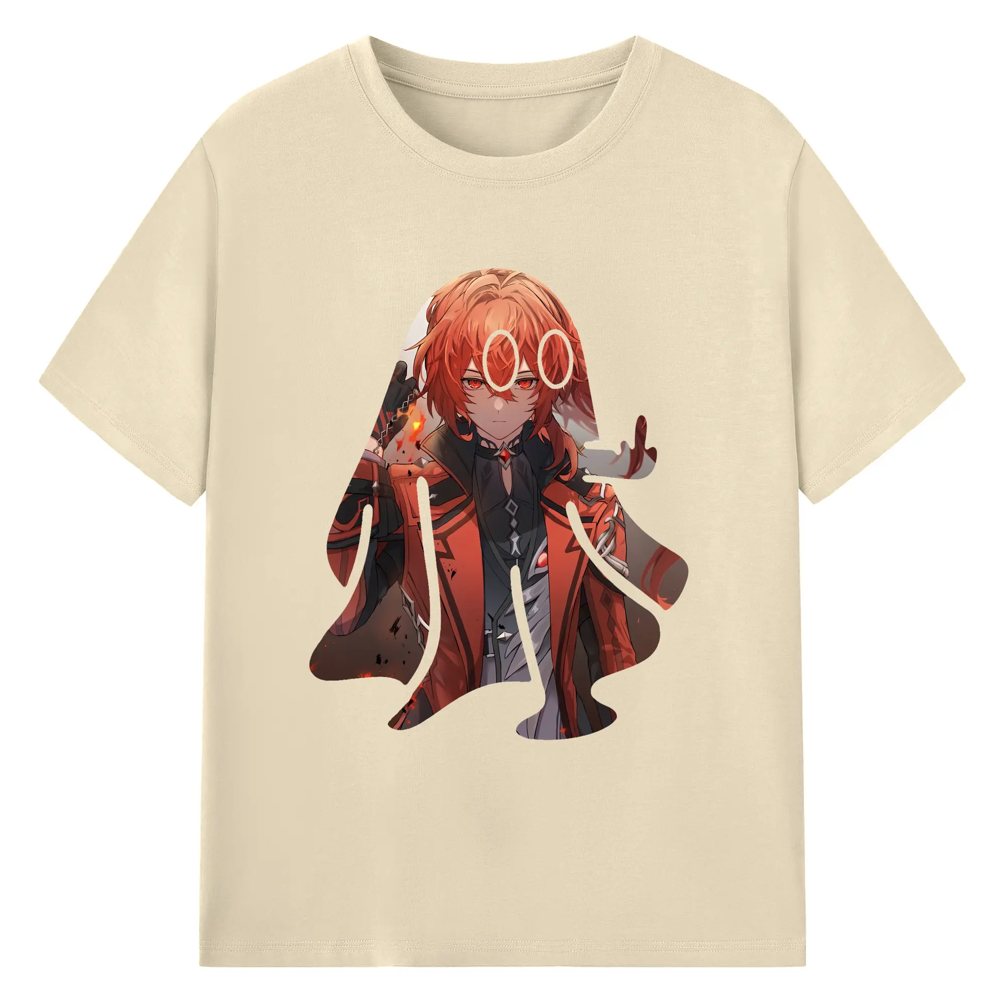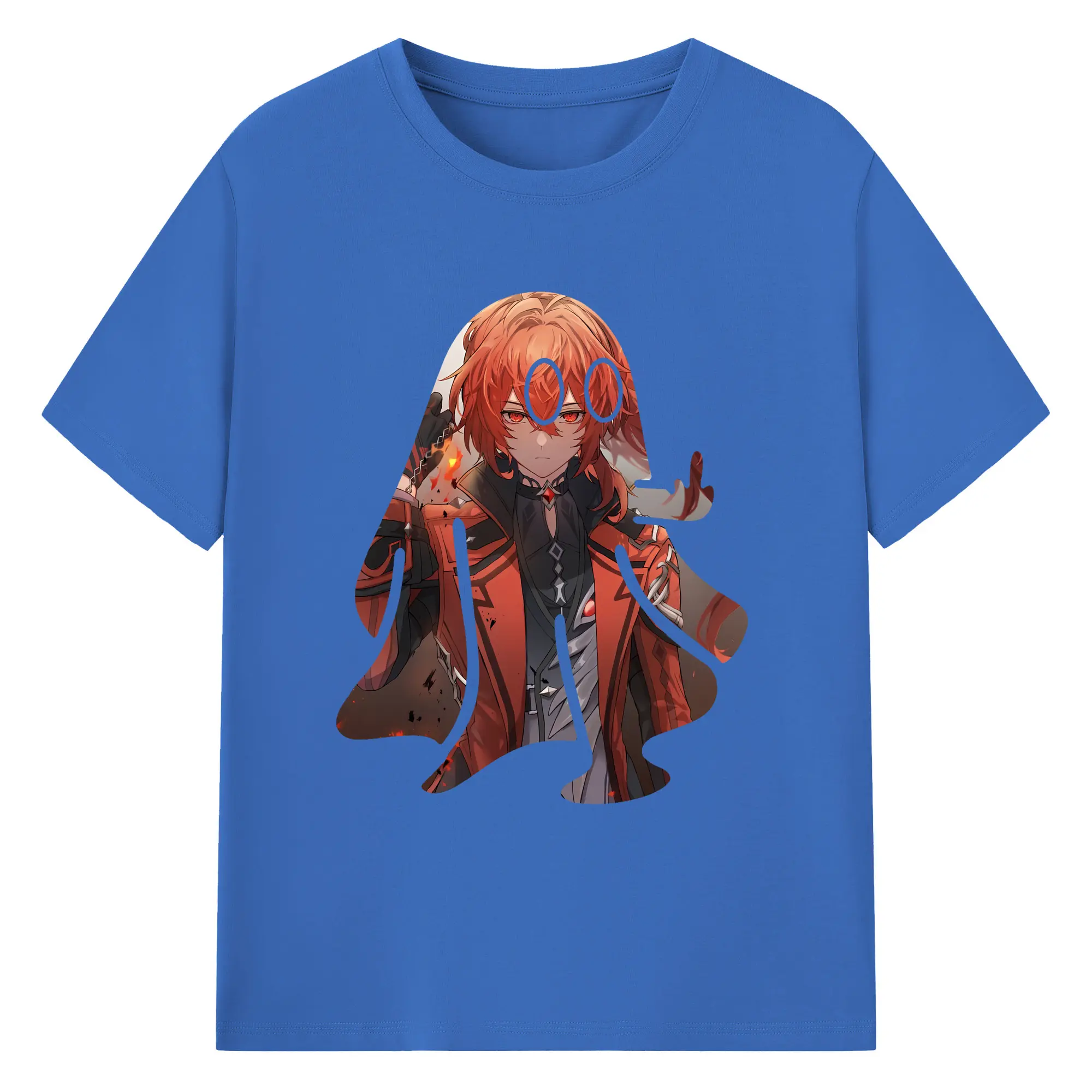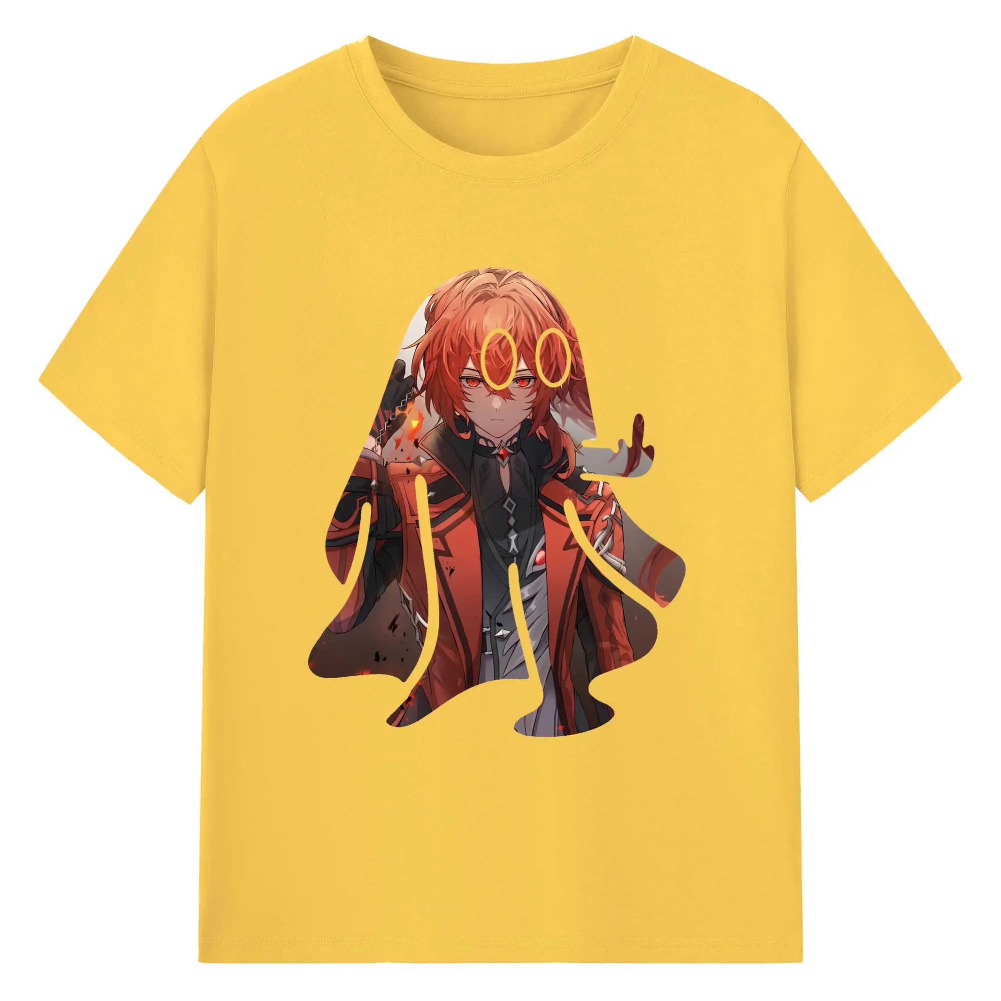 原 神 グッズ ディルック - 綿100% 半袖Tシャツ ・ バックプリント ・ 快適 通気性 ・ 日常使い 散歩 スポーツ用