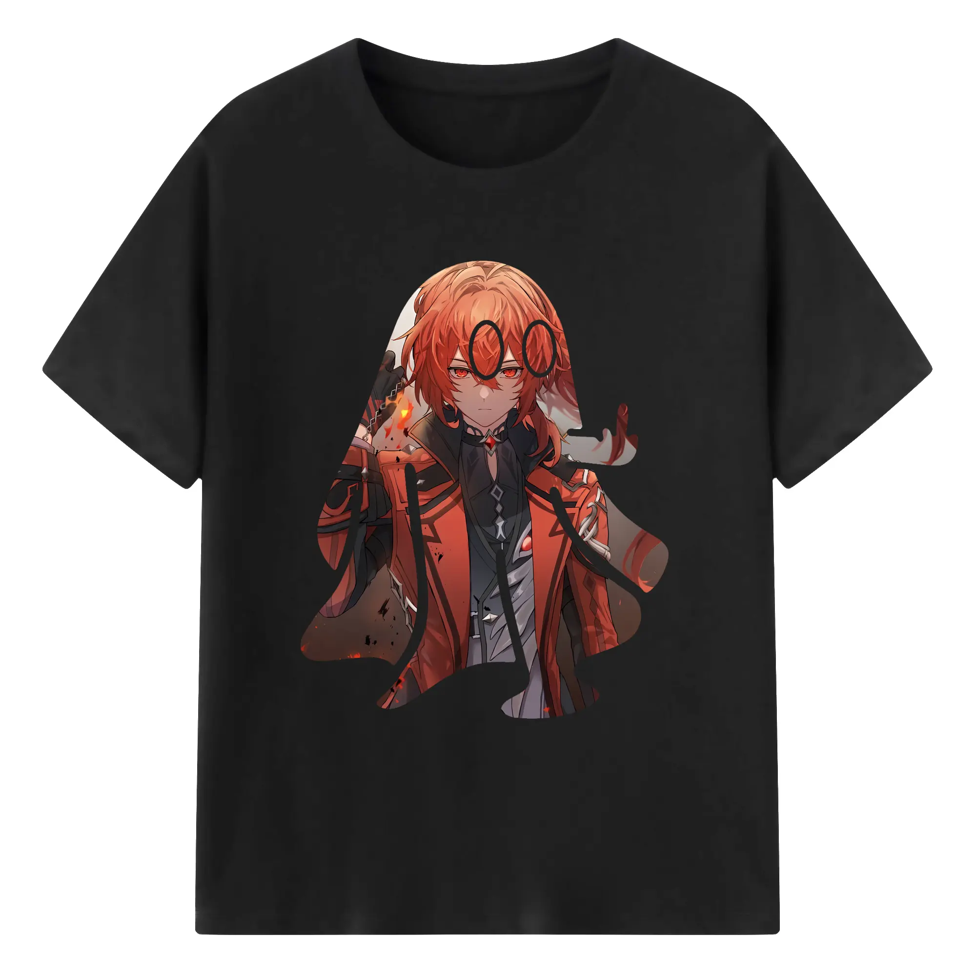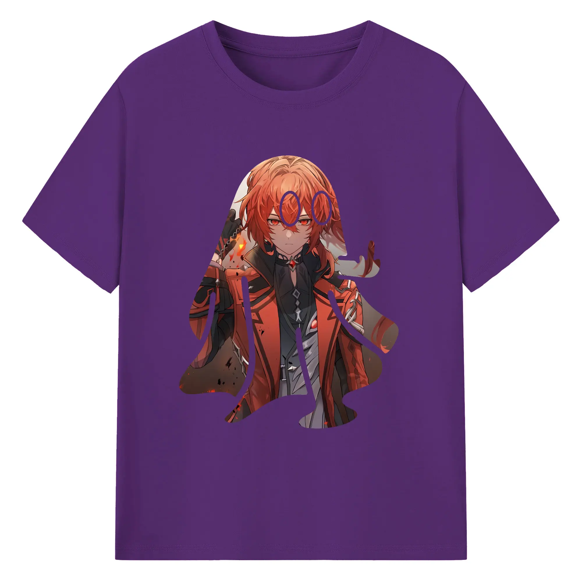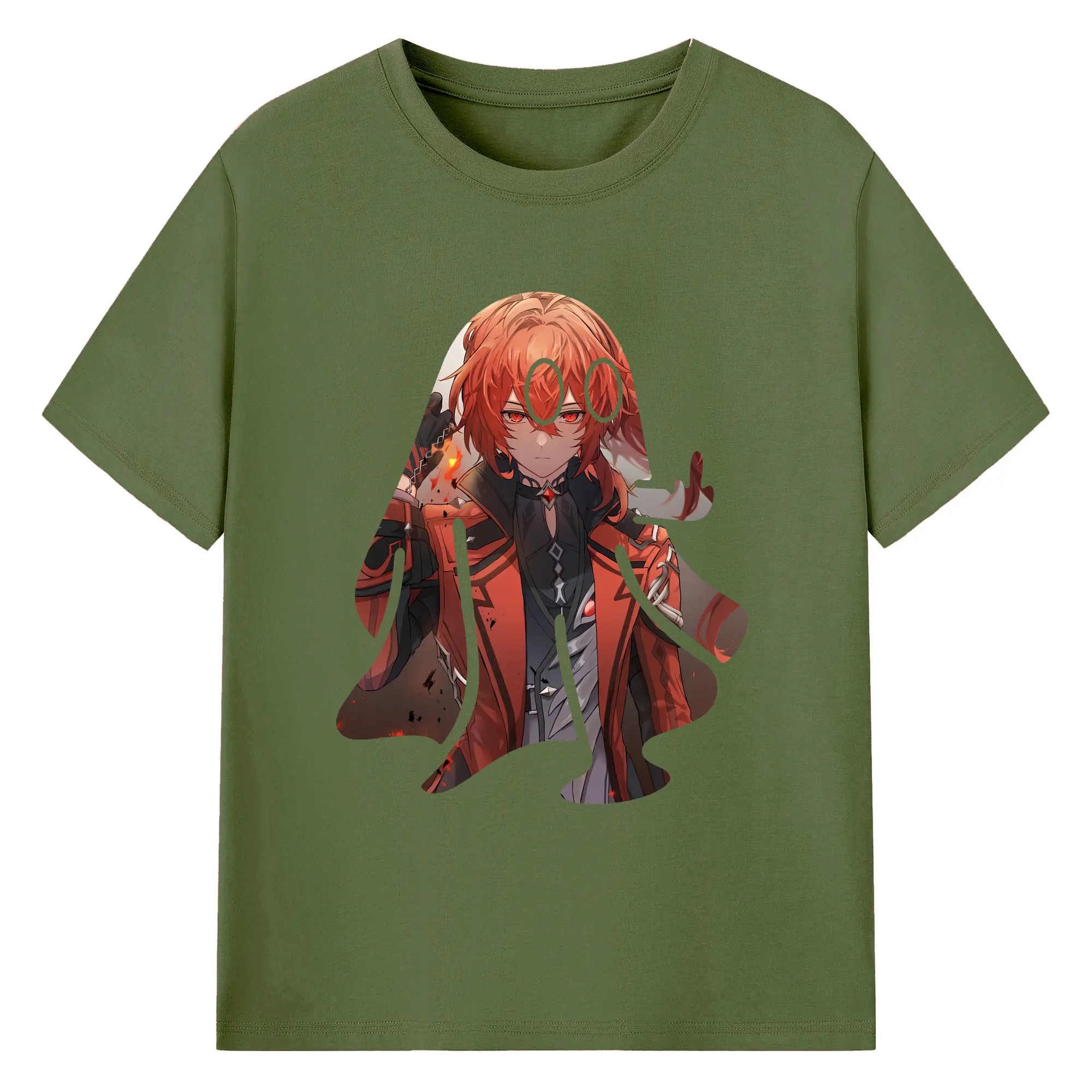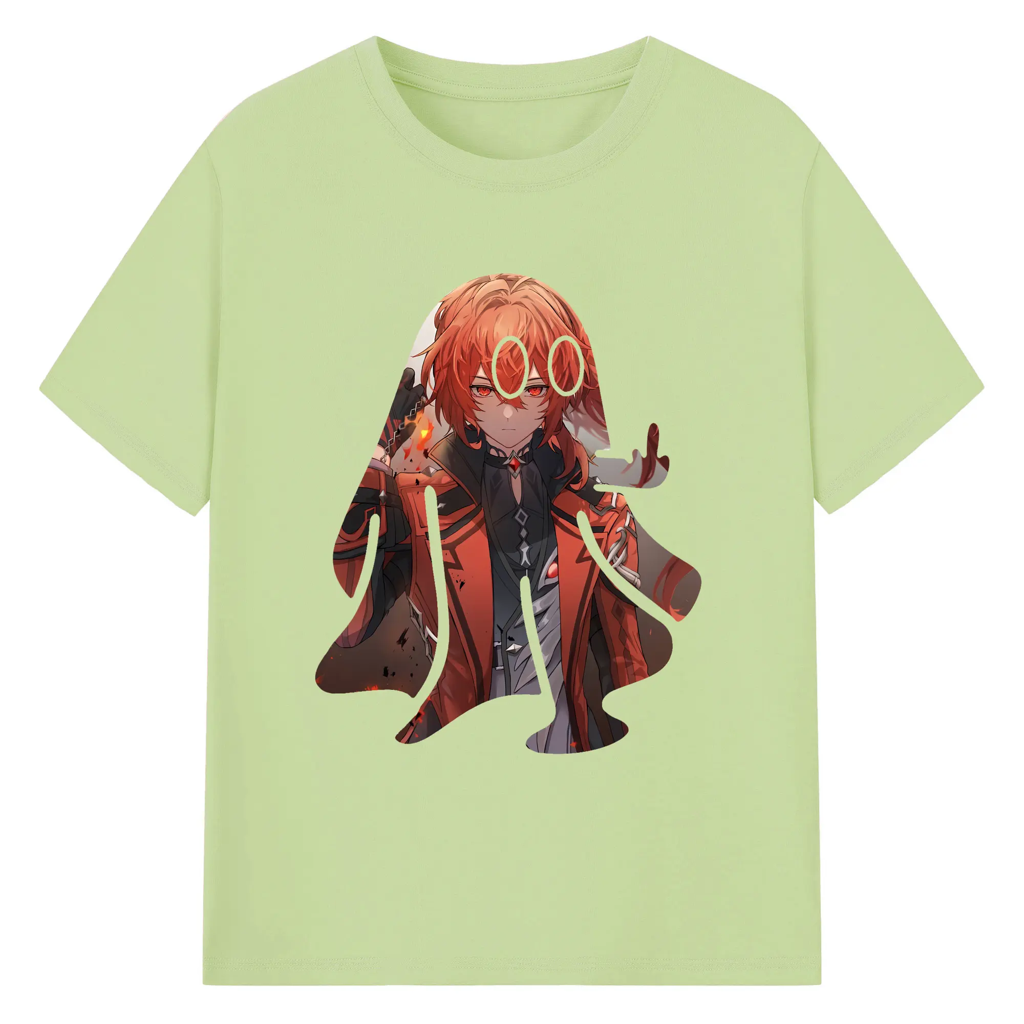 原 神 グッズ ディルック - 綿100% 半袖Tシャツ ・ バックプリント ・ 快適 通気性 ・ 日常使い 散歩 スポーツ用