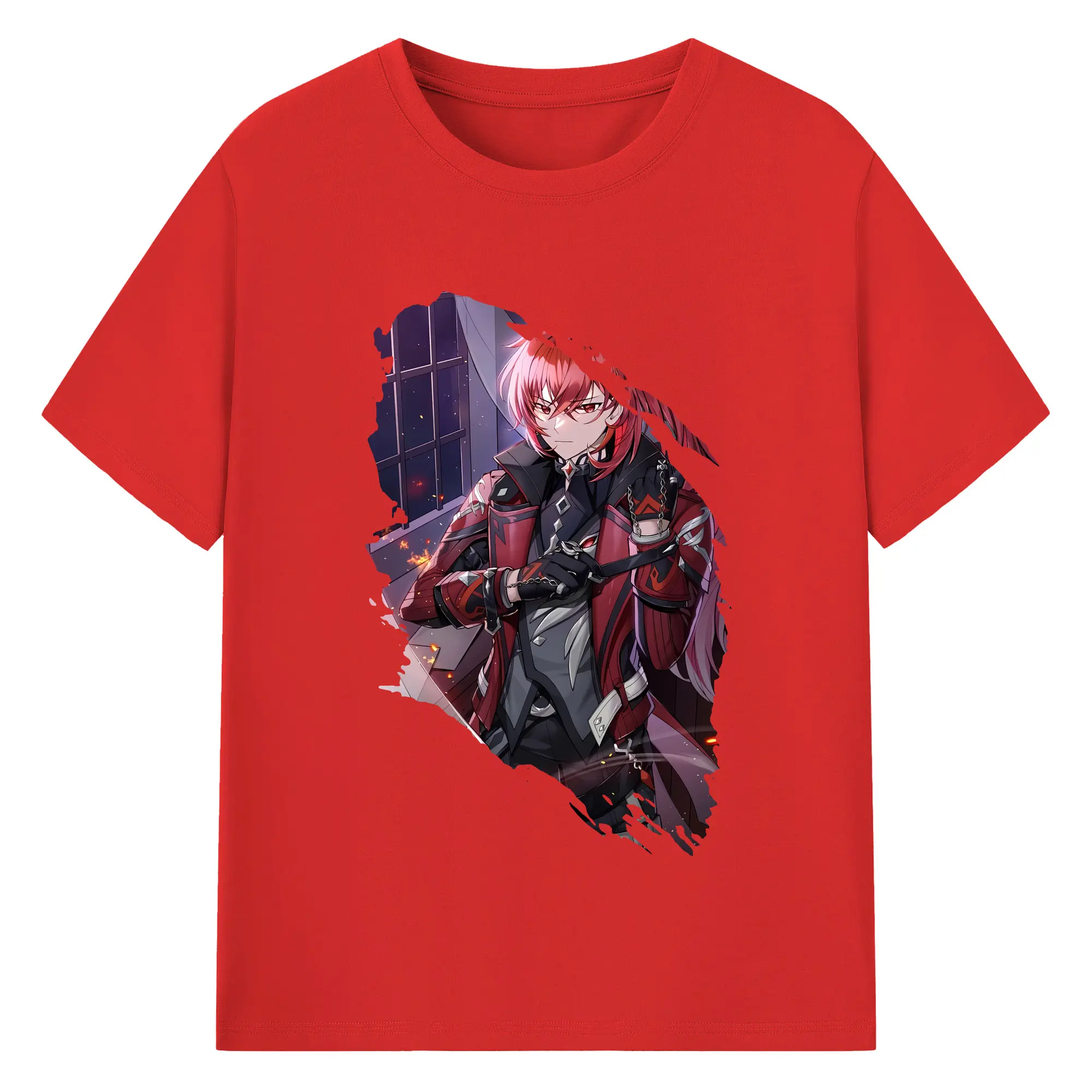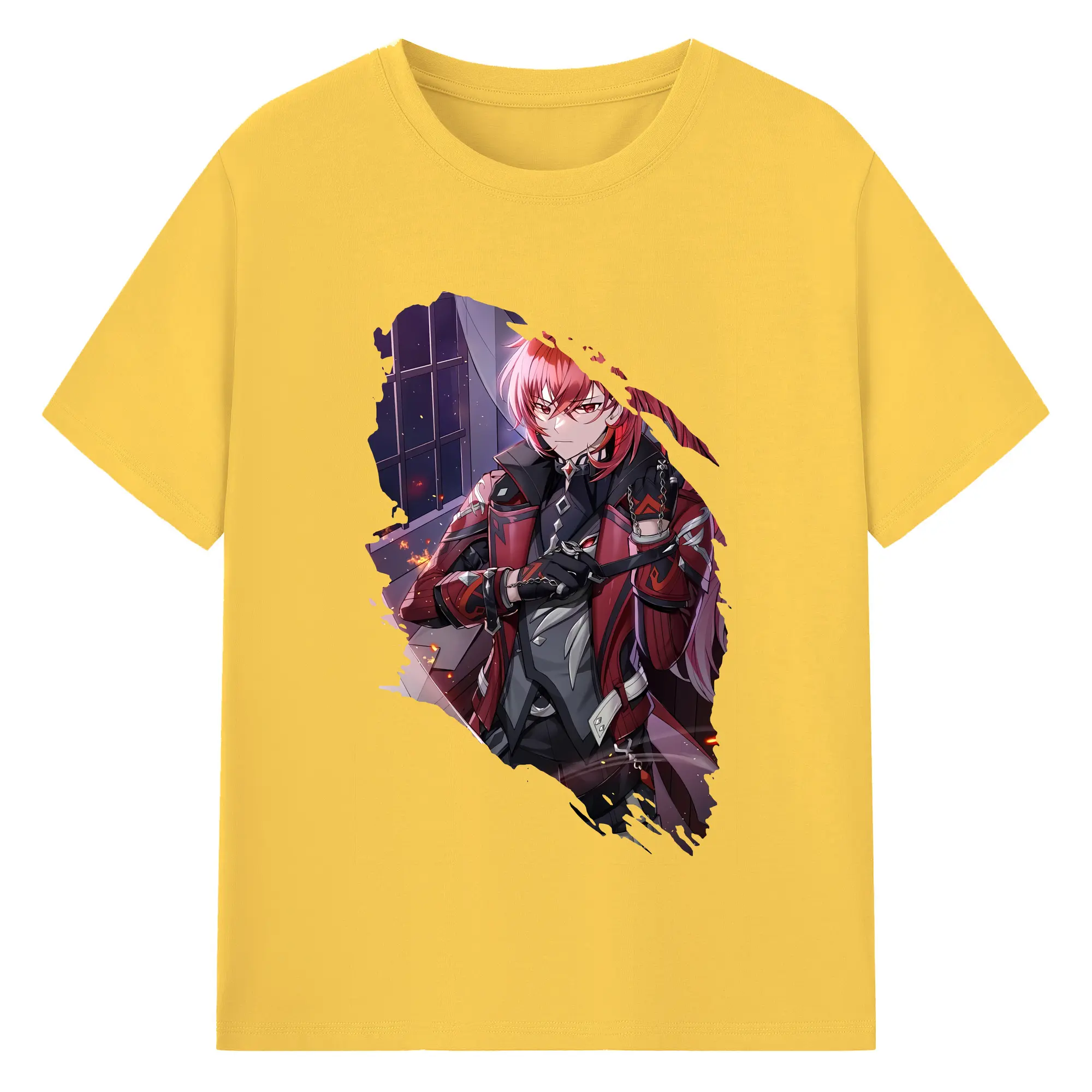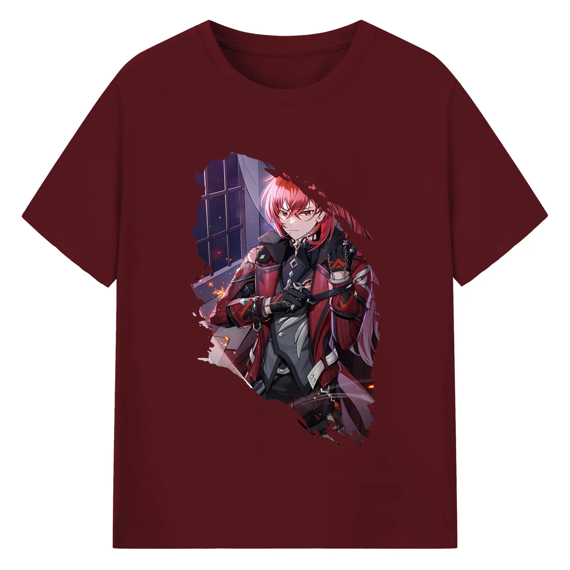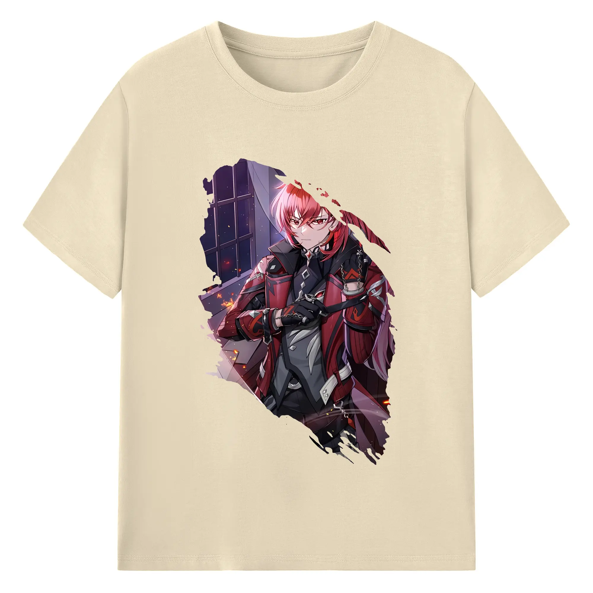 原 神 グッズ ディルック - 綿100% ヴィンテージ風 半袖Tシャツ ・ フロントプリント ・ 柔らか肌触り ・ 通気性 快適 ・ スポーツ カジュアル 外出用