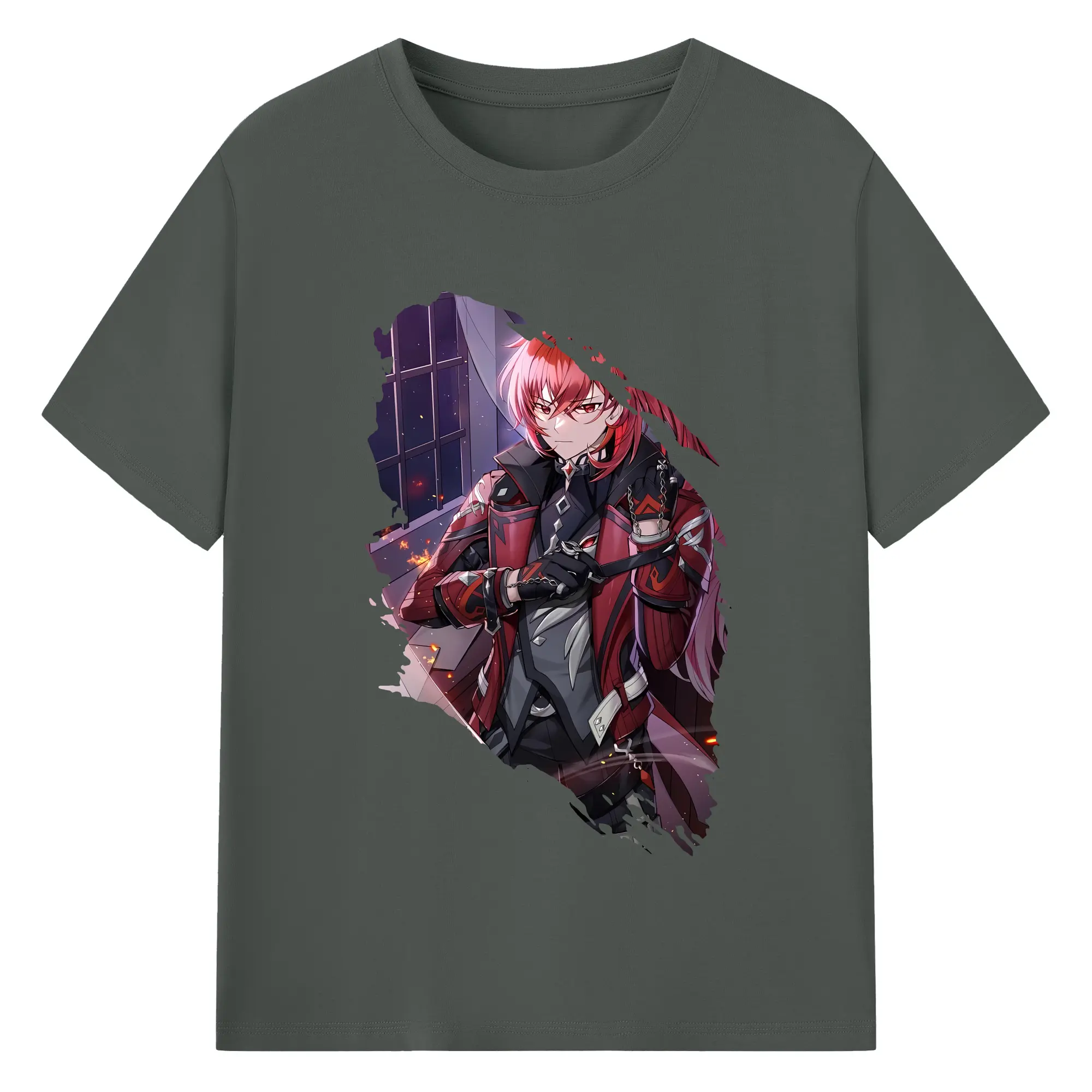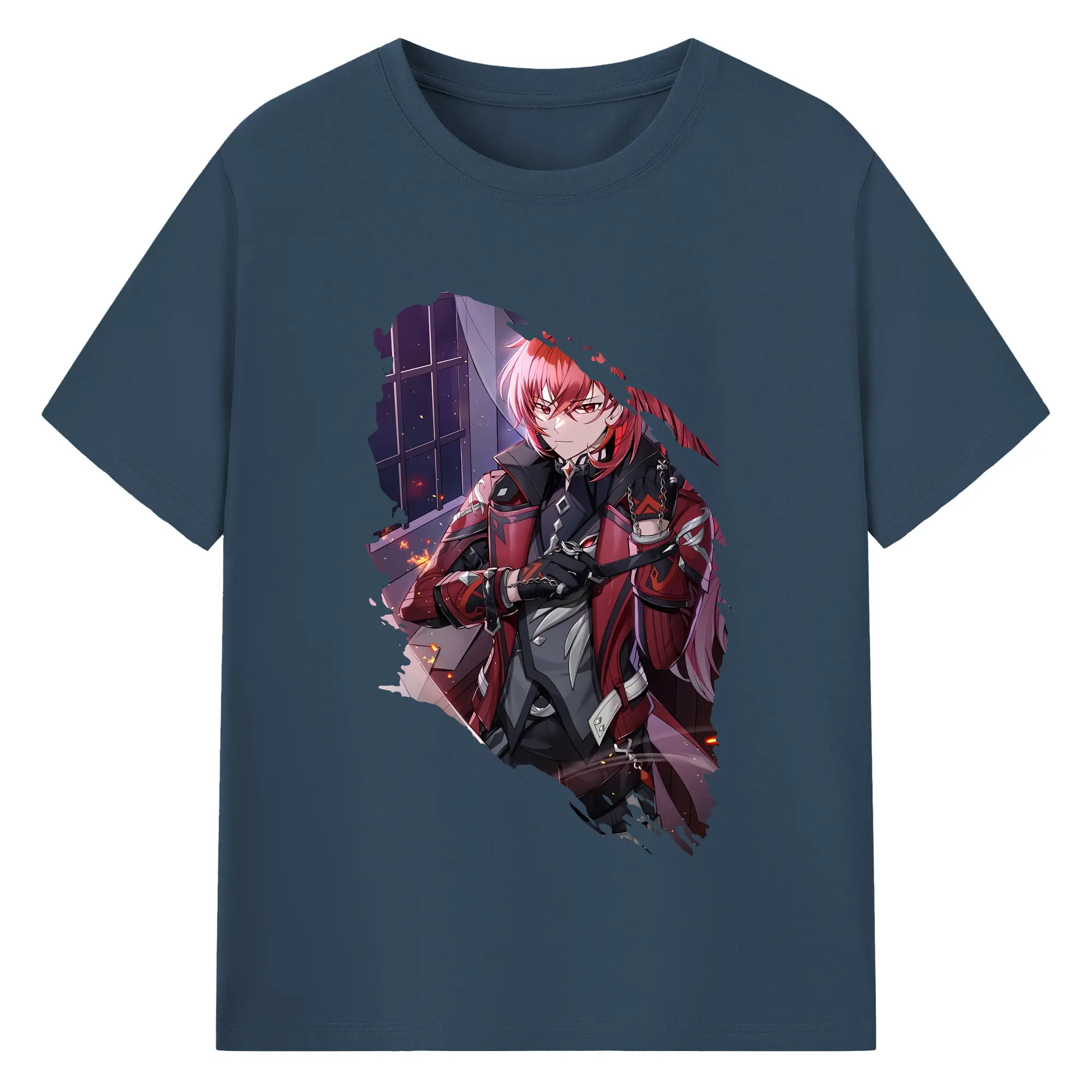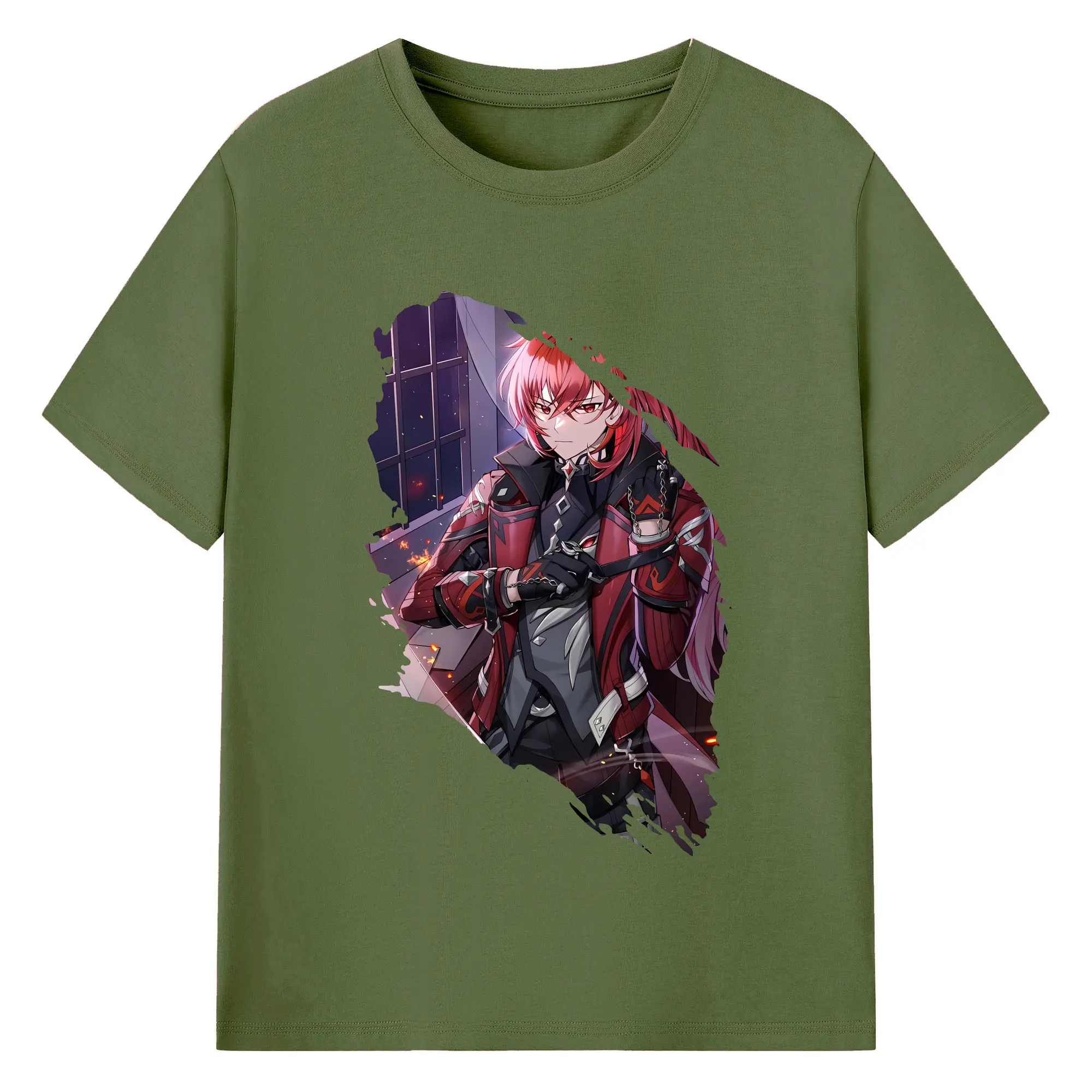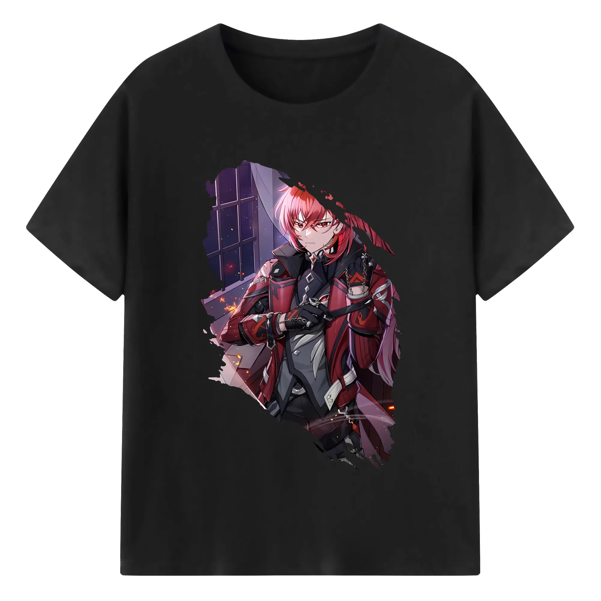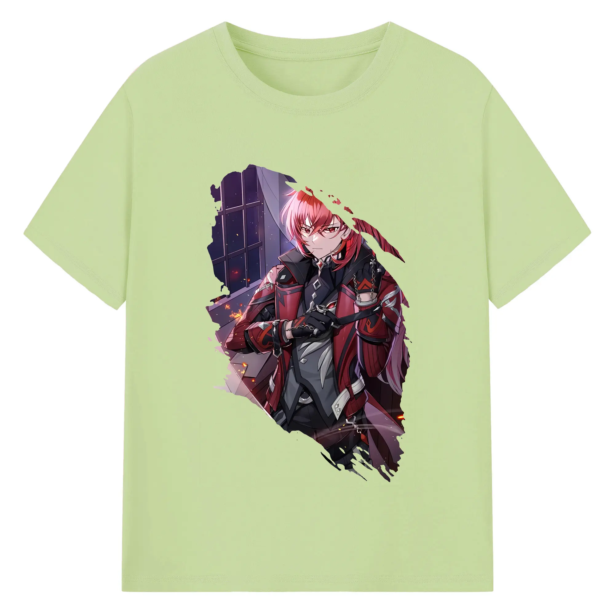 原 神 グッズ ディルック - 綿100% ヴィンテージ風 半袖Tシャツ ・ フロントプリント ・ 柔らか肌触り ・ 通気性 快適 ・ スポーツ カジュアル 外出用