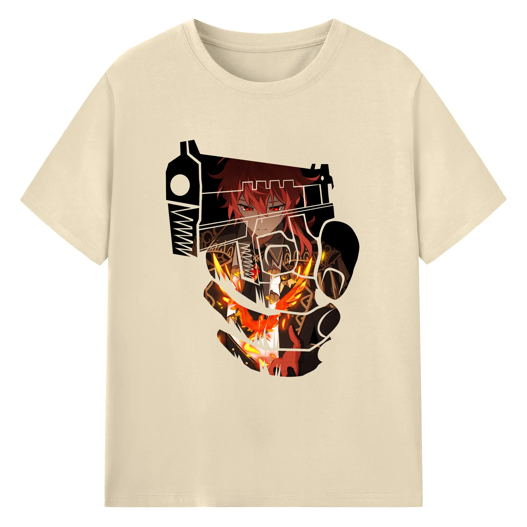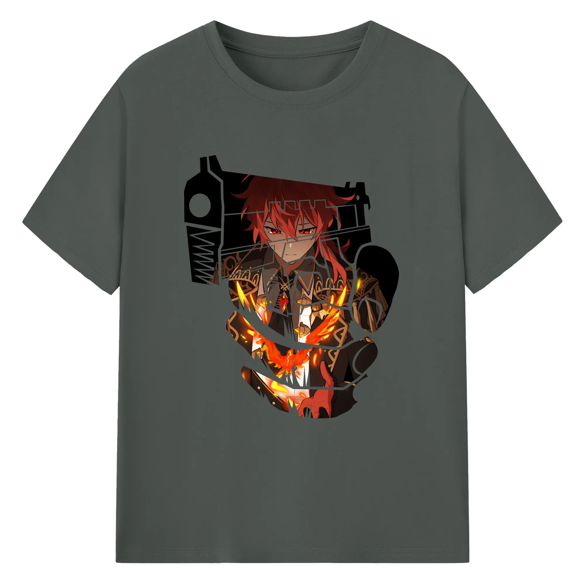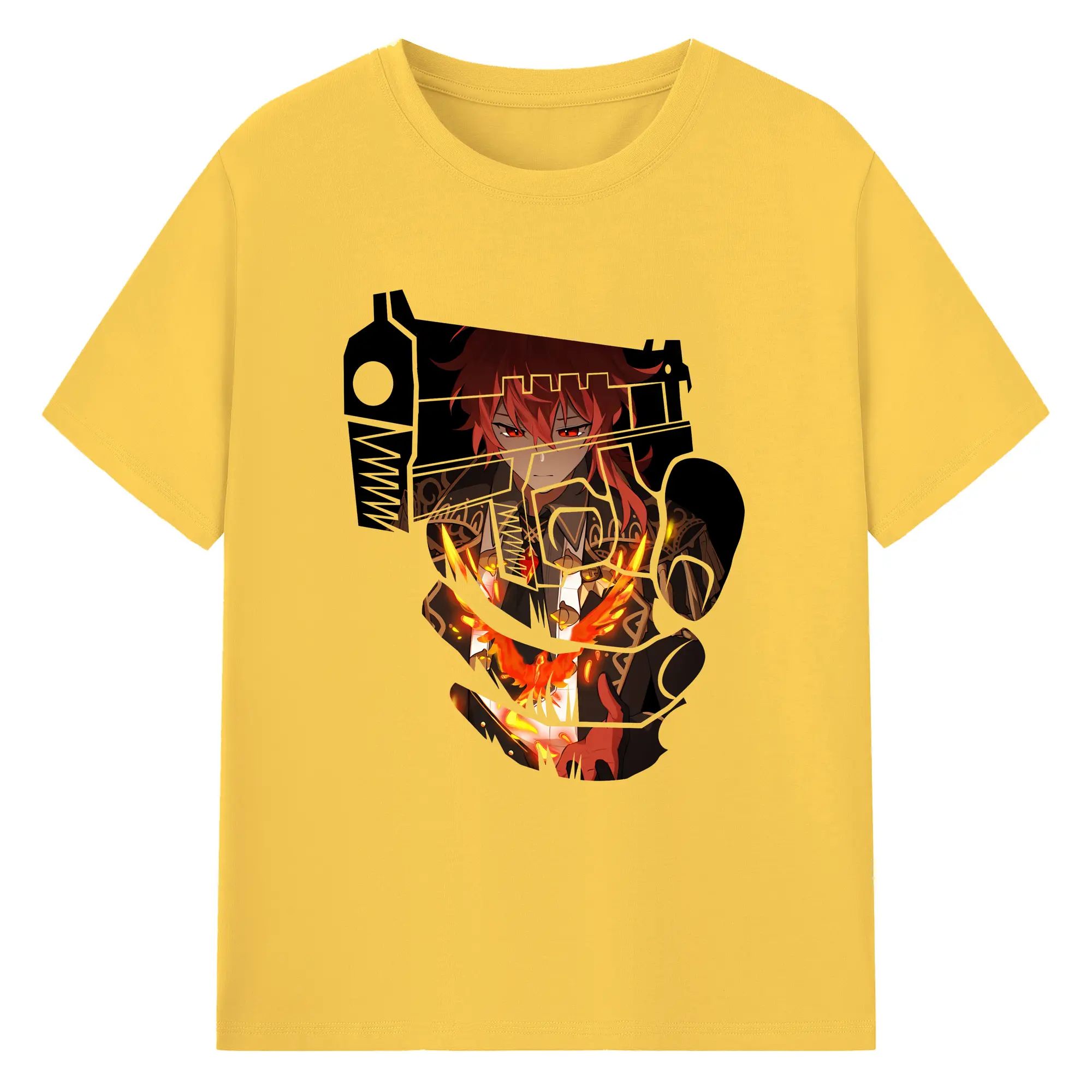 原 神 グッズ ディルック - 綿100% ヴィンテージ風 半袖Tシャツ ・ フロントプリント ・ 柔らか肌触り ・ 通気性 快適 ・ スポーツ カジュアル 外出用