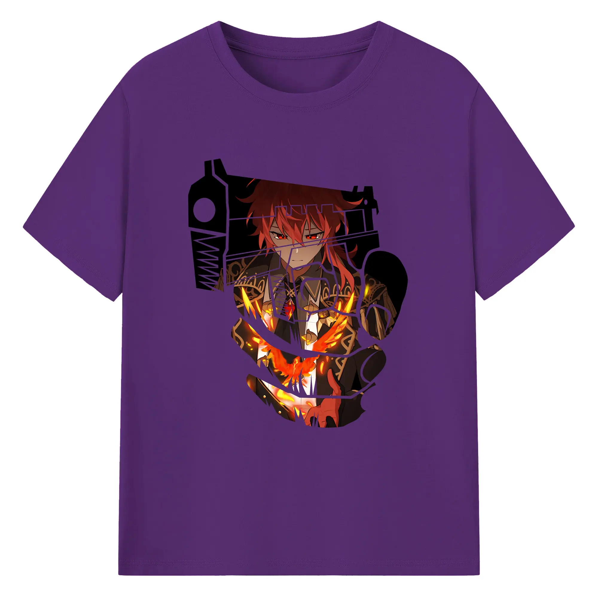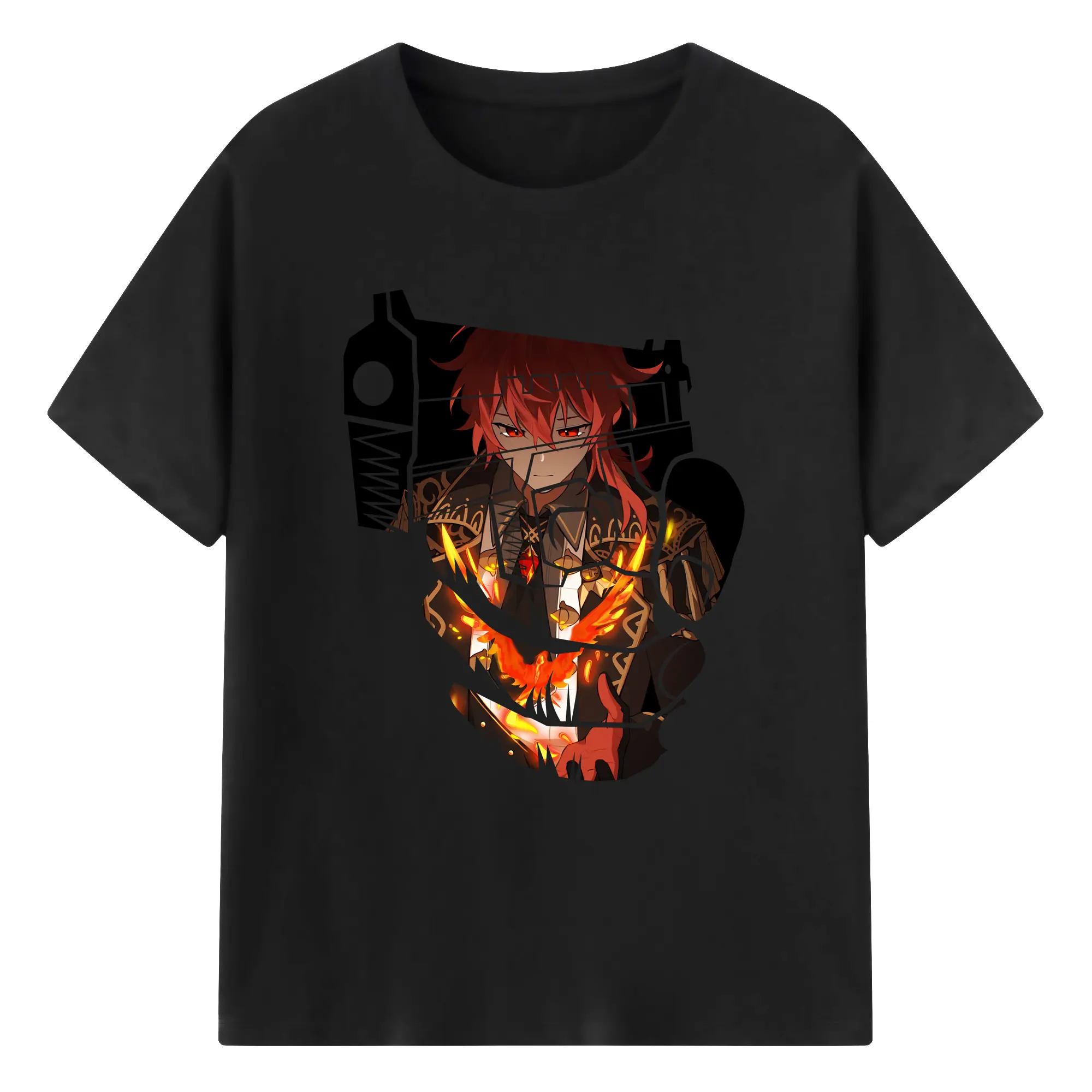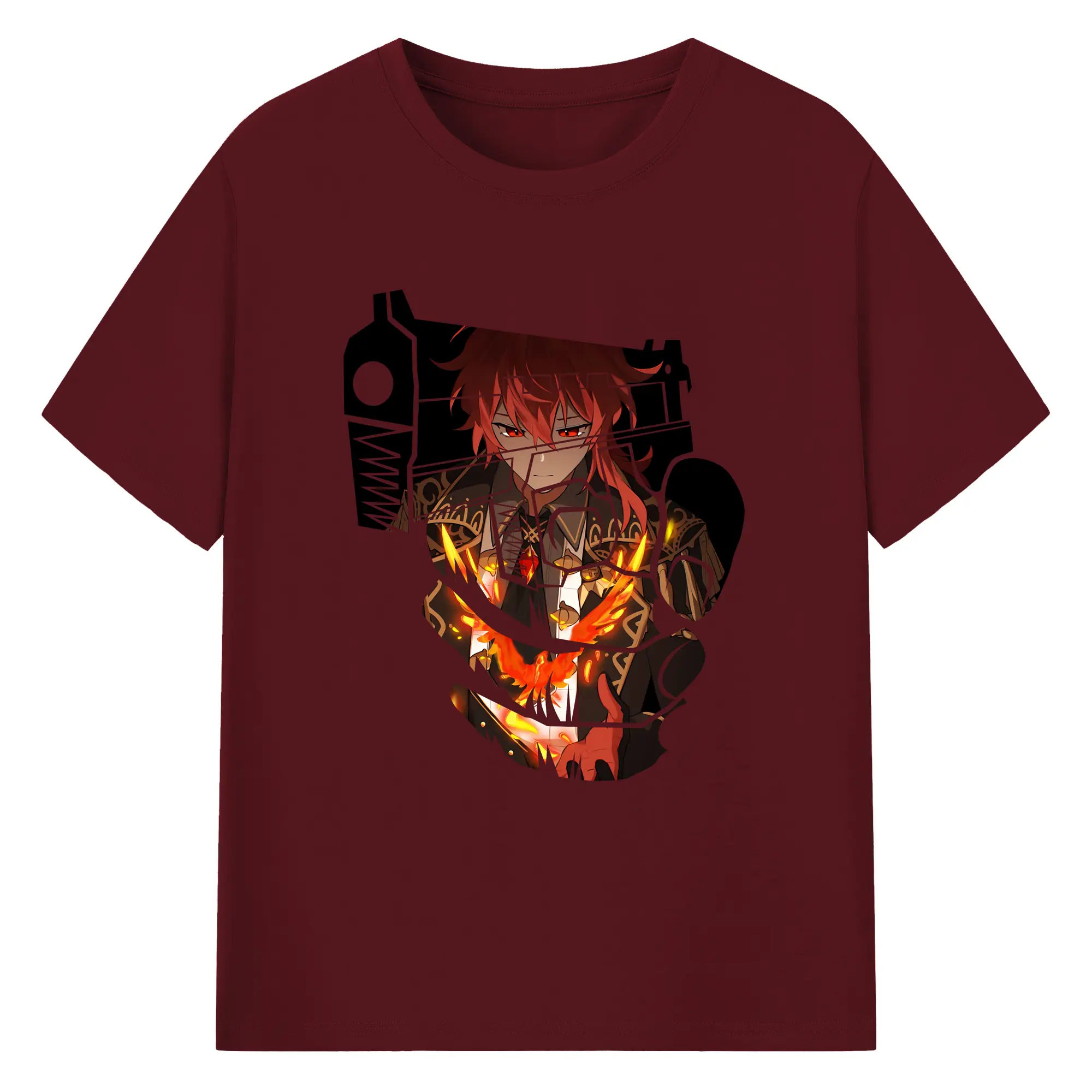 原 神 グッズ ディルック - 綿100% 半袖Tシャツ ・ バックプリント ・ 快適 通気性 ・ 日常使い 散歩 スポーツ用
