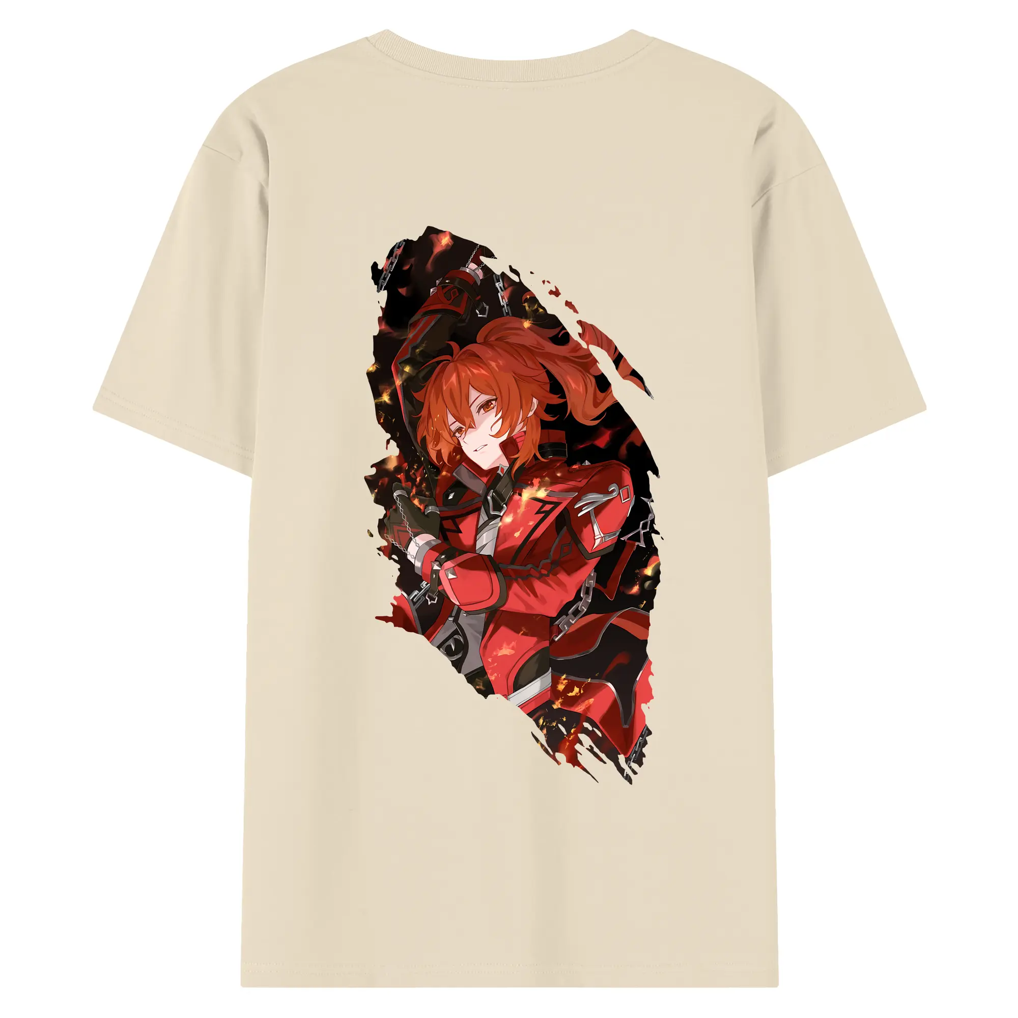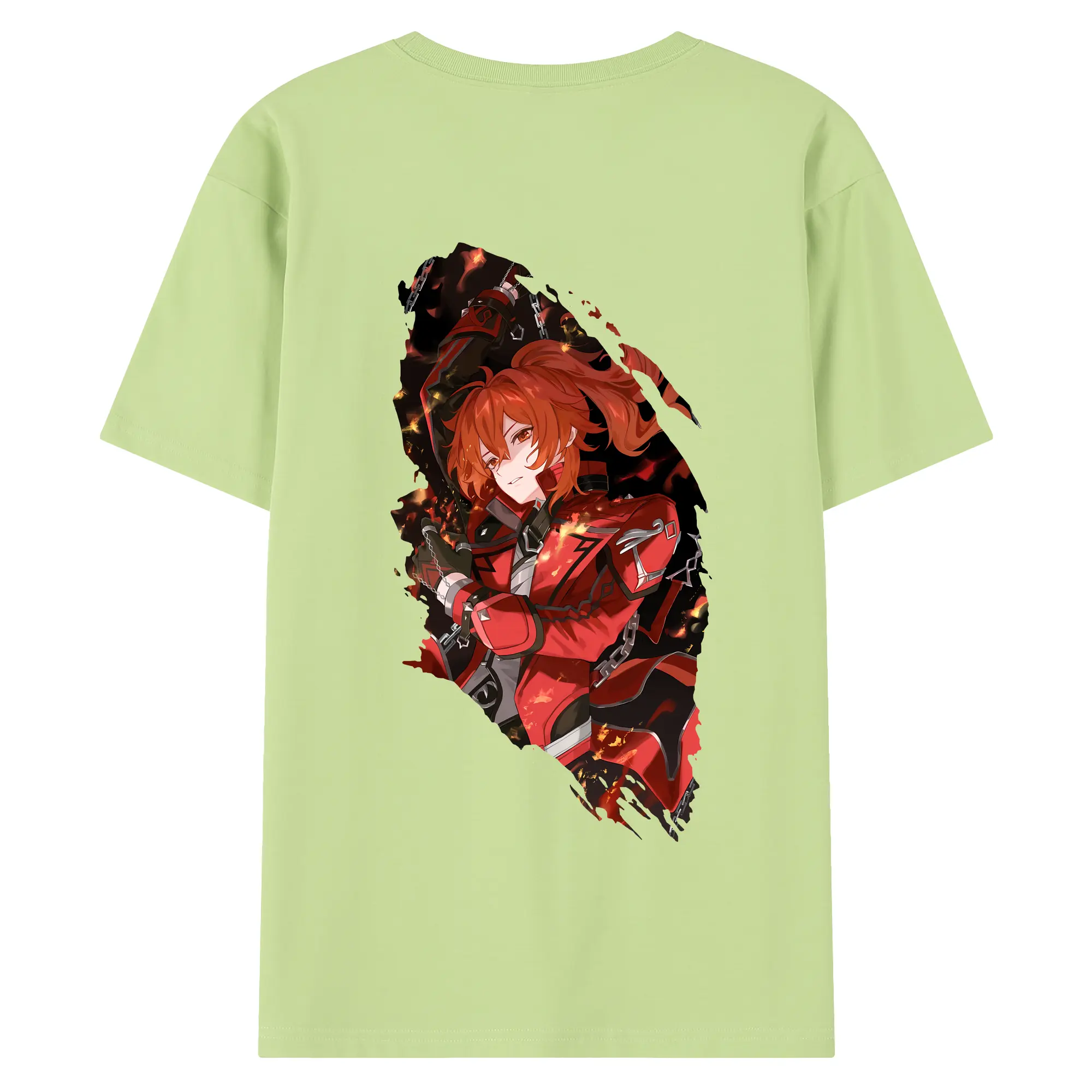 原 神 グッズ ディルック - 綿100% ヴィンテージ風 半袖Tシャツ ・ 背面プリント ・ 柔らか肌触り ・ 通気性 快適 ・ スポーツ カジュアル 外出用