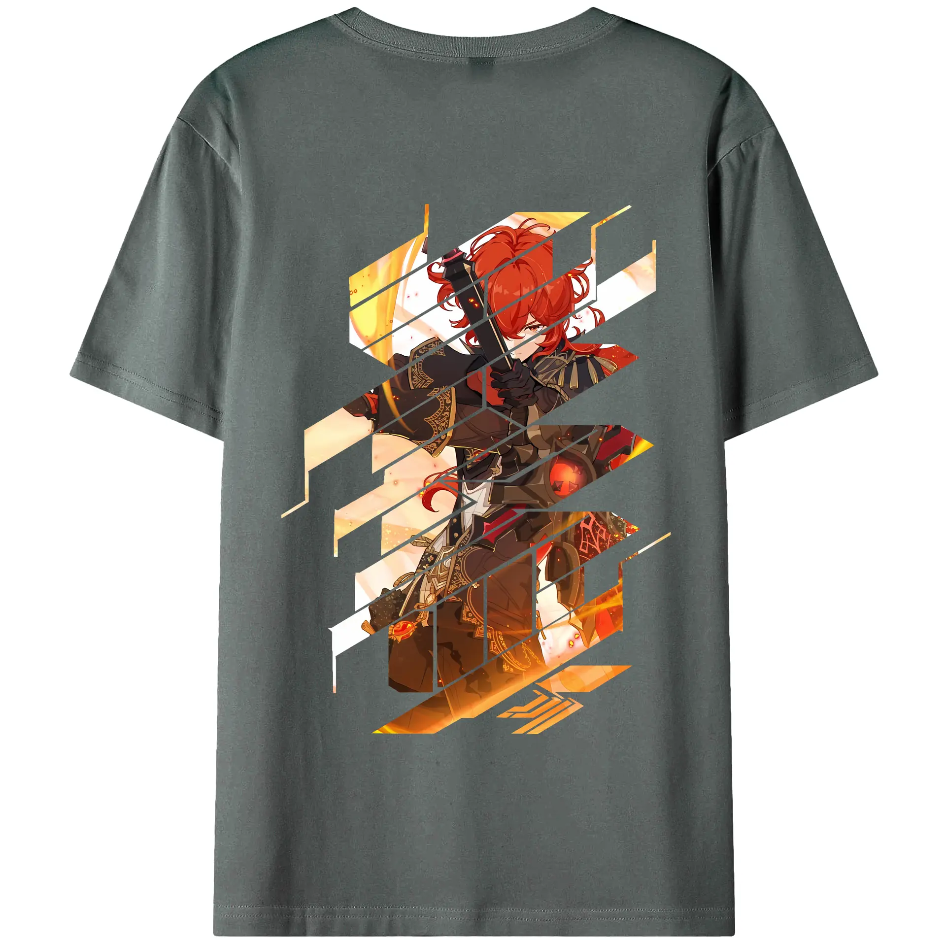 原 神 グッズ ディルック - 綿100% ヴィンテージ風 半袖Tシャツ ・ 背面プリント ・ 柔らか肌触り ・ 通気性 快適 ・ スポーツ カジュアル 外出用