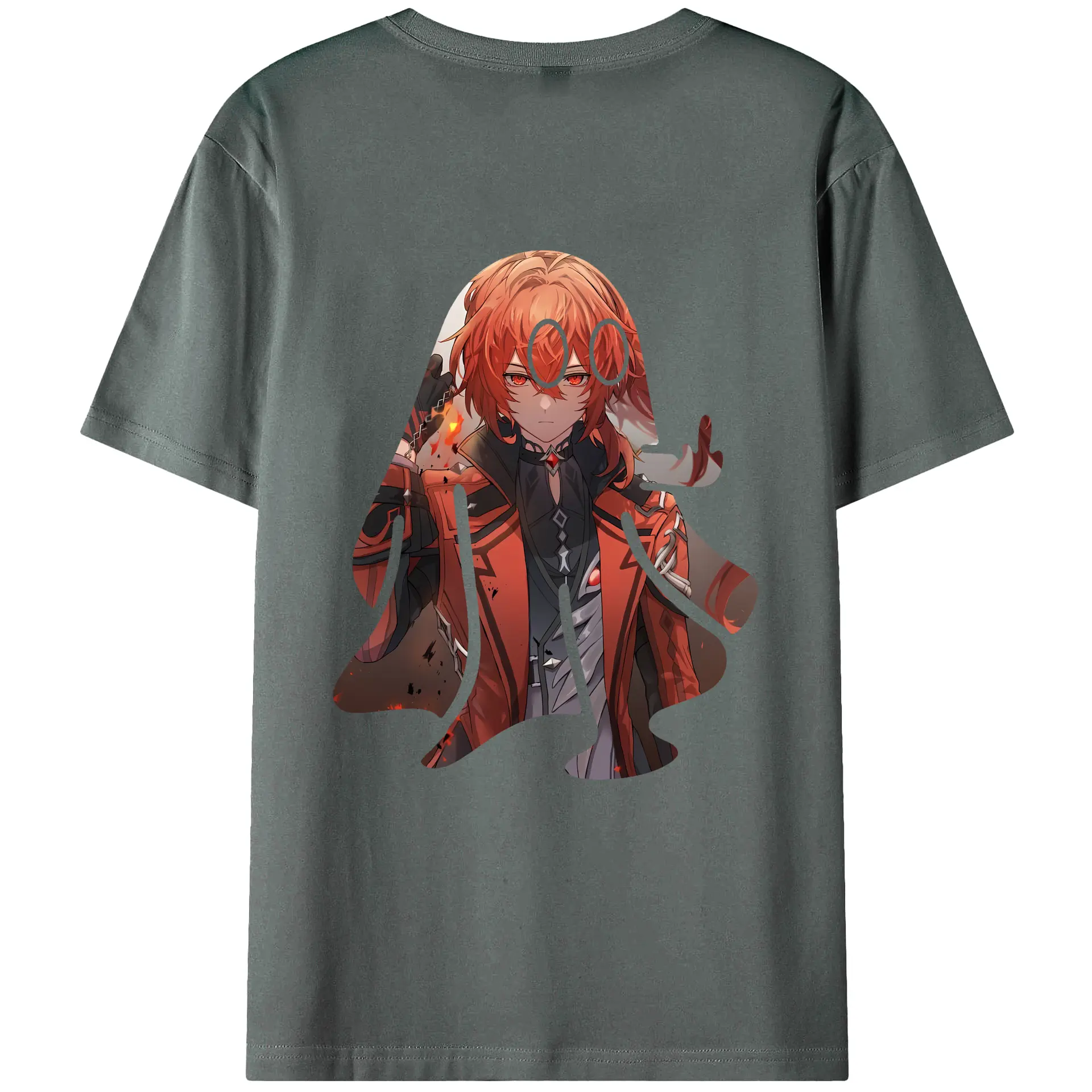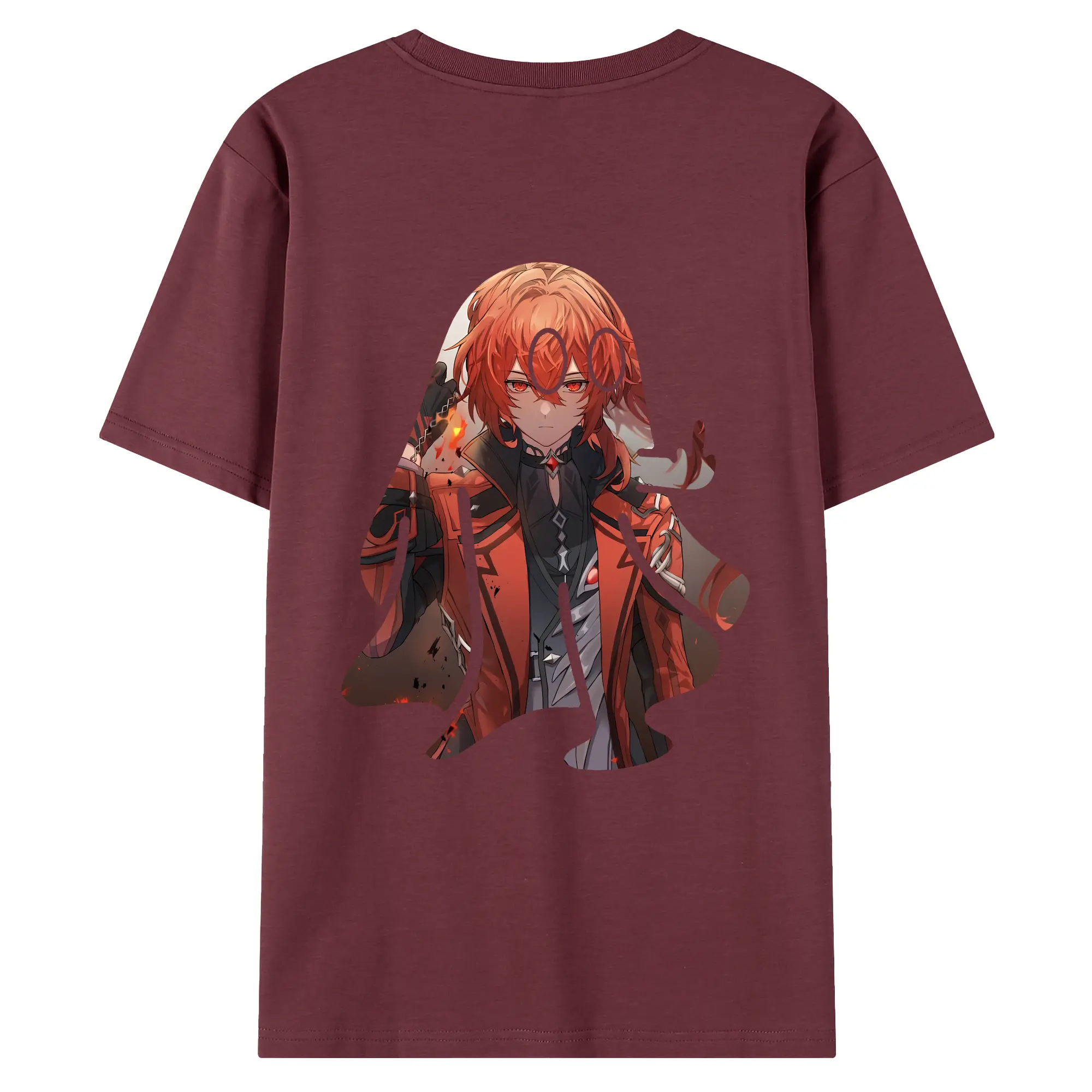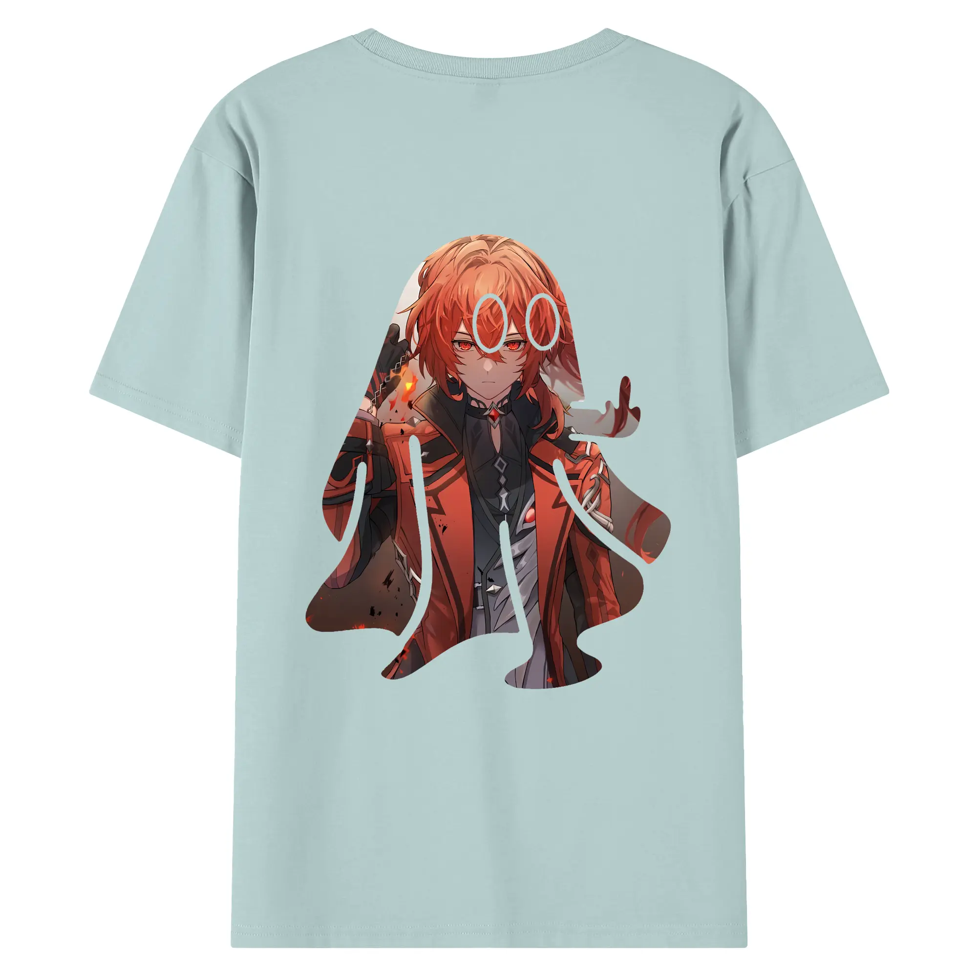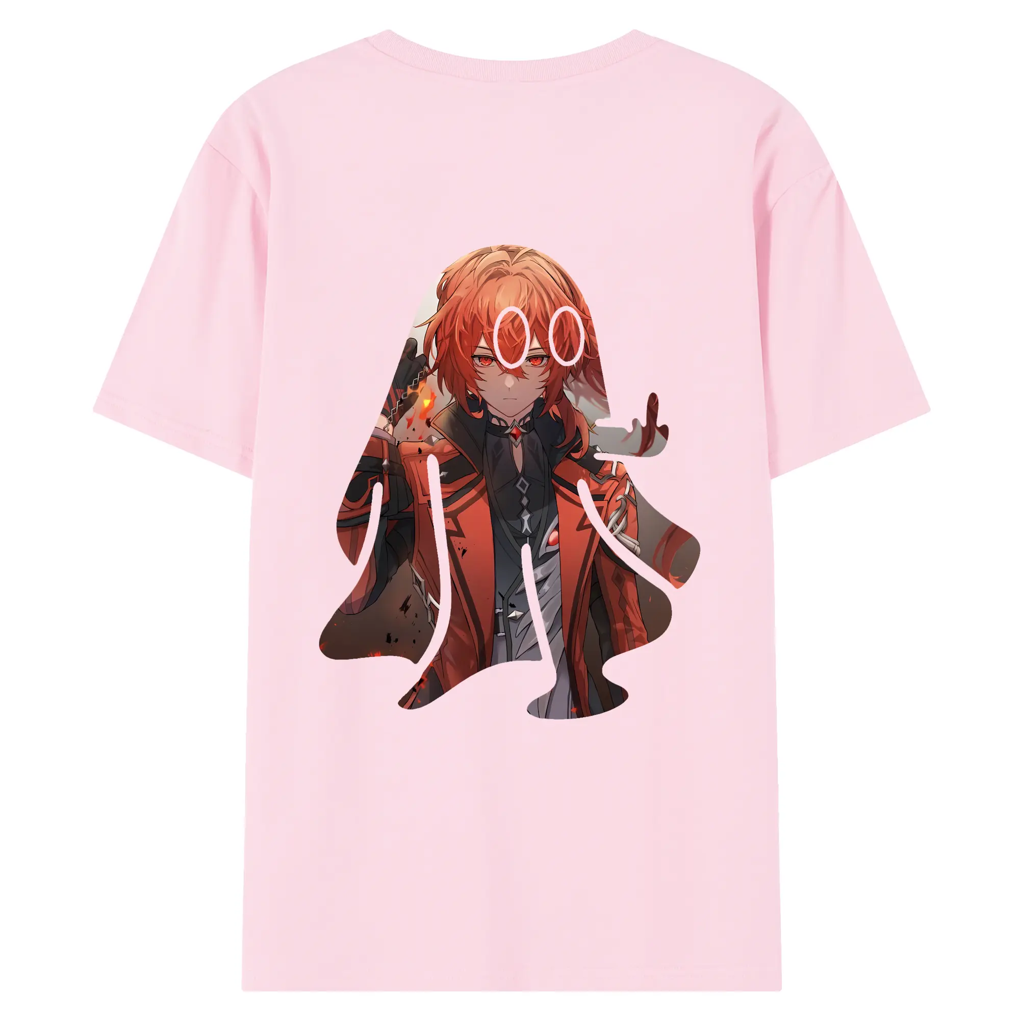 原 神 グッズ ディルック - 綿100% 半袖Tシャツ ・ フロントプリント ・ 快適 通気性 ・ 日常使い 散歩 スポーツ用
