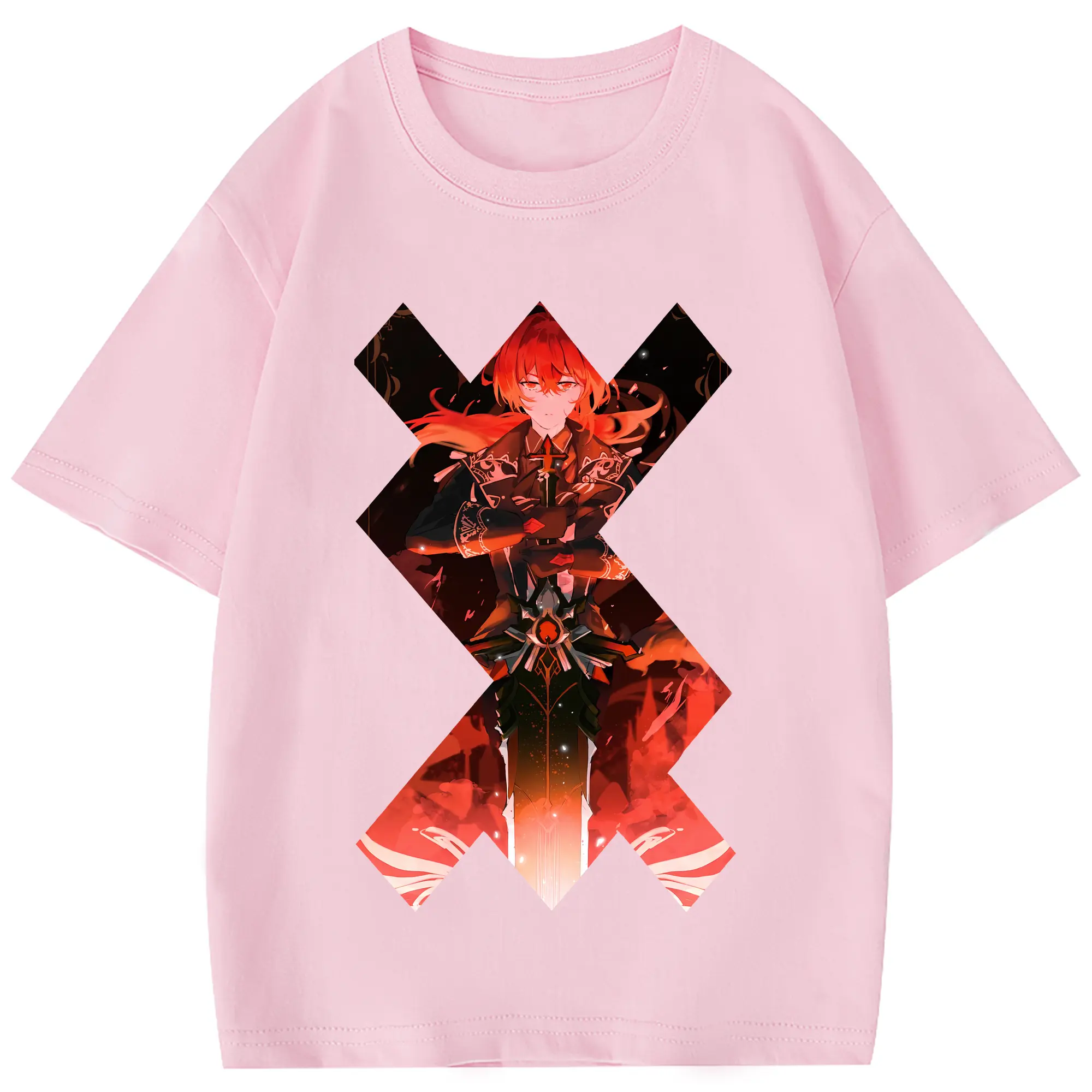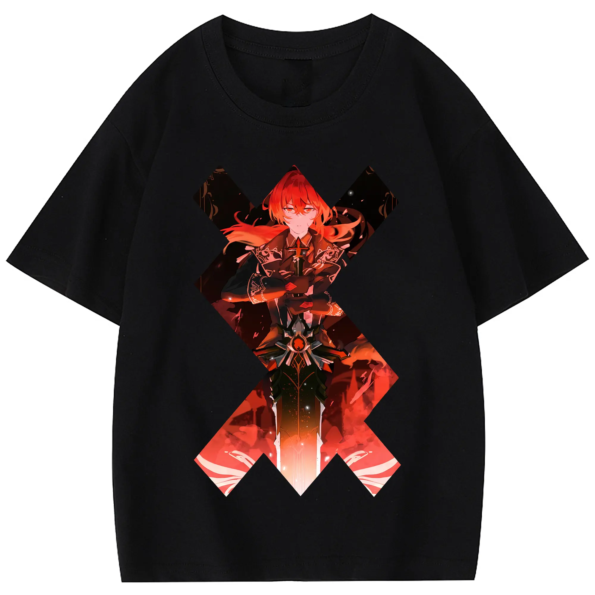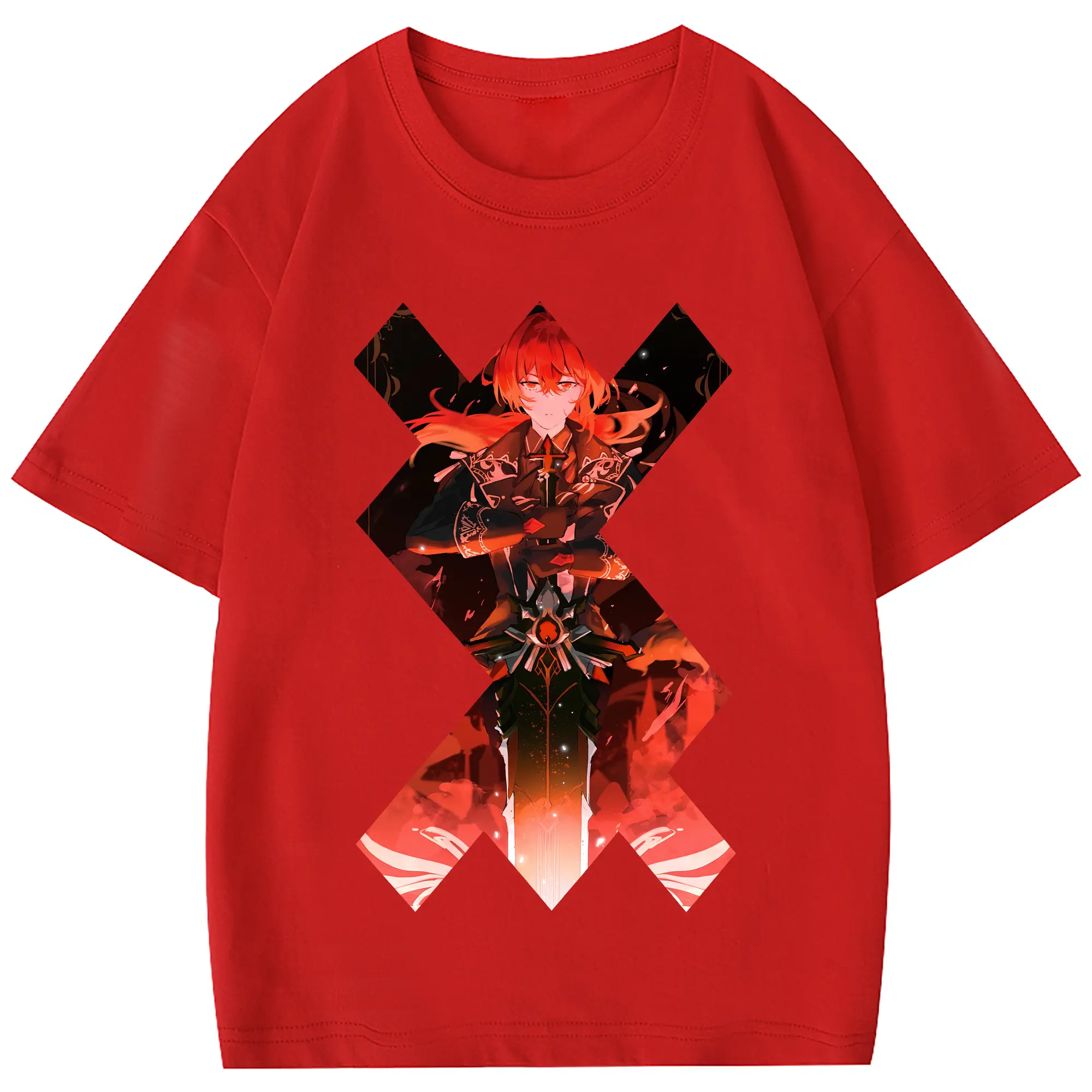 原 神 グッズ ディルック - 綿100% 半袖Tシャツ ・ フロントプリント ・ 快適 通気性 ・ 日常使い 散歩 スポーツ用