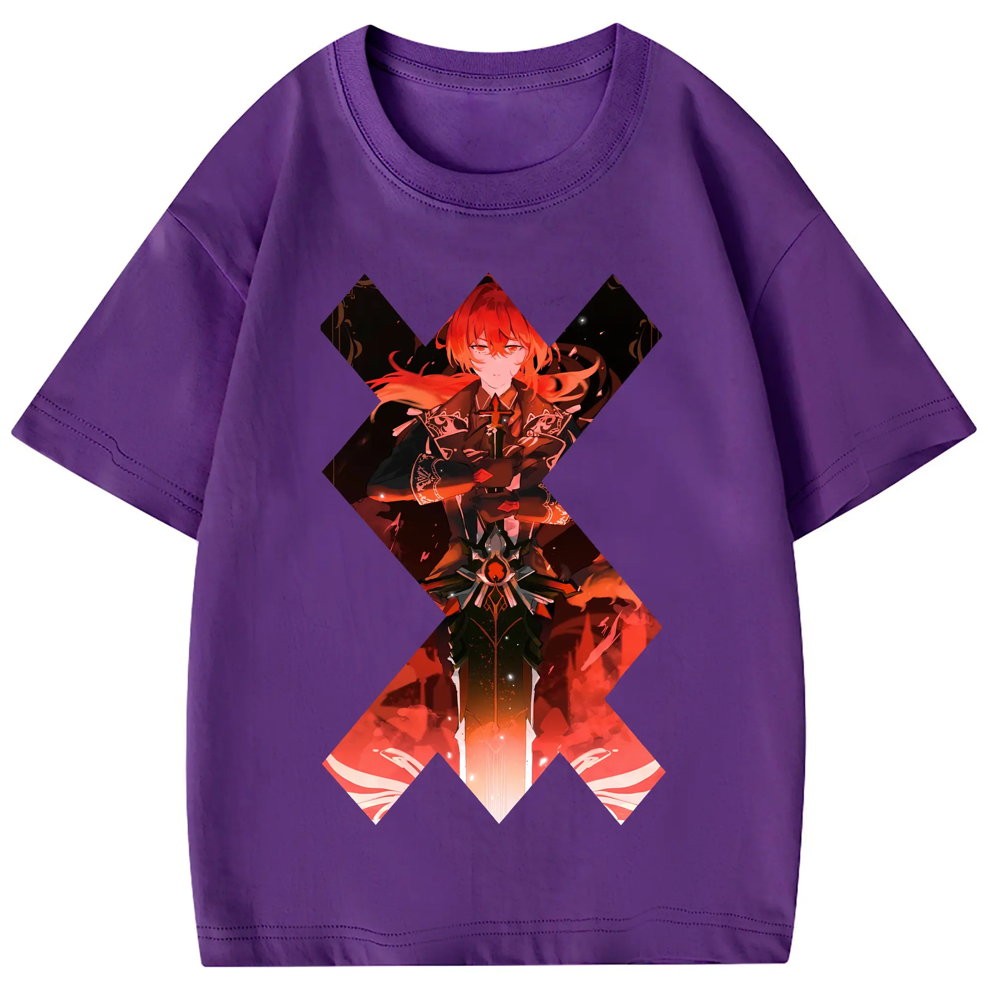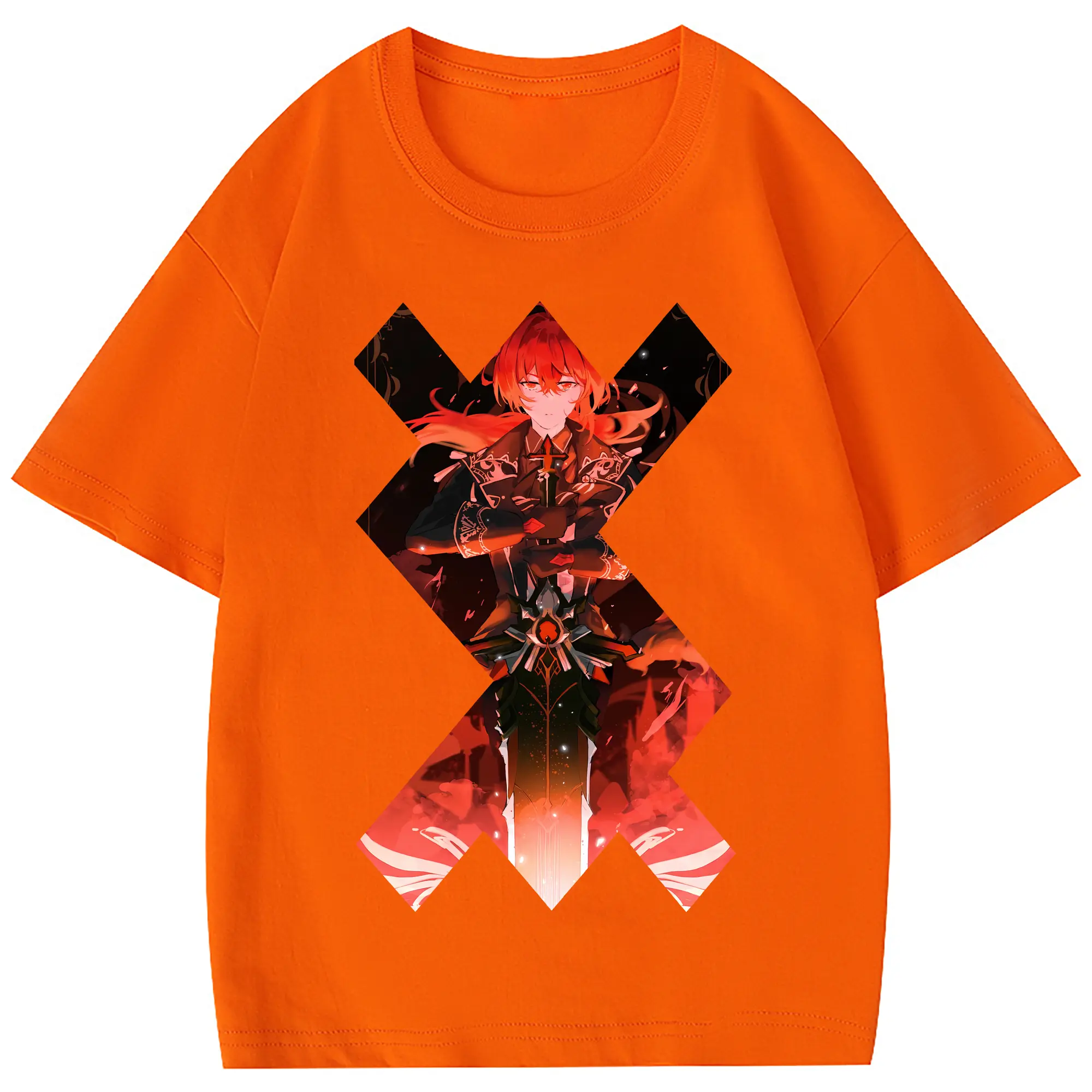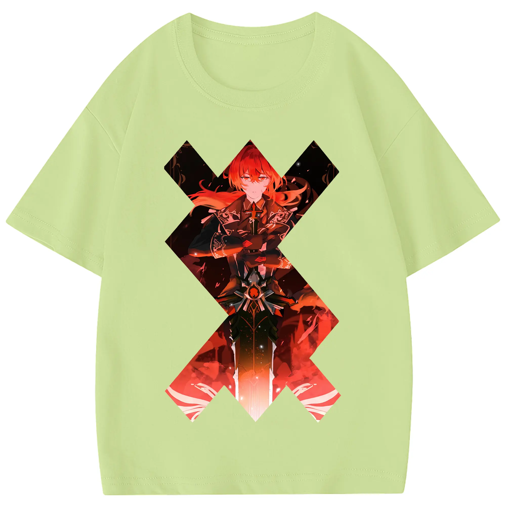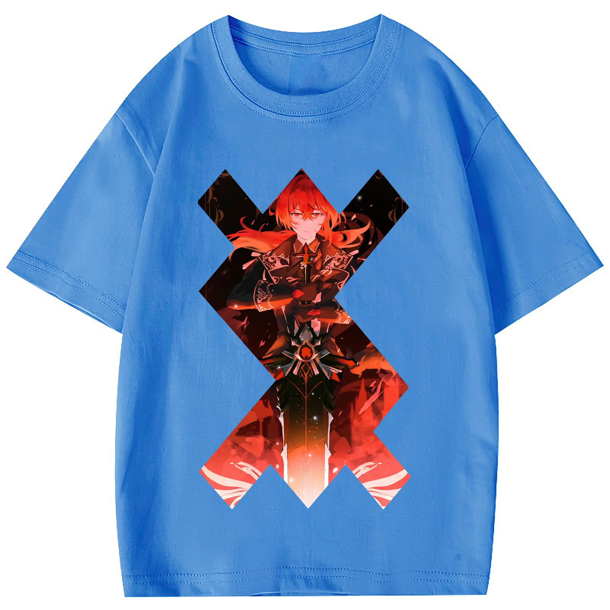 原 神 グッズ ディルック - 綿100% 半袖Tシャツ ・ フロントプリント ・ 快適 通気性 ・ 日常使い 散歩 スポーツ用