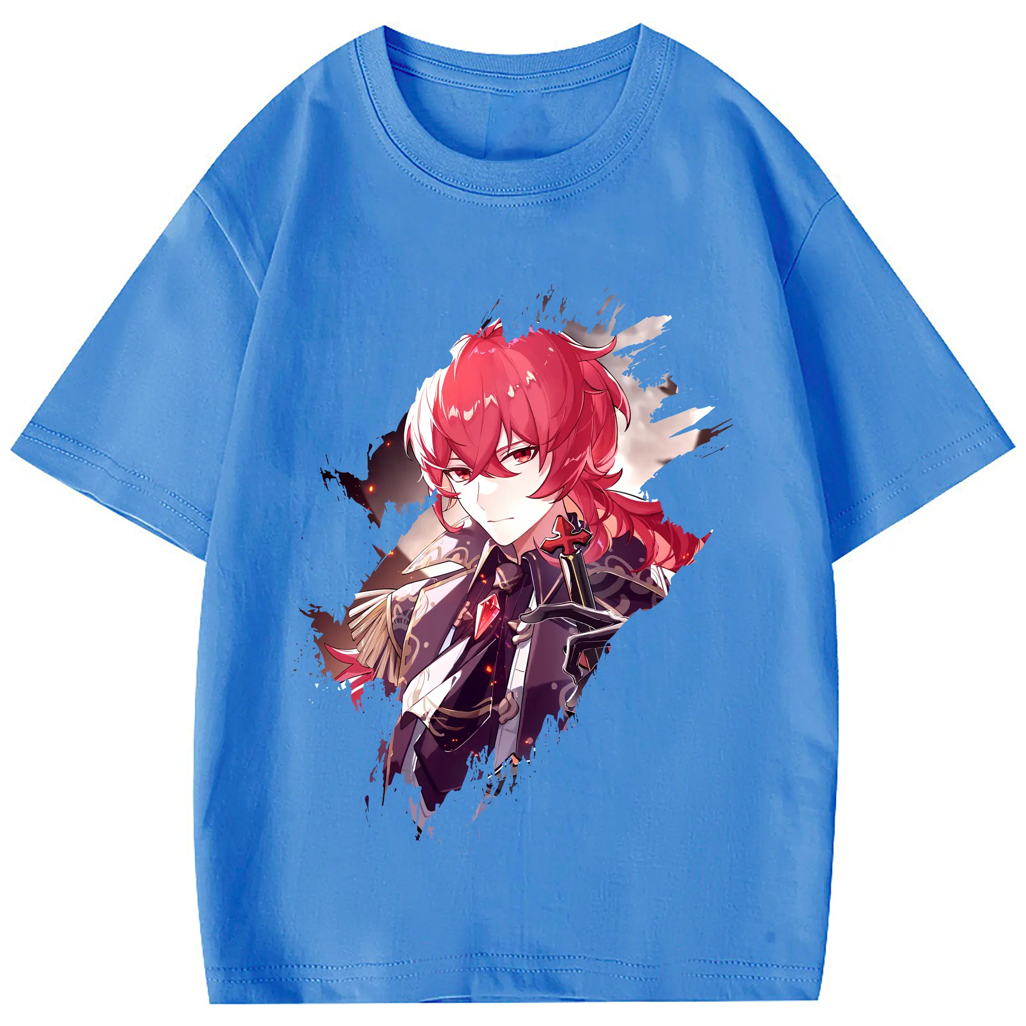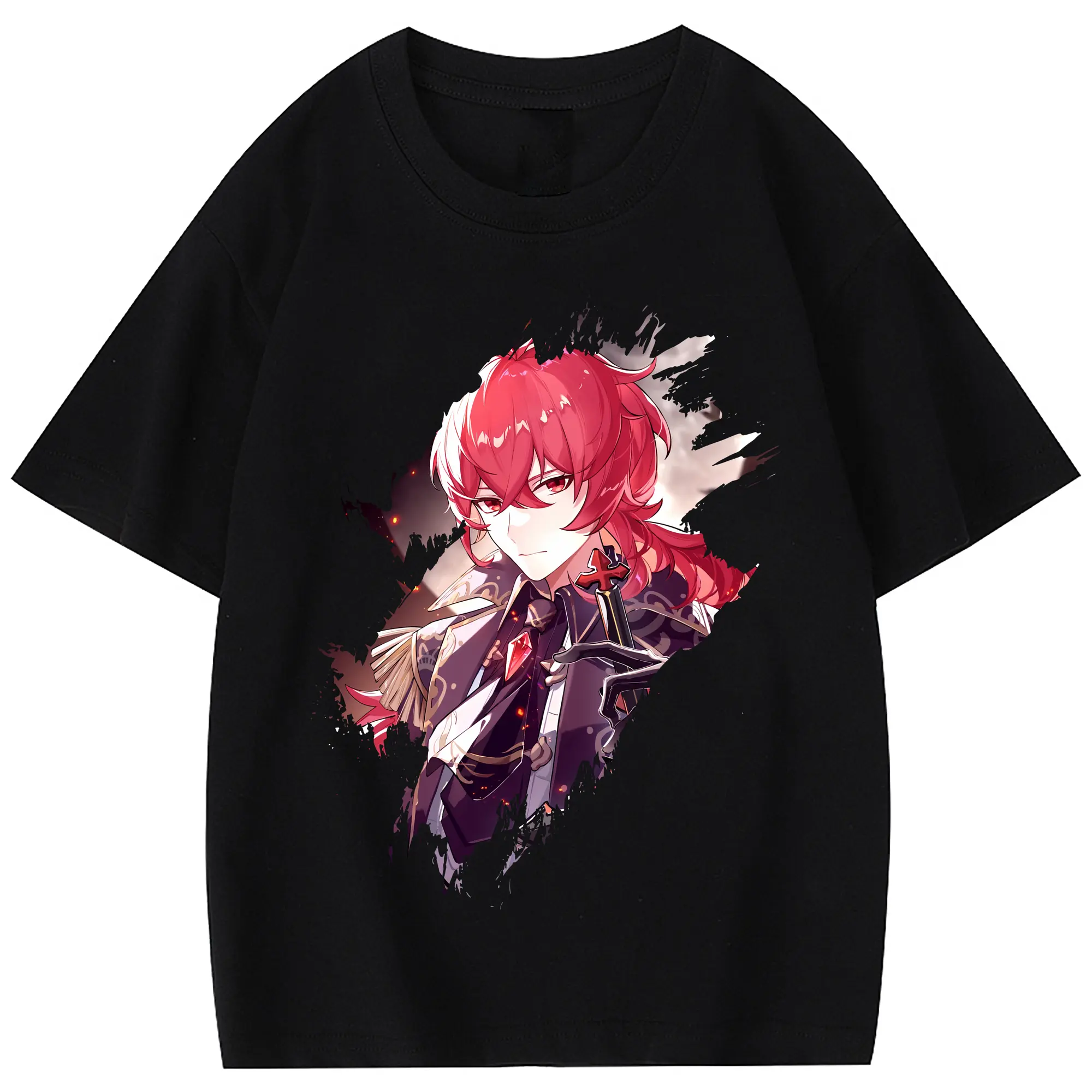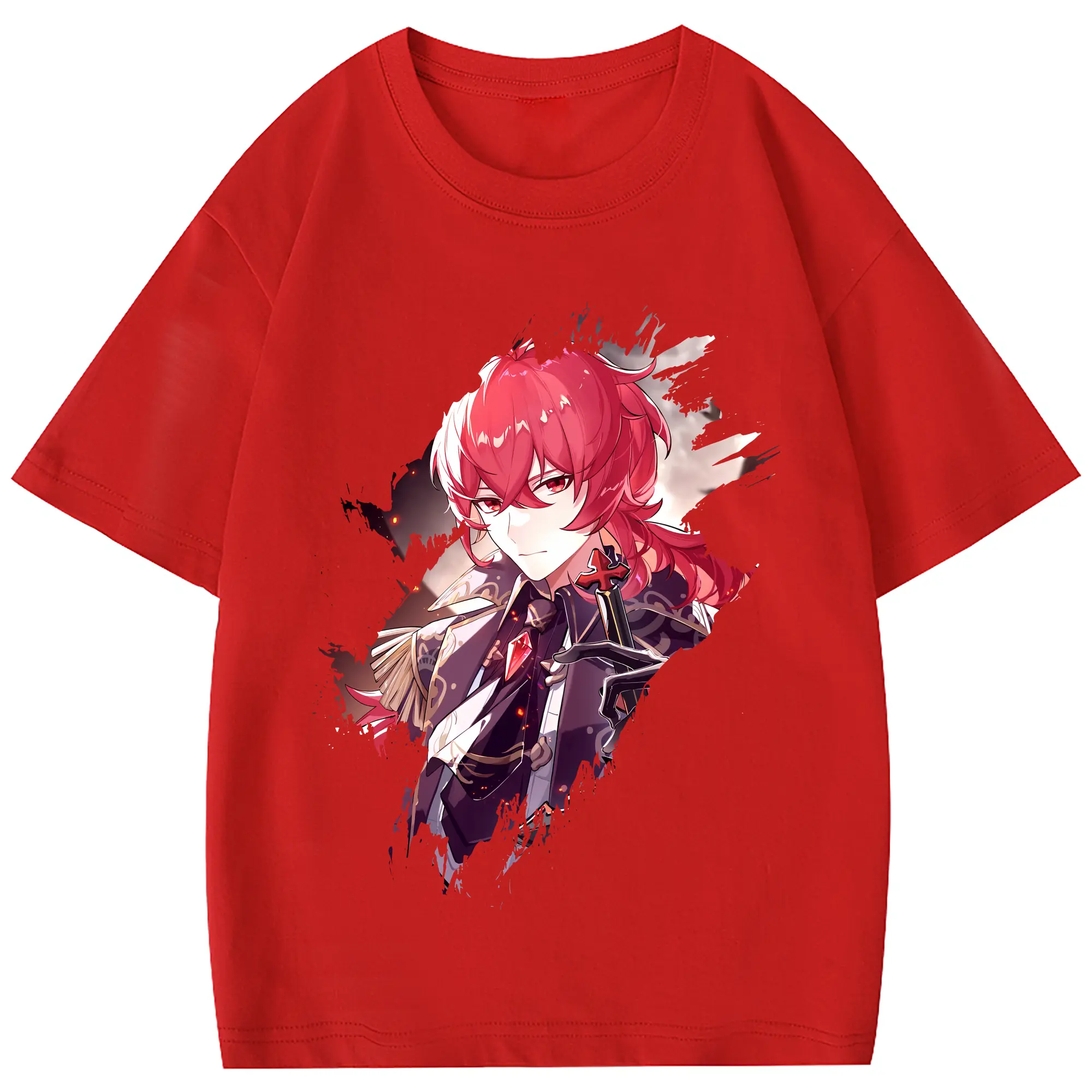 原 神 グッズ ディルック - 綿100% 半袖Tシャツ ・ フロントプリント ・ 快適 通気性 ・ 日常使い 散歩 スポーツ用