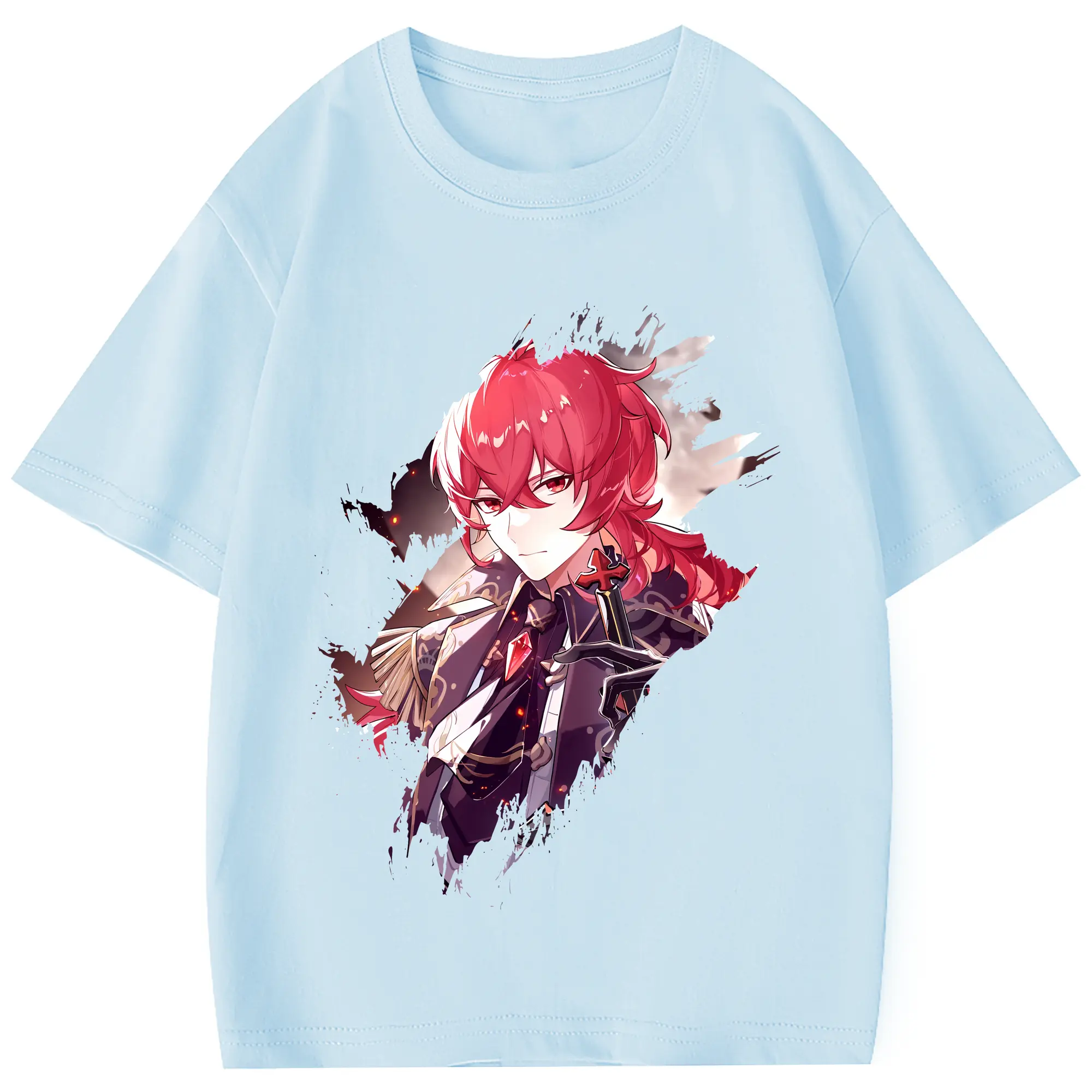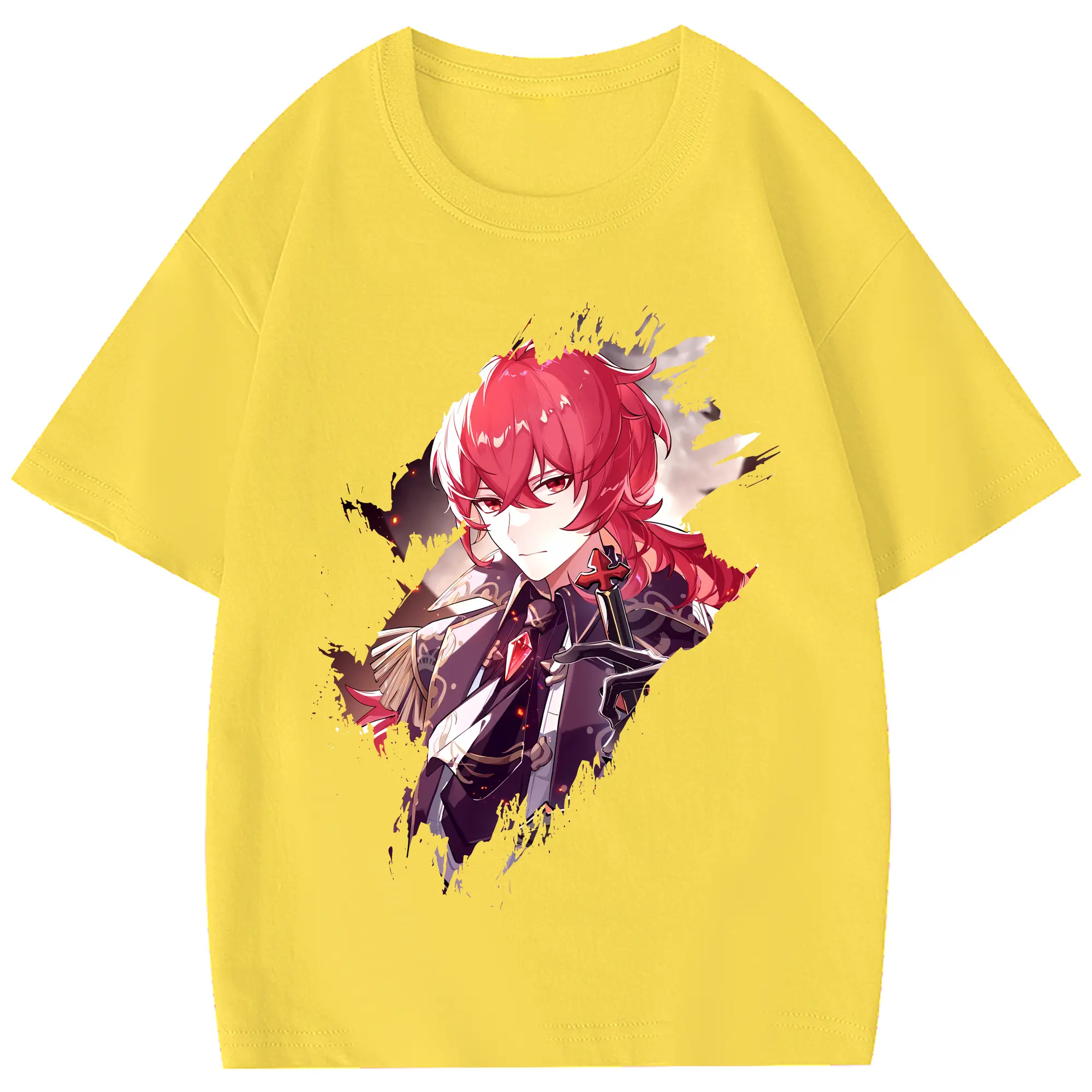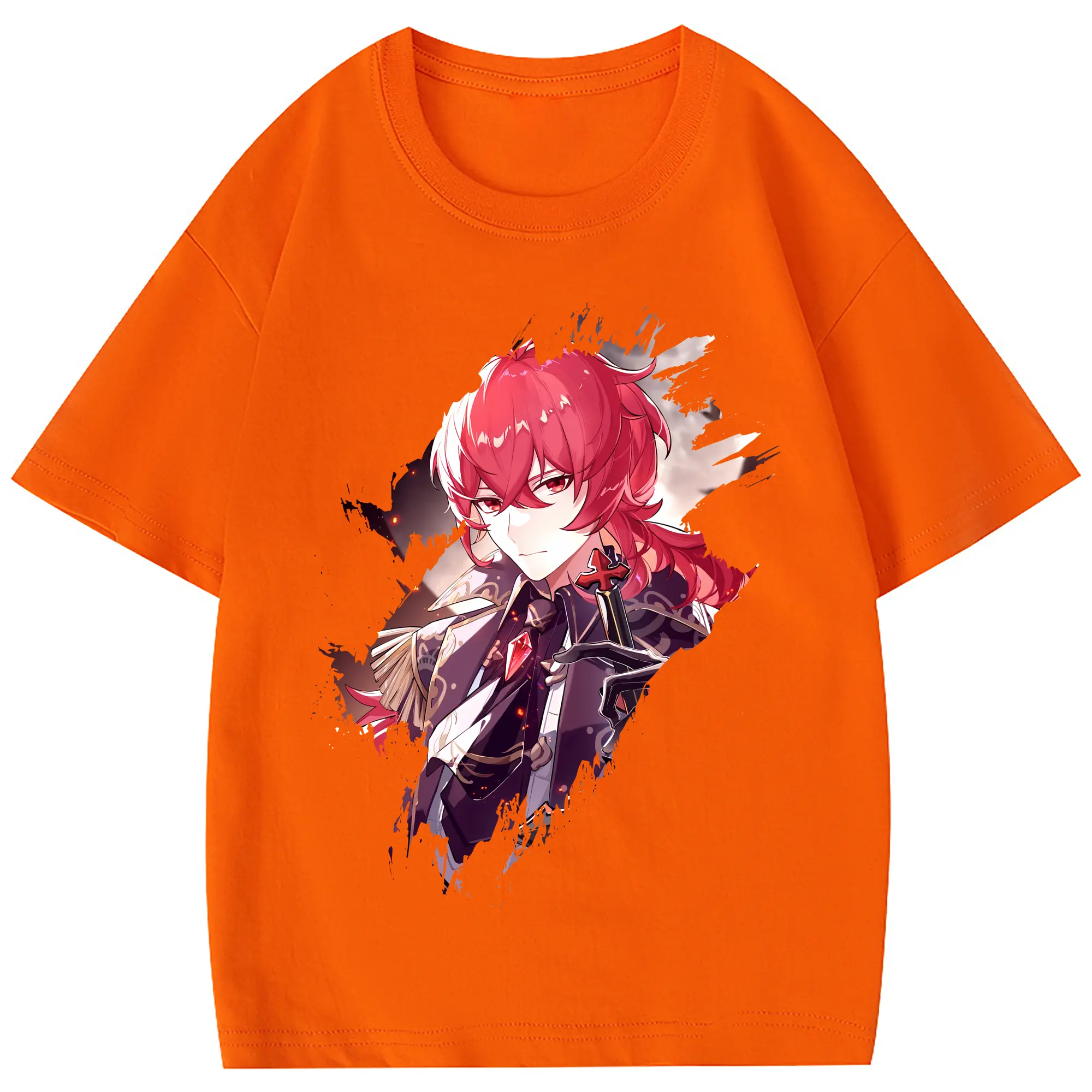 原 神 グッズ ディルック - 綿100% 半袖Tシャツ ・ フロントプリント ・ 快適 通気性 ・ 日常使い 散歩 スポーツ用