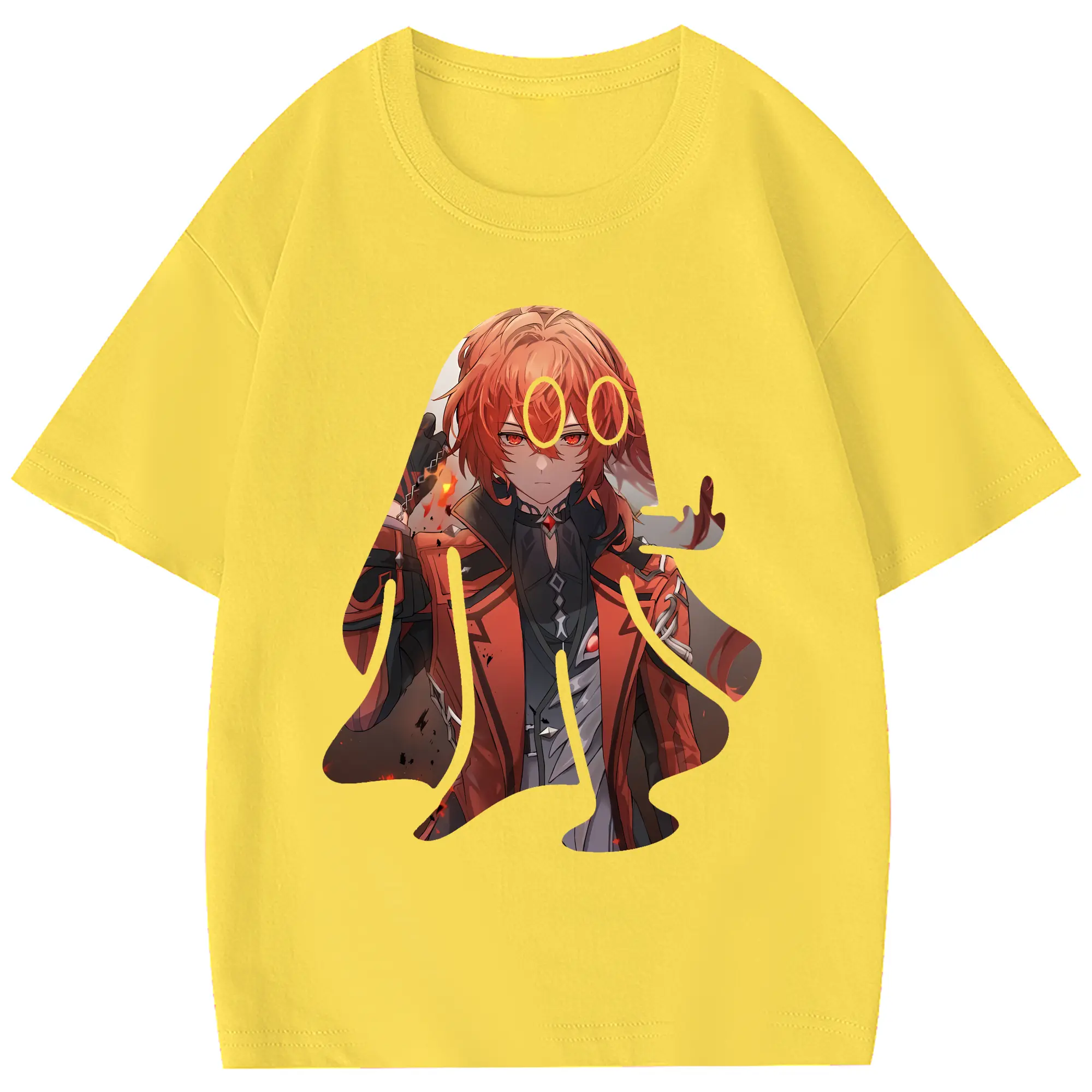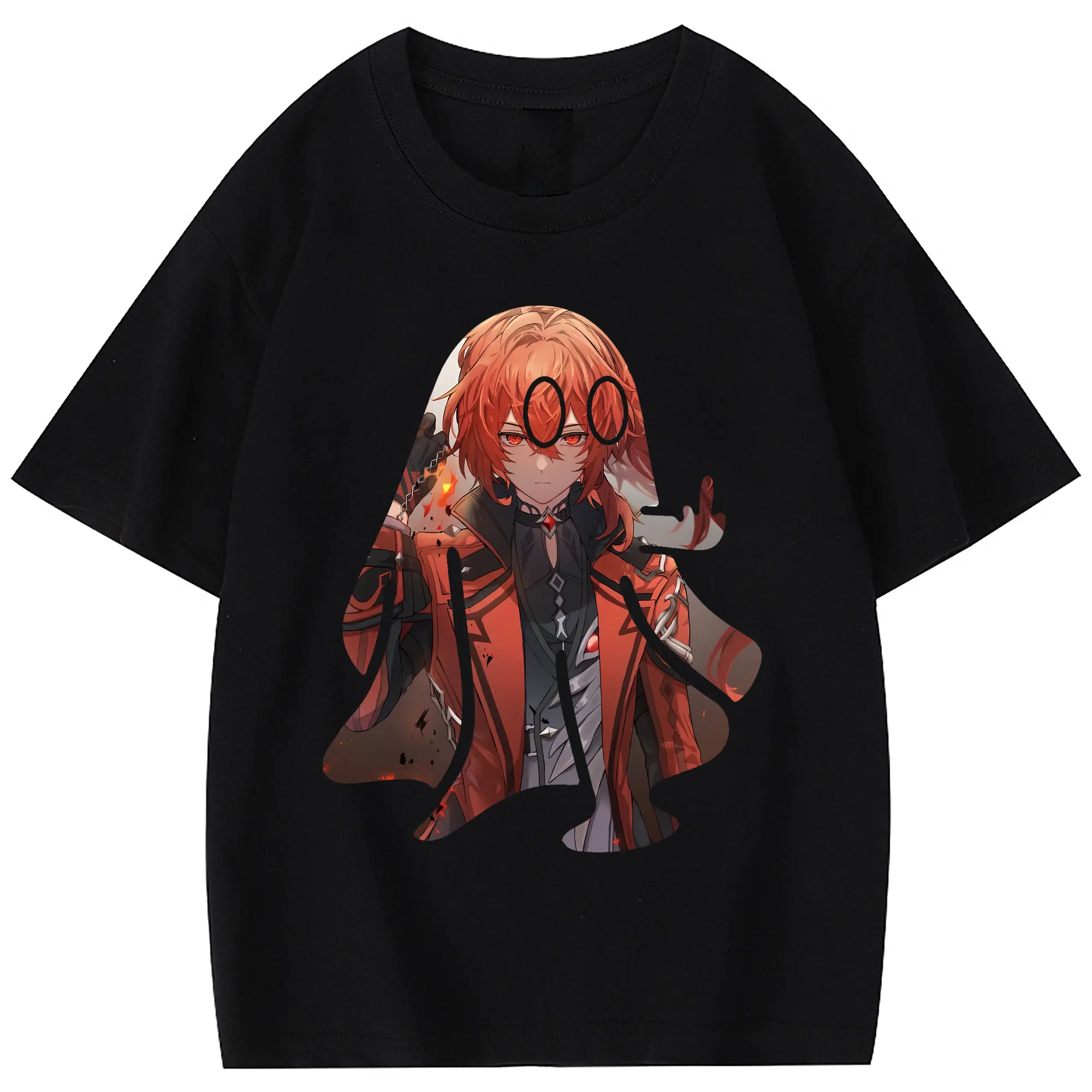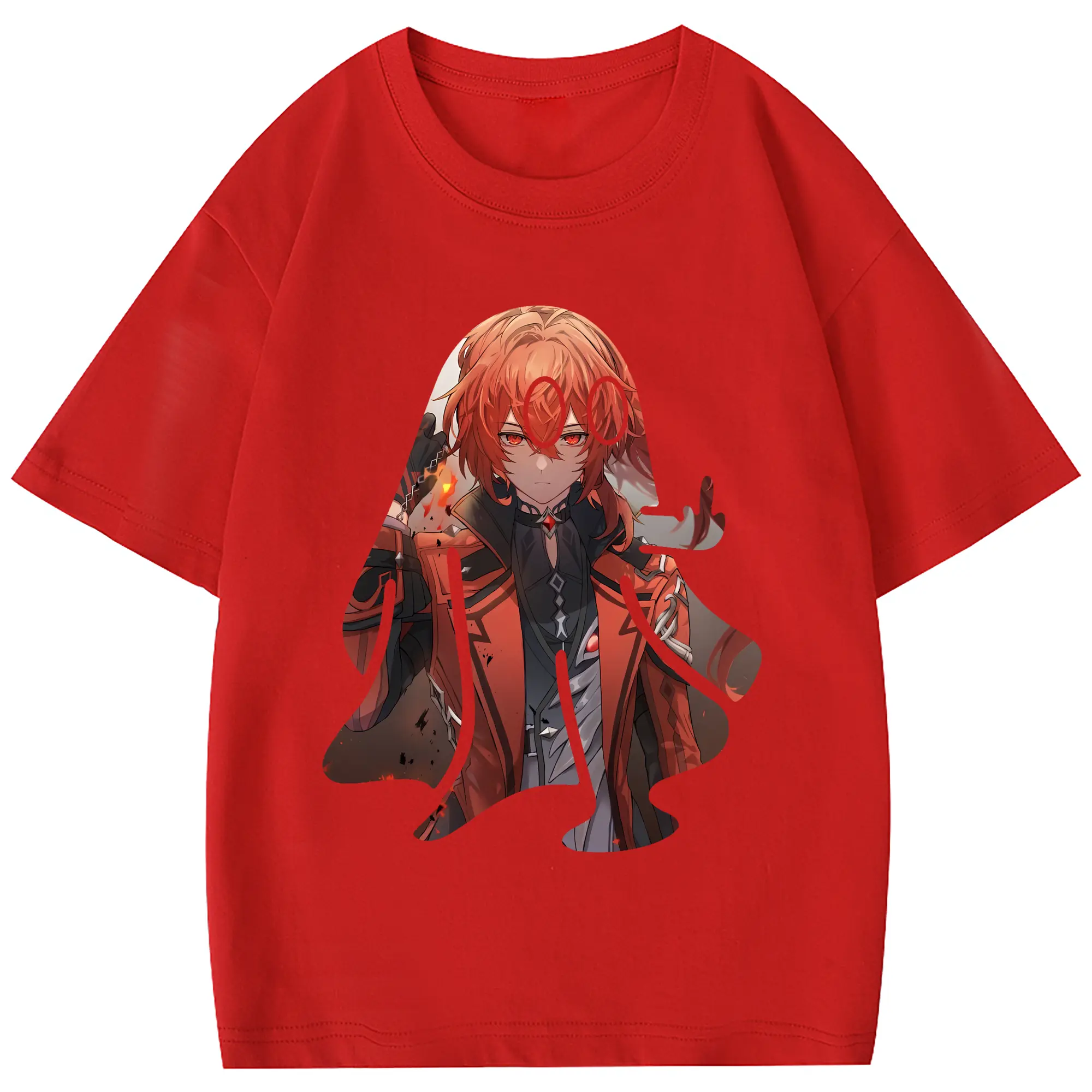 原 神 グッズ ディルック - 綿100% 半袖Tシャツ ・ フロントプリント ・ 快適 通気性 ・ 日常使い 散歩 スポーツ用