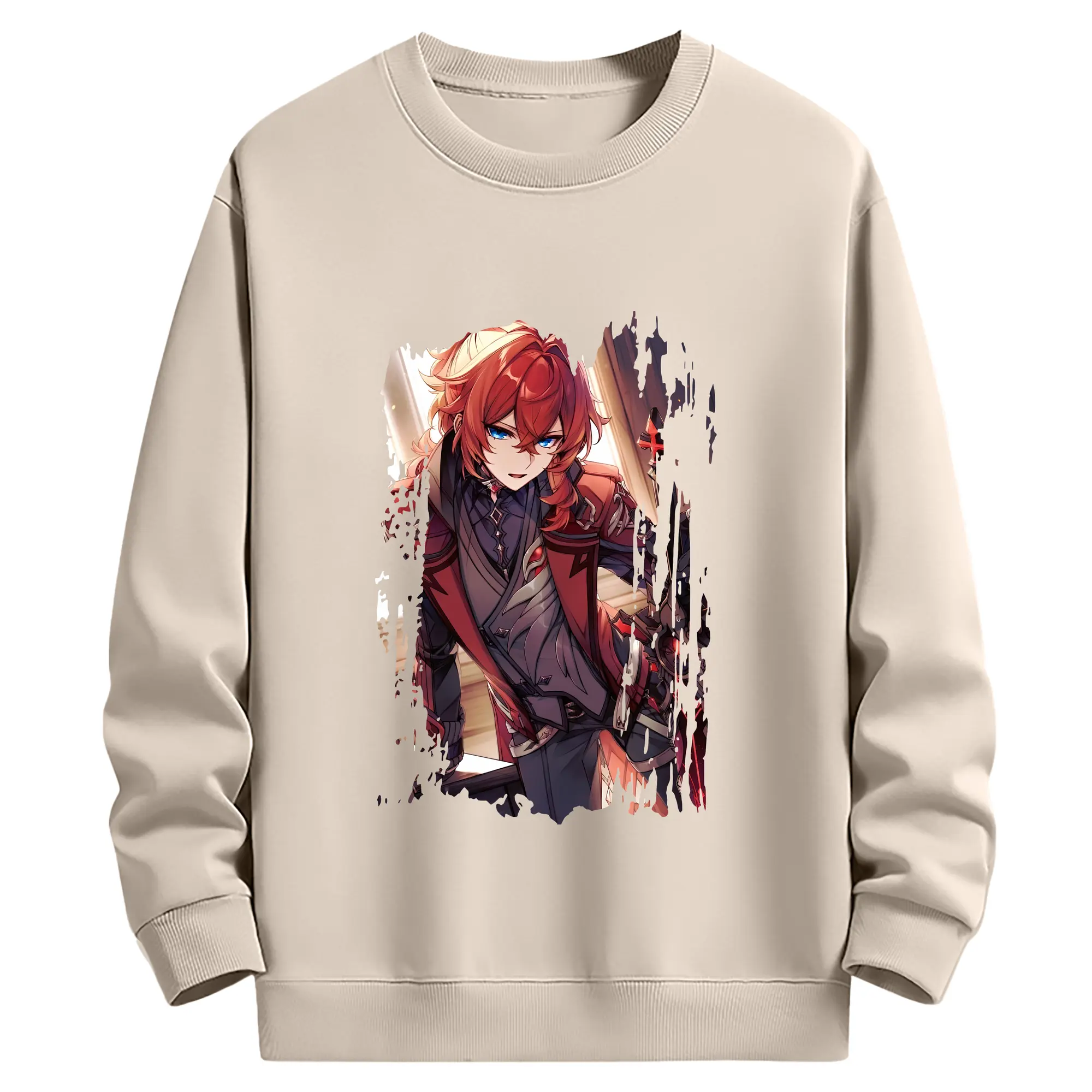 原 神 グッズ ディルック - 薄手 クルーネック スウェット 裏毛260g · ポリエステル 春秋向け カジュアル 男女兼用 · トレーナー デイリー スポーツ 散歩に最適