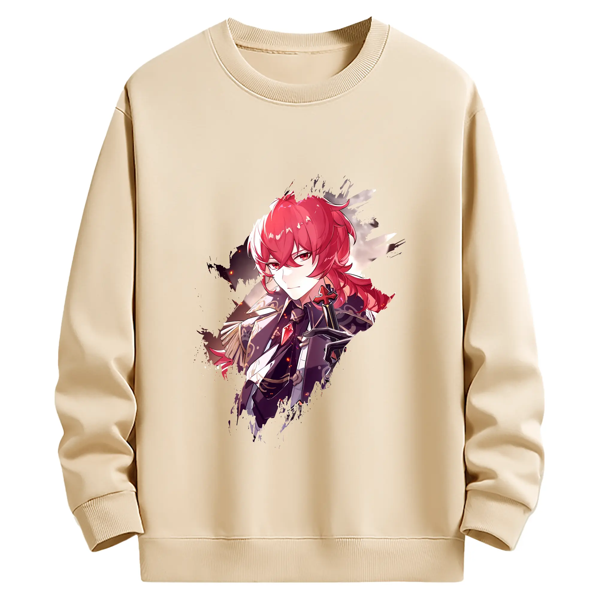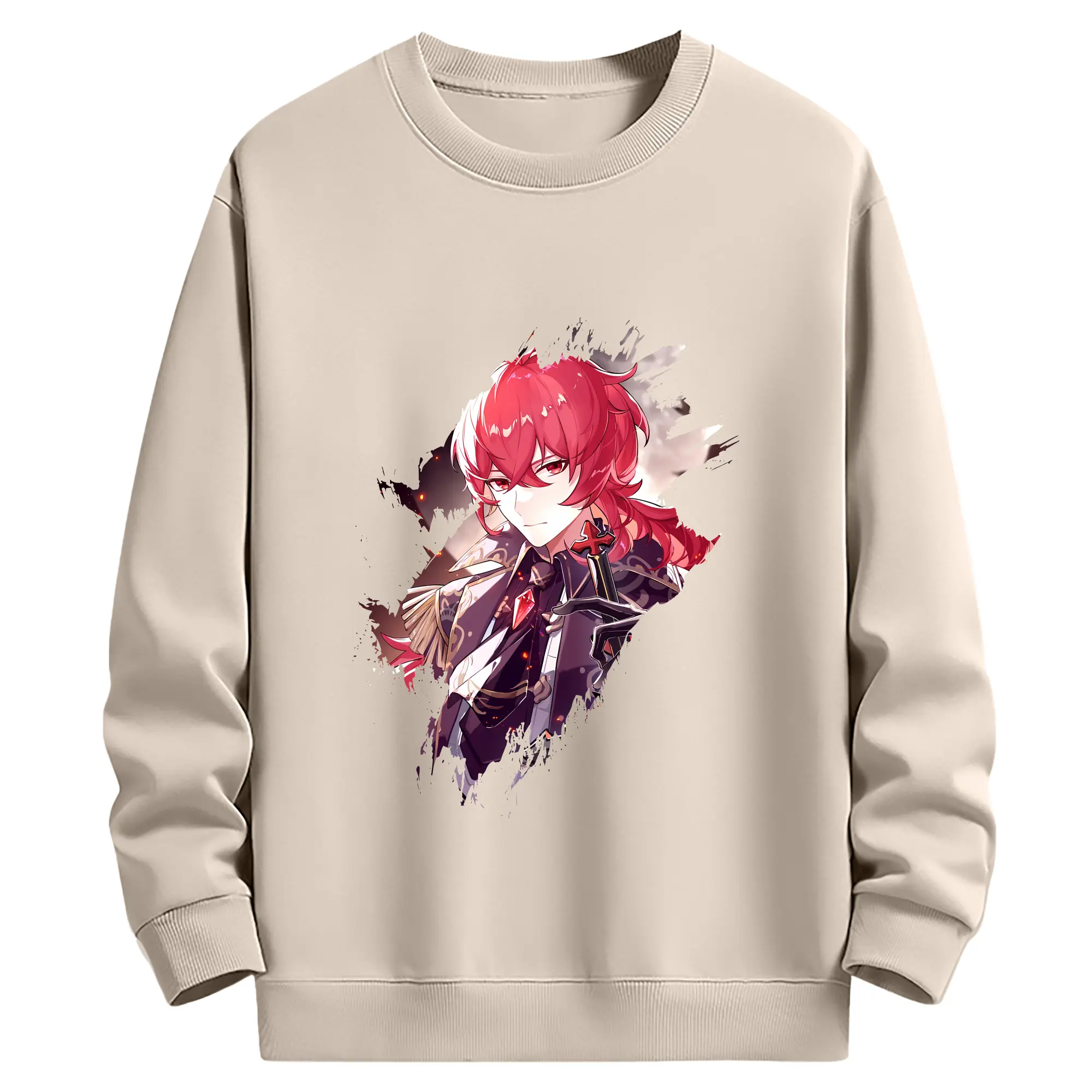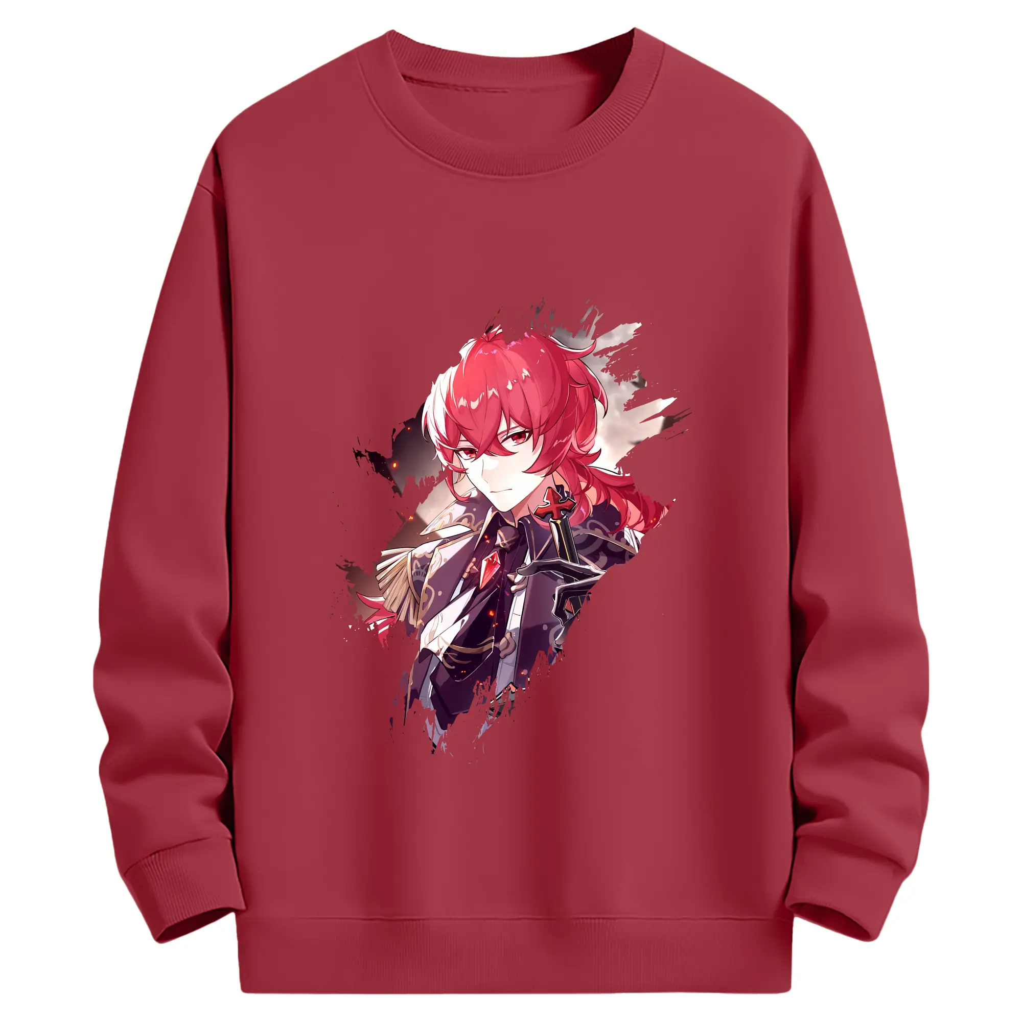 原 神 グッズ ディルック - 薄手 クルーネック スウェット 裏毛260g · ポリエステル 春秋向け カジュアル 男女兼用 · トレーナー デイリー スポーツ 散歩に最適
