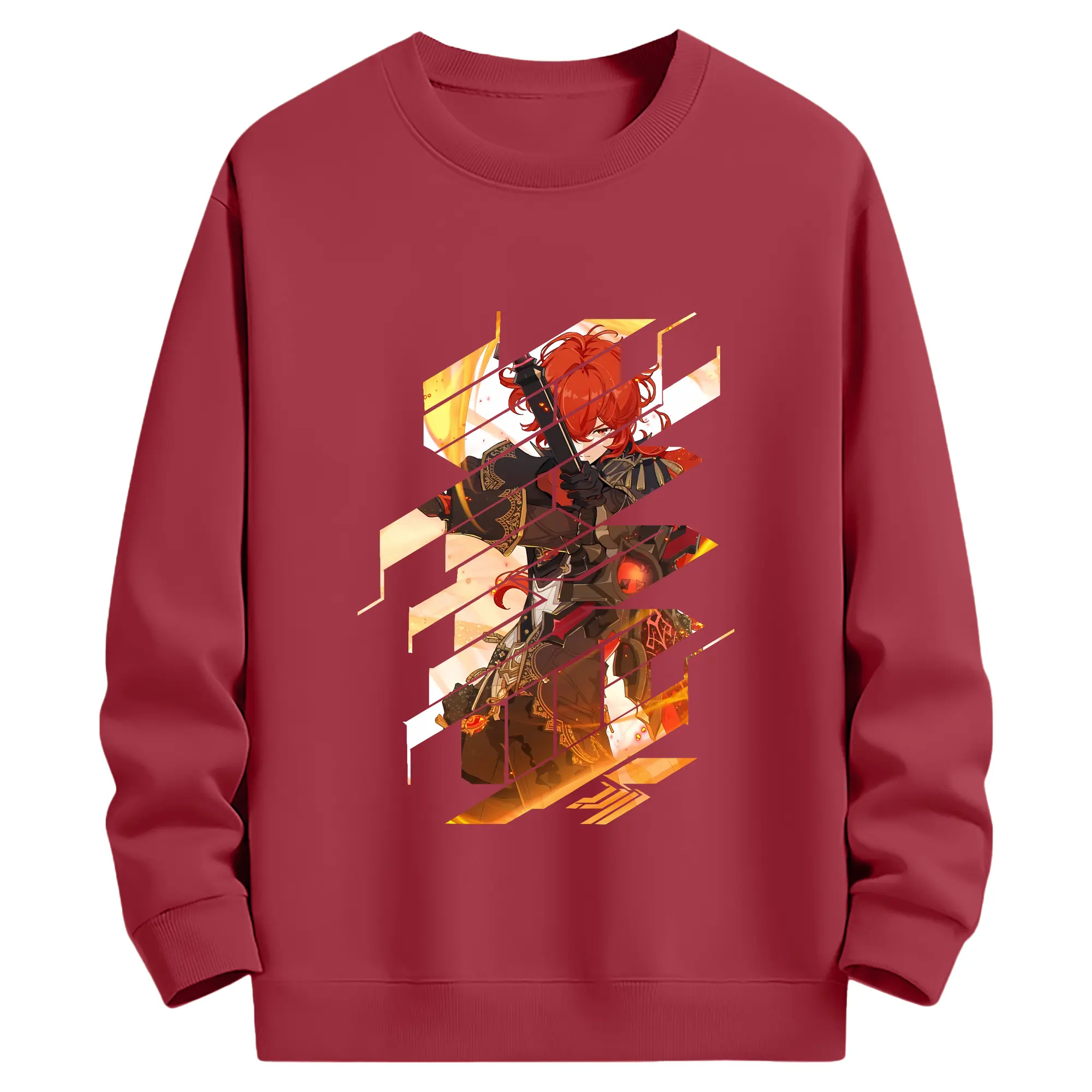 原 神 グッズ ディルック - 薄手 クルーネック スウェット 裏毛260g · ポリエステル 春秋向け カジュアル 男女兼用 · トレーナー デイリー スポーツ 散歩に最適