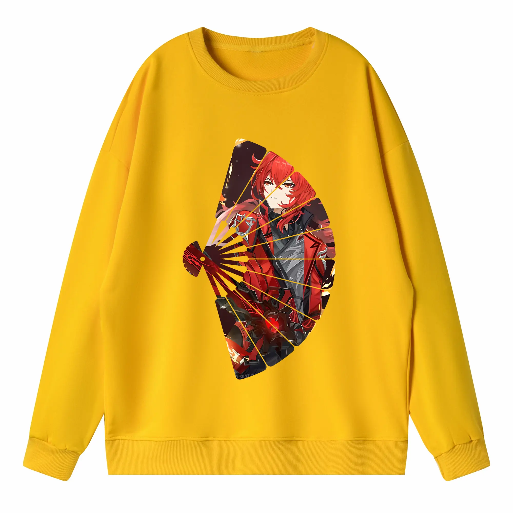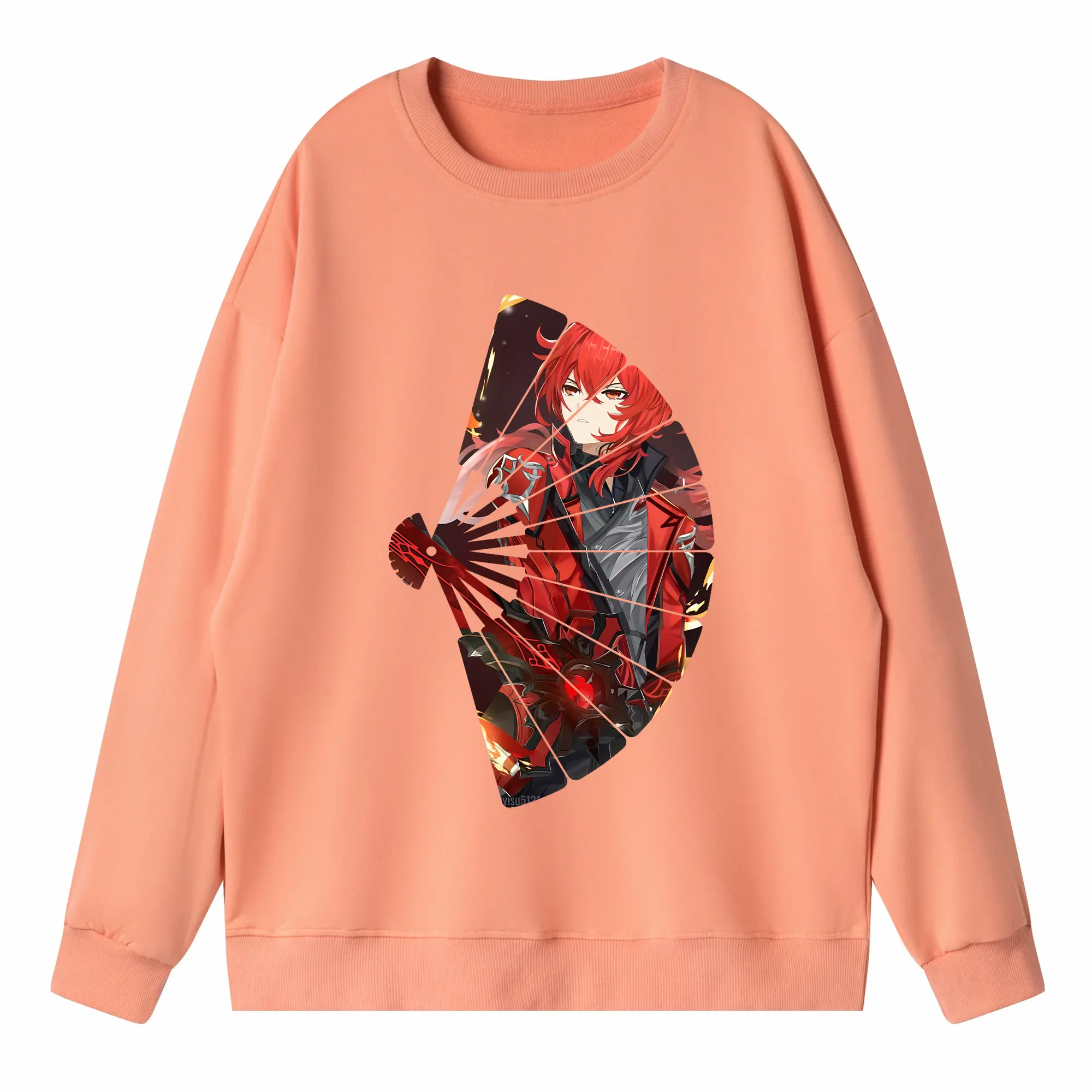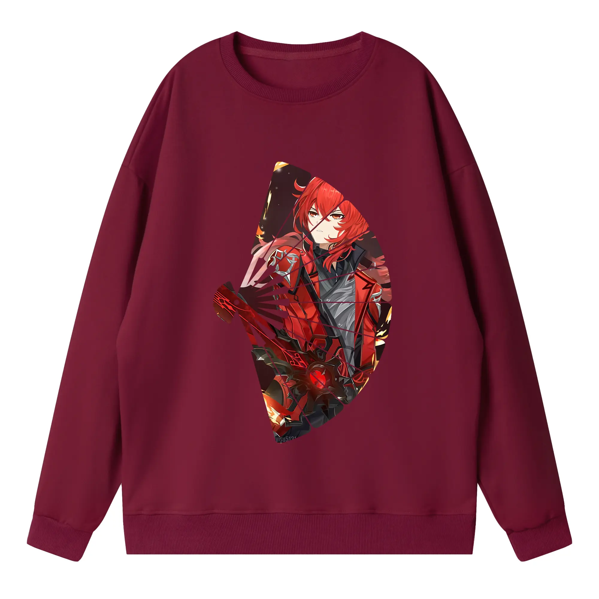 原 神 グッズ ディルック - 高品質 クルーネック スウェット ・ コットン59% ポリエステル41% ・ ユニセックス 長袖 トレーナー ・ カジュアル デイリー スポーツ 散歩用