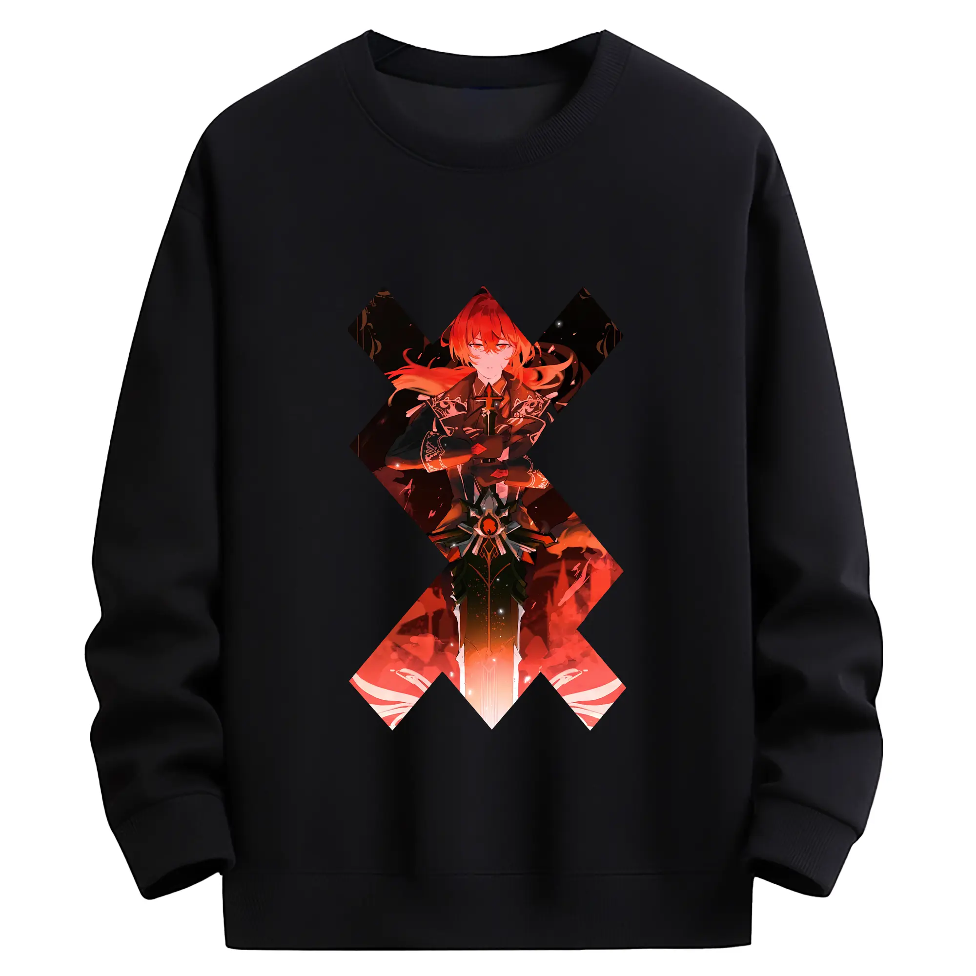 原 神 グッズ ディルック - 高品質 クルーネック スウェット ・ コットン59% ポリエステル41% ・ ユニセックス 長袖 トレーナー ・ カジュアル デイリー スポーツ 散歩用