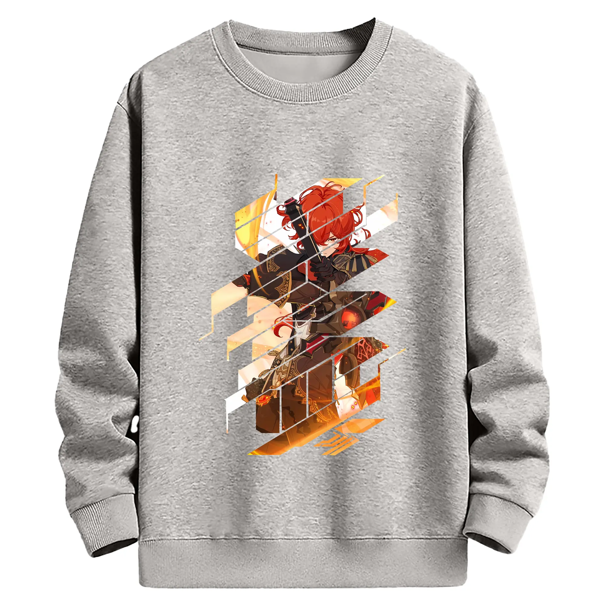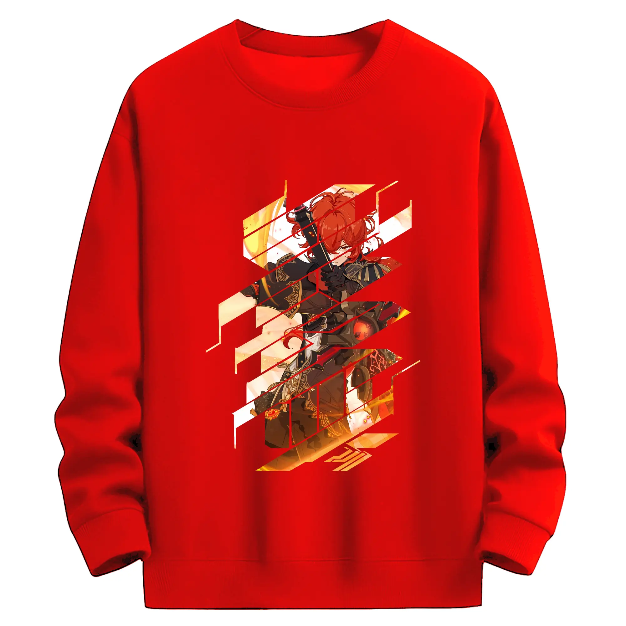 原 神 グッズ ディルック - 高品質 クルーネック スウェット ・ コットン59% ポリエステル41% ・ ユニセックス 長袖 トレーナー ・ カジュアル デイリー スポーツ 散歩用