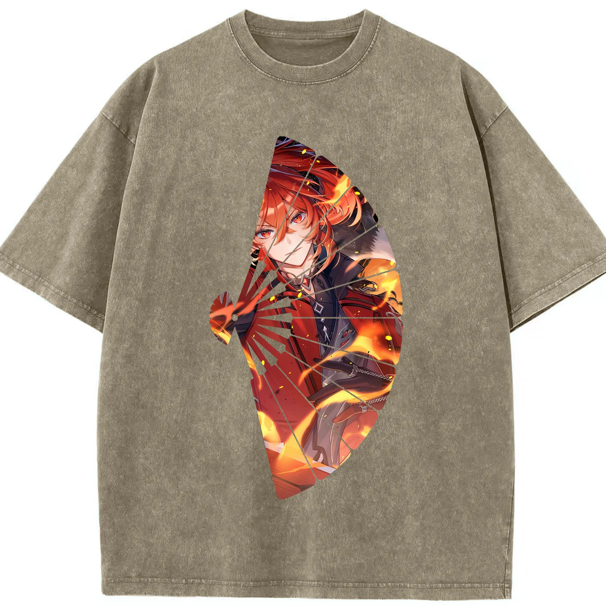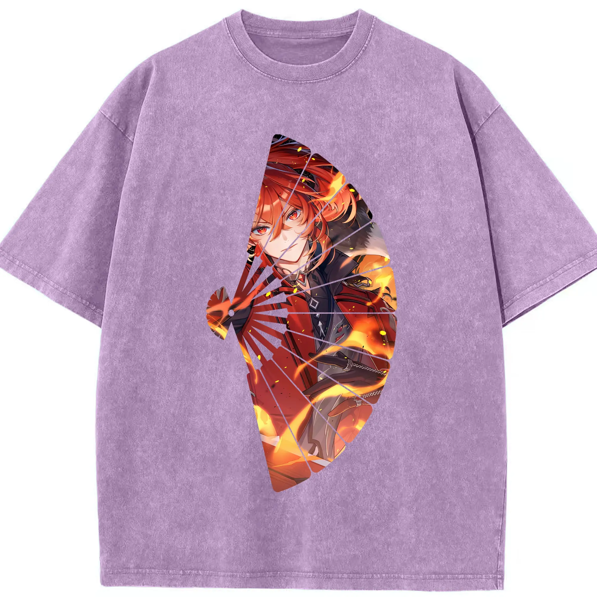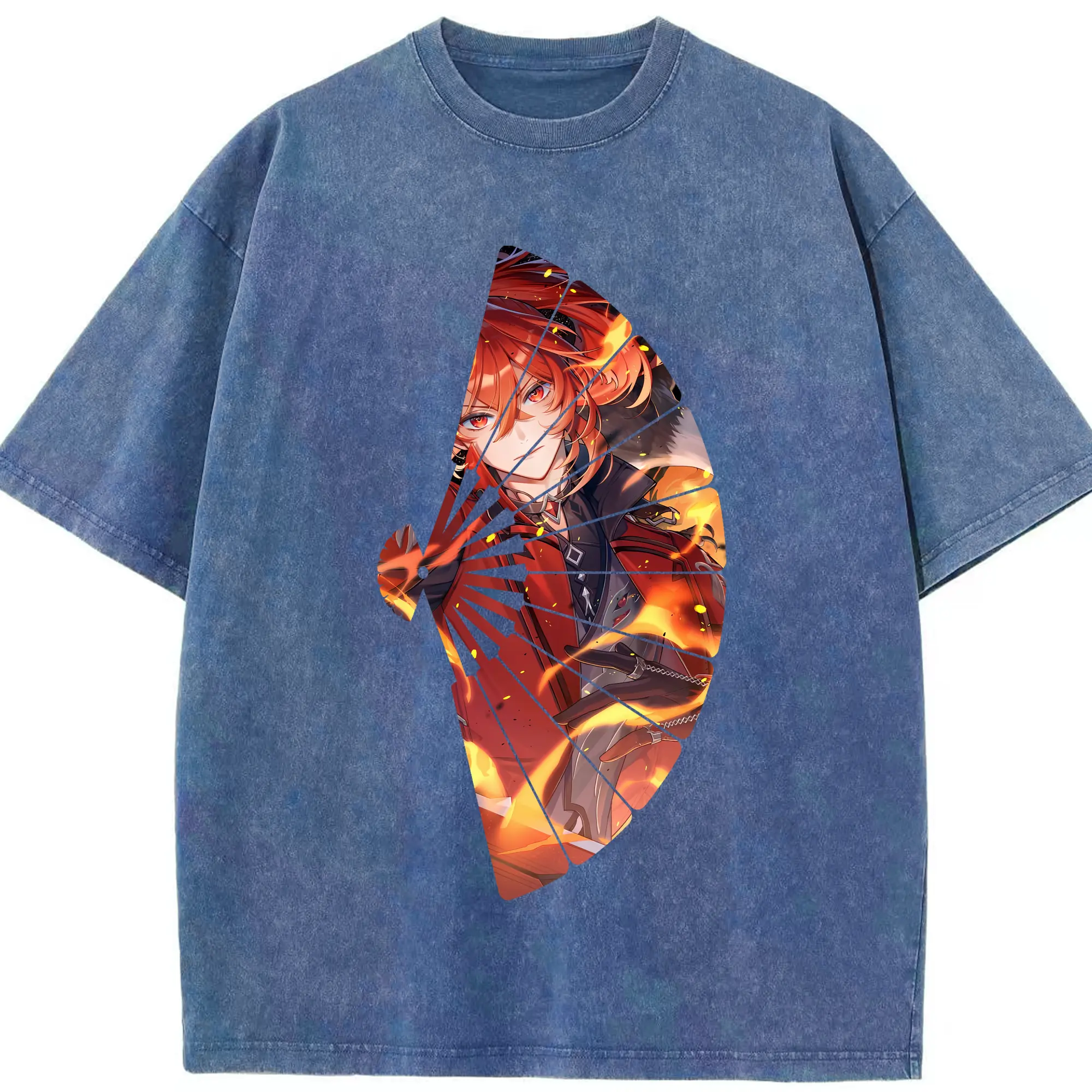 原 神 グッズ ディルック - 綿100% ヴィンテージ風 半袖Tシャツ ・ 背面プリント ・ 柔らか肌触り ・ 通気性 快適 ・ スポーツ カジュアル 外出用