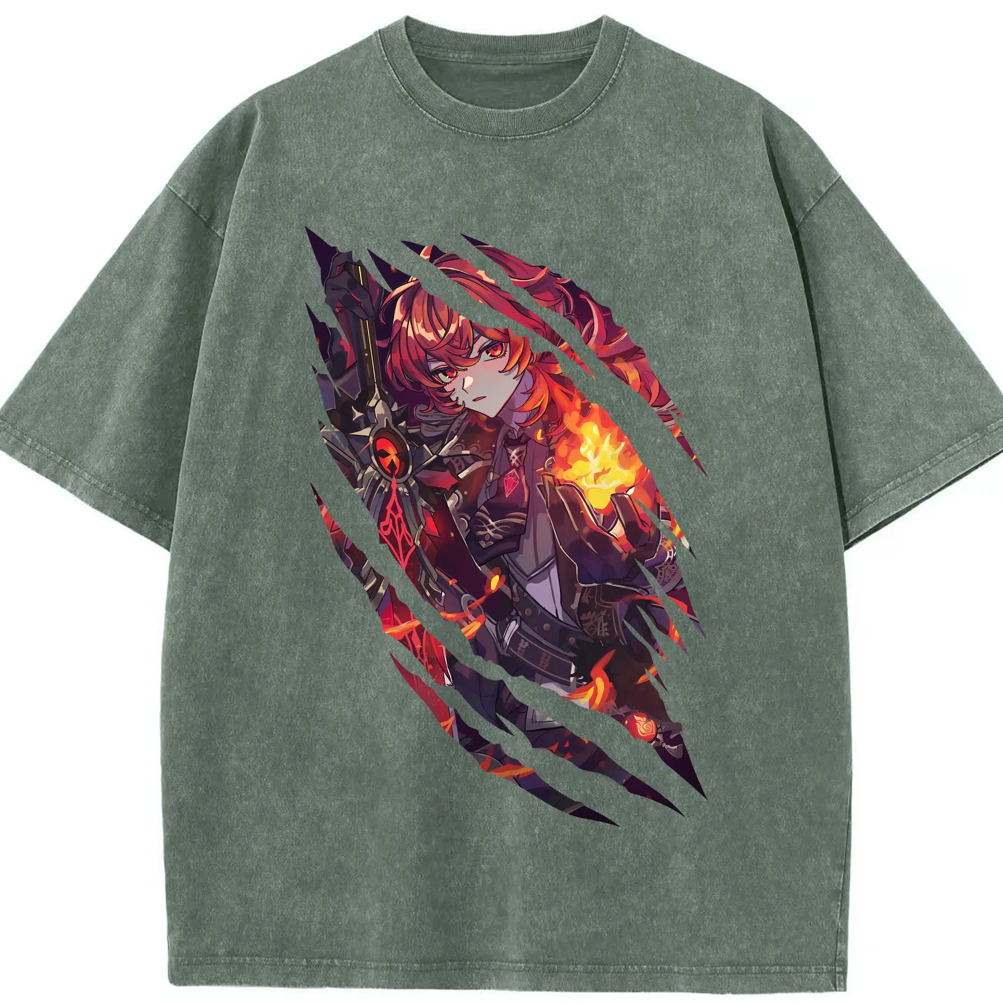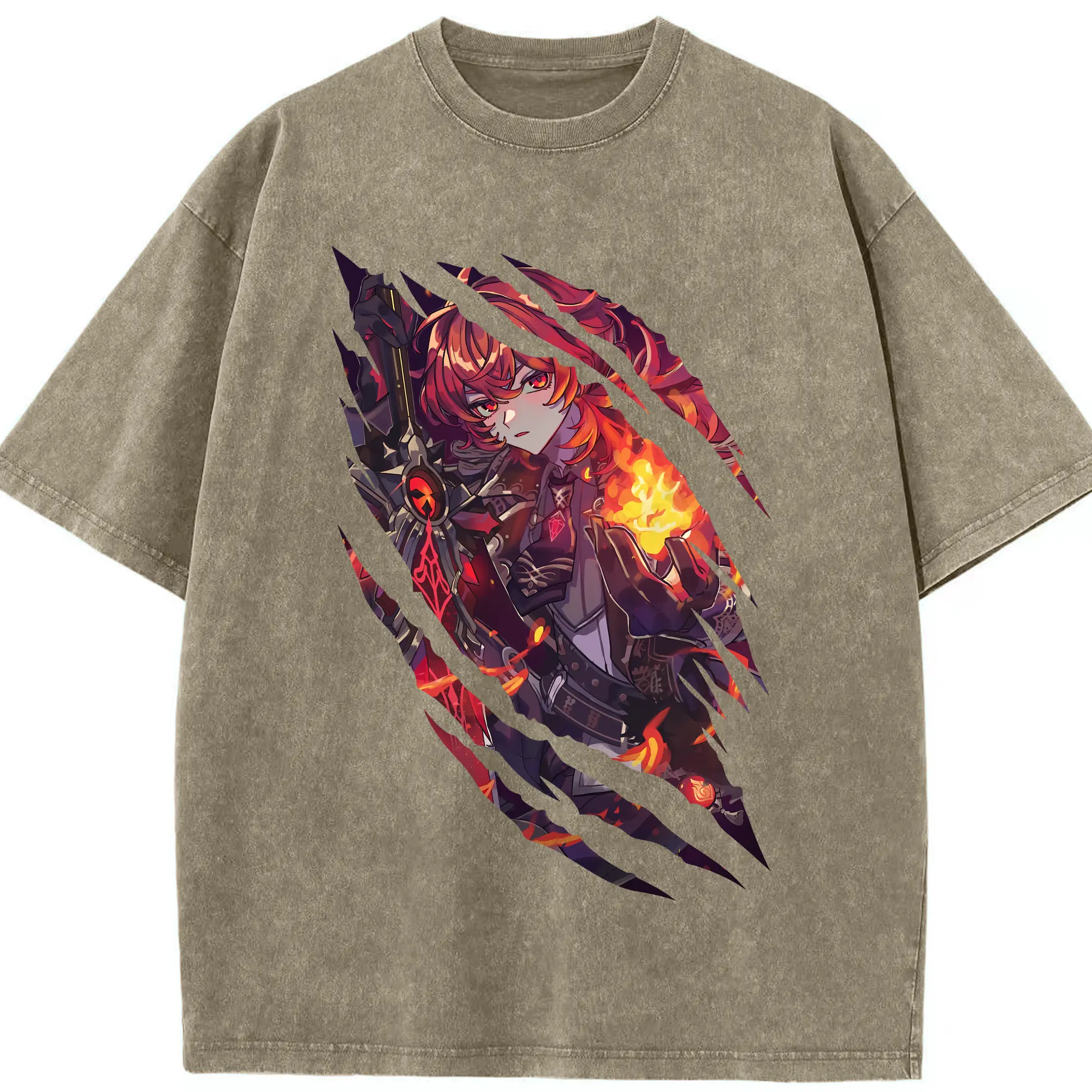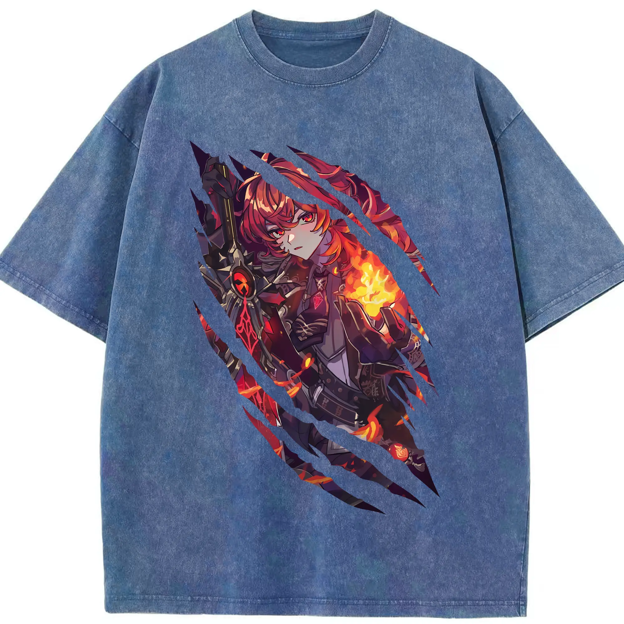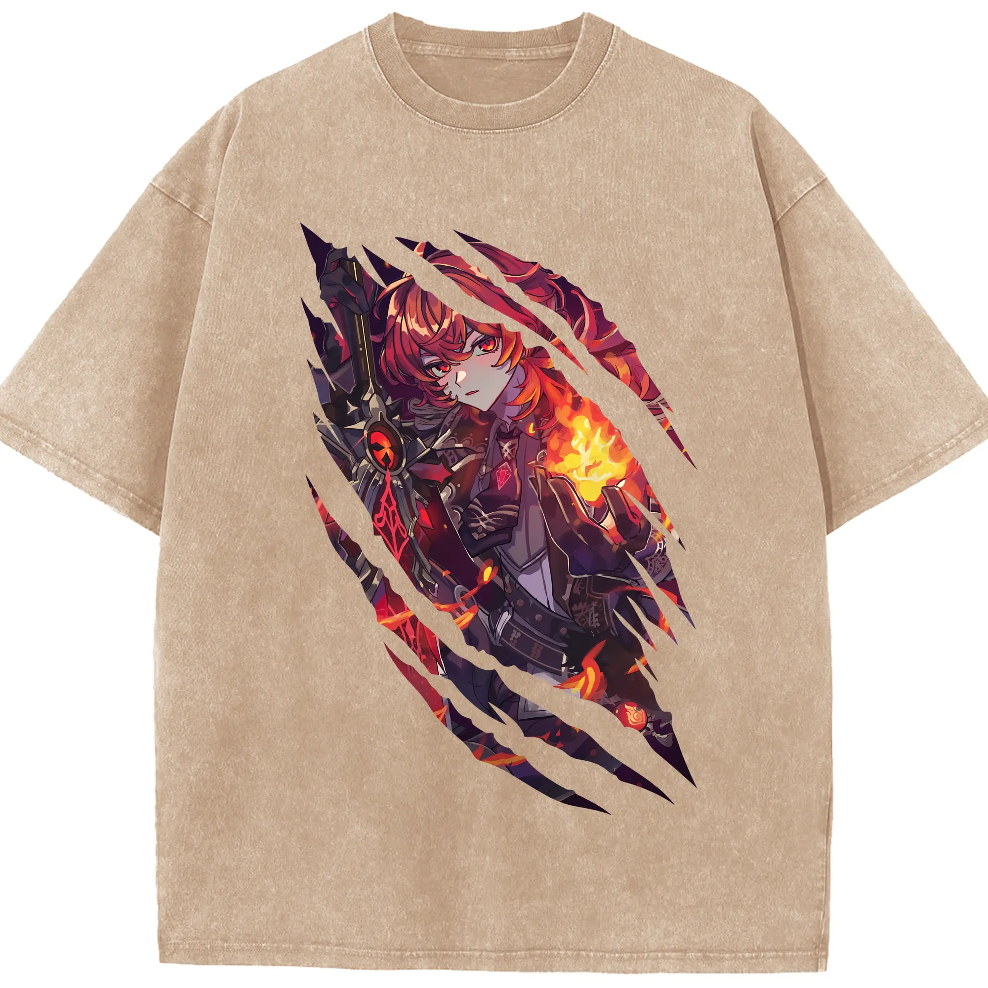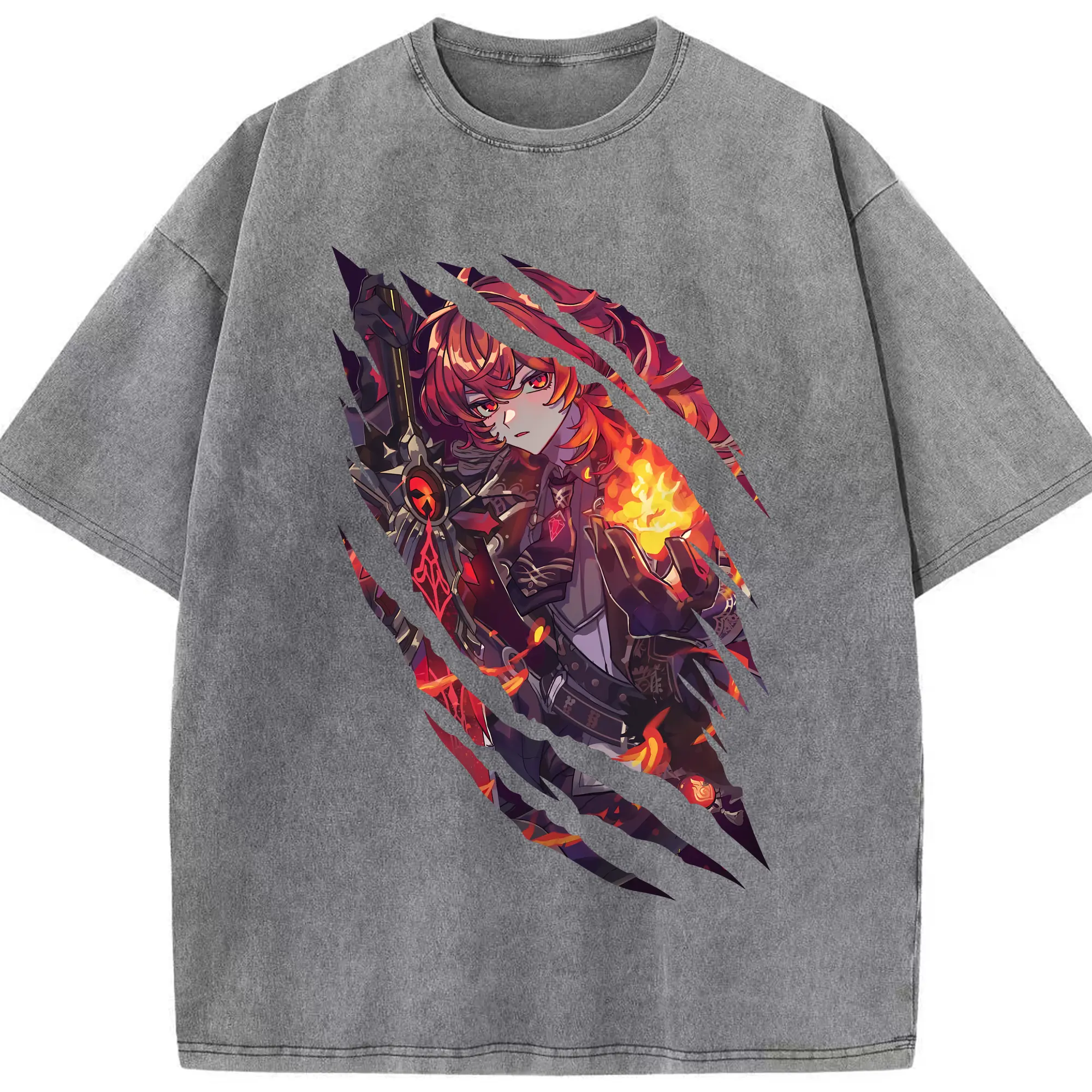 原 神 グッズ ディルック - 綿100% ヴィンテージ風 半袖Tシャツ ・ 背面プリント ・ 柔らか肌触り ・ 通気性 快適 ・ スポーツ カジュアル 外出用