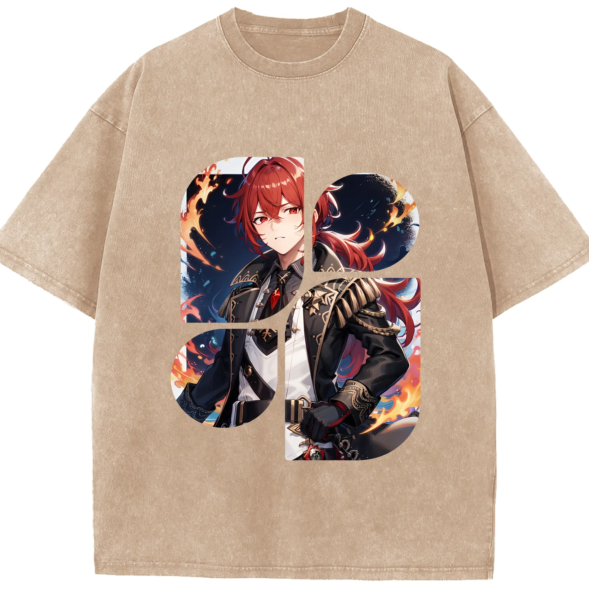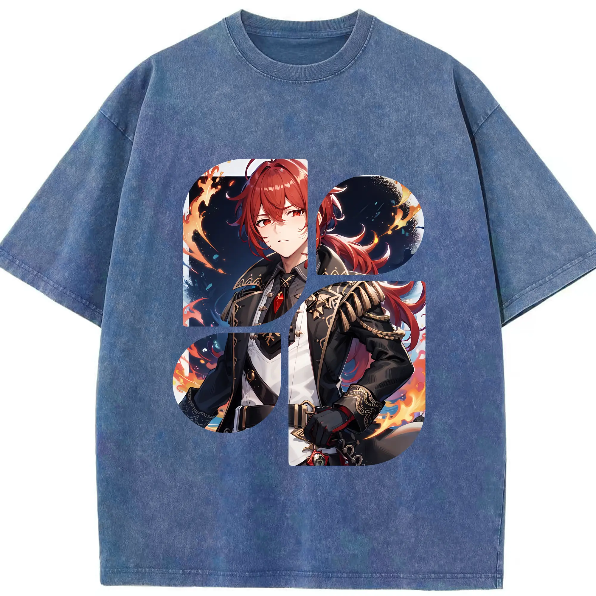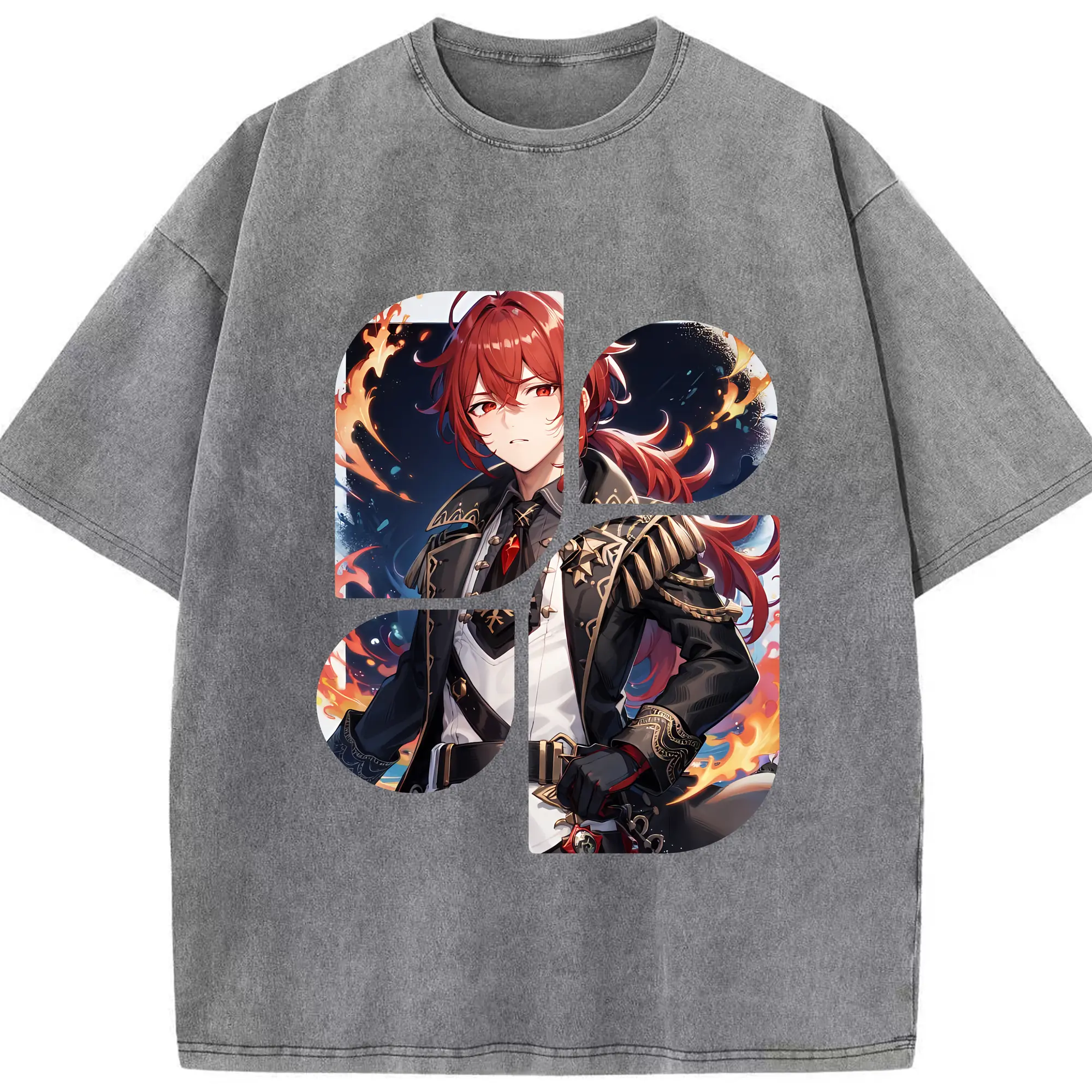 原 神 グッズ ディルック - 綿100% ヴィンテージ風 半袖Tシャツ ・ 背面プリント ・ 柔らか肌触り ・ 通気性 快適 ・ スポーツ カジュアル 外出用