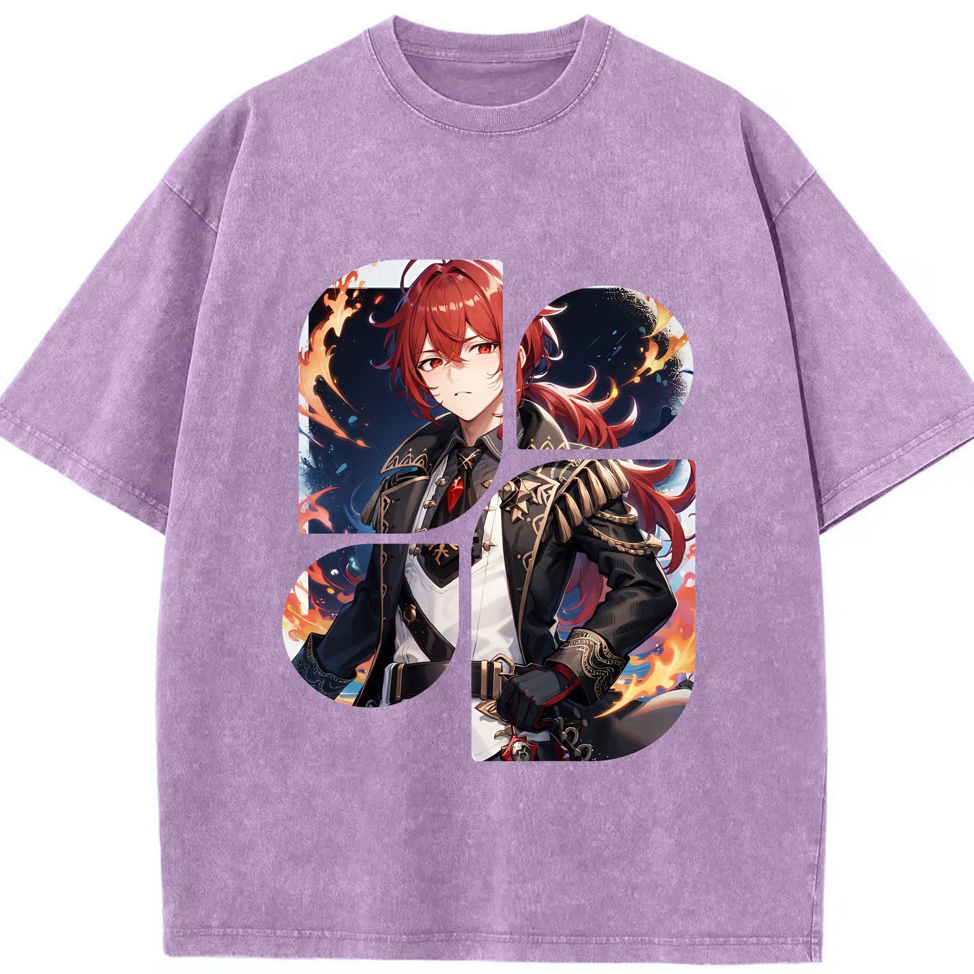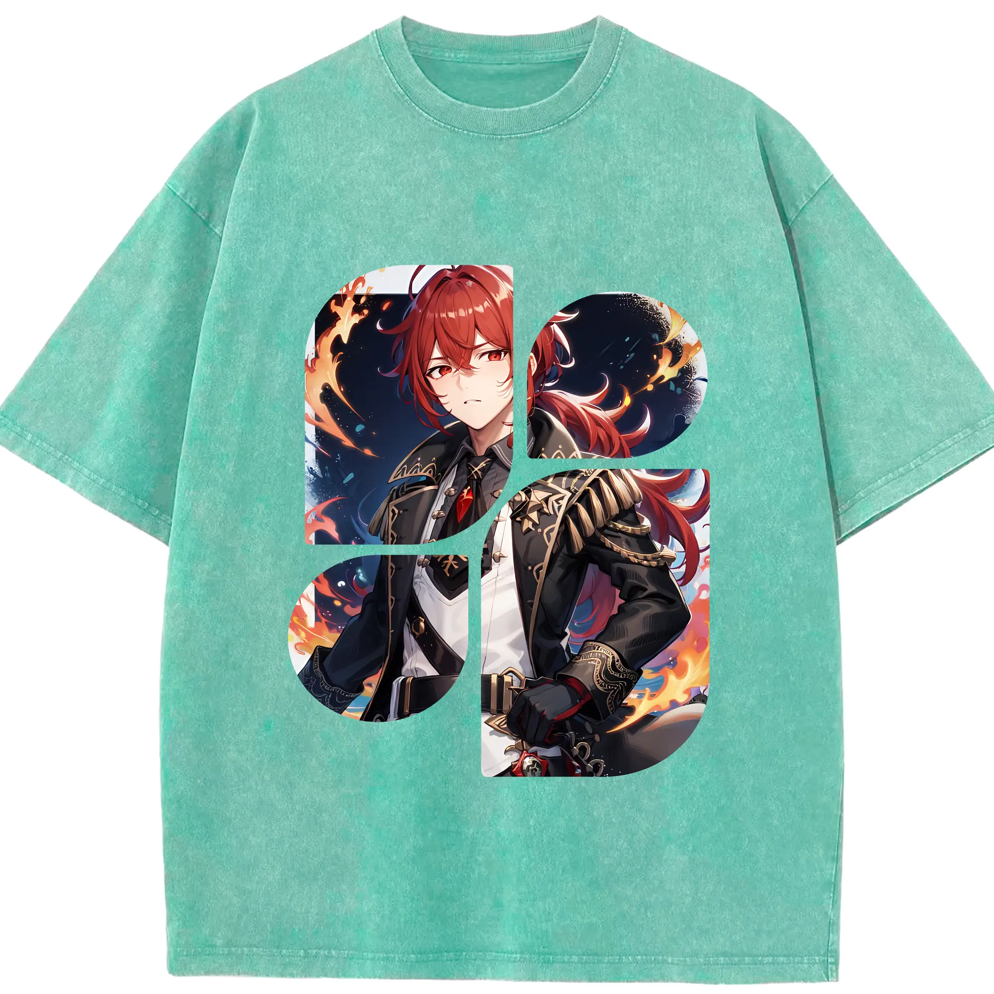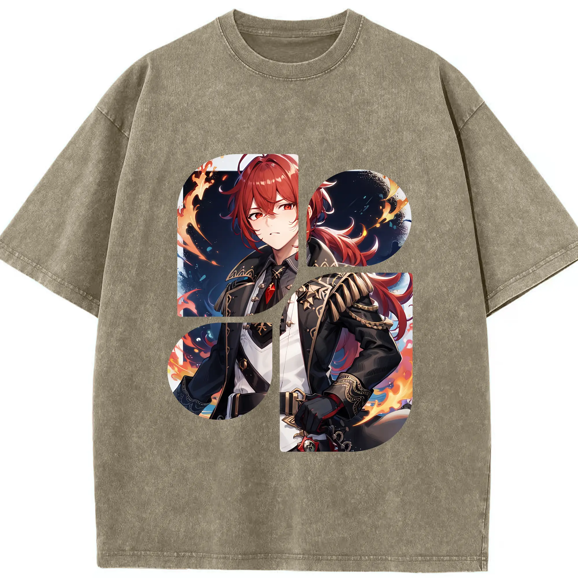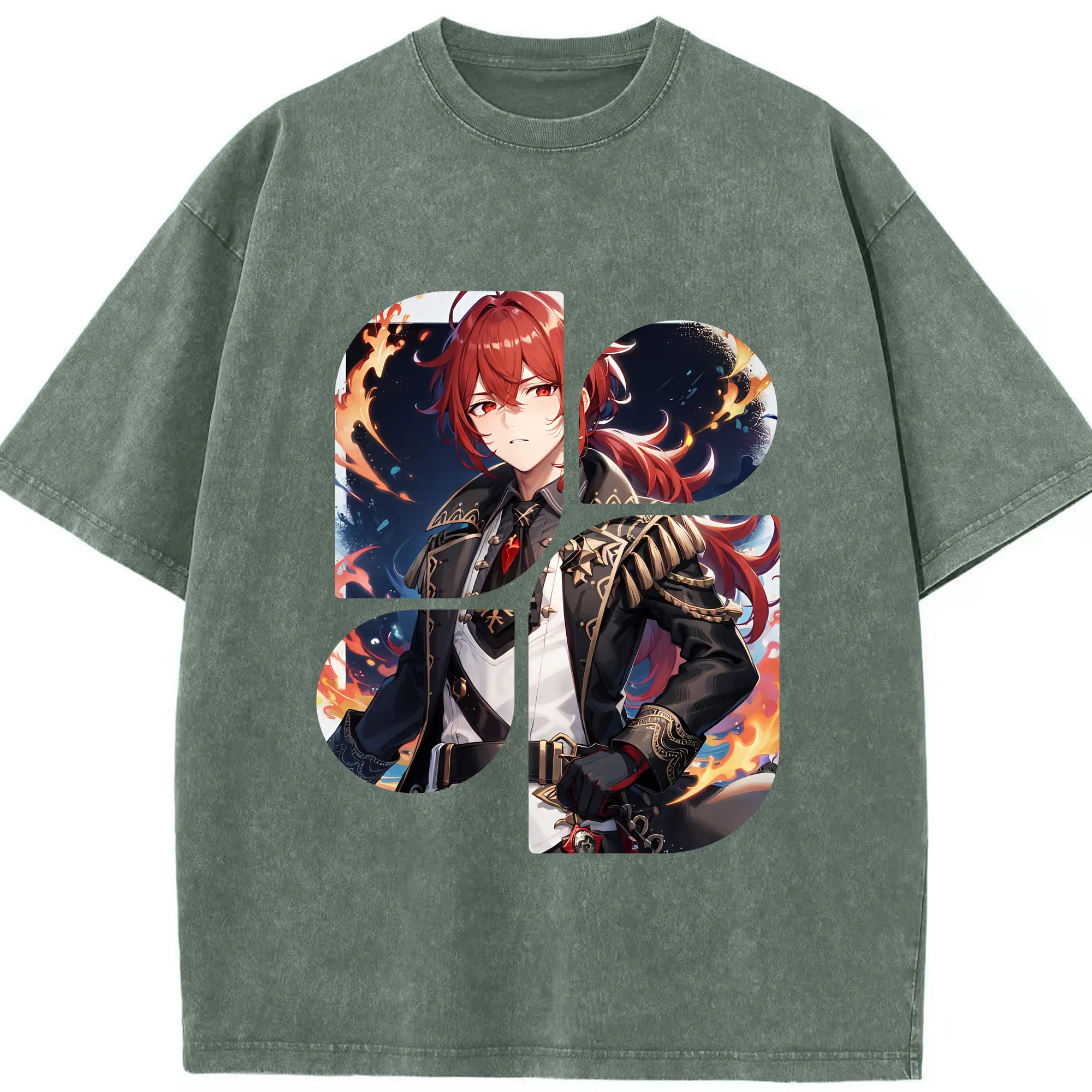 原 神 グッズ ディルック - 綿100% ヴィンテージ風 半袖Tシャツ ・ 背面プリント ・ 柔らか肌触り ・ 通気性 快適 ・ スポーツ カジュアル 外出用
