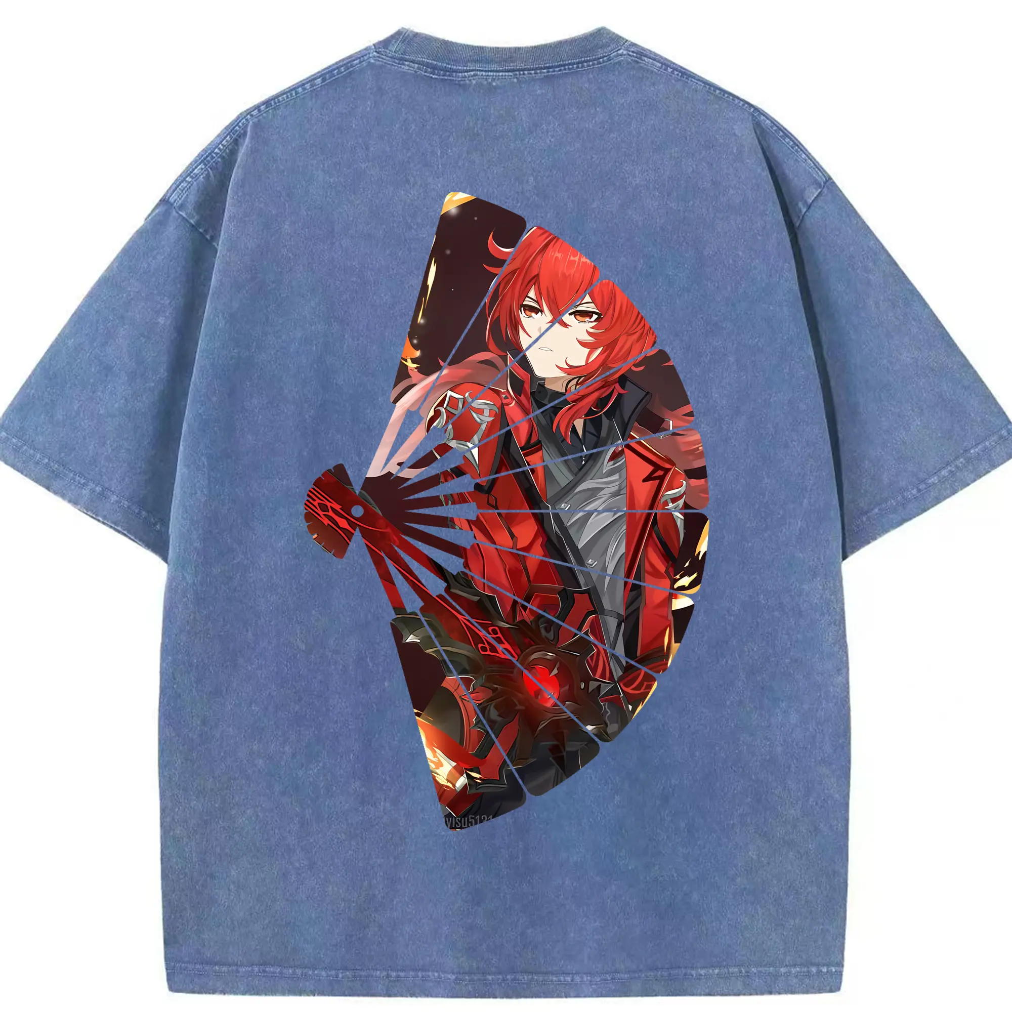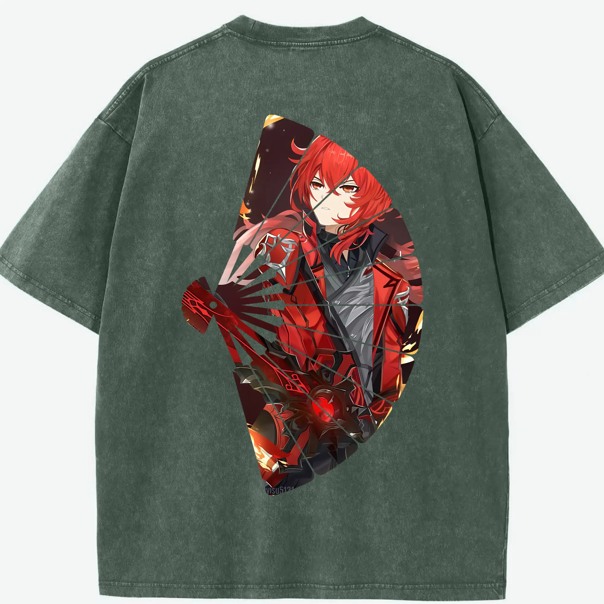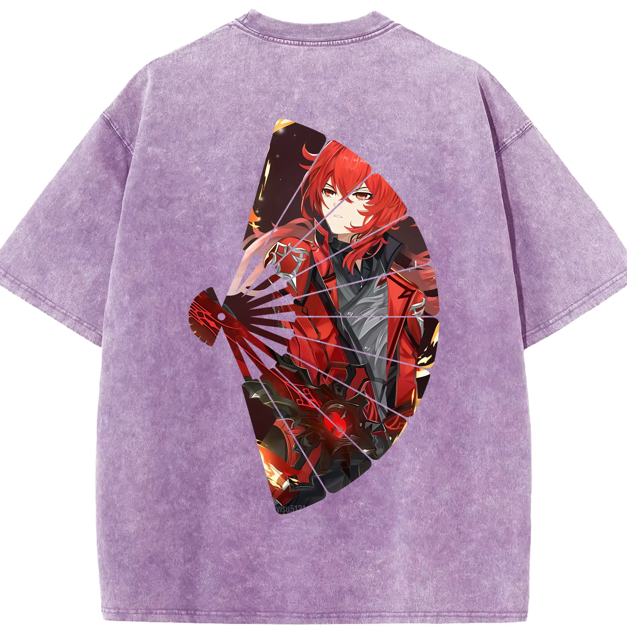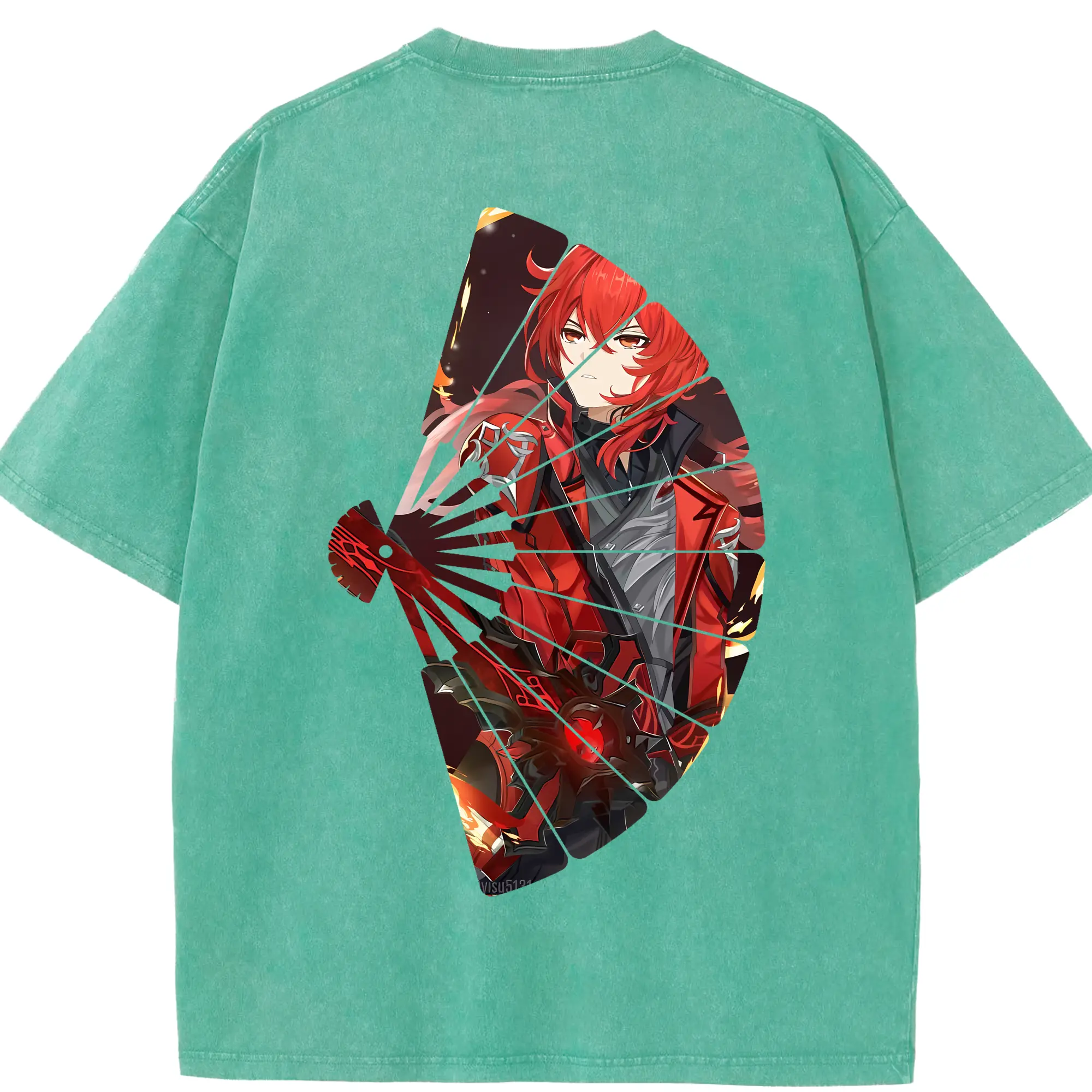 原 神 グッズ ディルック - 綿100% ヴィンテージ風 半袖Tシャツ ・ フロントプリント ・ 柔らか肌触り ・ 通気性 快適 ・ スポーツ カジュアル 外出用