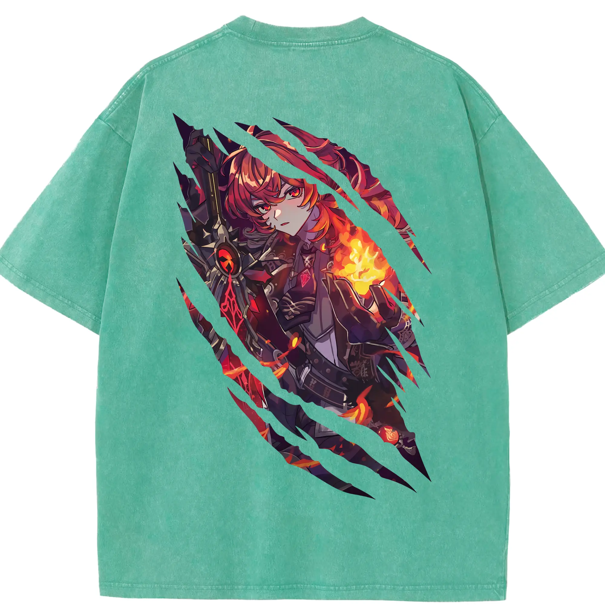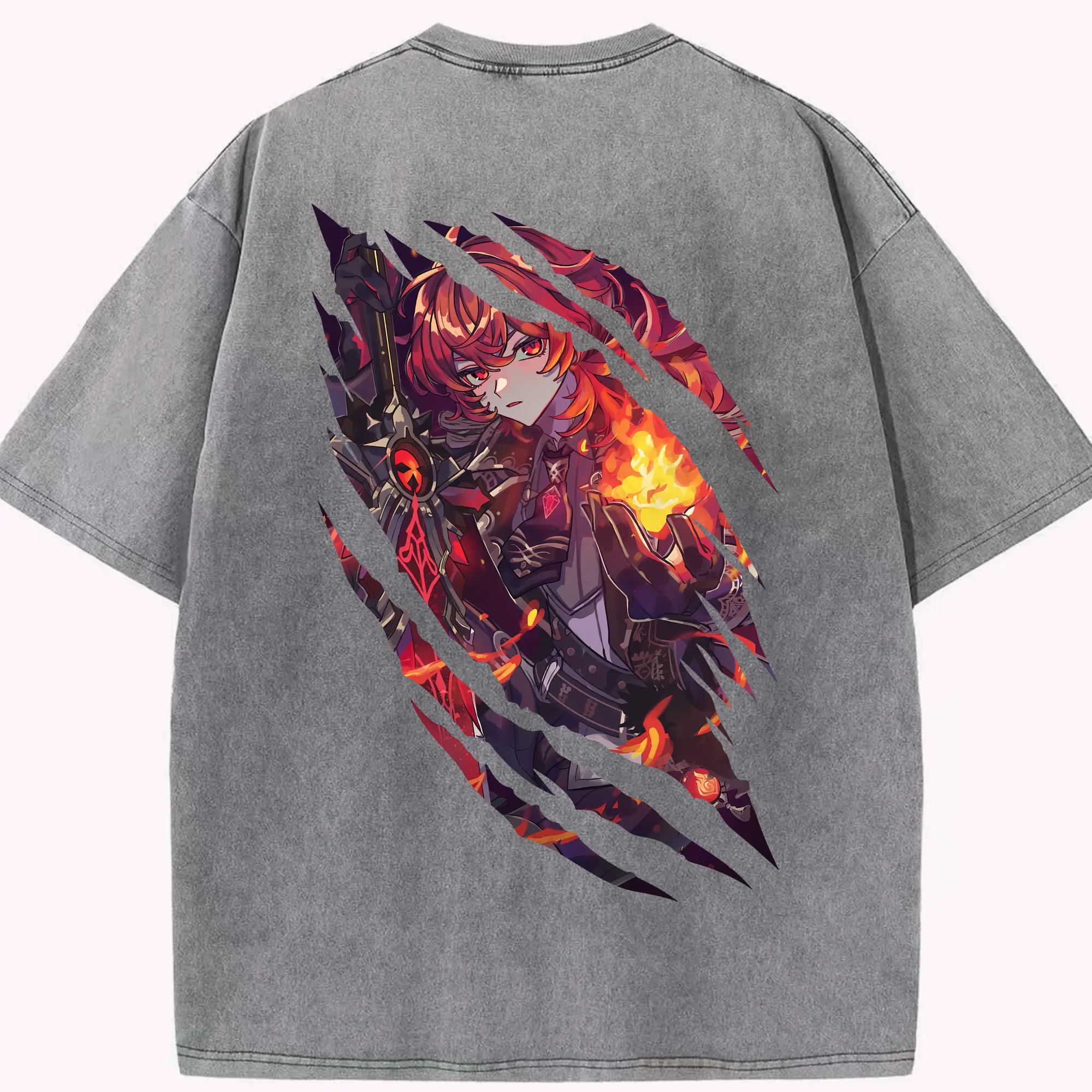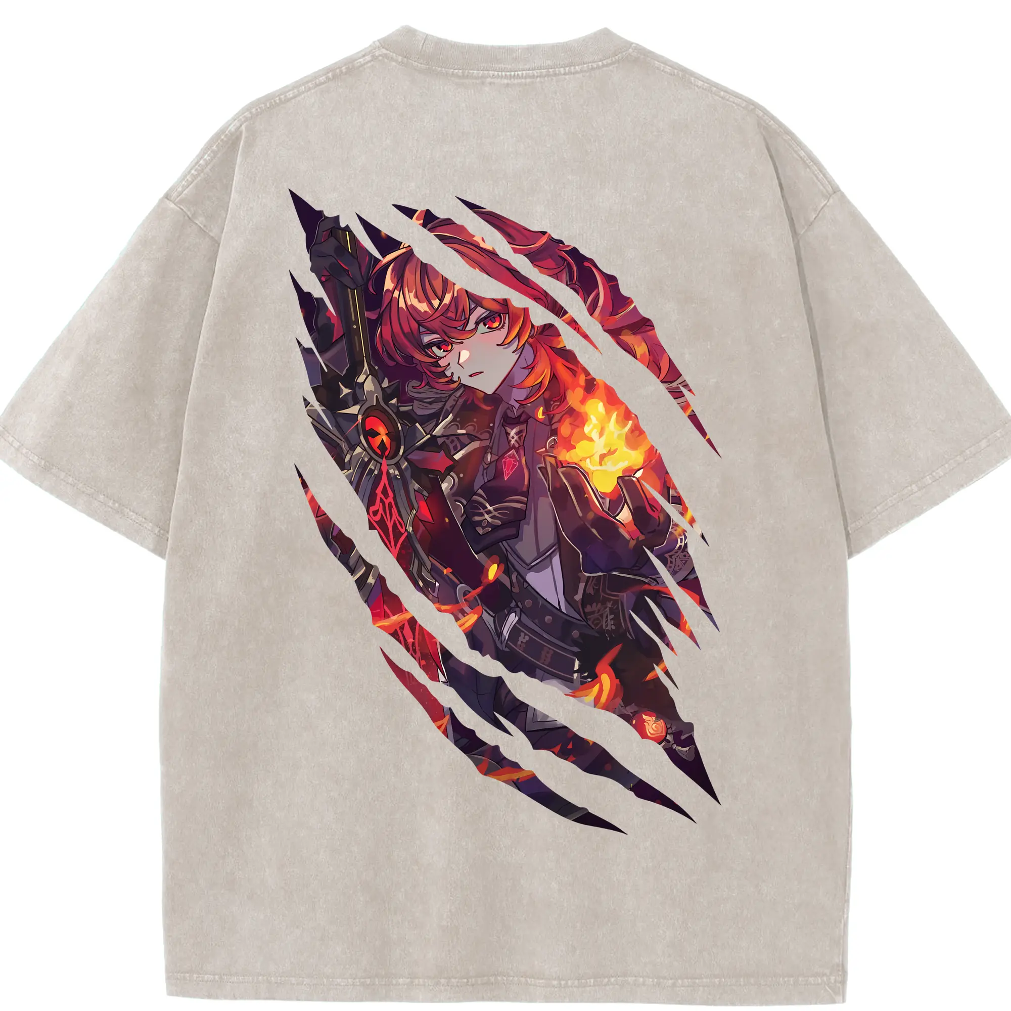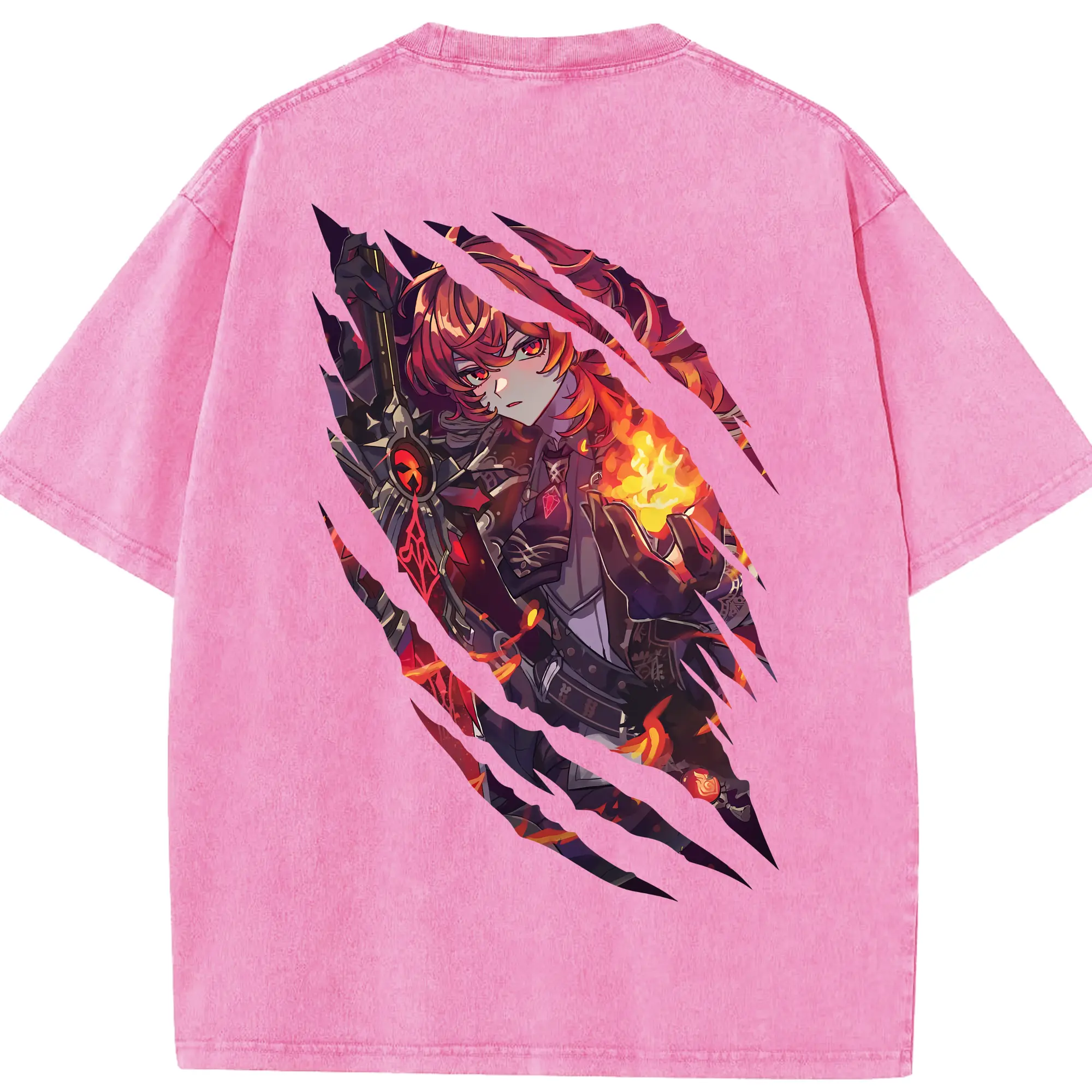 原 神 グッズ ディルック - 綿100% ヴィンテージ風 半袖Tシャツ ・ フロントプリント ・ 柔らか肌触り ・ 通気性 快適 ・ スポーツ カジュアル 外出用