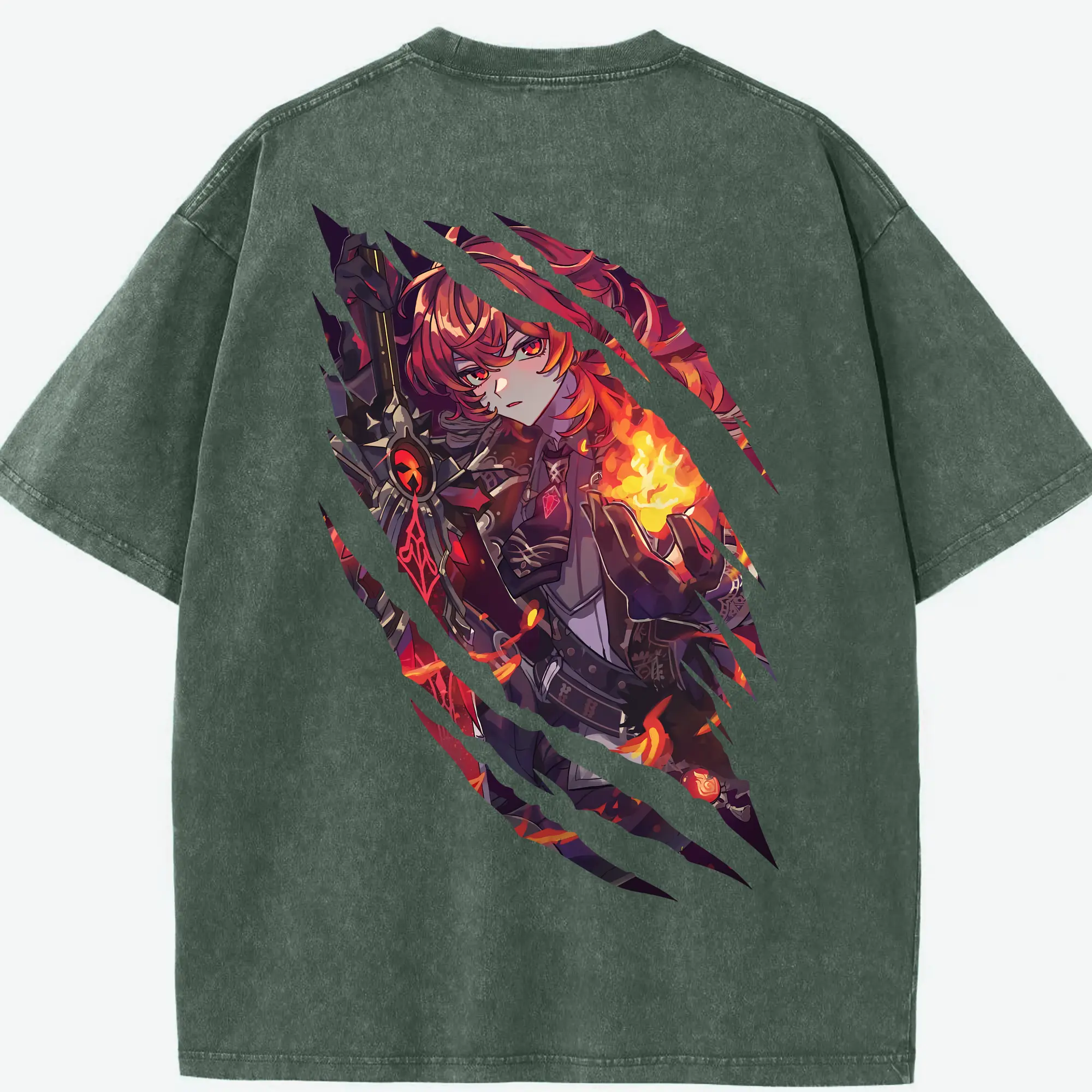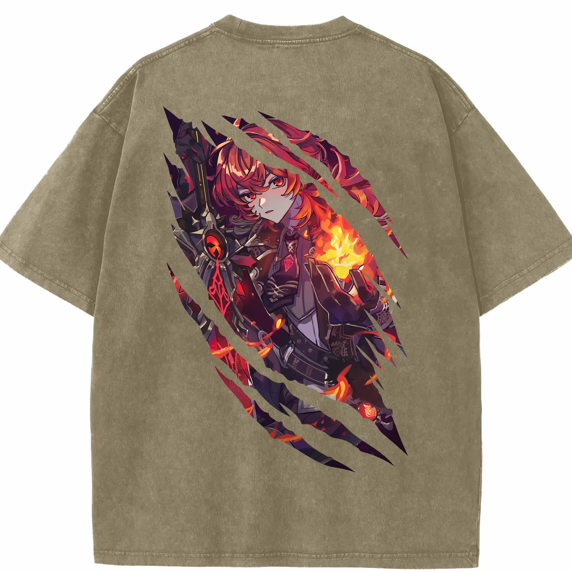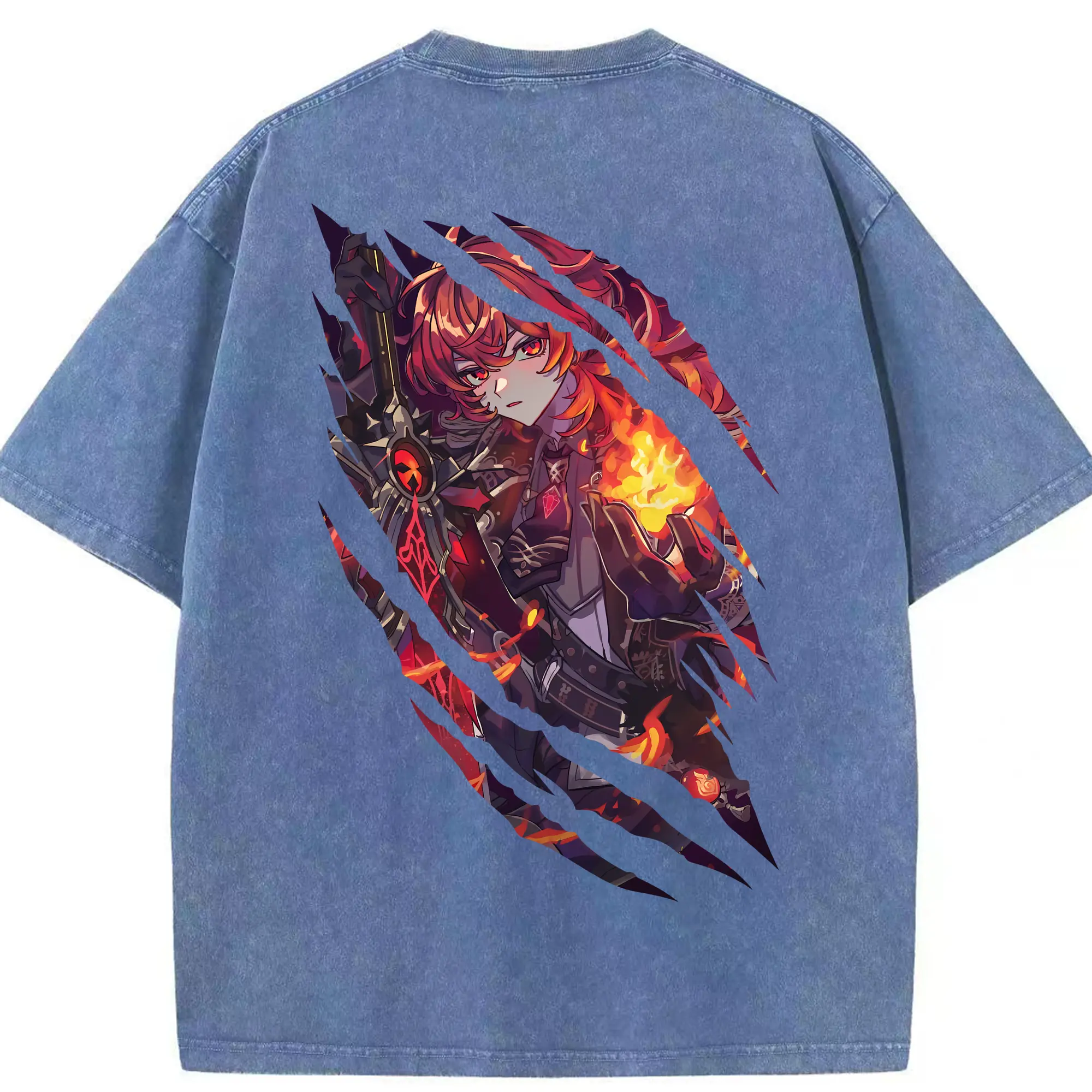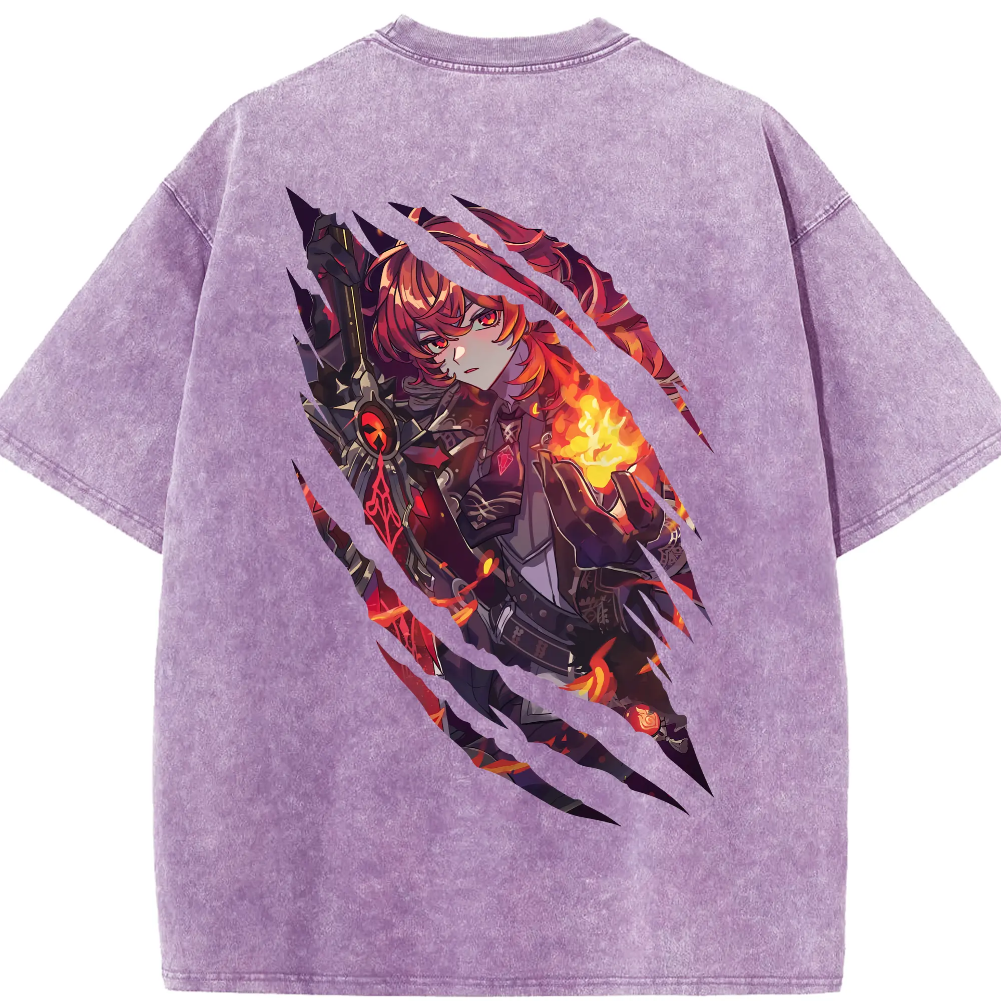 原 神 グッズ ディルック - 綿100% ヴィンテージ風 半袖Tシャツ ・ フロントプリント ・ 柔らか肌触り ・ 通気性 快適 ・ スポーツ カジュアル 外出用