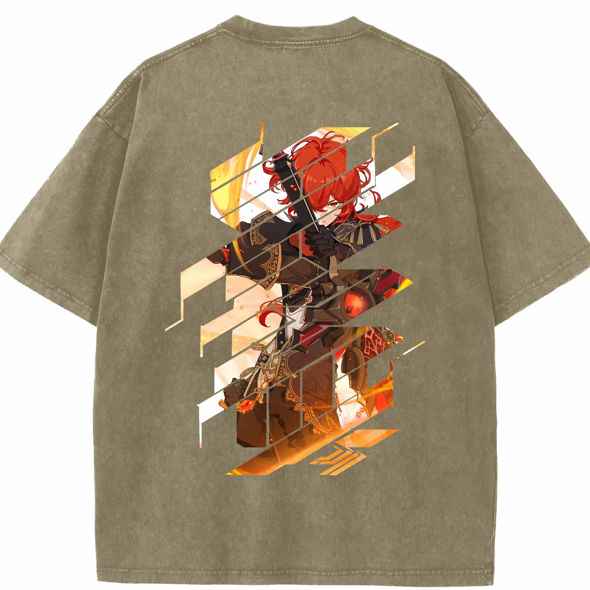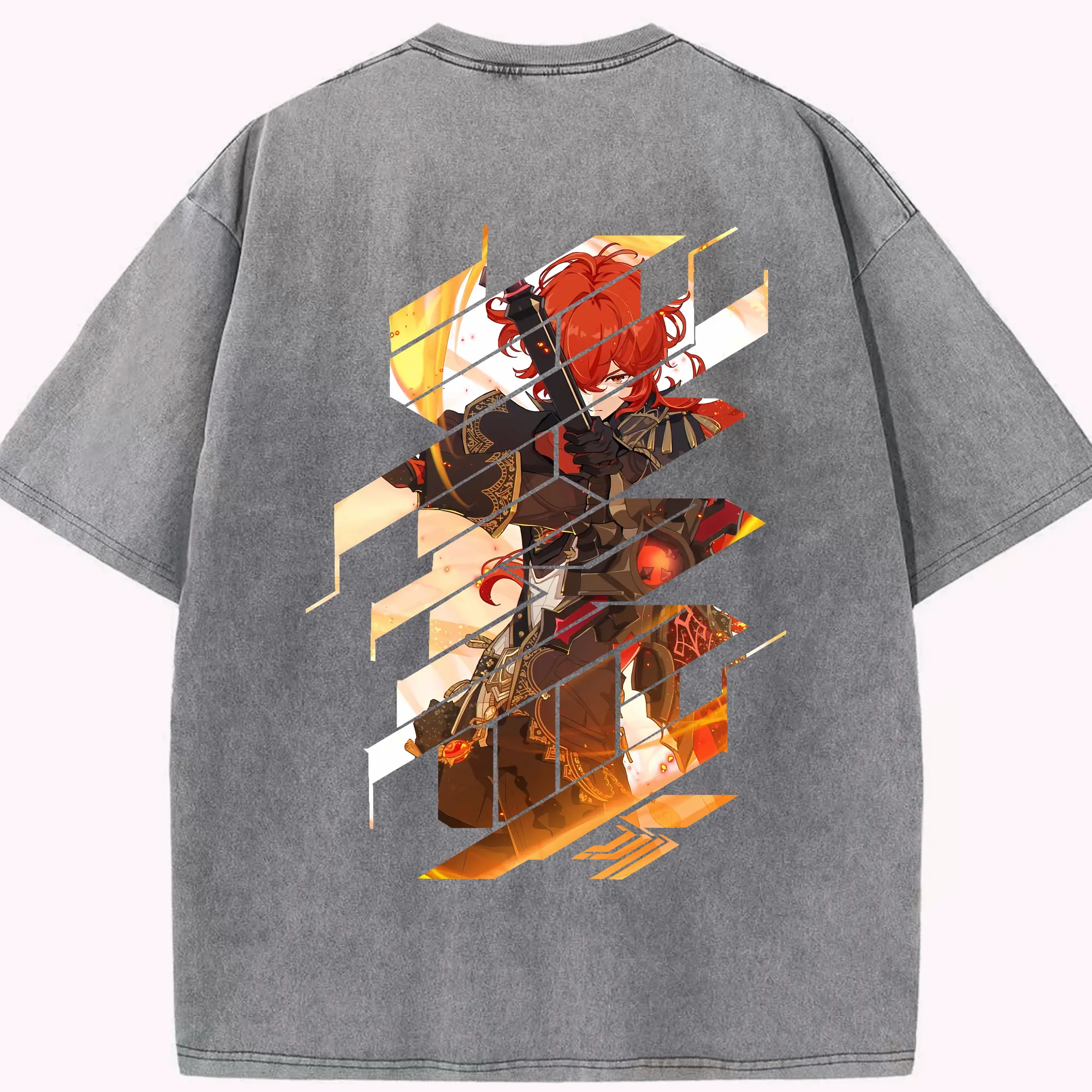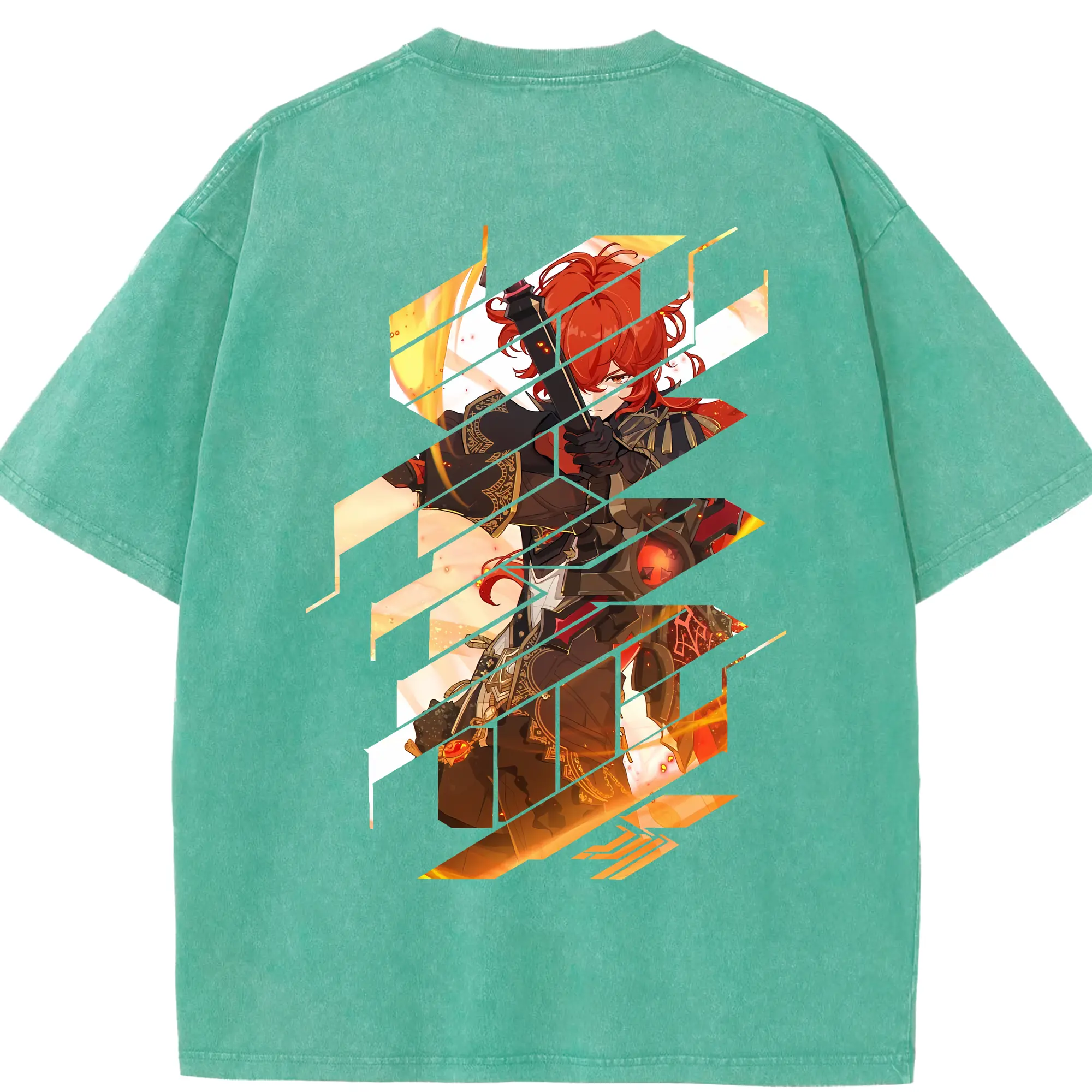 原 神 グッズ ディルック - 綿100% ヴィンテージ風 半袖Tシャツ ・ フロントプリント ・ 柔らか肌触り ・ 通気性 快適 ・ スポーツ カジュアル 外出用