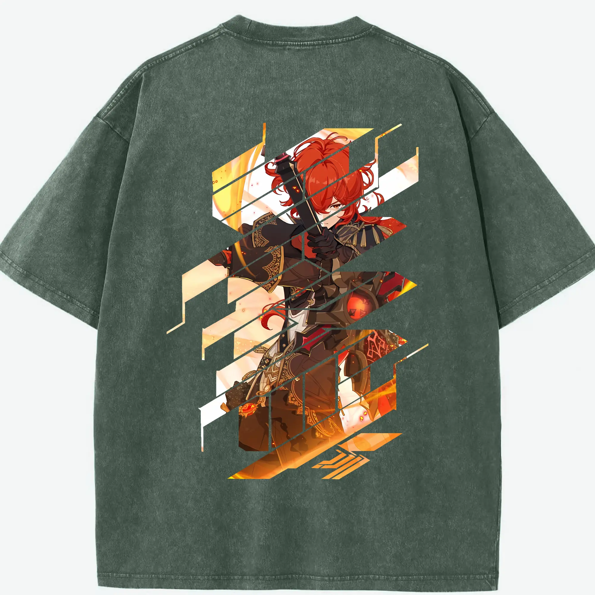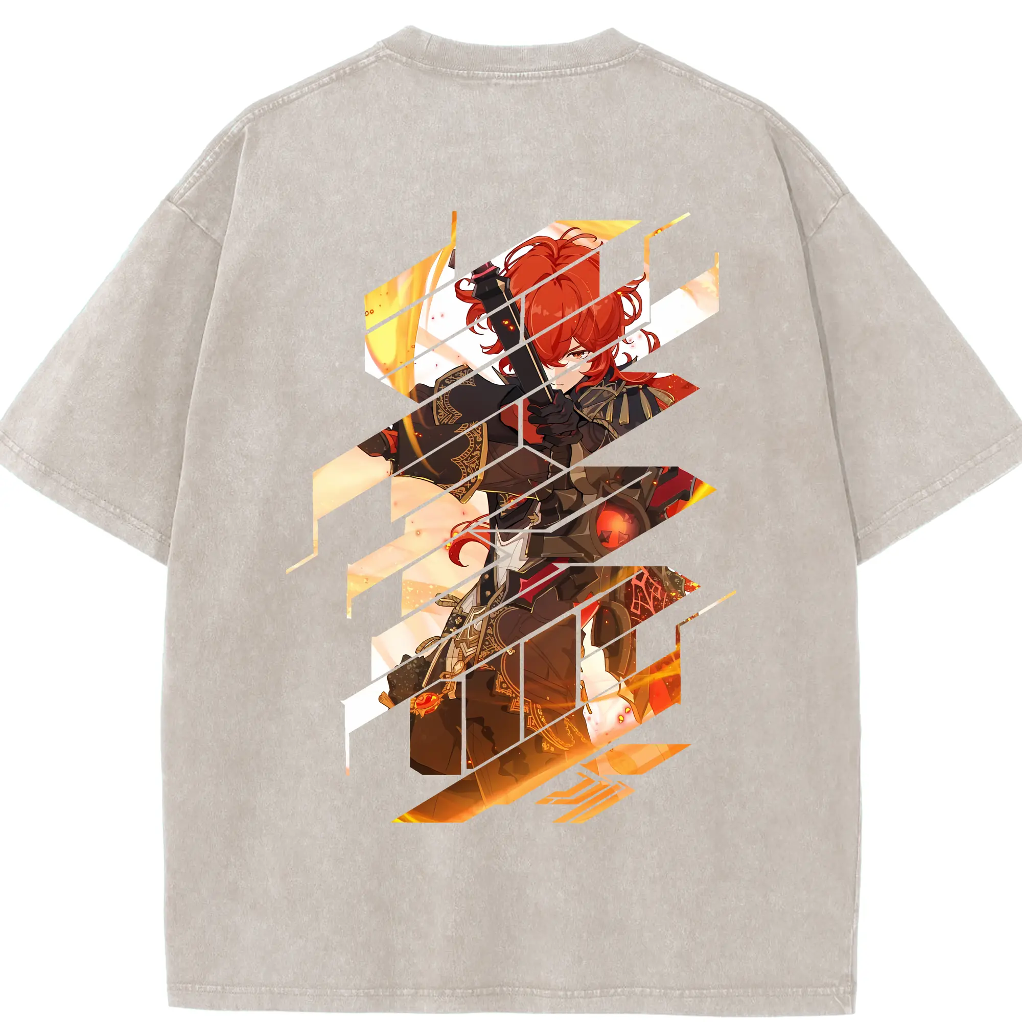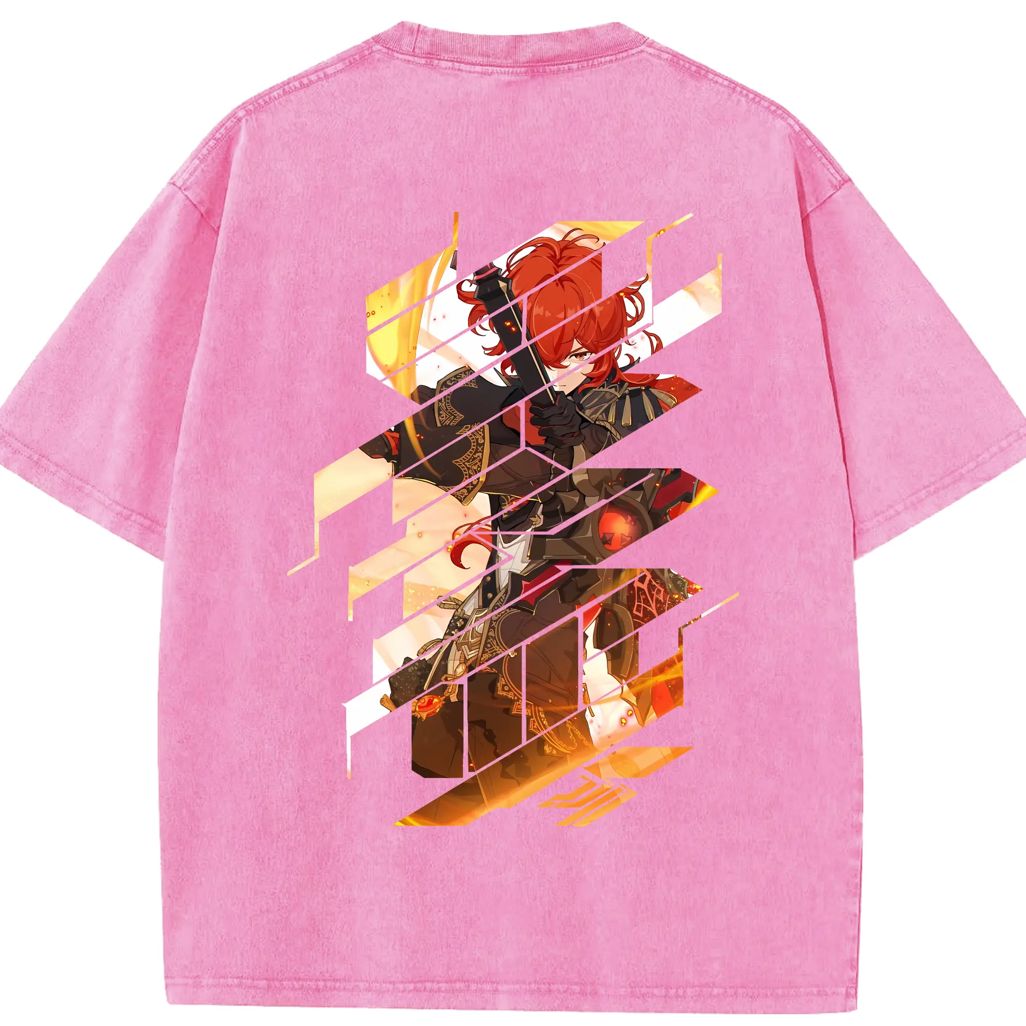 原 神 グッズ ディルック - 綿100% ヴィンテージ風 半袖Tシャツ ・ フロントプリント ・ 柔らか肌触り ・ 通気性 快適 ・ スポーツ カジュアル 外出用
