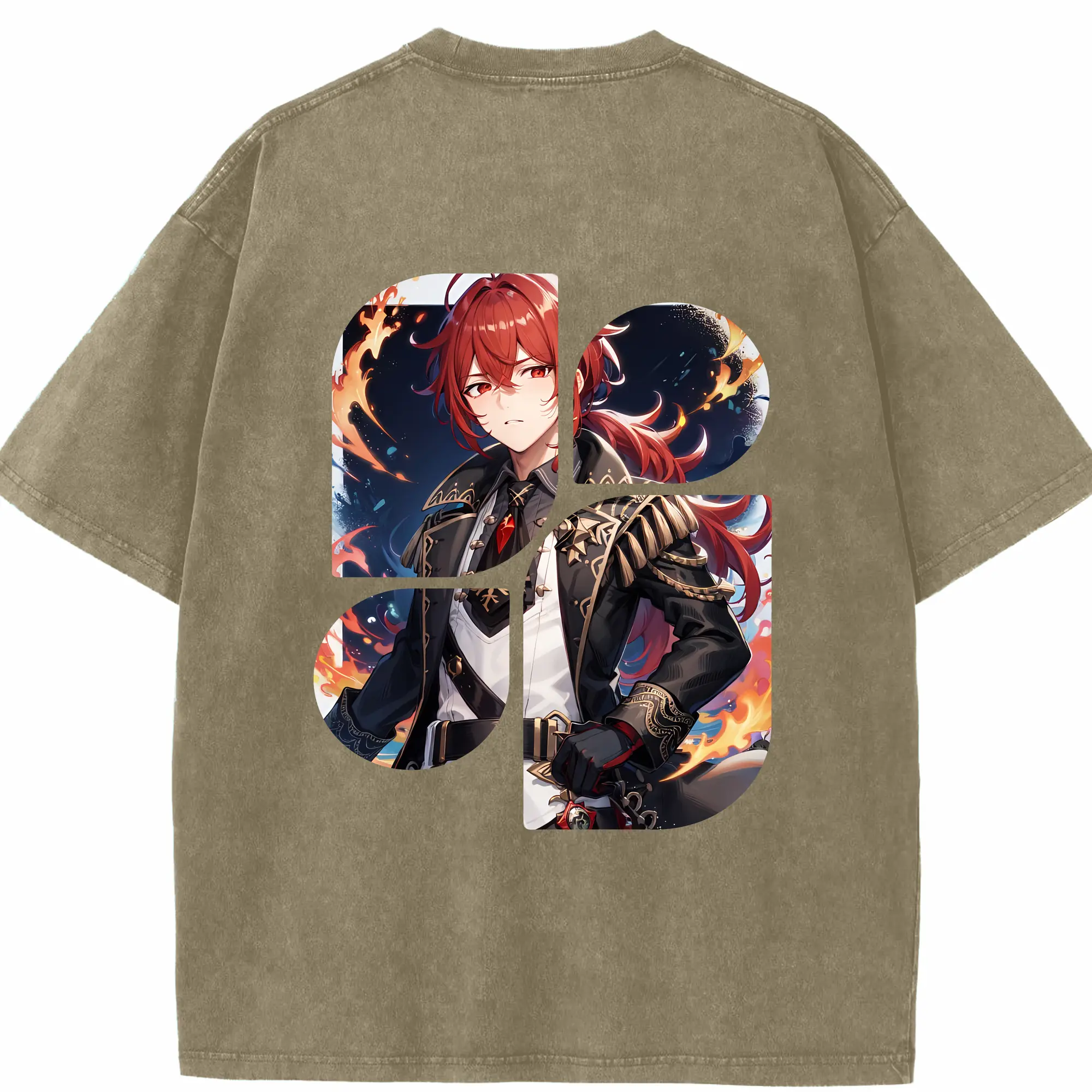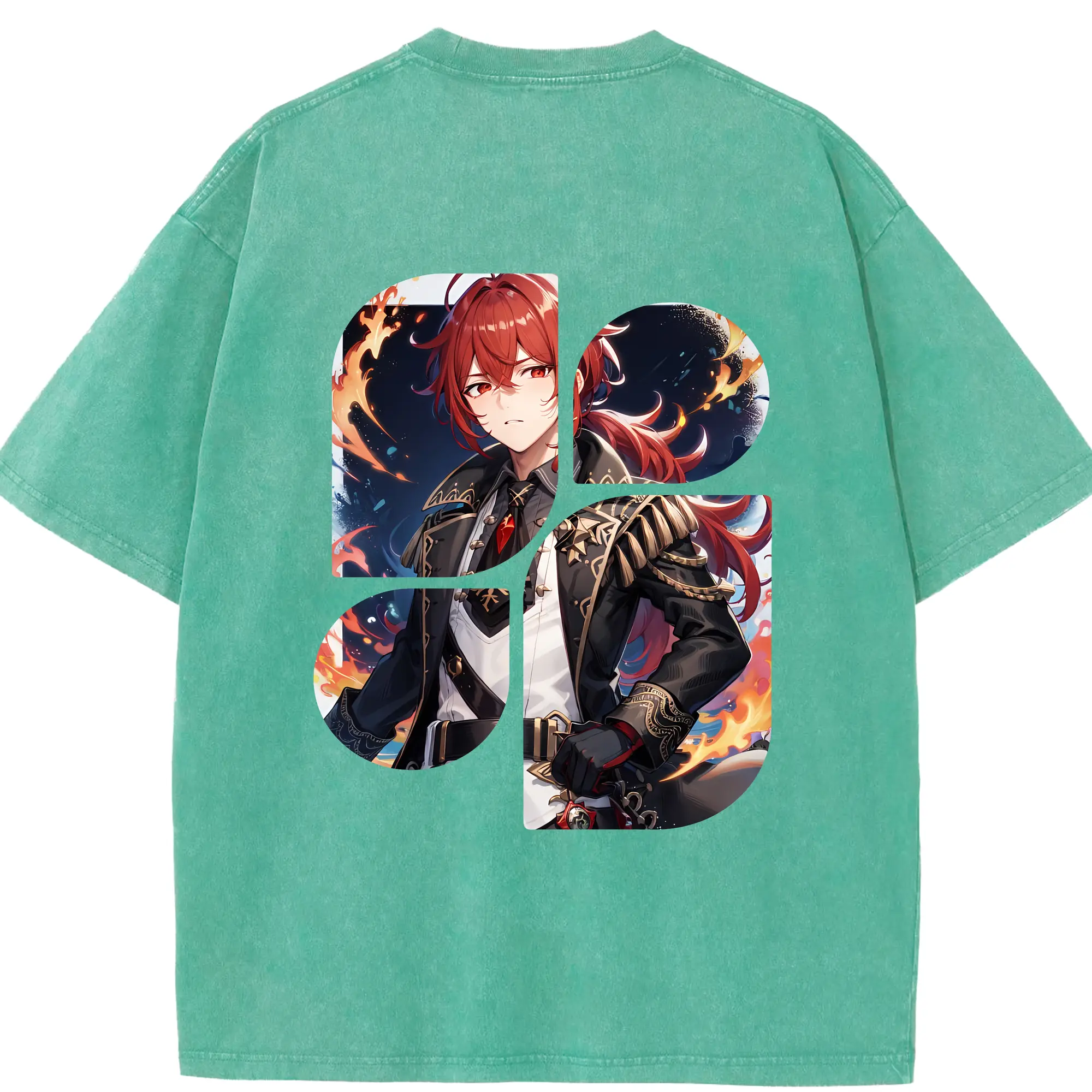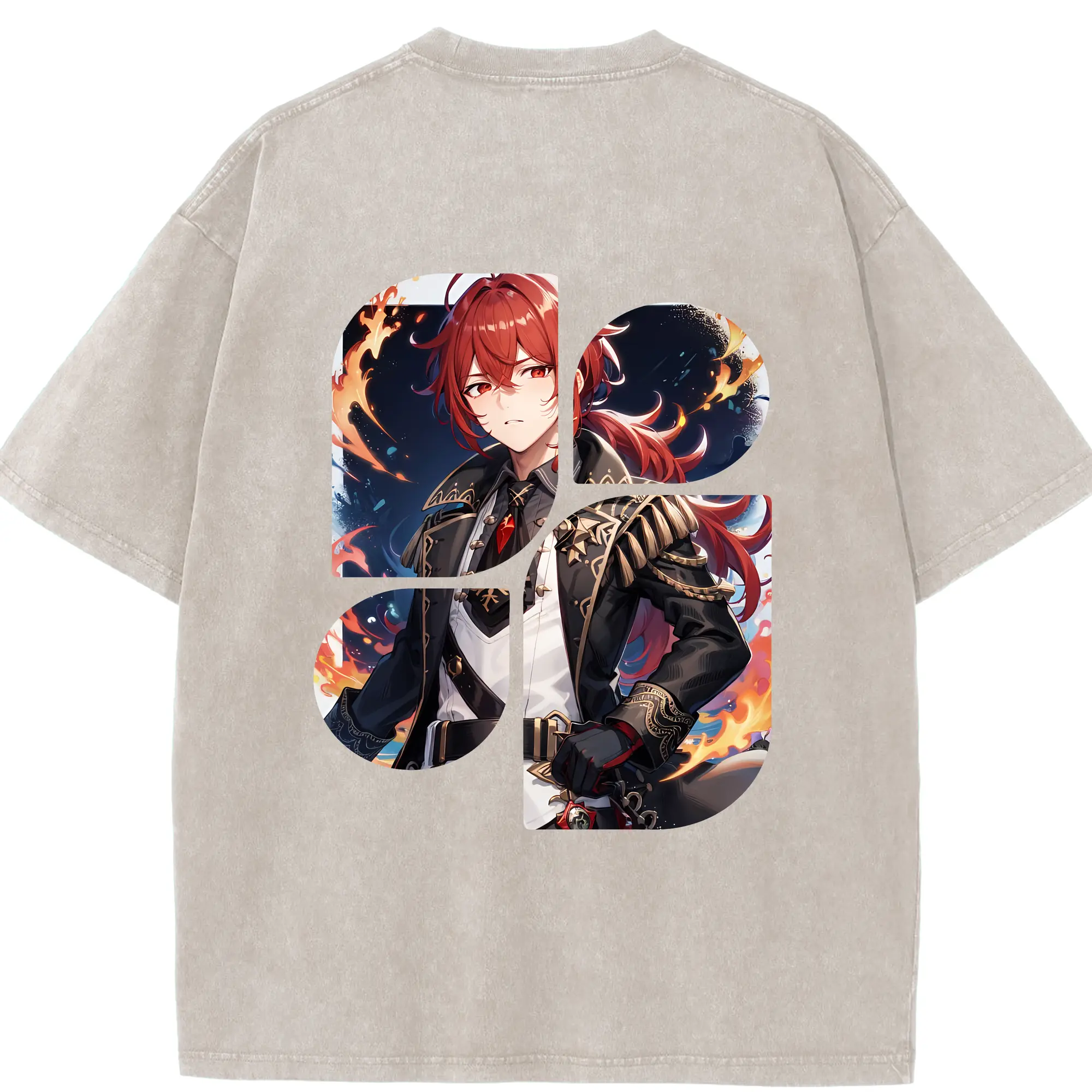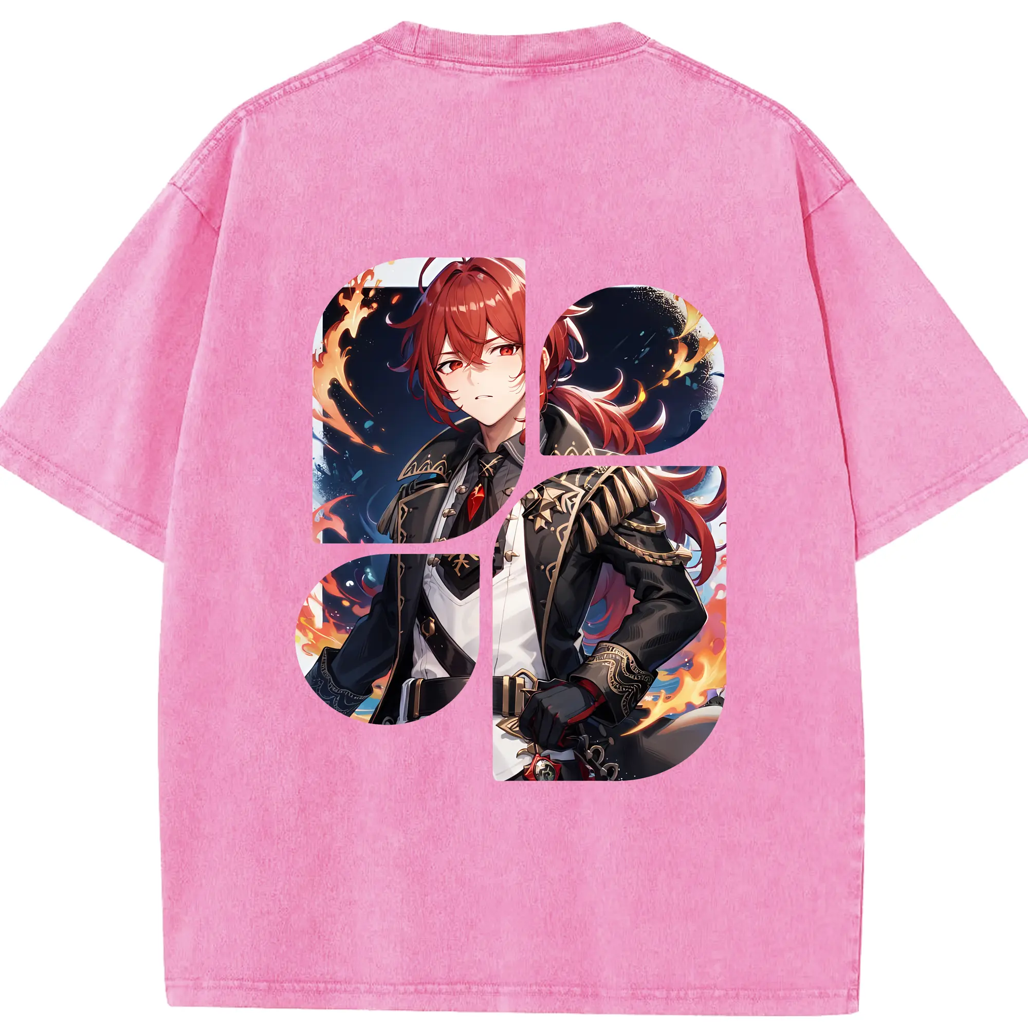 原 神 グッズ ディルック - 綿100% ヴィンテージ風 半袖Tシャツ ・ フロントプリント ・ 柔らか肌触り ・ 通気性 快適 ・ スポーツ カジュアル 外出用