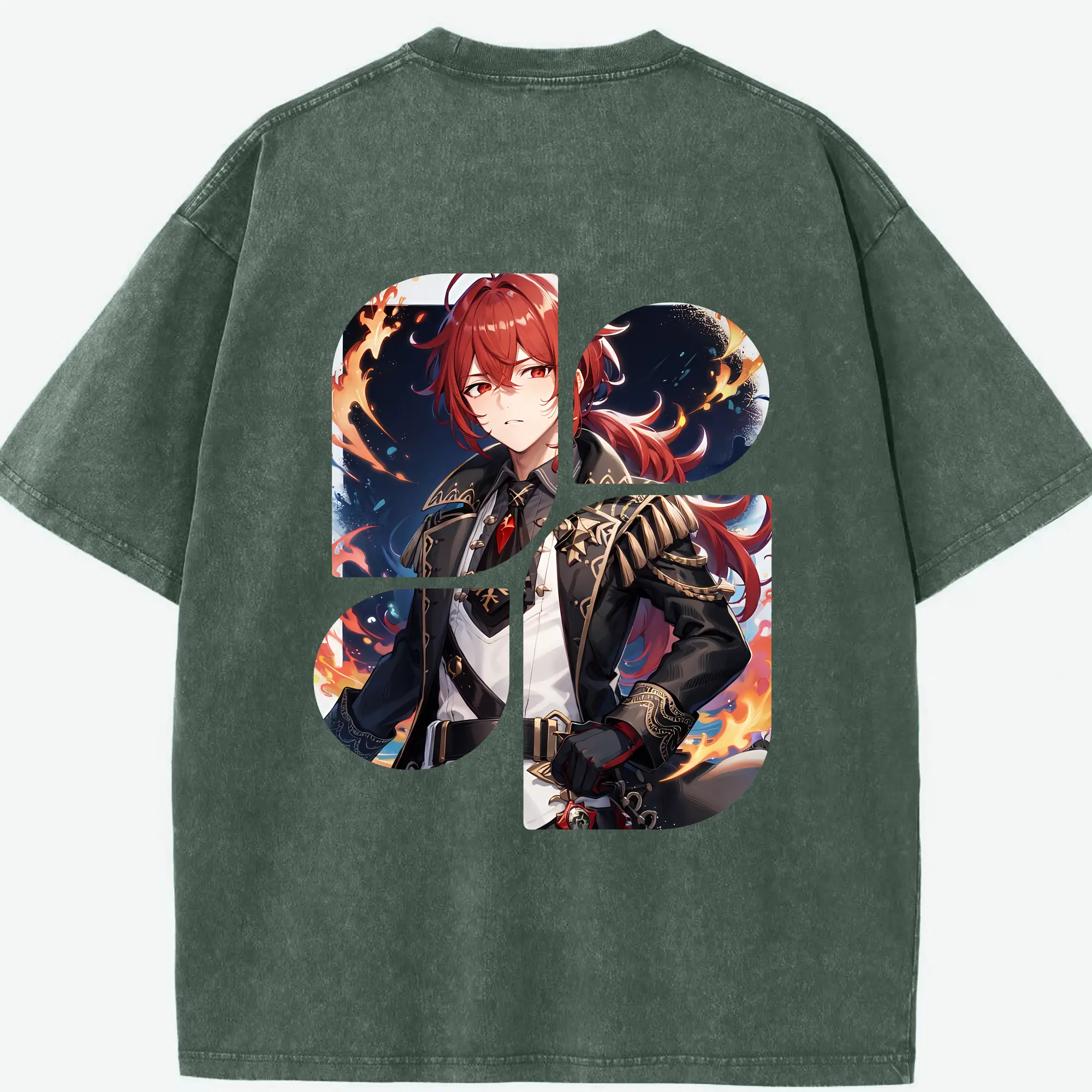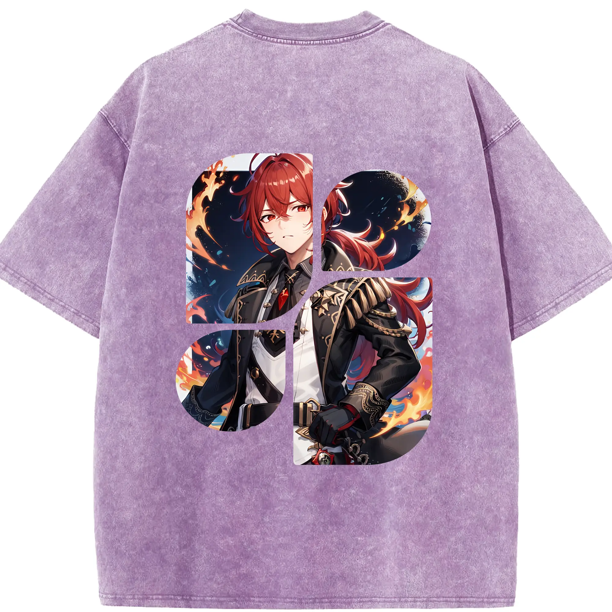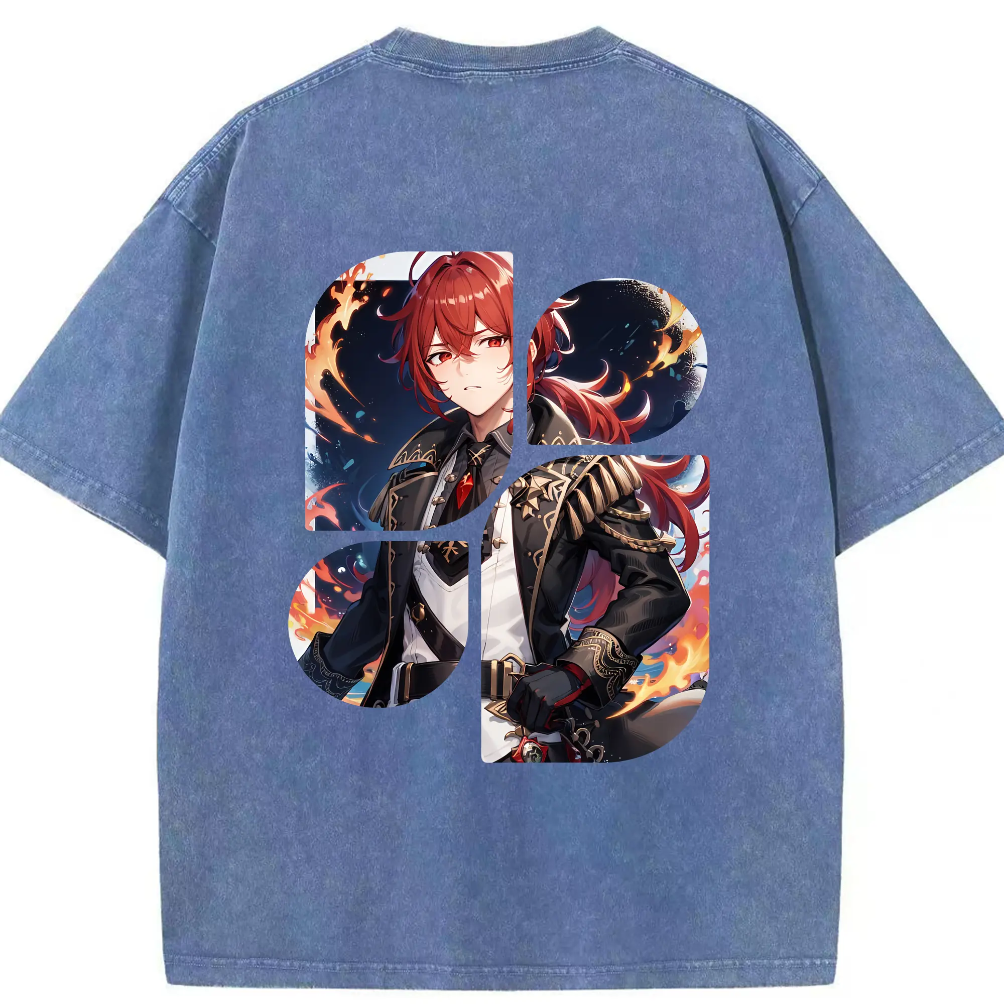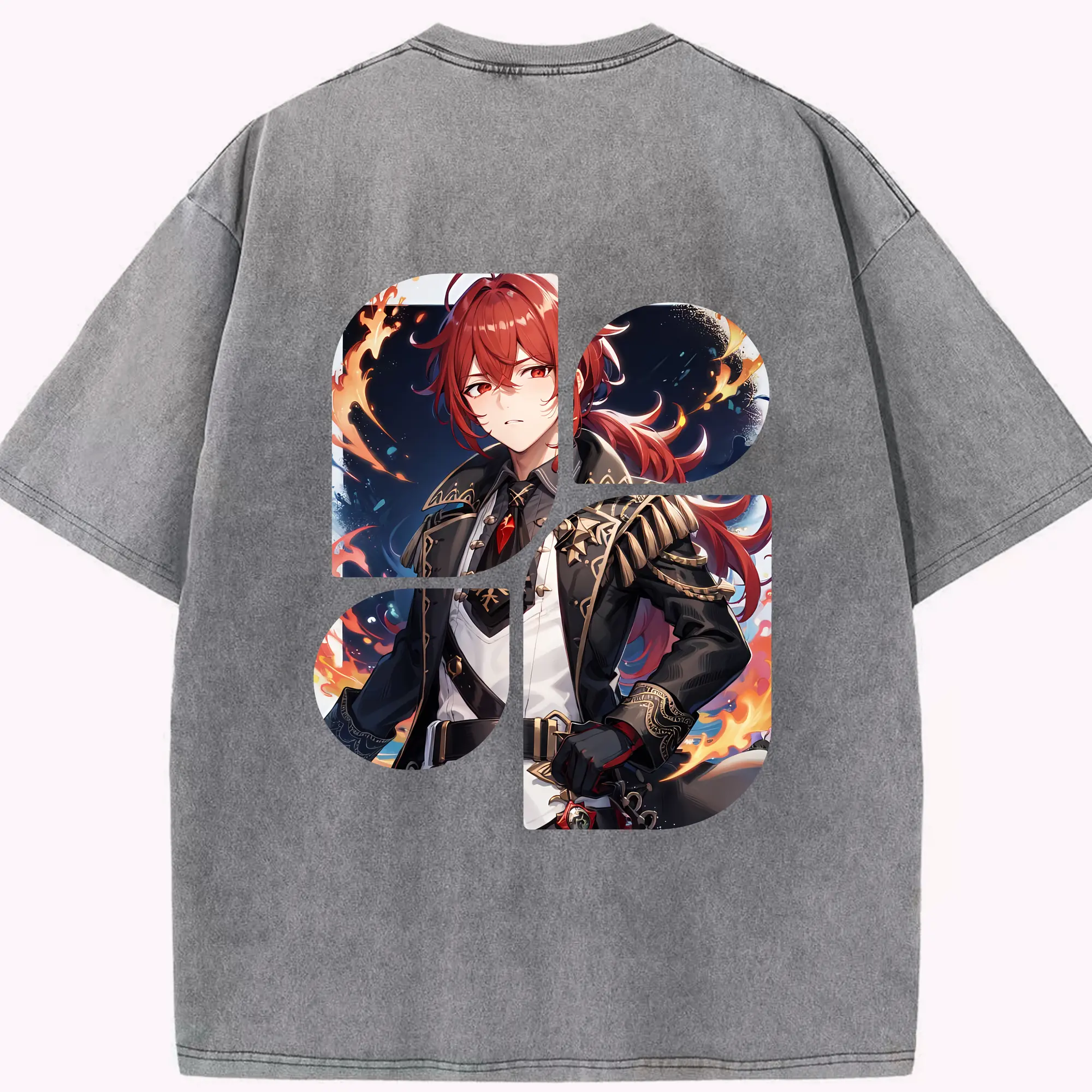 原 神 グッズ ディルック - 綿100% ヴィンテージ風 半袖Tシャツ ・ フロントプリント ・ 柔らか肌触り ・ 通気性 快適 ・ スポーツ カジュアル 外出用