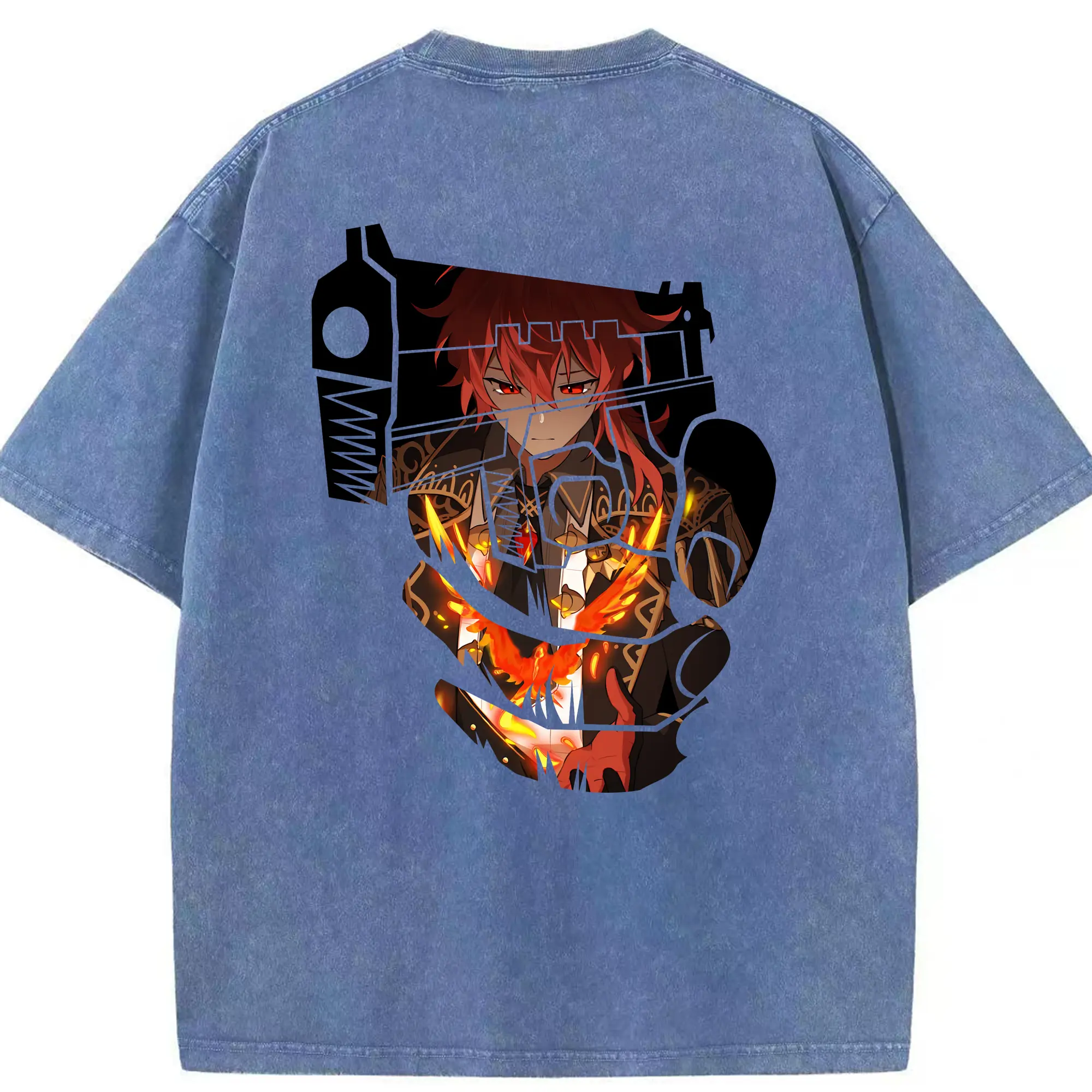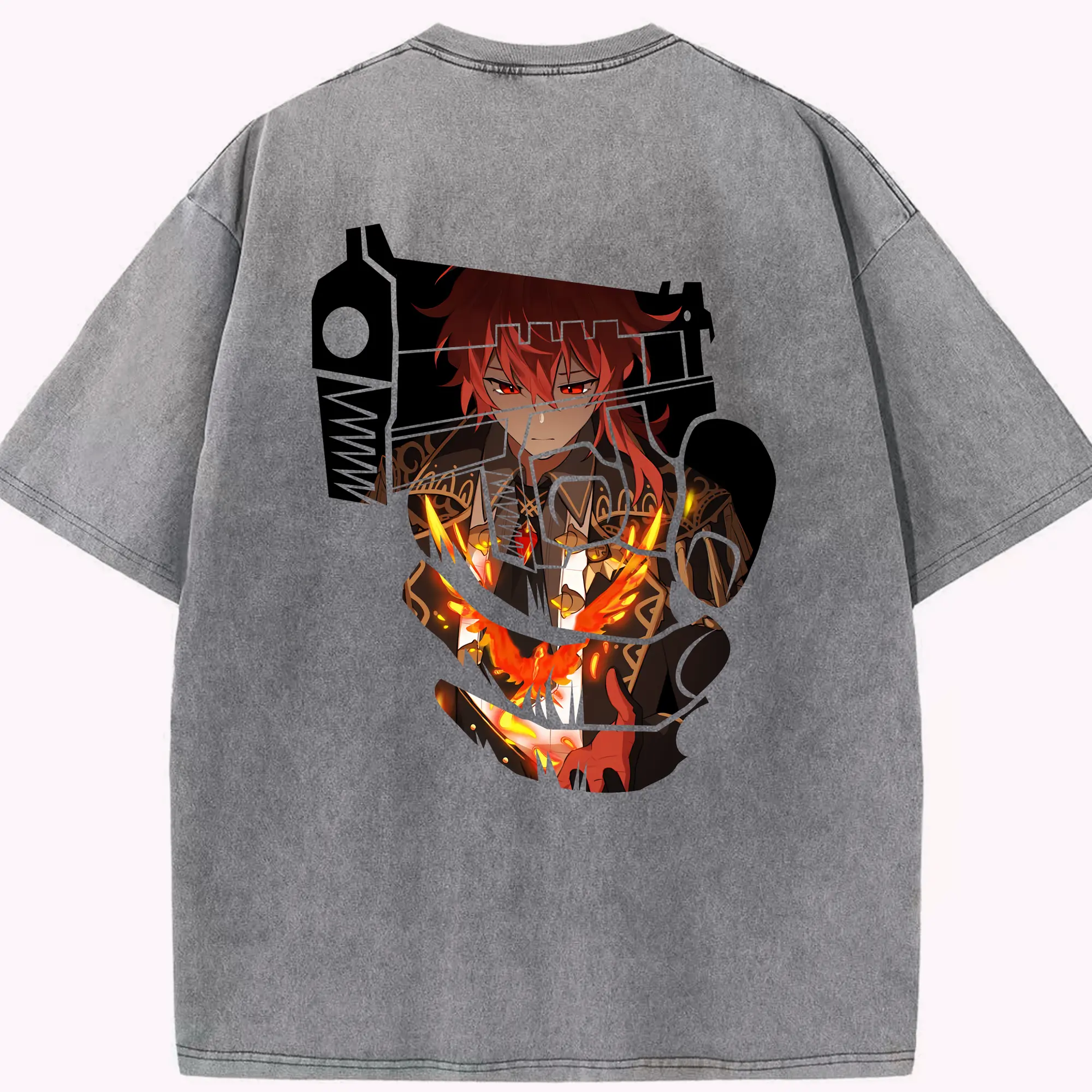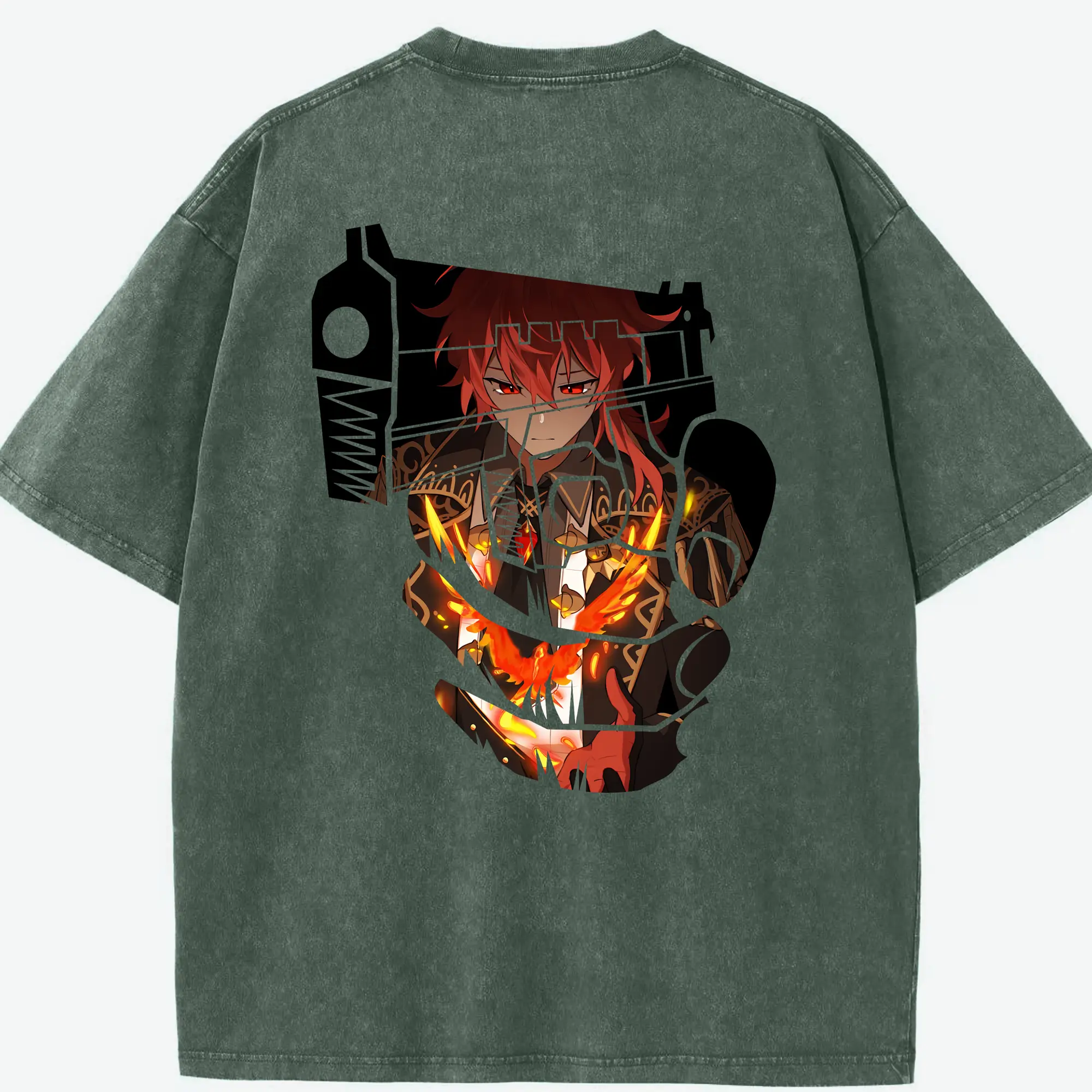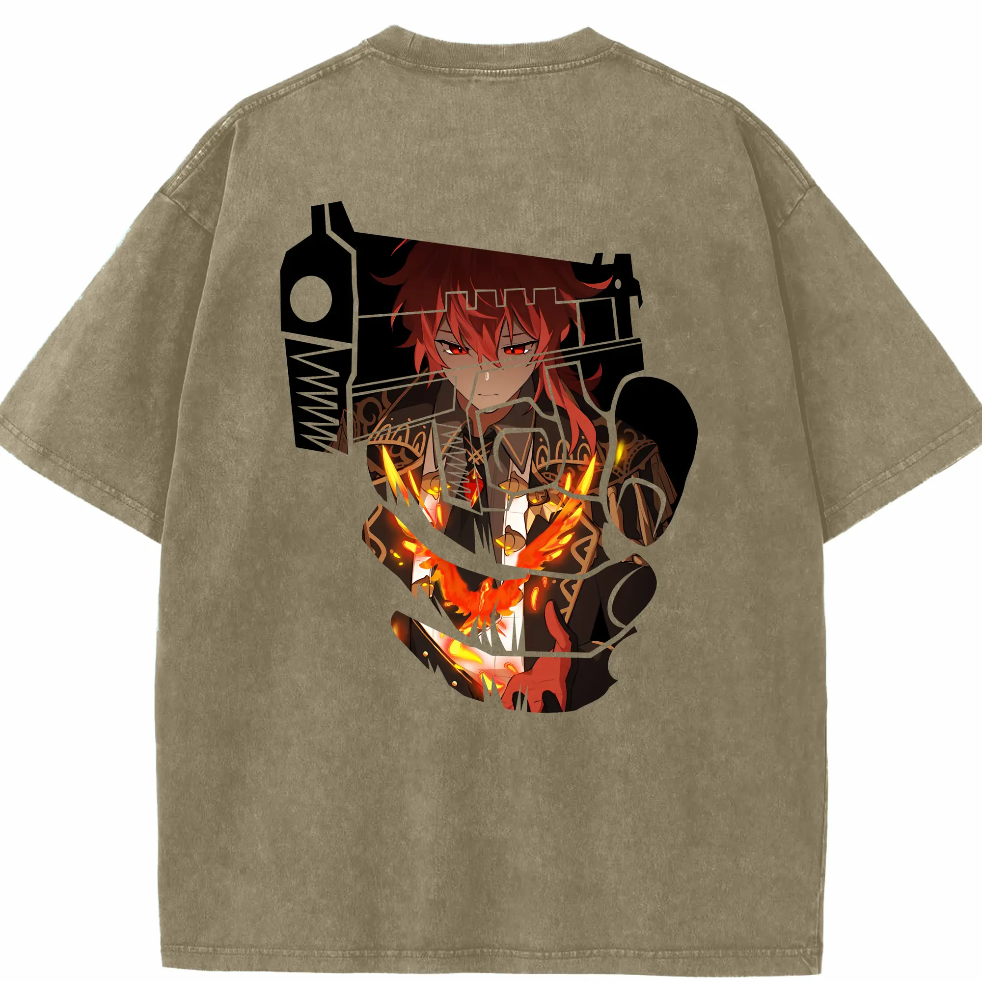 ハンター×ハンター グッズ フェイタン=ポートオ - 綿100% ヴィンテージ風 半袖Tシャツ ・ 背面プリント ・ 柔らか肌触り ・ 通気性 快適 ・ スポーツ カジュアル 外出用