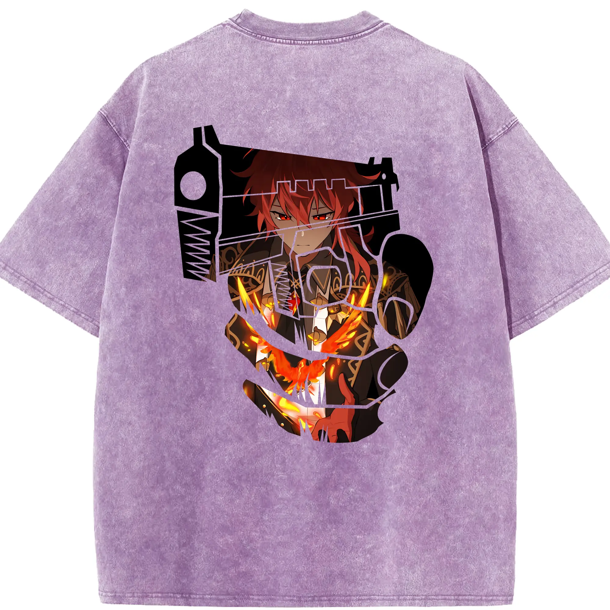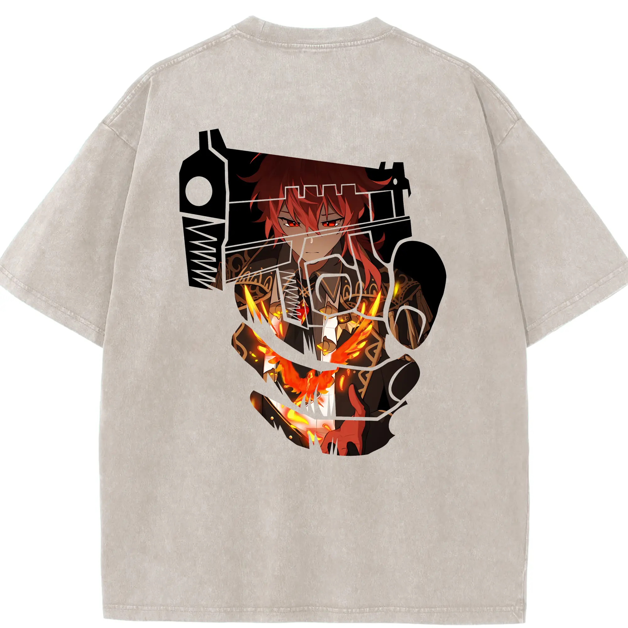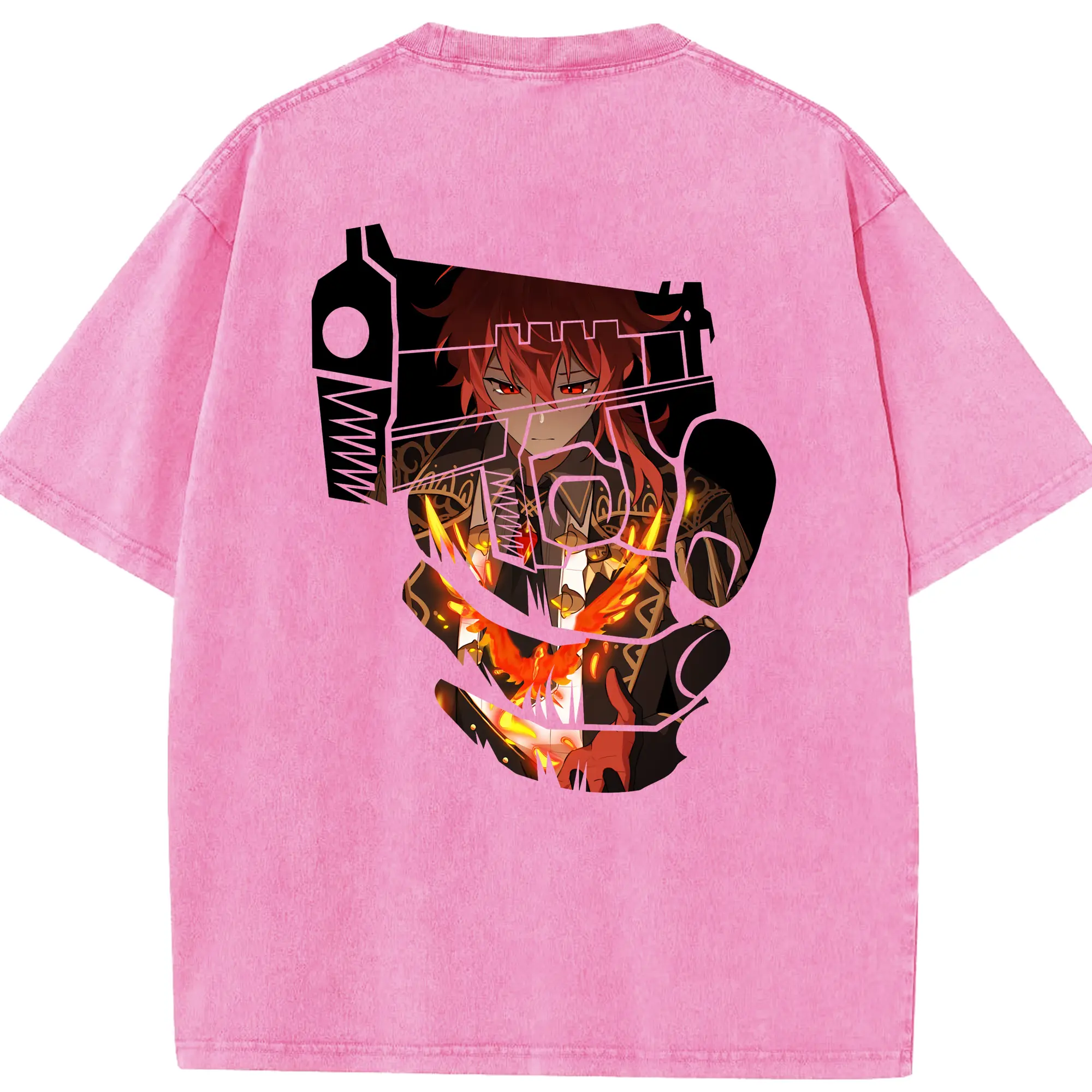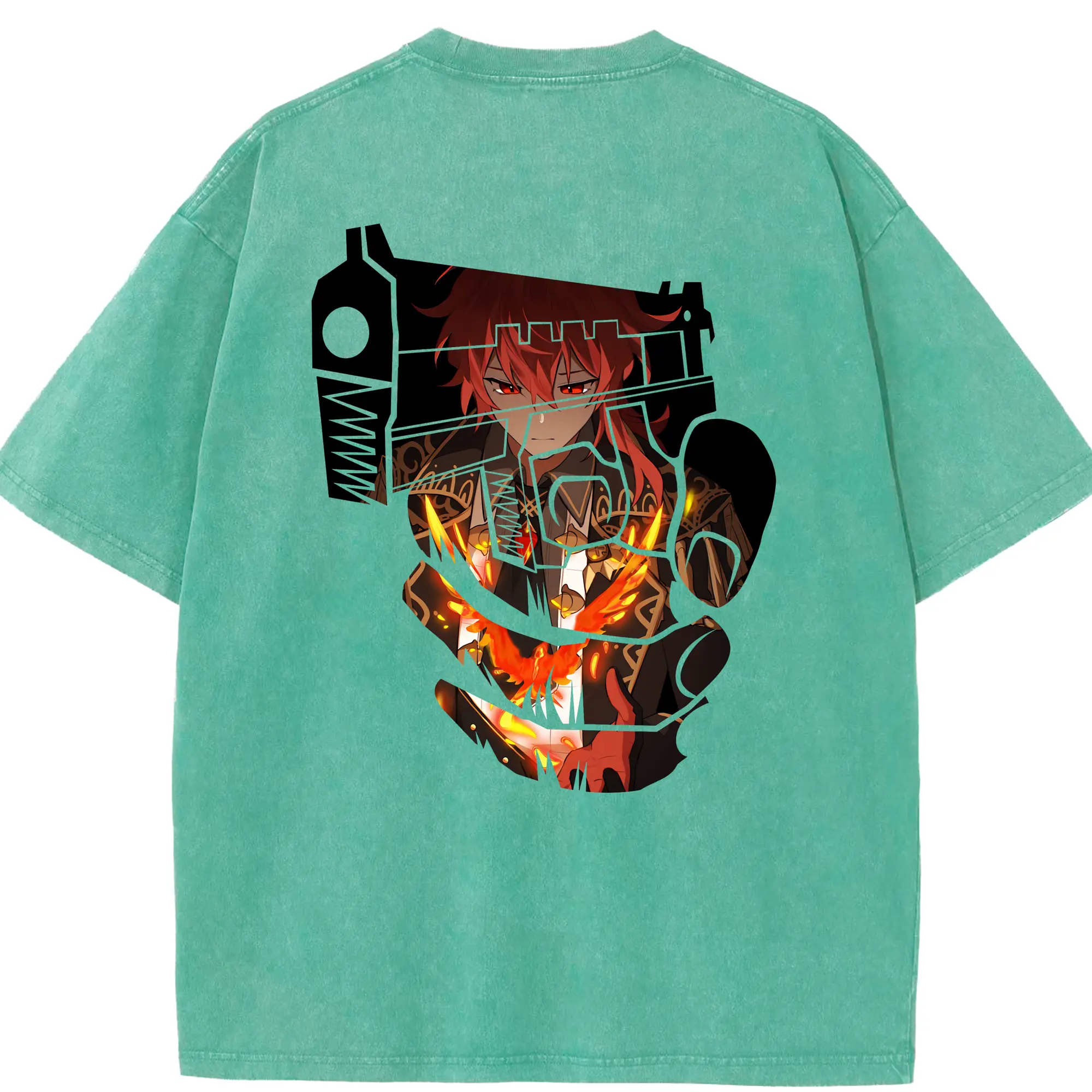 原 神 グッズ ディルック - 綿100% ヴィンテージ風 半袖Tシャツ ・ フロントプリント ・ 柔らか肌触り ・ 通気性 快適 ・ スポーツ カジュアル 外出用