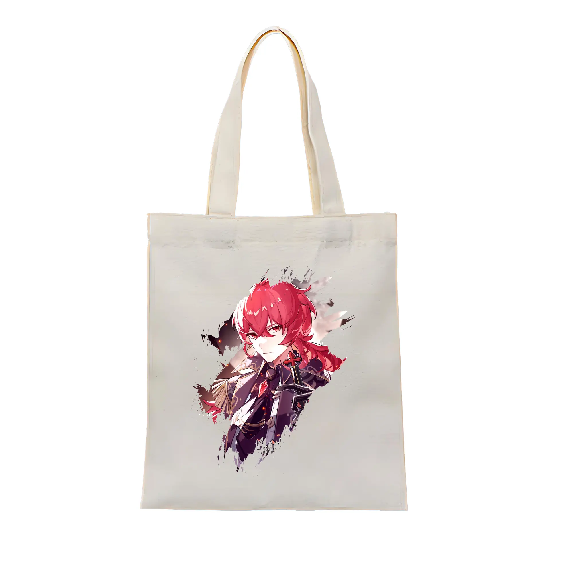 原 神 グッズ ディルック - 縦型キャンバス手提げバッグ(トートバッグ) ・ キャンバス素材 ・ ショッピング用 ・ 軽量 丈夫 お手入れ簡単