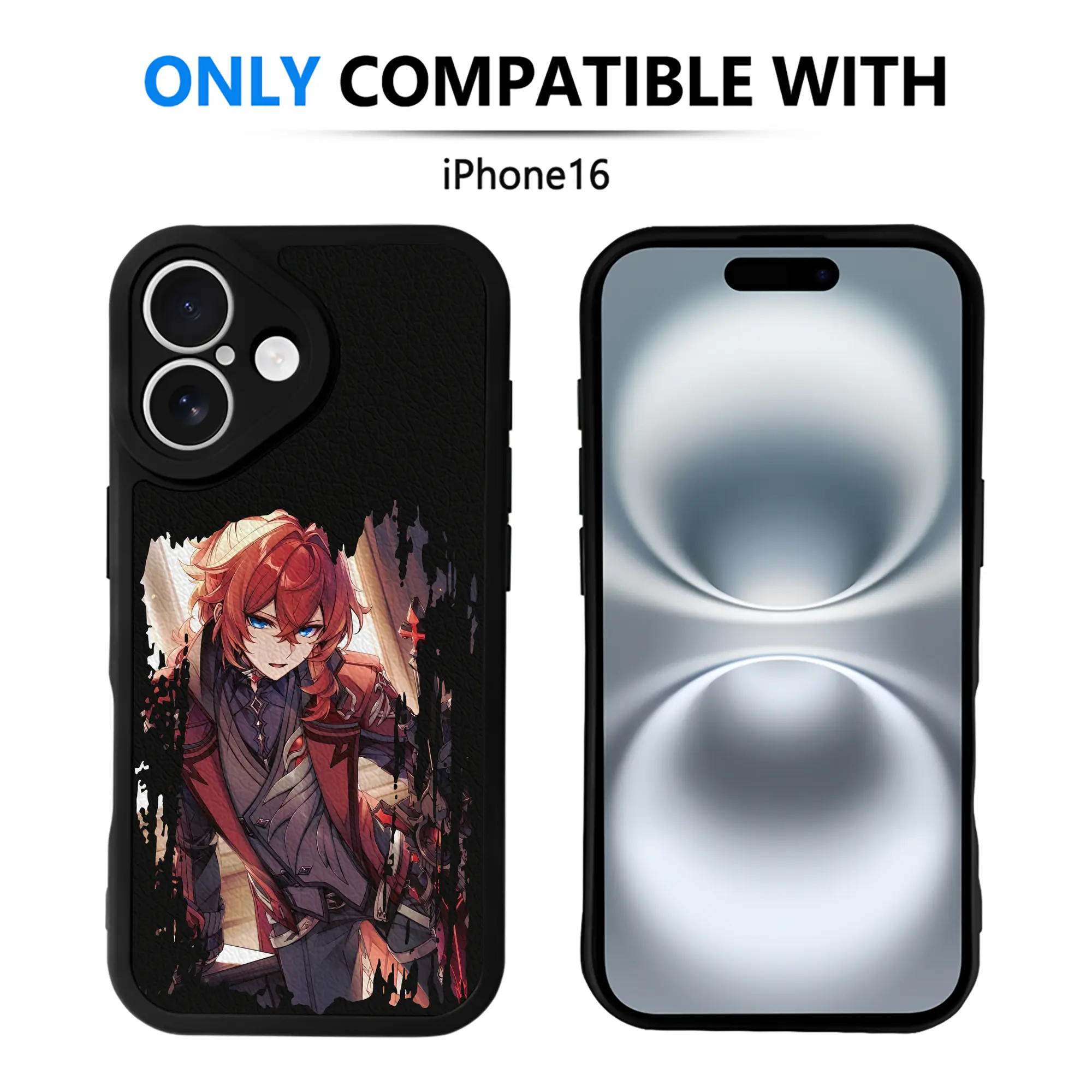 原 神 グッズ ディルック - IPhone 16シリーズ対応 ・ シリコンスマホケース ・ レザー調 ・ 高精度フィット ・ 耐衝撃 ・ ワイヤレス充電対応 ・ 精密カット