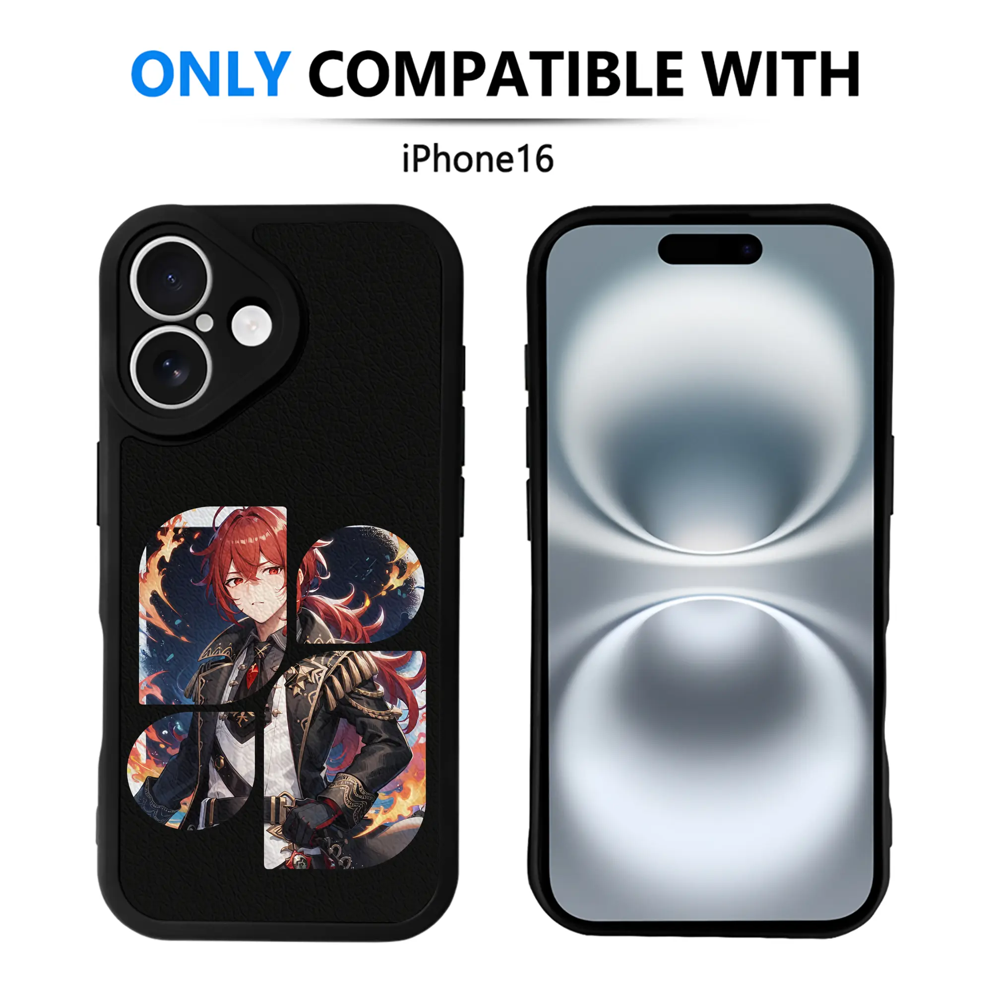 原 神 グッズ ディルック - IPhone 16シリーズ対応 ・ シリコンスマホケース ・ レザー調 ・ 高精度フィット ・ 耐衝撃 ・ ワイヤレス充電対応 ・ 精密カット