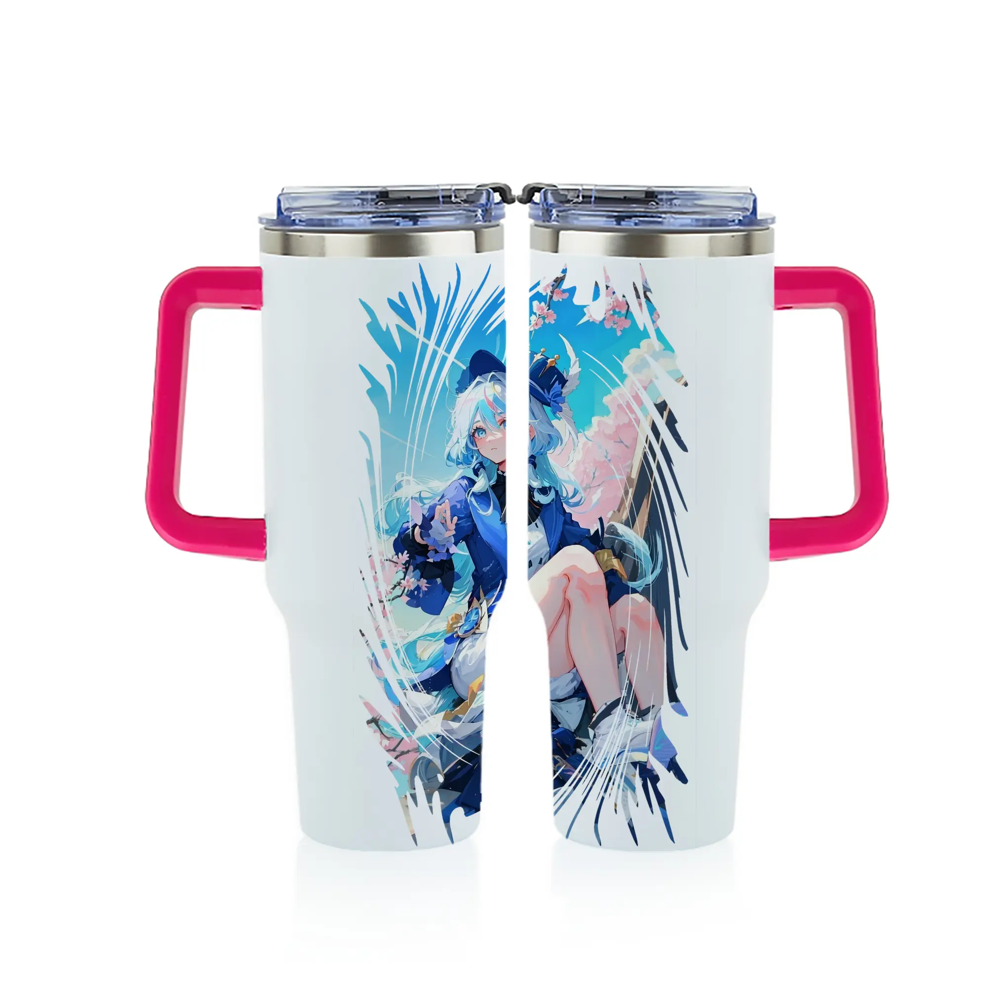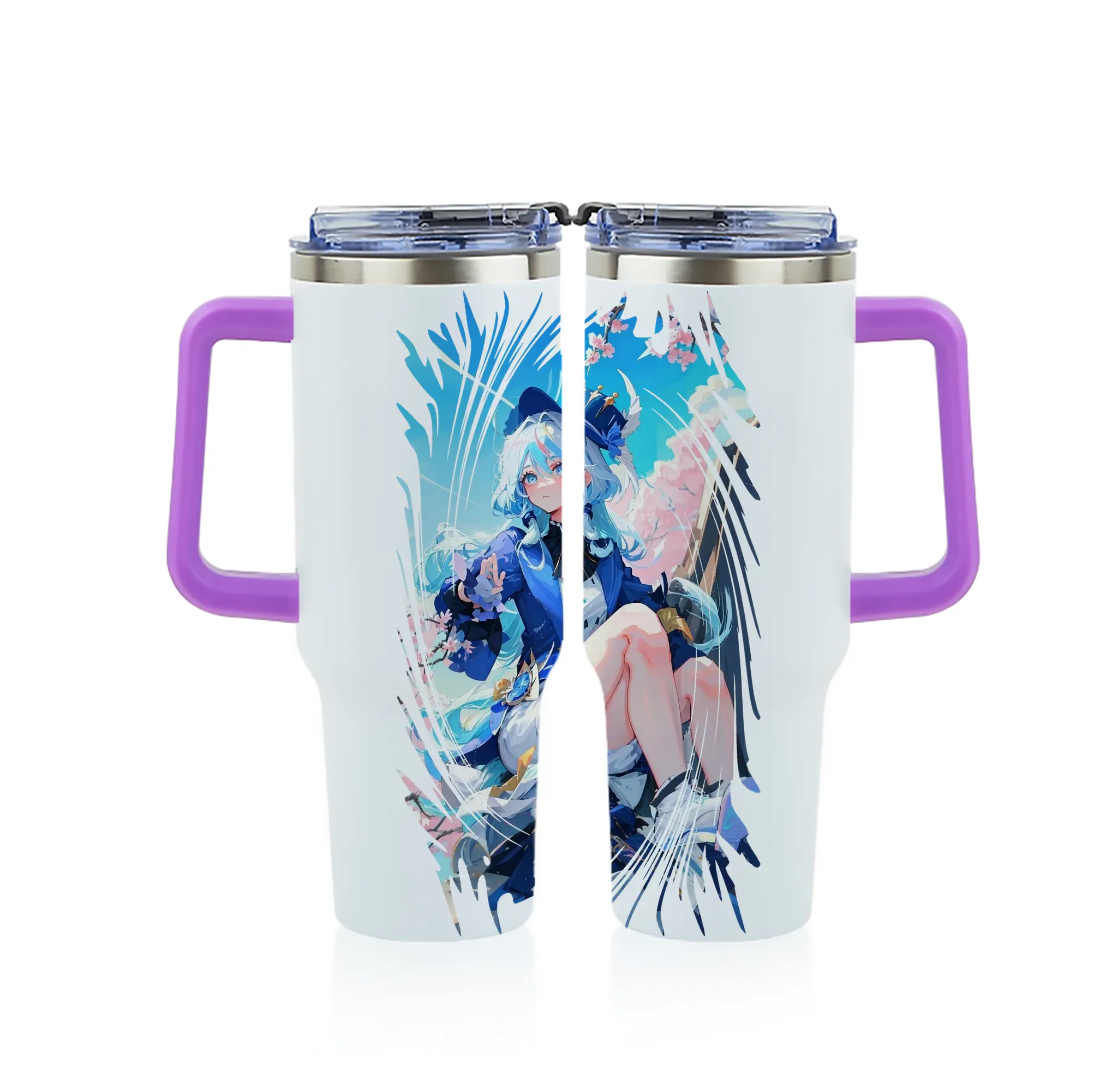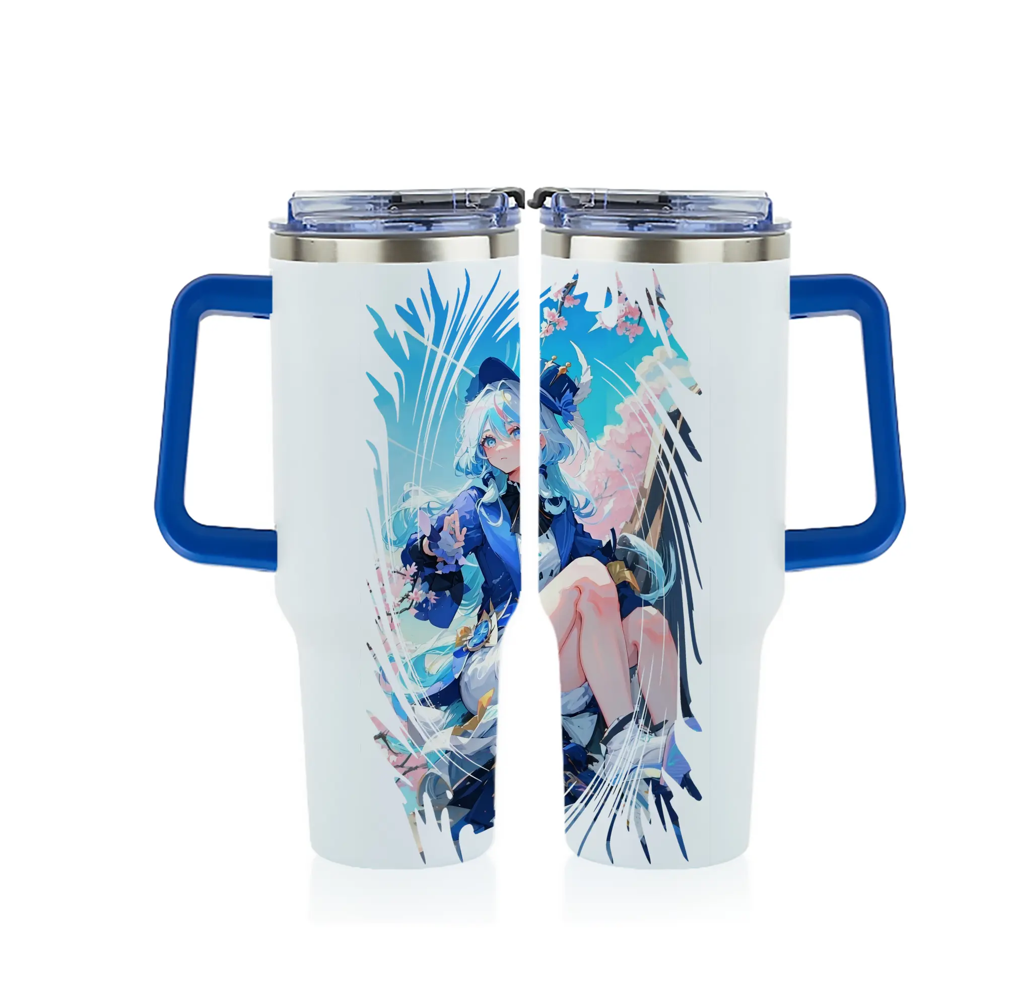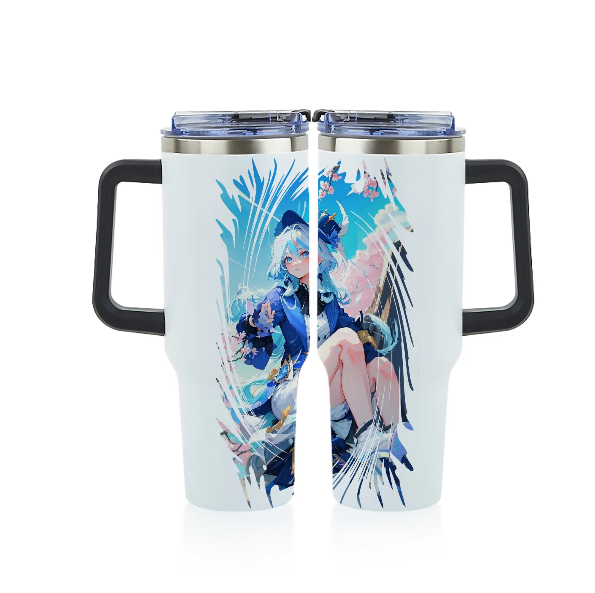 原 神 グッズ フリーナ - 1200mL フルプリント車用タンブラー ・ 304ステンレス 内側 ・ 201ステンレス 外側 ・ 保温 保冷 ・ 通勤 ドライブ アウトドア用