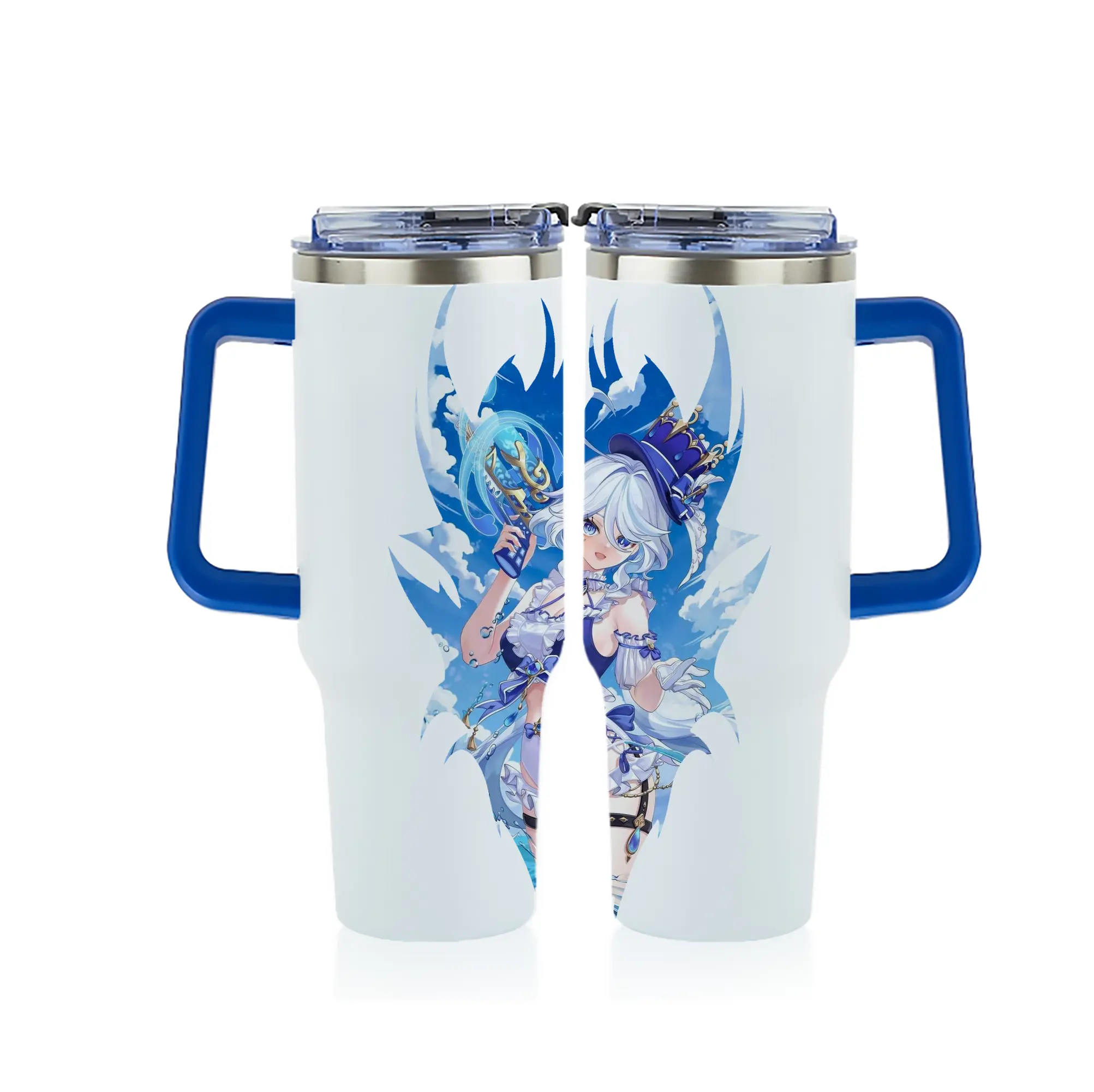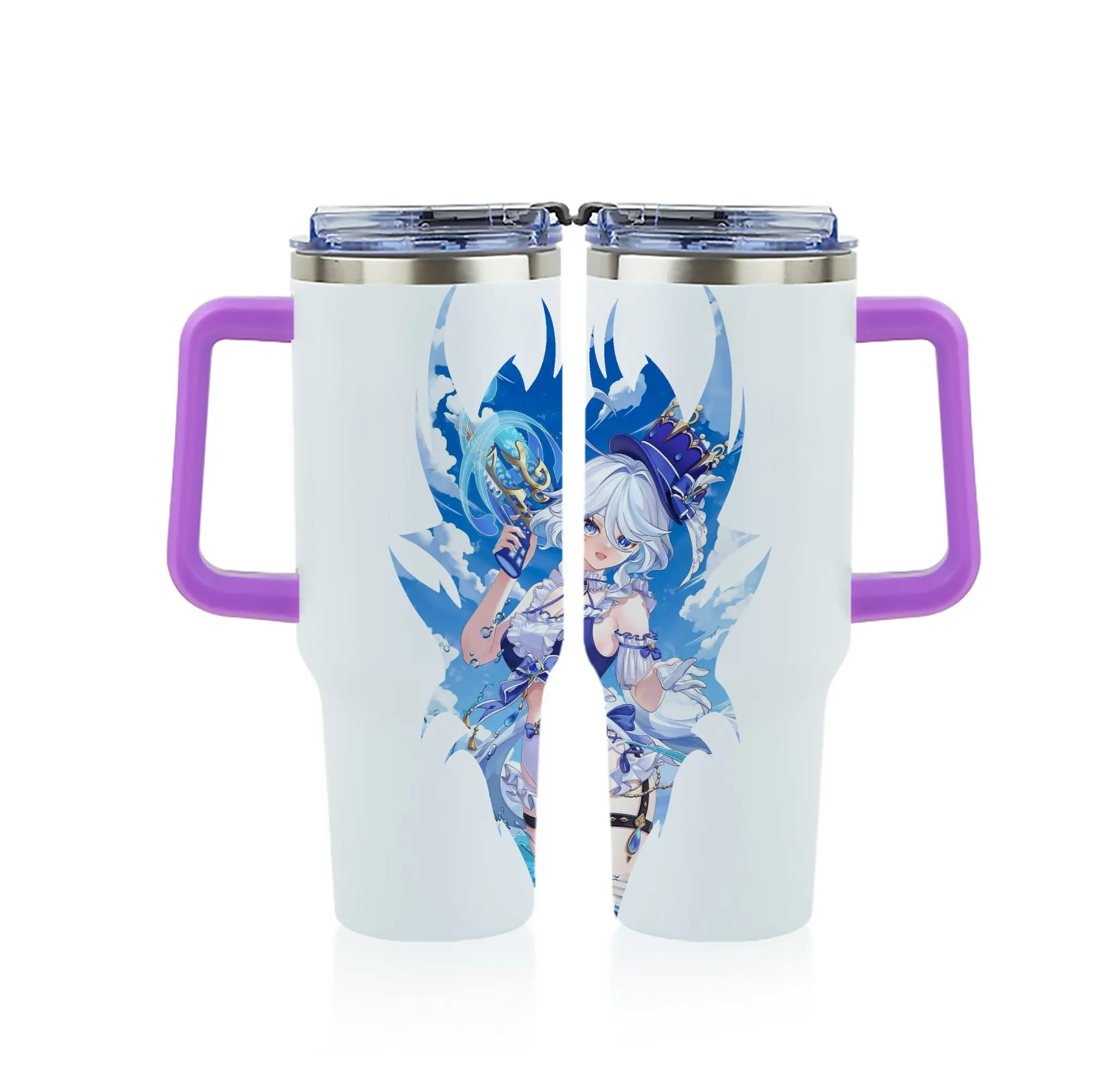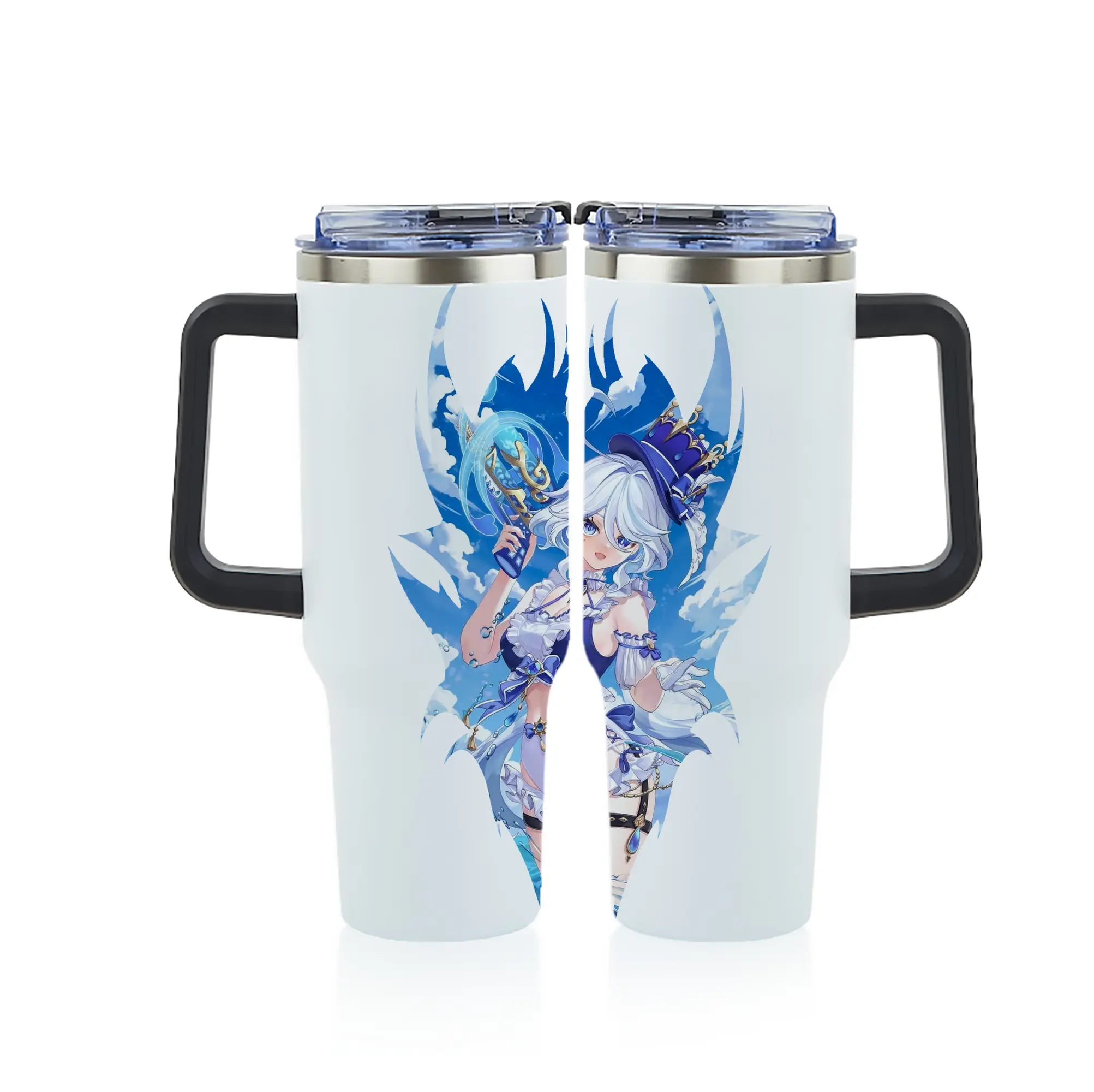 原 神 グッズ フリーナ - 1200mL フルプリント車用タンブラー ・ 304ステンレス 内側 ・ 201ステンレス 外側 ・ 保温 保冷 ・ 通勤 ドライブ アウトドア用