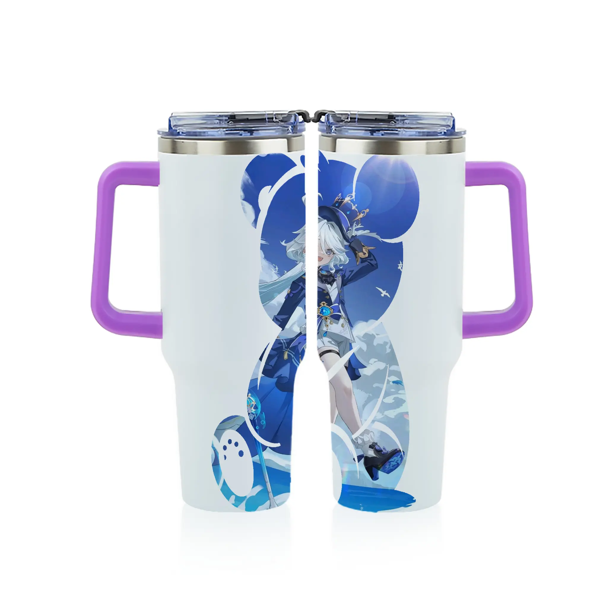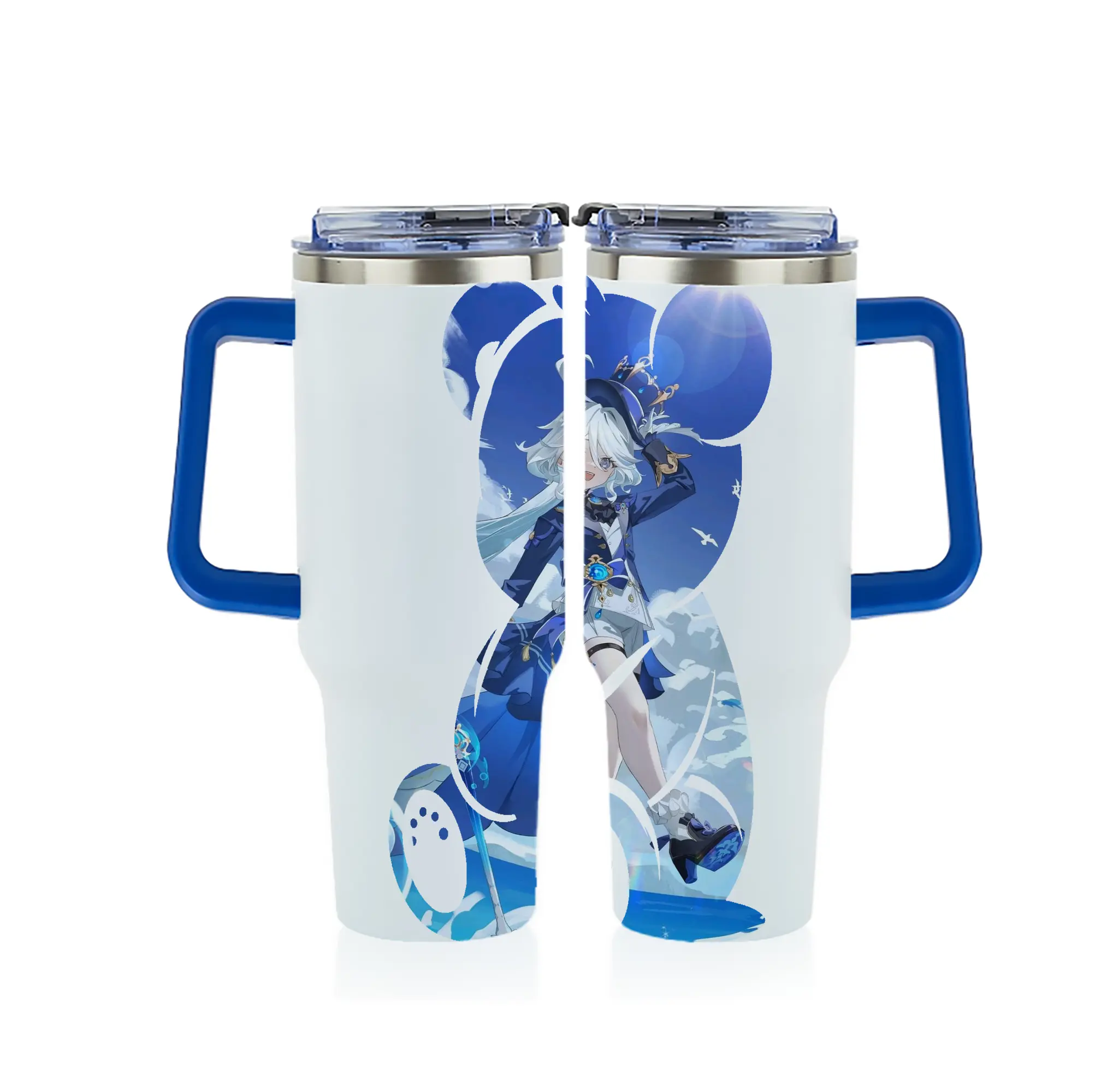 原 神 グッズ フリーナ - 1200mL フルプリント車用タンブラー ・ 304ステンレス 内側 ・ 201ステンレス 外側 ・ 保温 保冷 ・ 通勤 ドライブ アウトドア用