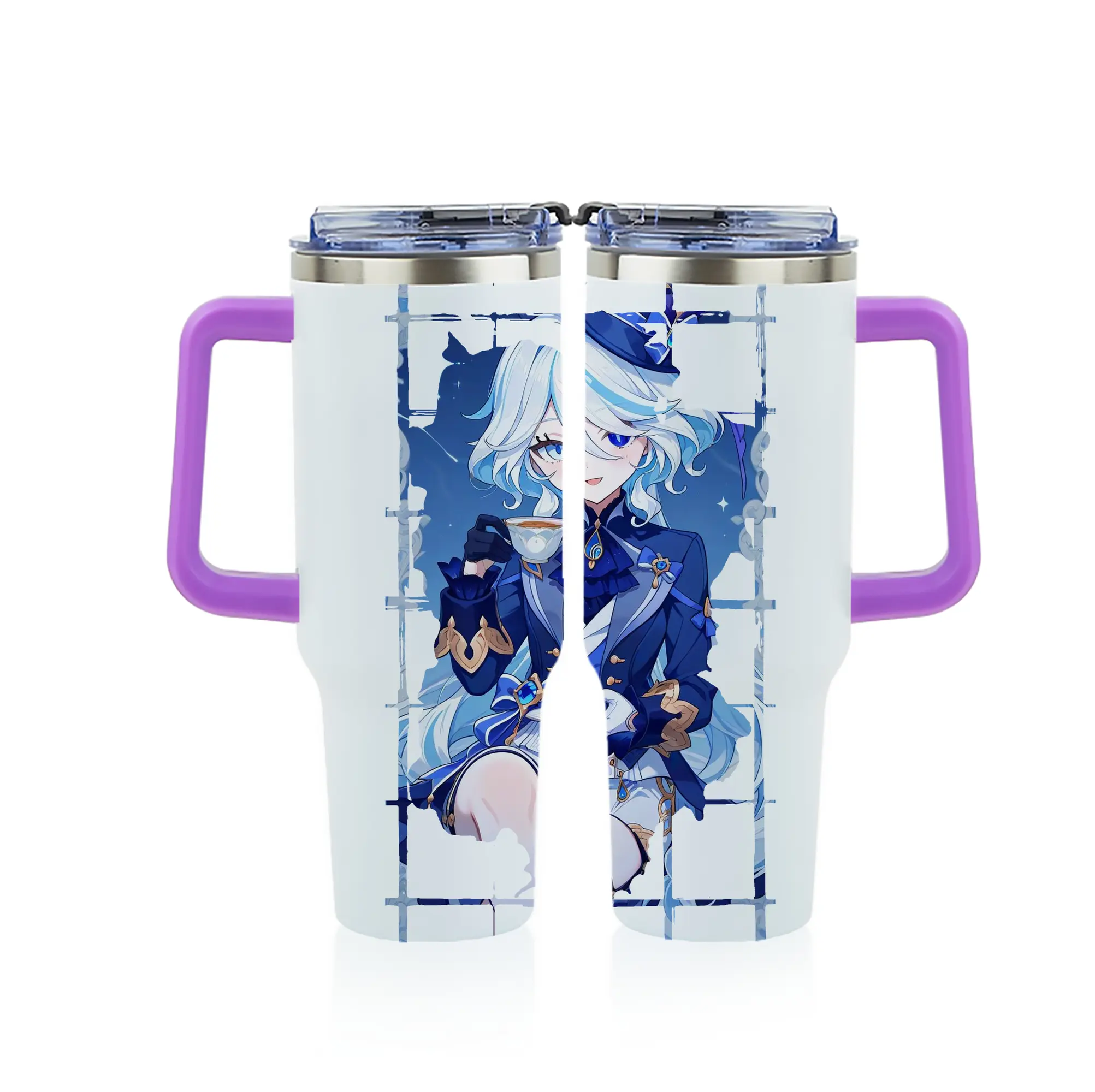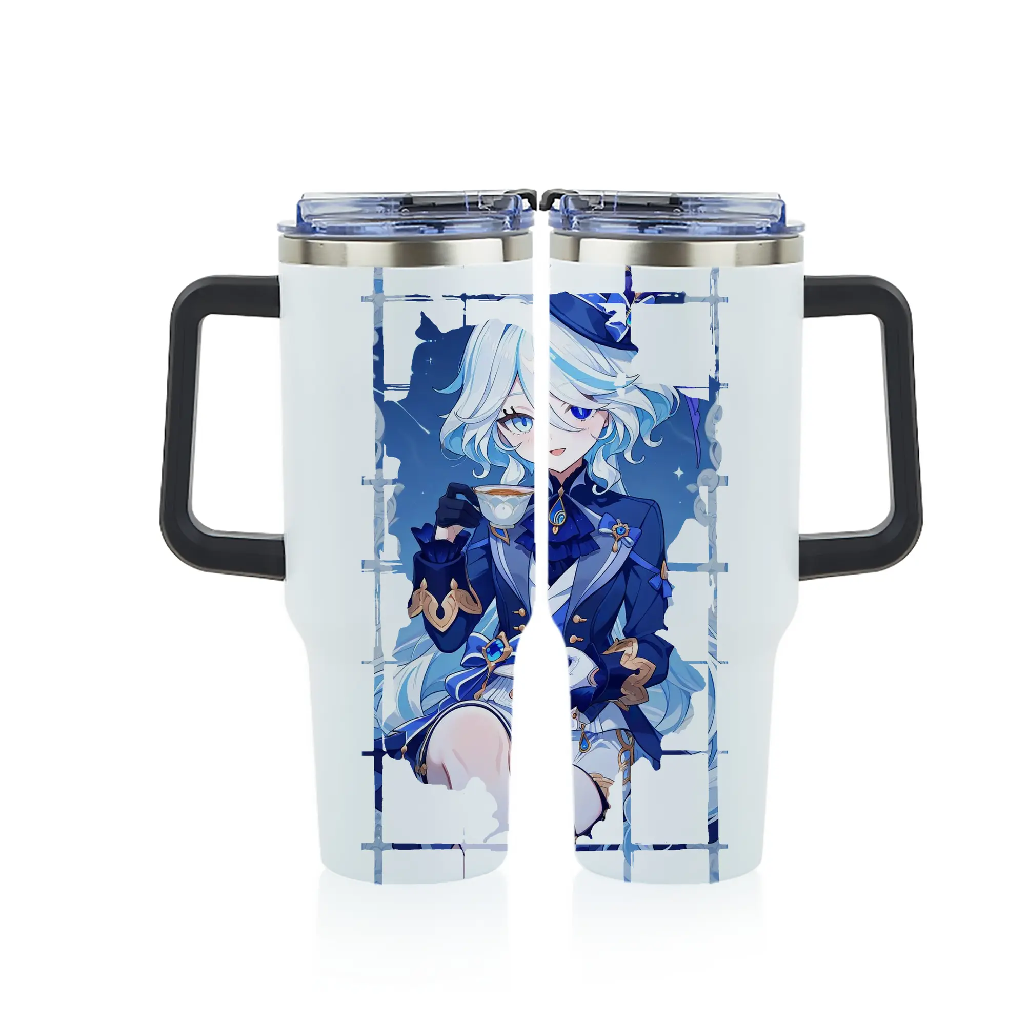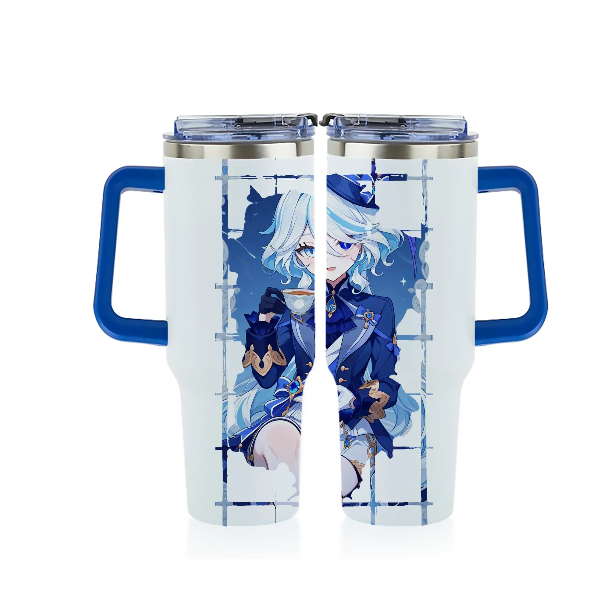 原 神 グッズ フリーナ - 1200mL フルプリント車用タンブラー ・ 304ステンレス 内側 ・ 201ステンレス 外側 ・ 保温 保冷 ・ 通勤 ドライブ アウトドア用