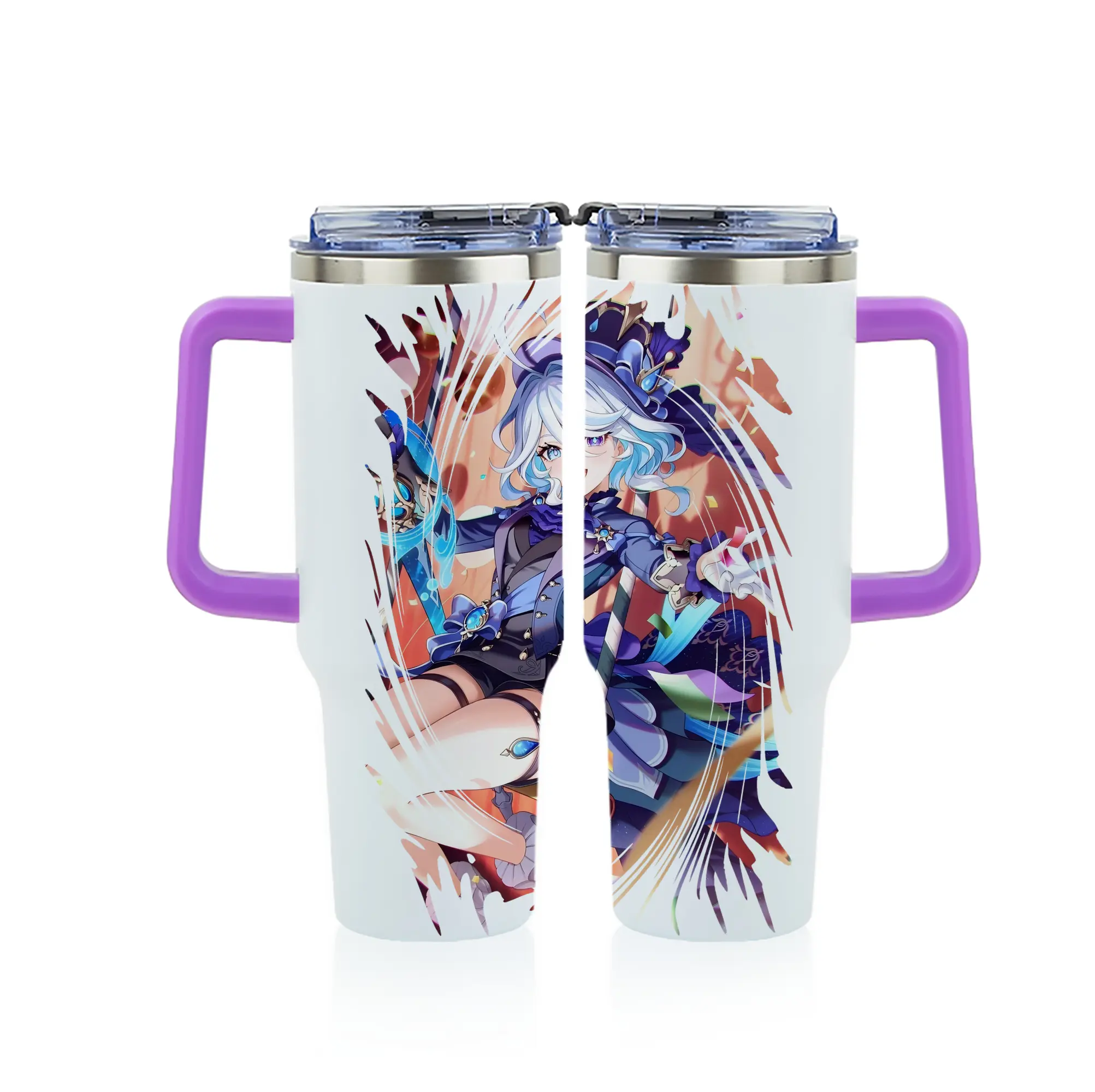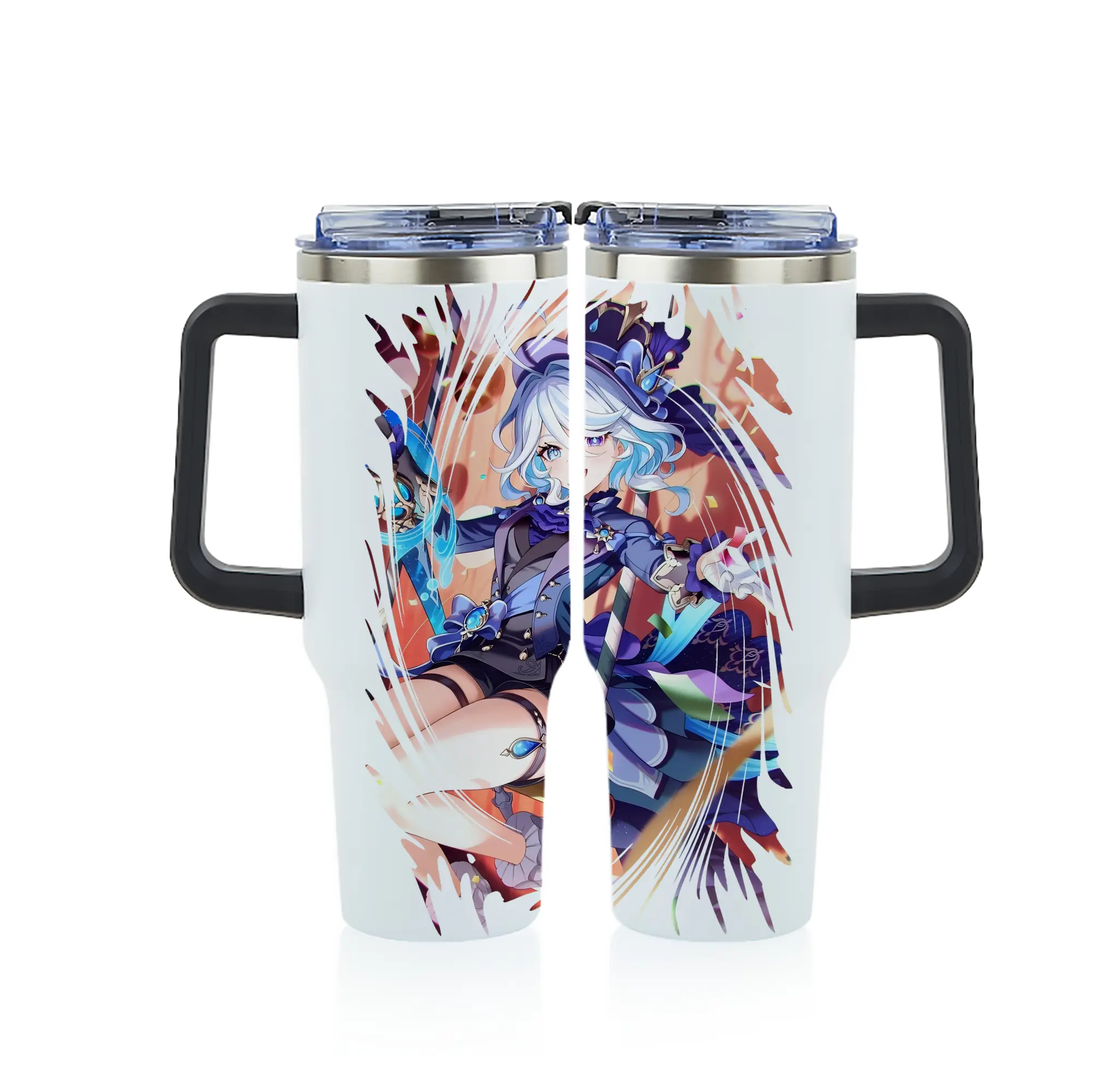 原 神 グッズ フリーナ - 1200mL フルプリント車用タンブラー ・ 304ステンレス 内側 ・ 201ステンレス 外側 ・ 保温 保冷 ・ 通勤 ドライブ アウトドア用